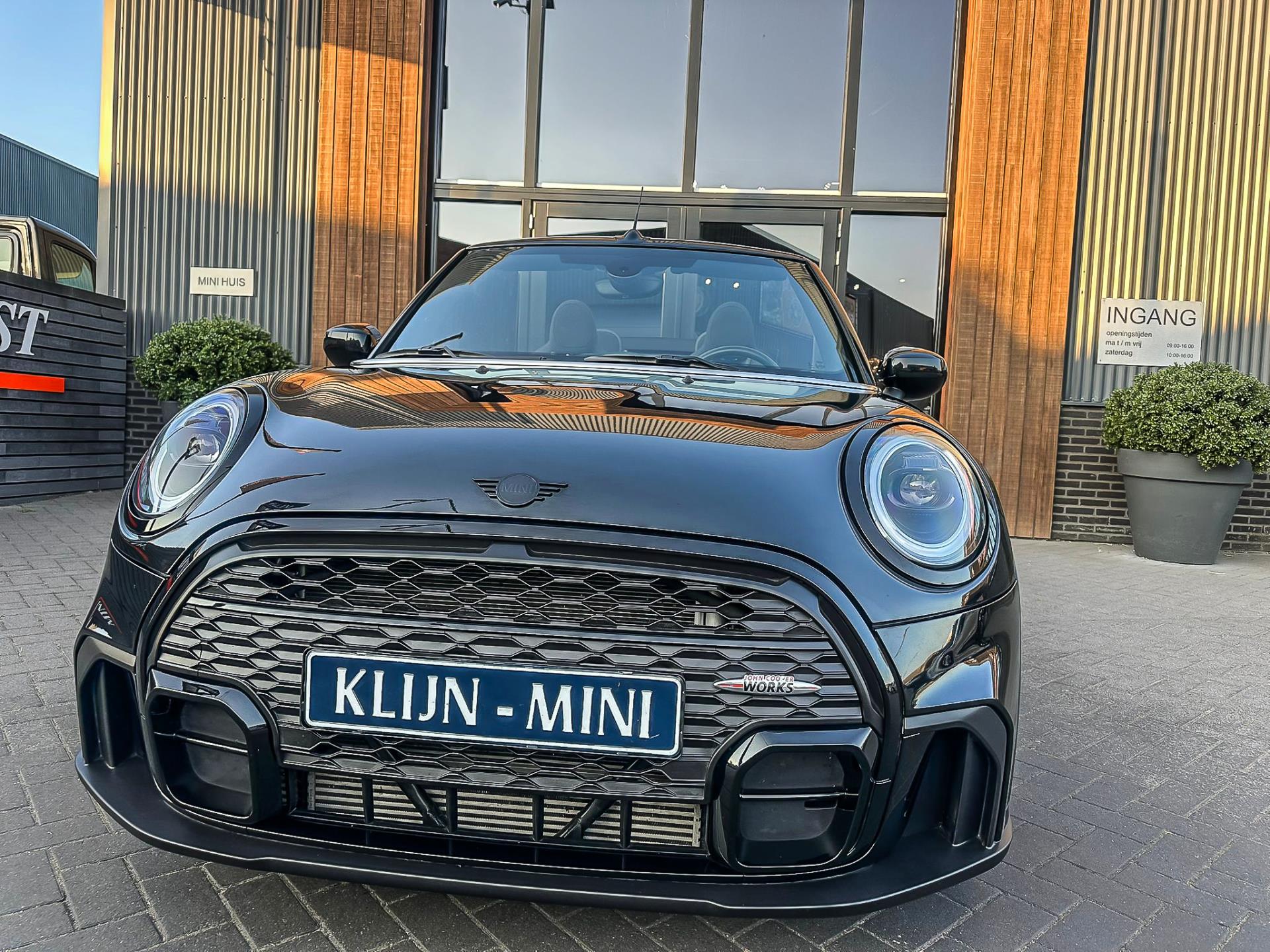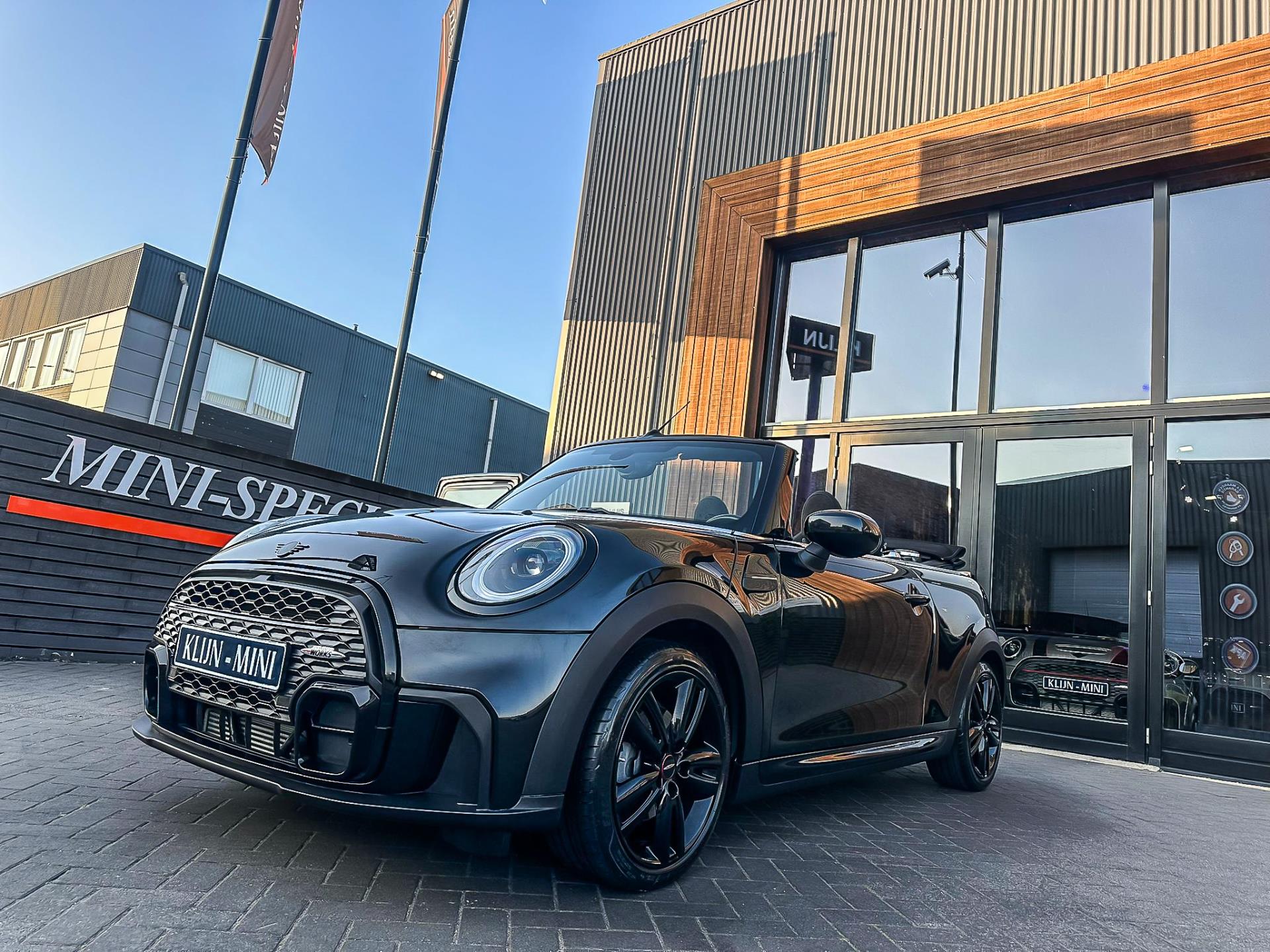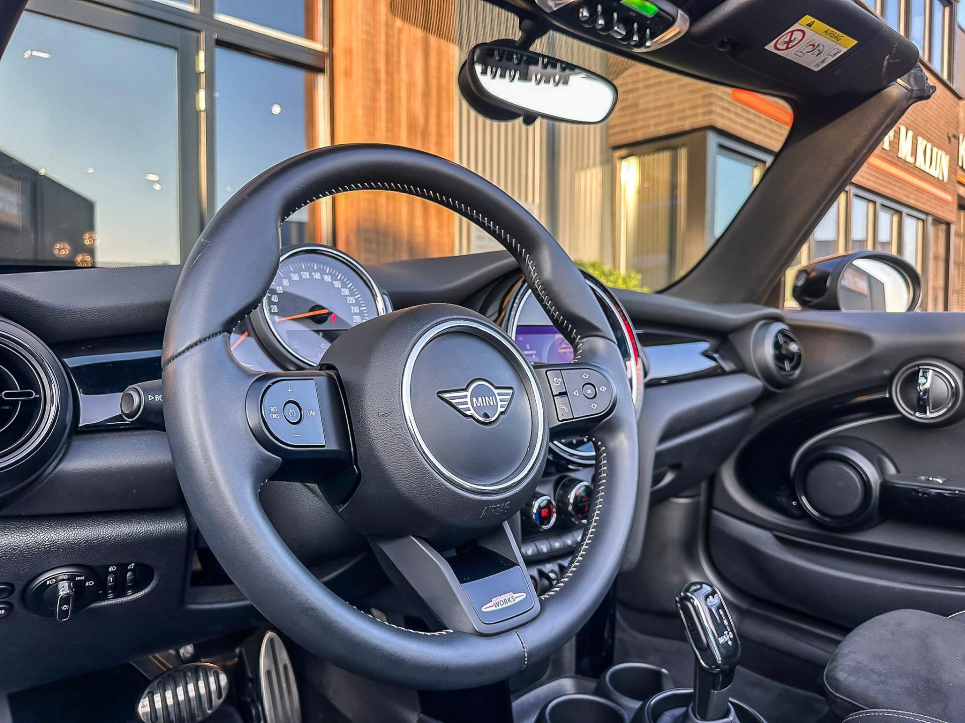 Unieke facelift(nieuwste model)Mini Cooper John Cooper Works cabrio Blackline automaat met een 136 pk motor in de prachtige kleur Midnightblack.Deze schitterende Mini is uitgerust met vele opties:Climate control,Alcantara interieur,Jcw sportstoelen,stoelverwarming,maps,Apple Carplay,Mini connected XL,dab tuner,tel,usb,performence control,Jcw sportpakket,apple carplay,Mini driving modus,elektrische cabriokap,lederen Jcw sportstuur,mf stuur,automatisch dimmende binnenspiegel, regensensor,verwarmde voorruit,voetgangersbeveiliging,parkeersensoren,blackline,union Jack achterlichten,led koplampen met uitgebreide functies,17" Jcw velgen zwart,lichtpakket,gezichtspakket,chili 2 pakket,33.000km origineel,12 maanden garantie,nieuwprijs 48.600euro.Prachtig uitgevoerde Mini Cabrio in concoursstaat voor de echte liefhebber.