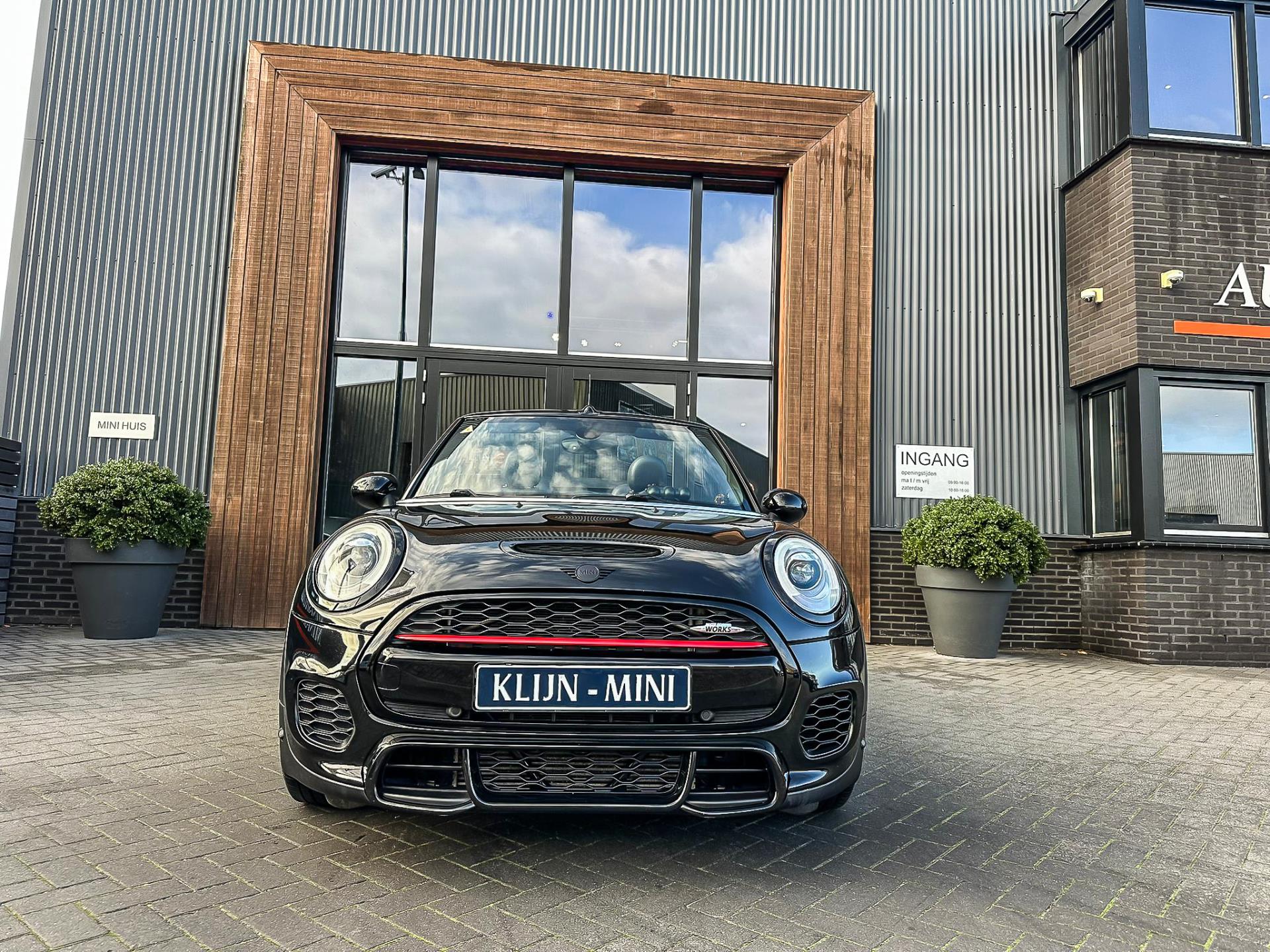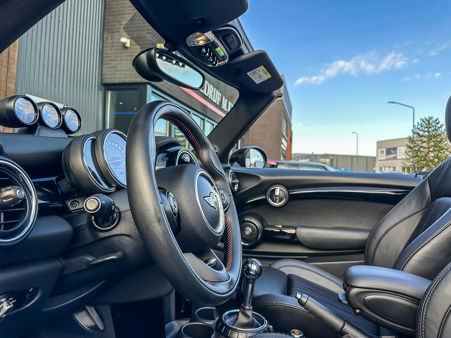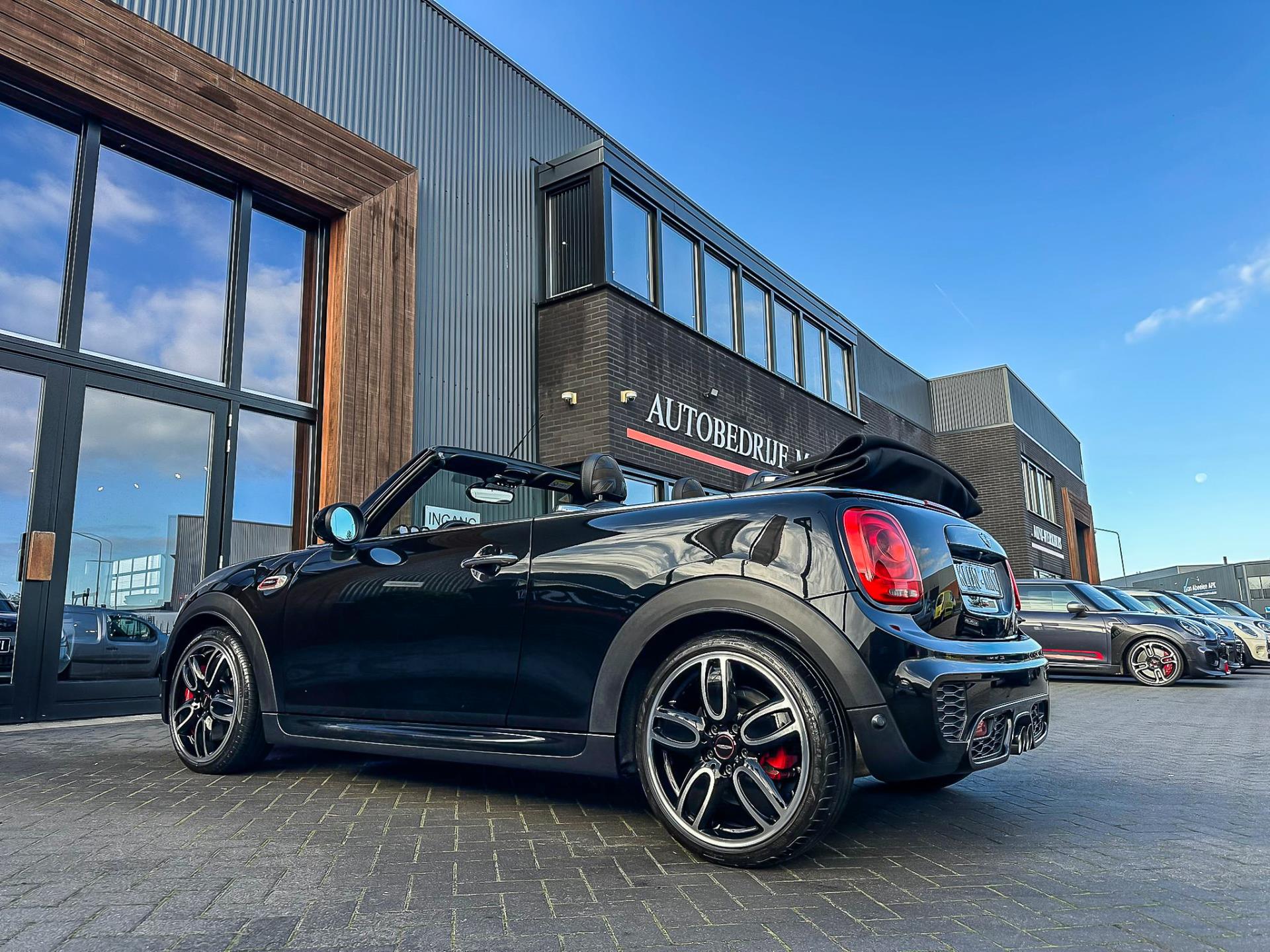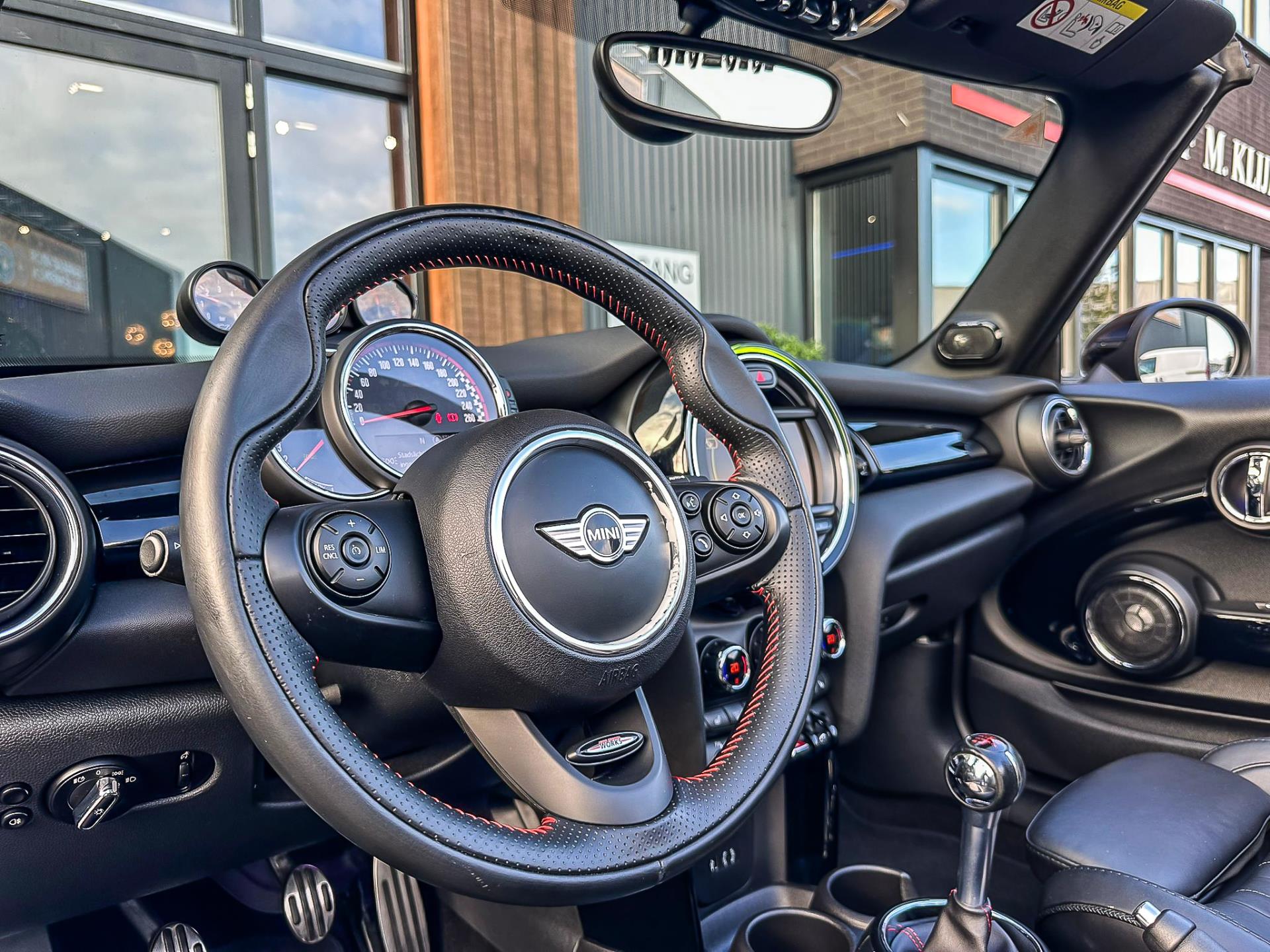 Unieke handgeschakelde Mini John Cooper Works cabrio met een 231pk motor in de prachtige kleur Midnightblack metallic.Deze schitterende Mini is uitgerust met alle denkbare opties:Climate control,vollederen interieur Yours lounge,sportstoelen,stoelverwarming,navigatie,Mini connected XL,Harman Kardon soundsystem,dab tuner,achteruitrijcamera,cockpitchrono pakket,tel,usb,performence control,Mini driving modus,elektrische cabriokap,lederen Jcw sportstuur,mf stuur,automatisch dimmende binnenspiegel, regensensor,blackline, voetgangersbeveiliging,dtc,elektrisch inklapbare spiegels,parkeersensoren voor en achter,park assist(Mini parkeert zelf in),led koplampen met uitgebreide functies,18 inch JCW cup velgen,lichtpakket met Mini logo's,gezichtspakket,chili 2 pakket,51.000km origineel,nieuwprijs 56.000euro.Prachtig uitgevoerde Mini Jcw in concoursstaat voor de echte liefhebber.