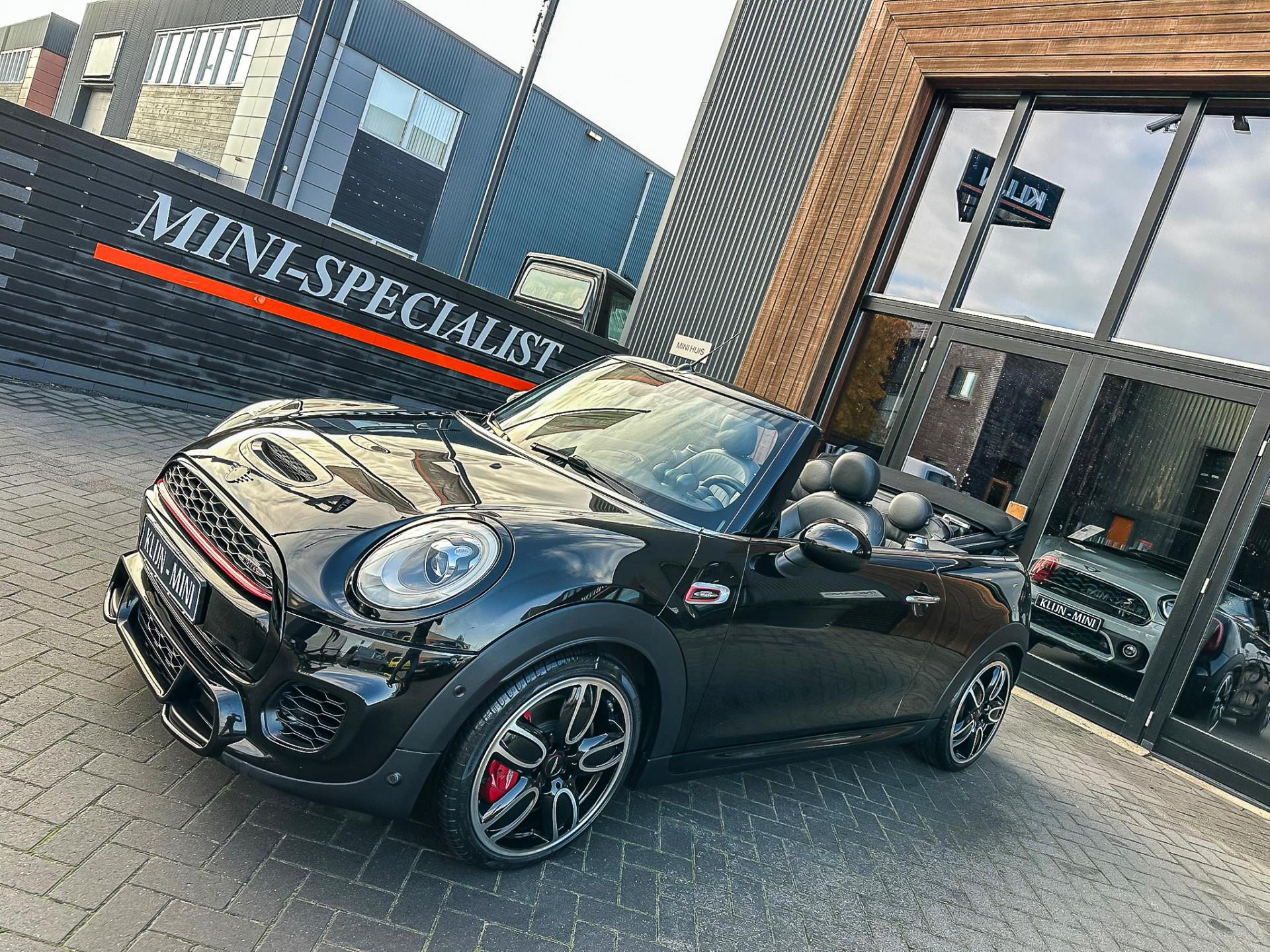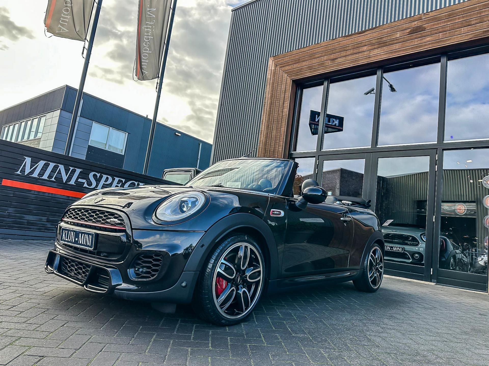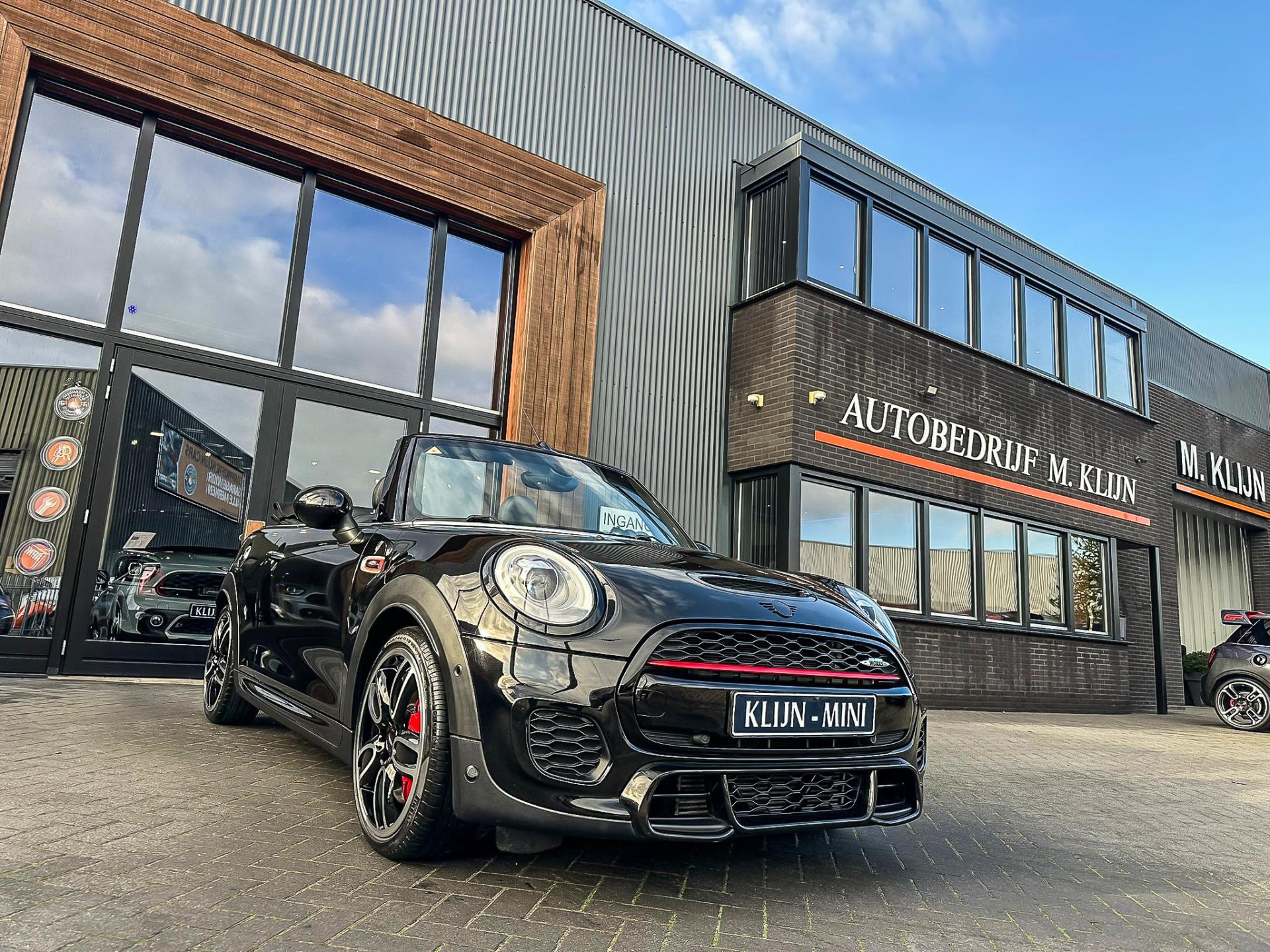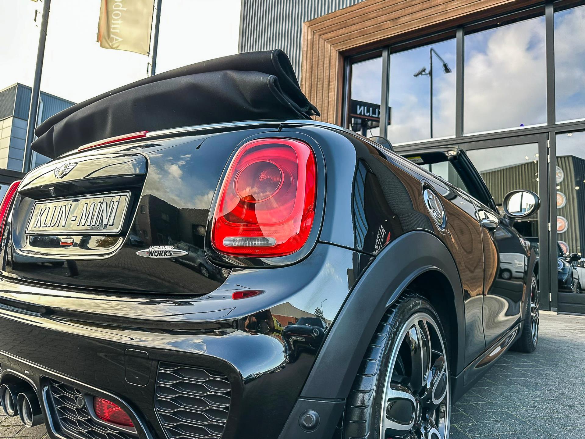 Unieke handgeschakelde Mini John Cooper Works cabrio met een 231pk motor in de prachtige kleur Midnightblack metallic.Deze schitterende Mini is uitgerust met alle denkbare opties:Climate control,vollederen interieur Yours lounge,sportstoelen,stoelverwarming,navigatie,Mini connected XL,Harman Kardon soundsystem,dab tuner,achteruitrijcamera,cockpitchrono pakket,tel,usb,performence control,Mini driving modus,elektrische cabriokap,lederen Jcw sportstuur,mf stuur,automatisch dimmende binnenspiegel, regensensor,blackline, voetgangersbeveiliging,dtc,elektrisch inklapbare spiegels,parkeersensoren voor en achter,park assist(Mini parkeert zelf in),led koplampen met uitgebreide functies,18 inch JCW cup velgen,lichtpakket met Mini logo's,gezichtspakket,chili 2 pakket,51.000km origineel,nieuwprijs 56.000euro.Prachtig uitgevoerde Mini Jcw in concoursstaat voor de echte liefhebber.