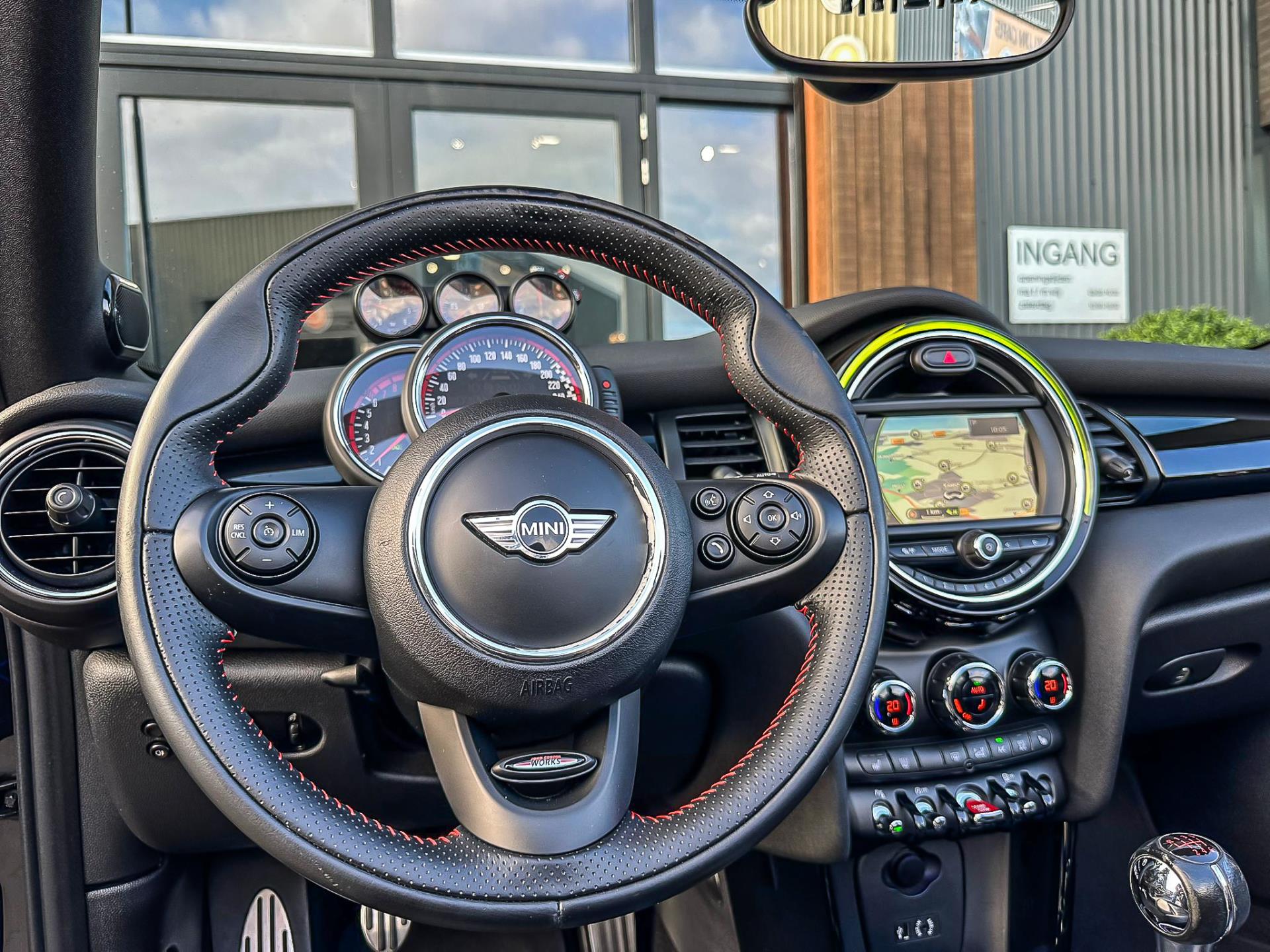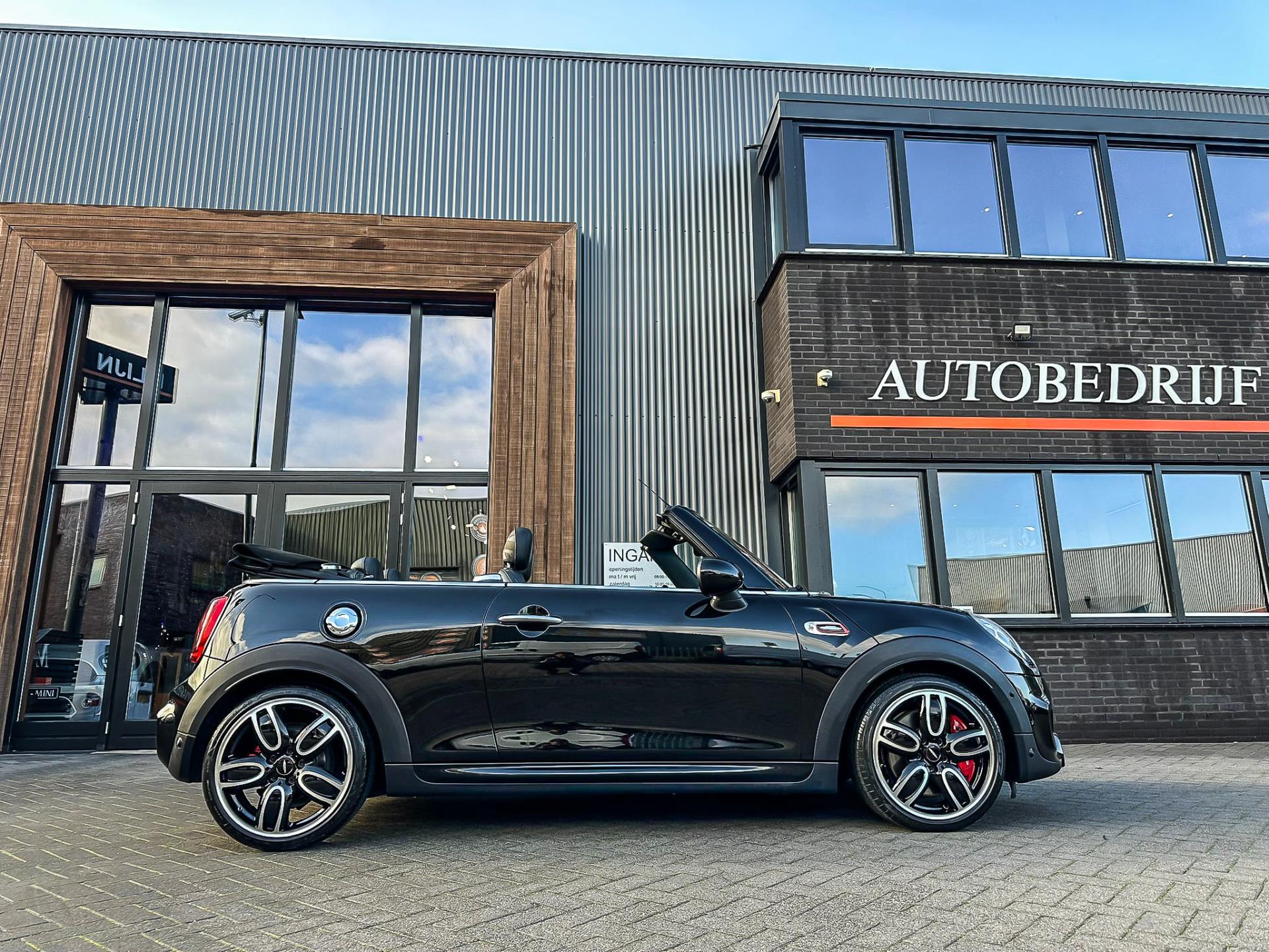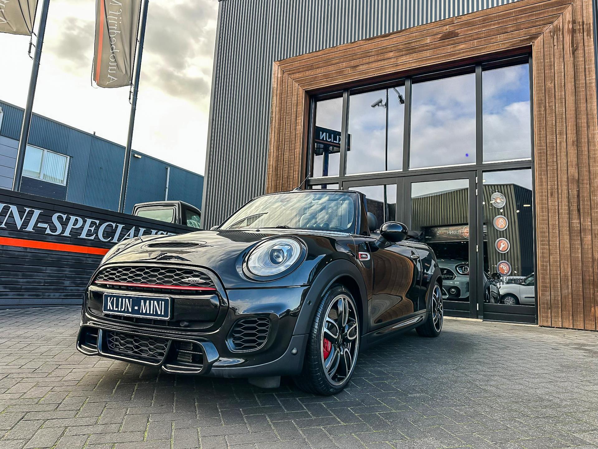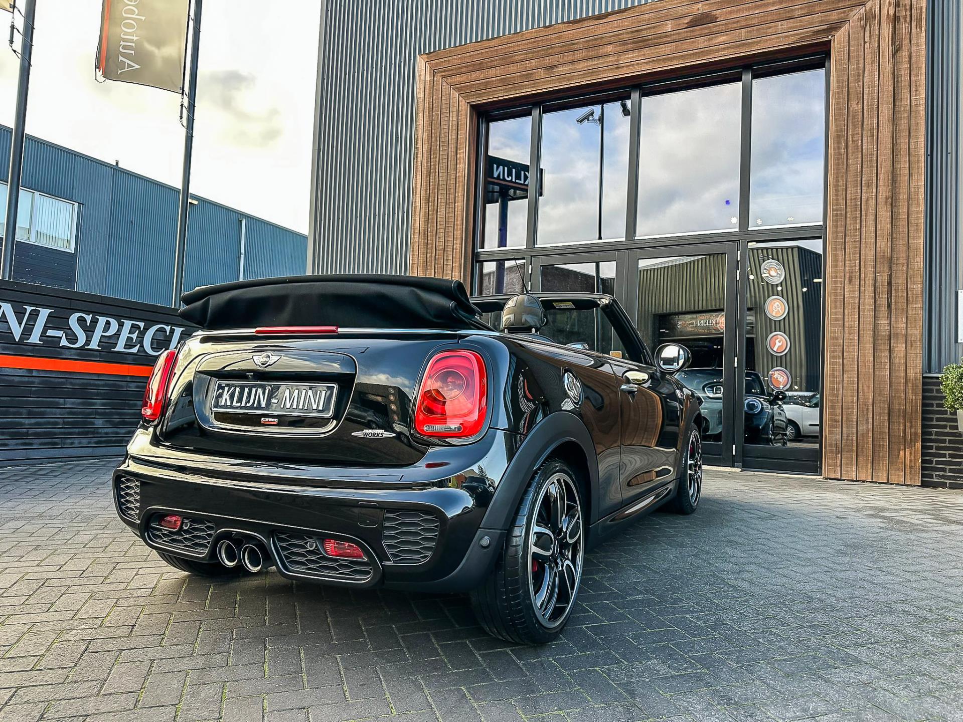 Unieke handgeschakelde Mini John Cooper Works cabrio met een 231pk motor in de prachtige kleur Midnightblack metallic.Deze schitterende Mini is uitgerust met alle denkbare opties:Climate control,vollederen interieur Yours lounge,sportstoelen,stoelverwarming,navigatie,Mini connected XL,Harman Kardon soundsystem,dab tuner,achteruitrijcamera,cockpitchrono pakket,tel,usb,performence control,Mini driving modus,elektrische cabriokap,lederen Jcw sportstuur,mf stuur,automatisch dimmende binnenspiegel, regensensor,blackline, voetgangersbeveiliging,dtc,elektrisch inklapbare spiegels,parkeersensoren voor en achter,park assist(Mini parkeert zelf in),led koplampen met uitgebreide functies,18 inch JCW cup velgen,lichtpakket met Mini logo's,gezichtspakket,chili 2 pakket,51.000km origineel,nieuwprijs 56.000euro.Prachtig uitgevoerde Mini Jcw in concoursstaat voor de echte liefhebber.