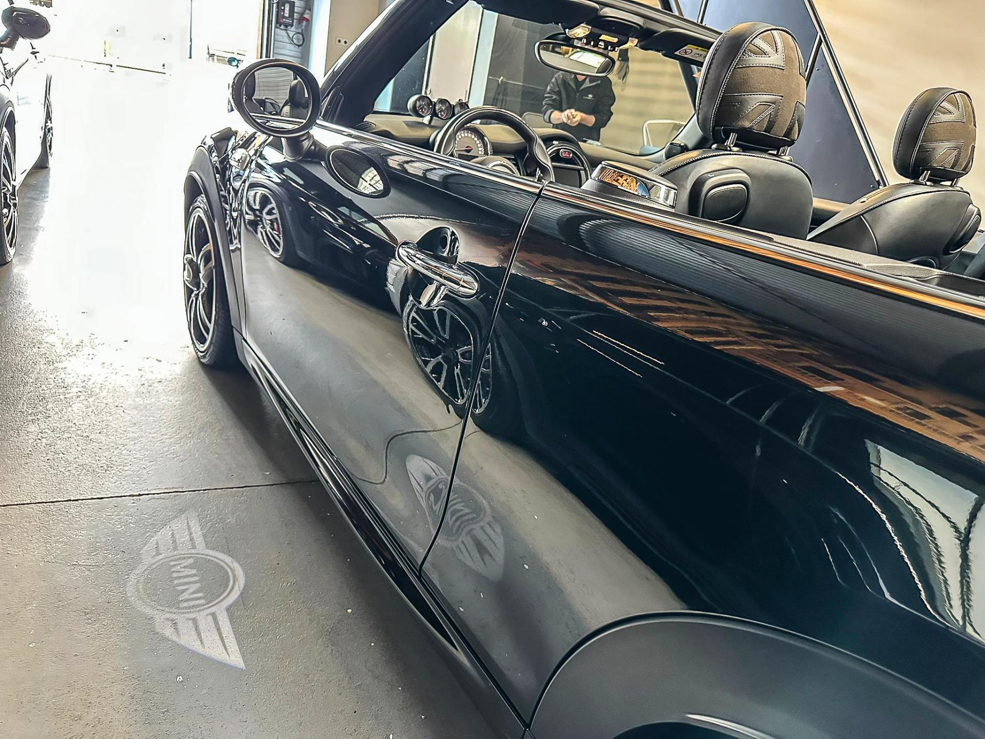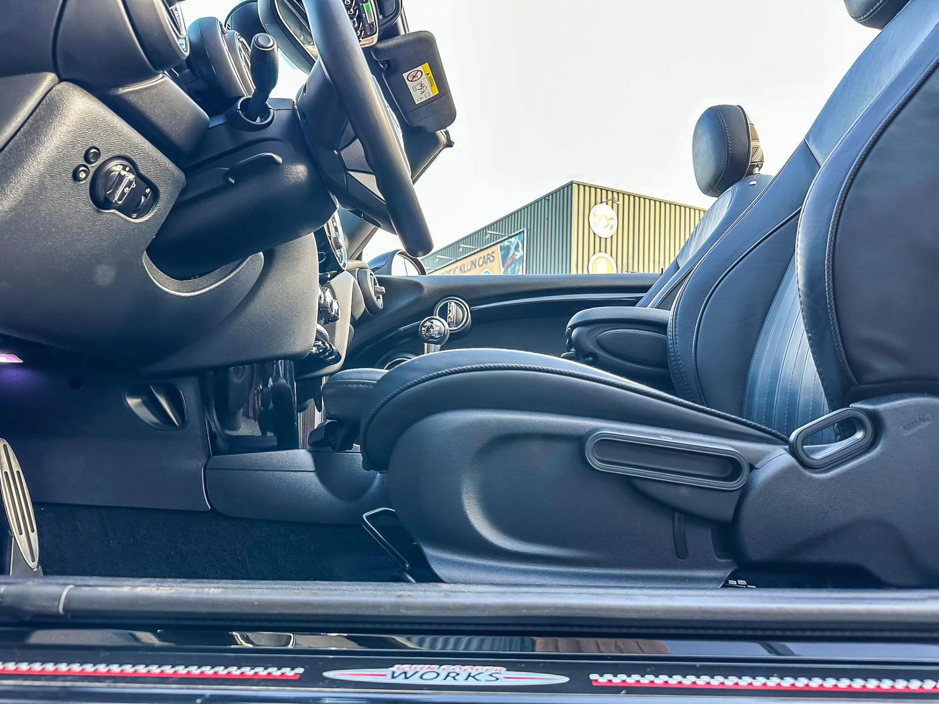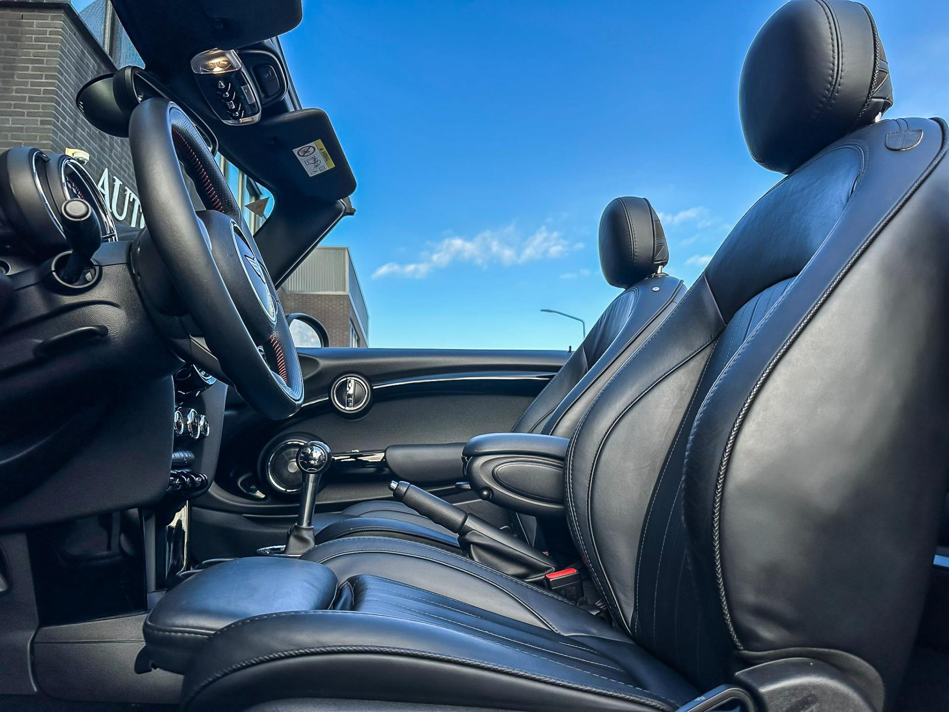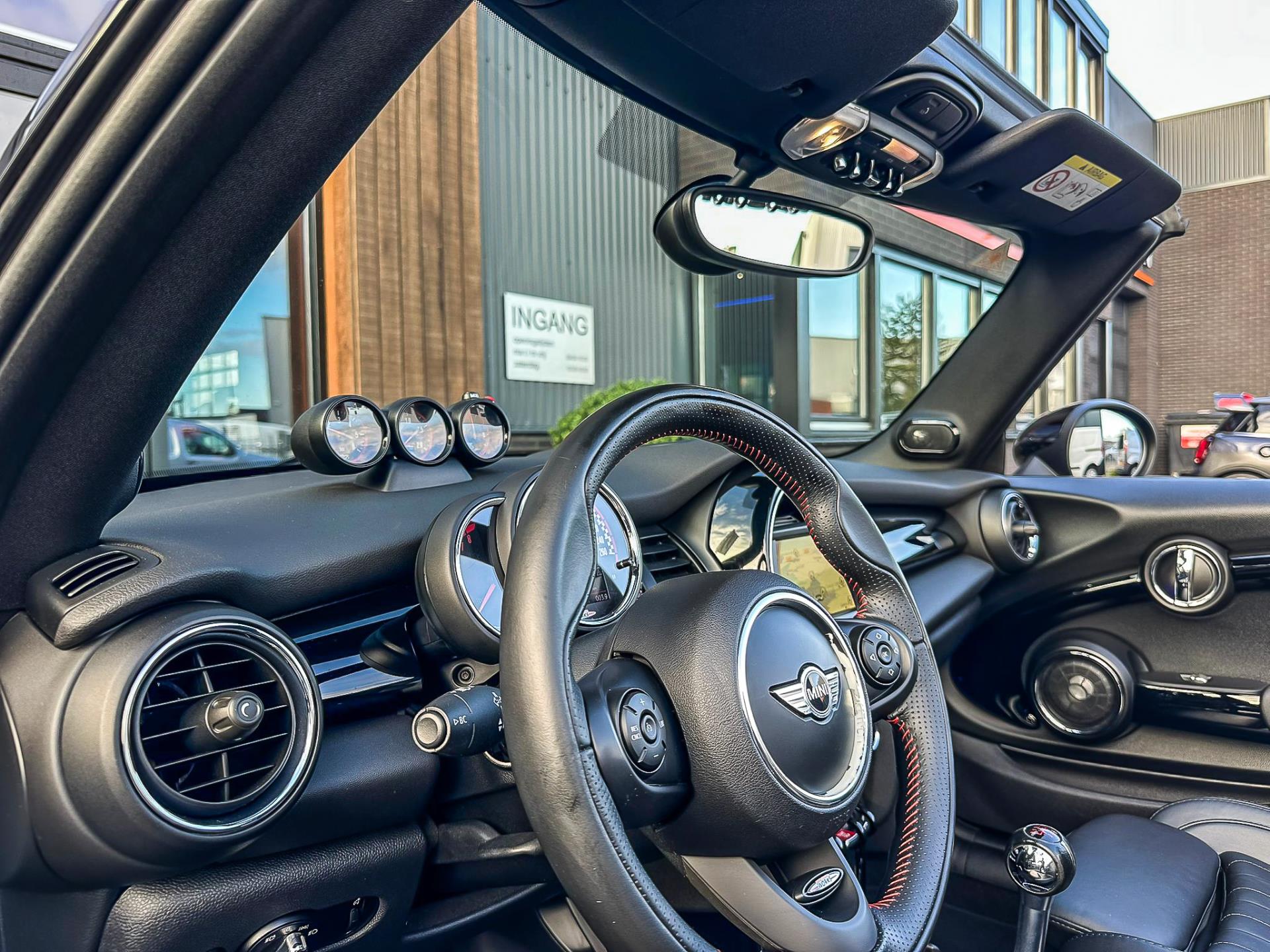 Unieke handgeschakelde Mini John Cooper Works cabrio met een 231pk motor in de prachtige kleur Midnightblack metallic.Deze schitterende Mini is uitgerust met alle denkbare opties:Climate control,vollederen interieur Yours lounge,sportstoelen,stoelverwarming,navigatie,Mini connected XL,Harman Kardon soundsystem,dab tuner,achteruitrijcamera,cockpitchrono pakket,tel,usb,performence control,Mini driving modus,elektrische cabriokap,lederen Jcw sportstuur,mf stuur,automatisch dimmende binnenspiegel, regensensor,blackline, voetgangersbeveiliging,dtc,elektrisch inklapbare spiegels,parkeersensoren voor en achter,park assist(Mini parkeert zelf in),led koplampen met uitgebreide functies,18 inch JCW cup velgen,lichtpakket met Mini logo's,gezichtspakket,chili 2 pakket,51.000km origineel,nieuwprijs 56.000euro.Prachtig uitgevoerde Mini Jcw in concoursstaat voor de echte liefhebber.