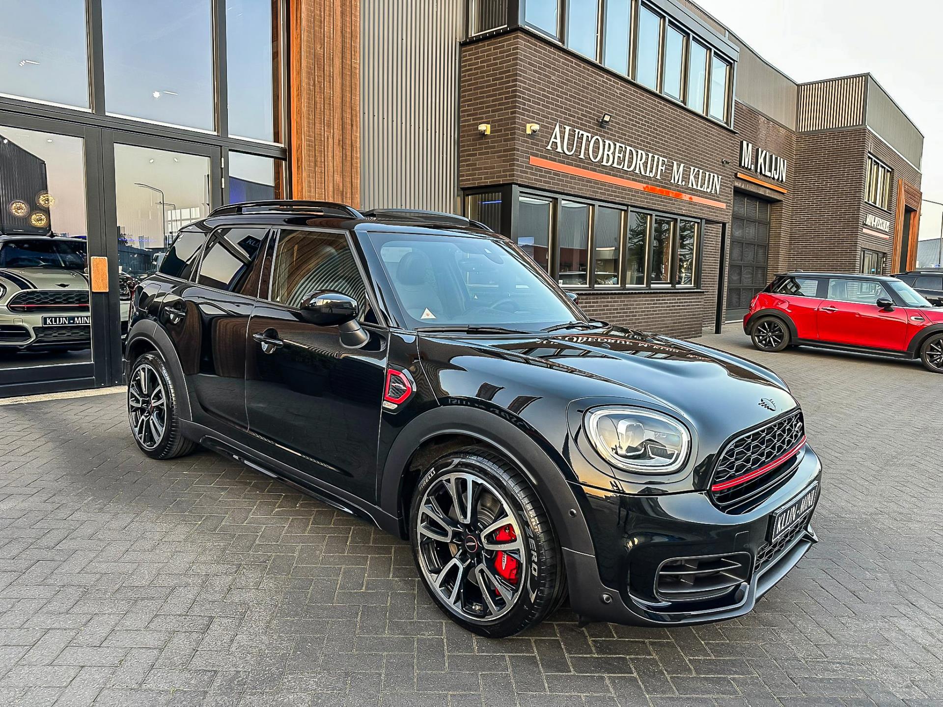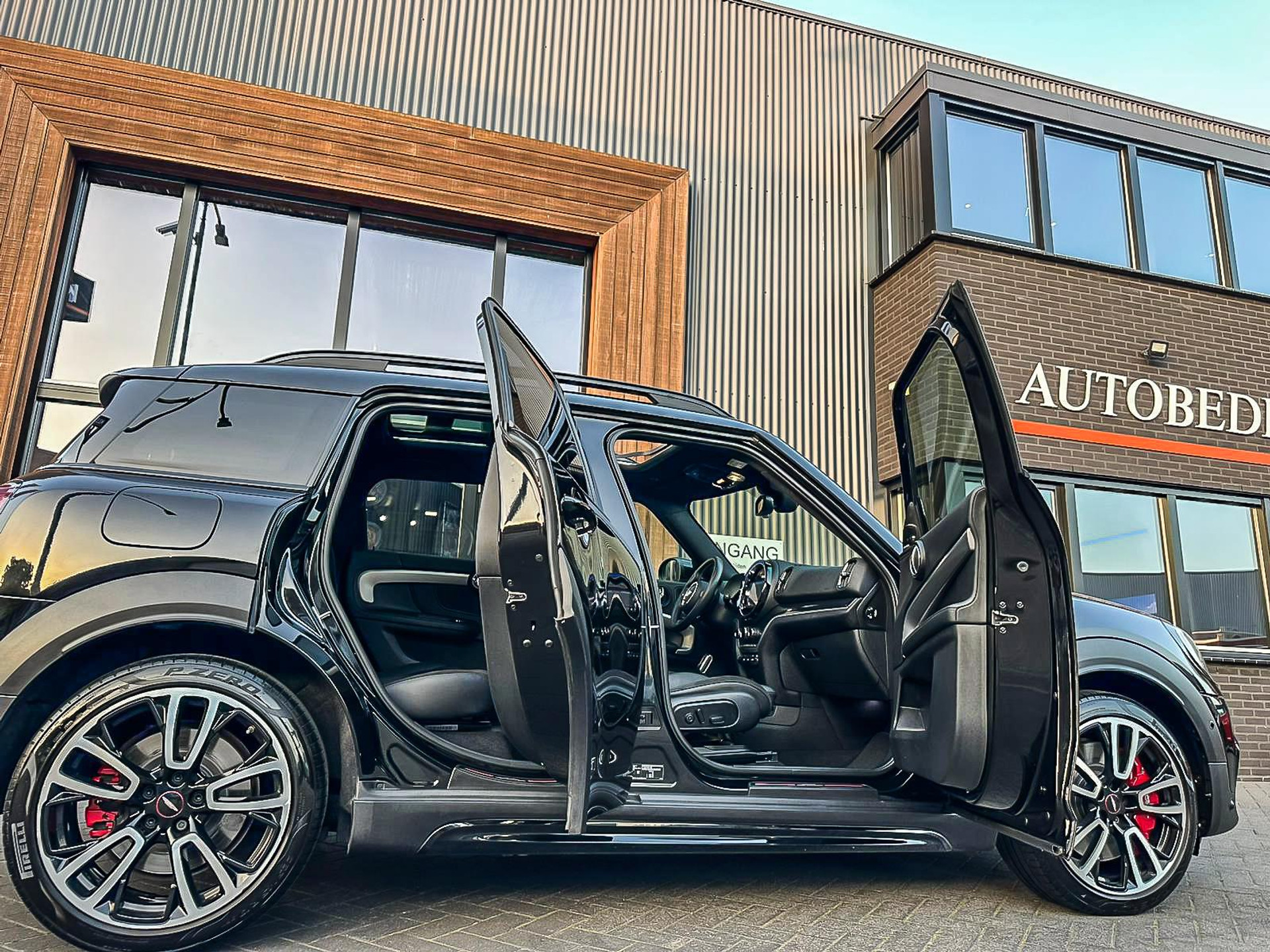 Zeer exclusieve en unieke Mini Countryman John Cooper Works ALL4 F1 sportautomaat met een 306pk motor uitgevoerd in de prachtige kleur Midnight black metallic.Deze in werkelijk nieuwstaat verkerende Mini is uitgerust met alle maar dan ook alle denkbare opties oa:Climate control,vollederen interieur carbon black,elektrische stoelen met memory,sportstoelen,stoelverwarming,virtual cockpit,breedbeeld dvd navigatie XL,Mini Connected XL,head up display,keyless go,achteruitrijcamera,Harman Kardon soundsystem,19” Jcw cup velgen,adaptieve cruise control,sportpakket,vierwielaandrijving,led verlichting,elektrisch bedienbare glazen panoramadak,5 persoons,privacyglass,lederen Jcw sportstuur met F1 flipperschakel,lichtpakket met Mini logo's,welcome pakket,parkeersensoren voor en achter,parkassist(auto parkeert zelf in),F1 schakel op stuur,actieve voetgangersbeveiliging,lc scherm,dakrailing zwart,Mini driving modus,donker dakhemel,mf stuur,Apple Carplay,dab radio,boordcomputer,full black pack,regensensor,alarm,Union Jack achterlichten,vierwielaandrijving,armsteun,chili 2 pakket,alle boekjes+originele sleutels,1e eigenaar,52.000km origineel,nieuwprijs 83.400,-.Schitterende en unieke Mini Works in concoursstaat voor de echte liefhebber.