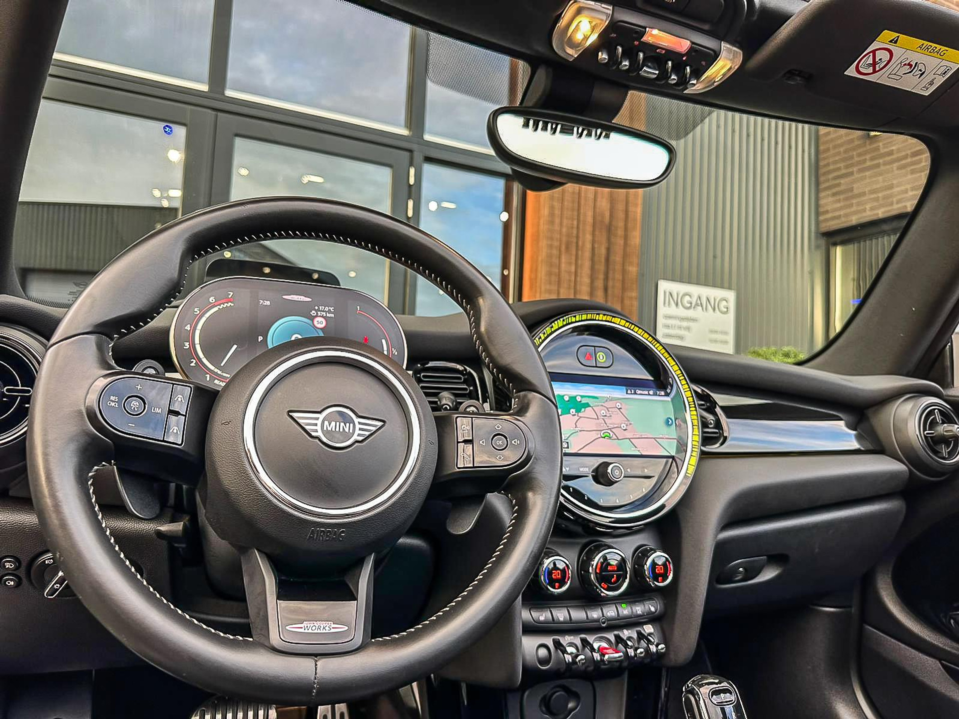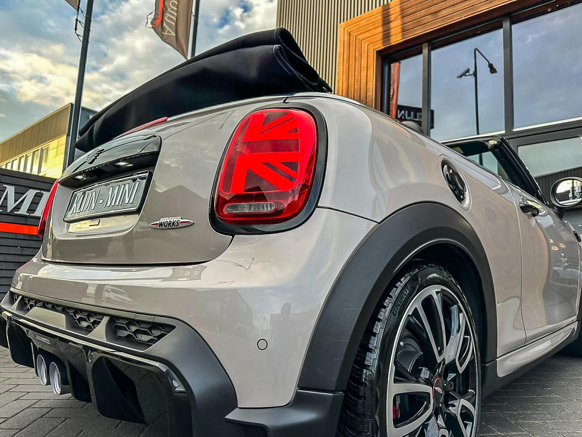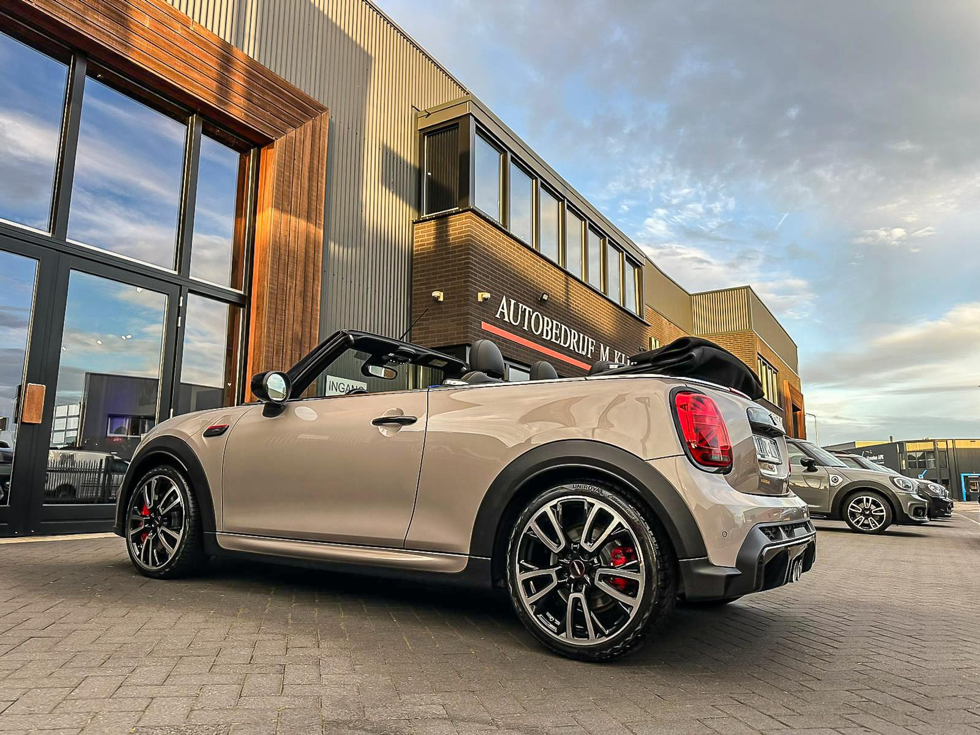 Schitterende en unieke Mini John Cooper Works Blackline cabriolet F1 sportautomaat met een 231pk motor uitgevoerd in de prachtige kleur Rooftopgrey metallic.Deze schitterende Mini is uitgerust met vele opties:Climate control,vollederen interieur carbon black,stoelverwarming,virtual cockpit,breedbeeld navigatie,Mini connected XL,achteruitrijcamera,Head up display,dab tuner,tel,usb,performence control,apple carplay,Mini driving modus,adaptieve cruise control,elektrisch cabriokap,lederen Jcw sportstuur met flipperschakel,mf stuur,automatisch dimmende binnenspiegel,regensensor,verwarmde voorruit,facelift,blackline,voetgangersbeveiliging,dtc,elektrisch inklapbare spiegels, parkeersensoren,dab radio,voetgangersbeveiliging,union Jack achterlichten,led koplampen met uitgebreide functies,18 inch JCW circuit spoke velgen,lichtpakket met Mini logo's,gezichtspakket,chili 2 pakket,63.000km origineel,btw auto,nieuwprijs 62.000euro.Prachtig uitgevoerde Mini Jcw in concoursstaat voor de echte liefhebber.