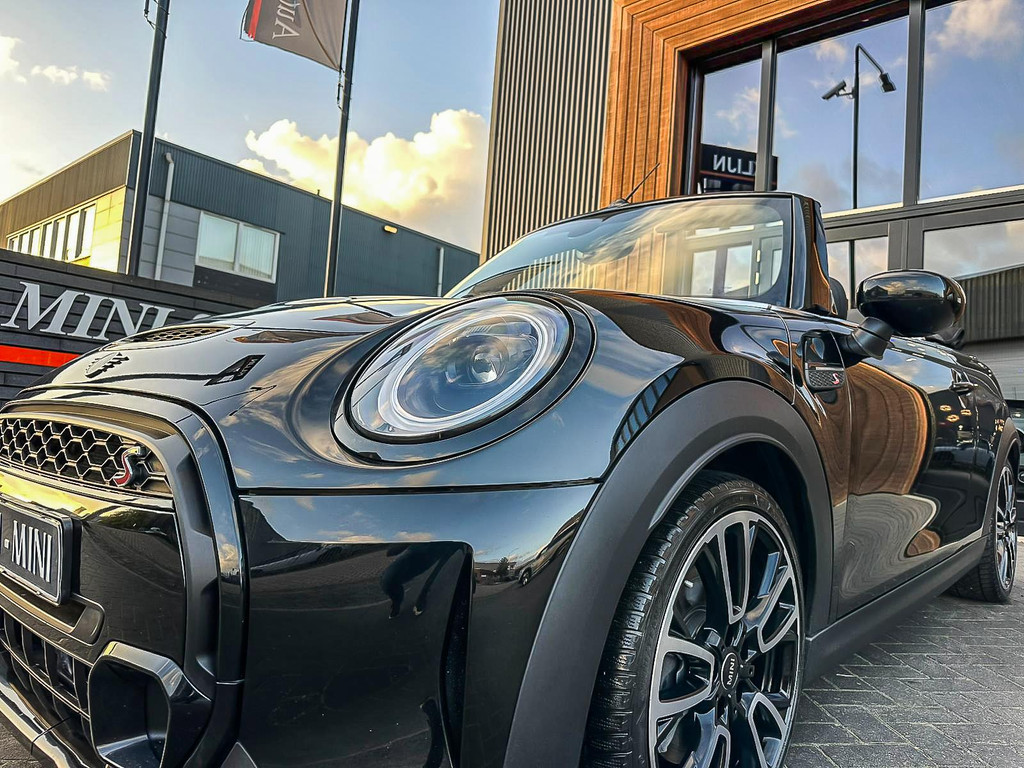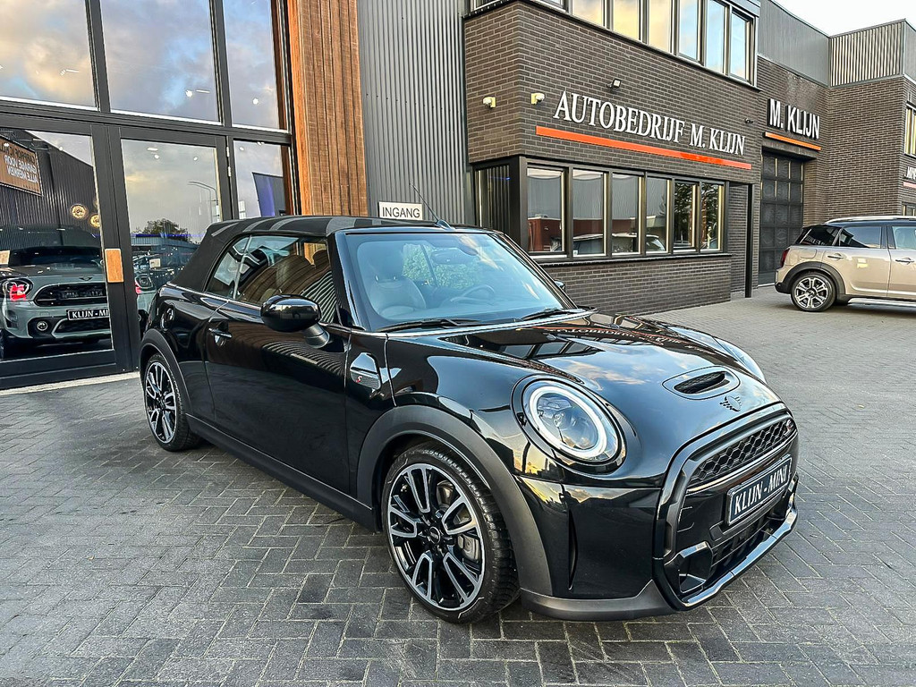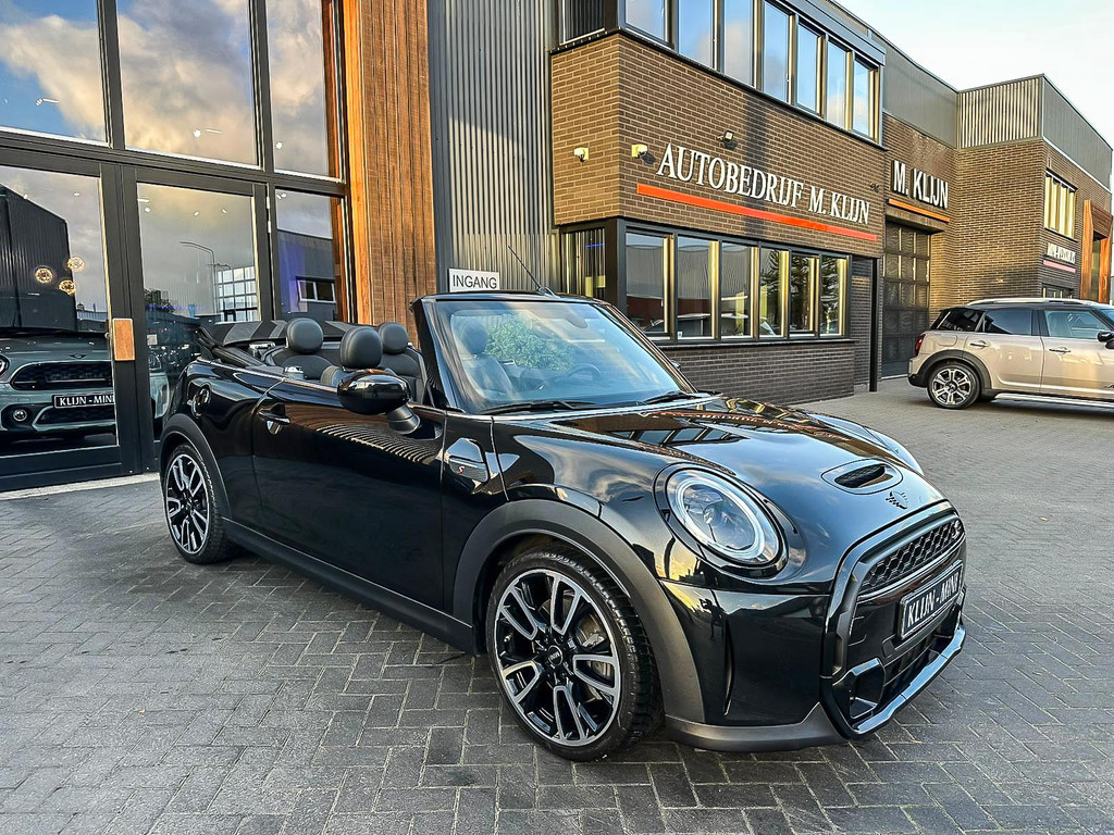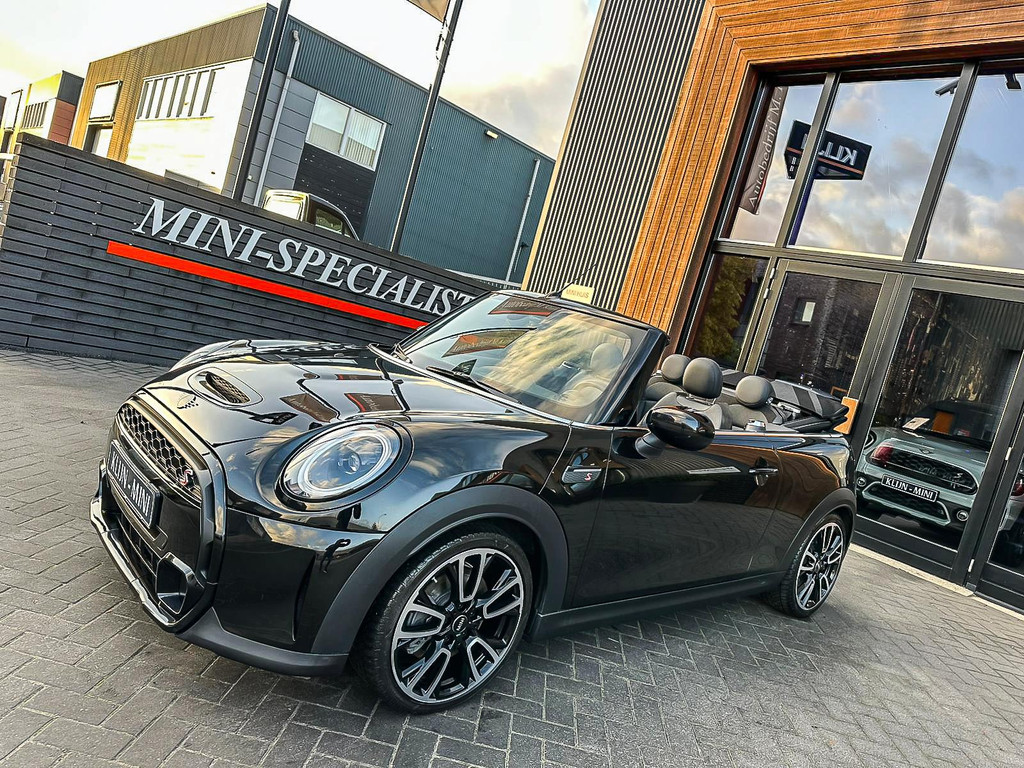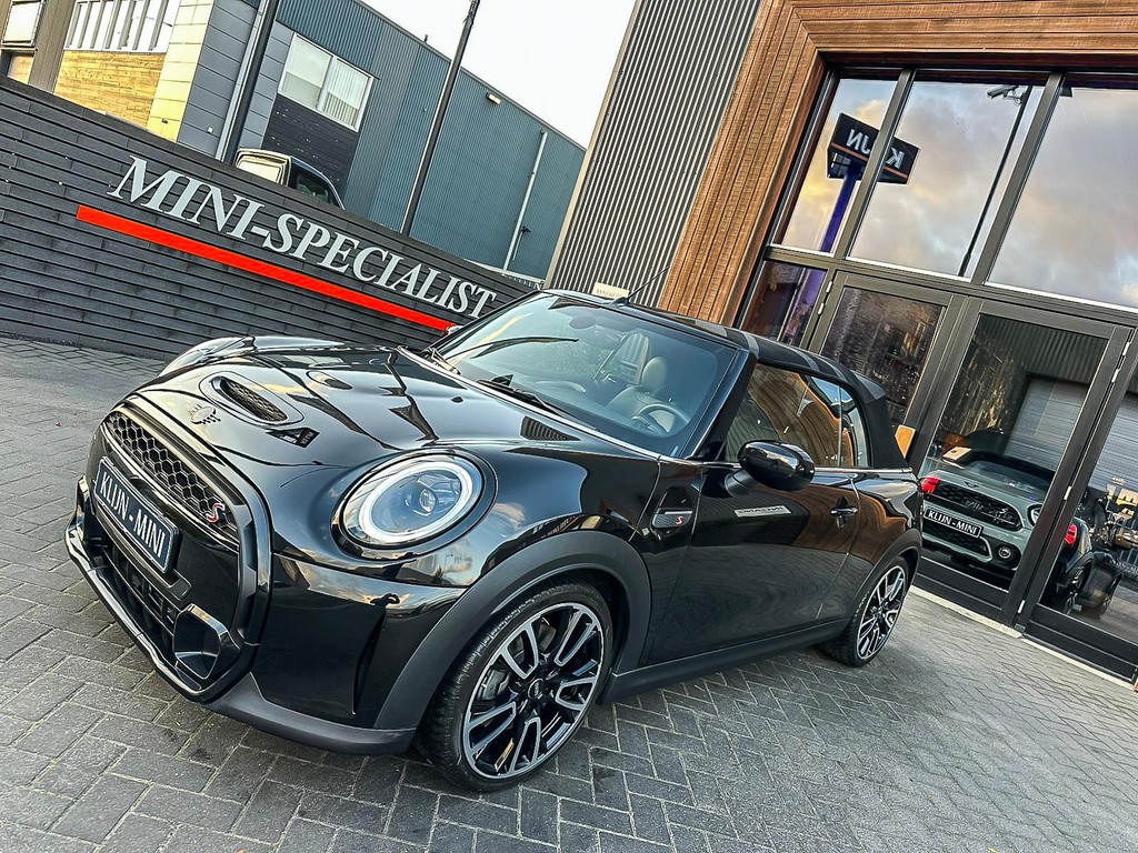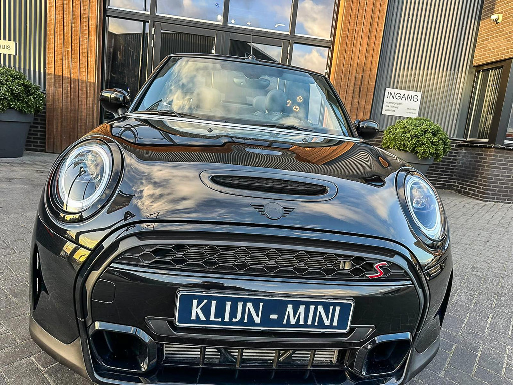 Unieke Mini Cooper S cabrio Blackline manual met een 178pk motor in de prachtige kleur Midnightblack metallic en uitgevoerd met een Union Jack cabriokap.Deze schitterende Mini is uitgerust met alle denkbare opties:Climate control,vollederen interieur carbon Black,sportstoelen,stoelverwarming,breedbeeld visual boost scherm,Mini connected XL,dab tuner,tel,usb,performence control,apple carplay,Mini driving modus,elektrische cabriokap Union Jack,lederen sportstuur,mf stuur,automatisch dimmende binnenspiegel, regensensor,voetgangersbeveiliging,elektrisch inklapbare spiegels, parkeersensoren,blackline,union Jack achterlichten,led koplampen met uitgebreide functies,18" Jcw circuit spoke velgen,lichtpakket met Mini logo's,actieve cruise control,gezichtspakket,btw auto,chili 2 pakket,54.000km origineel,12 maanden garantie,nieuwprijs 49.000.-.Prachtig uitgevoerde Mini Cooper S in concoursstaat voor de echte liefhebber.