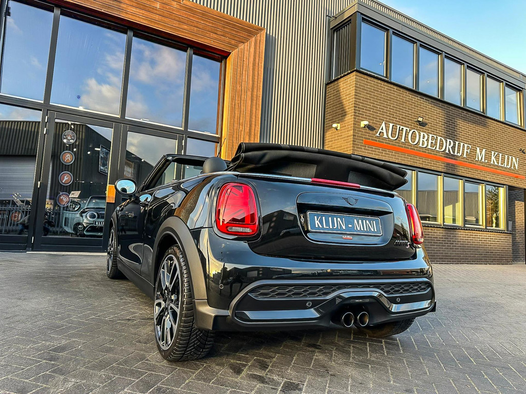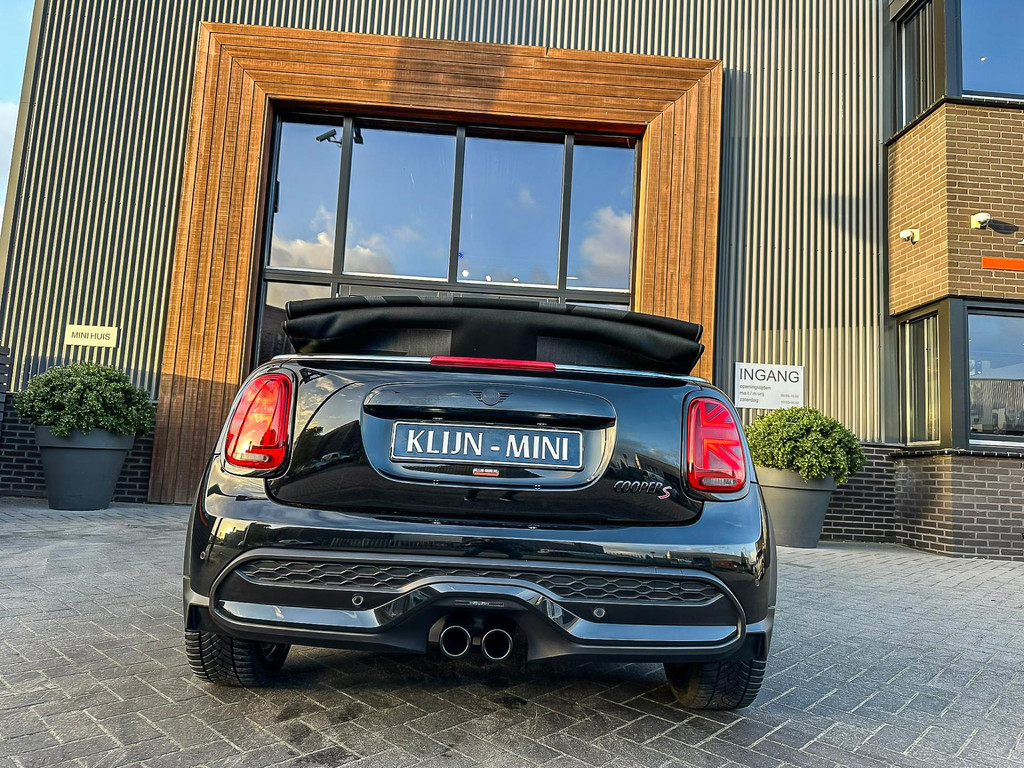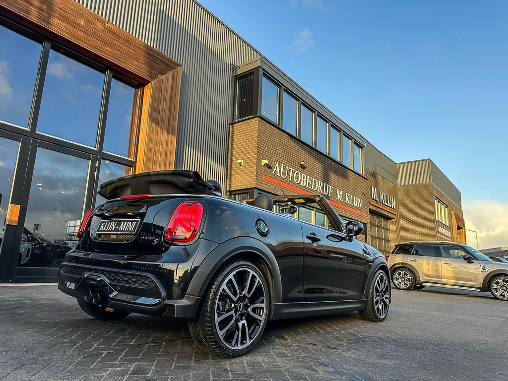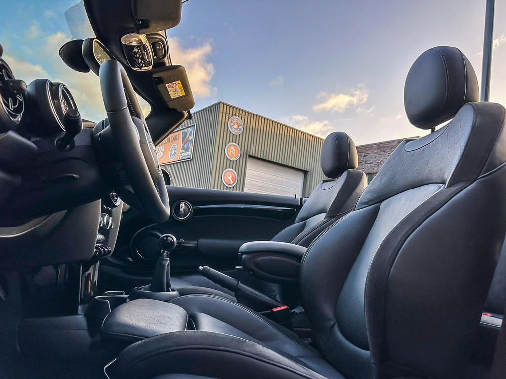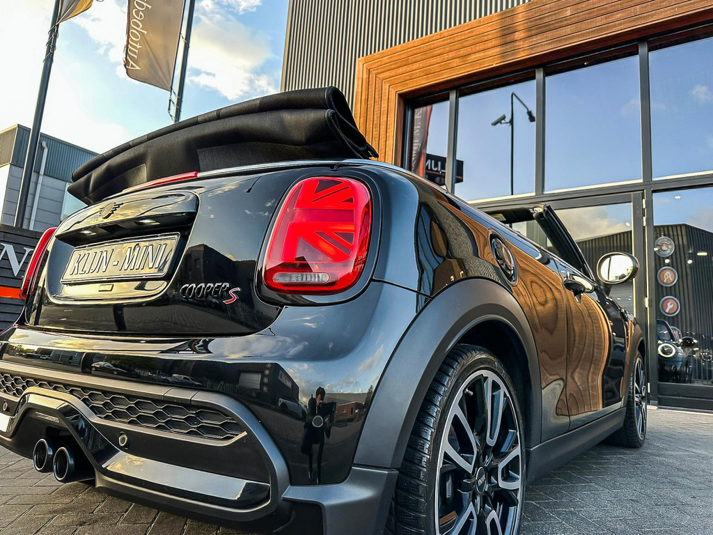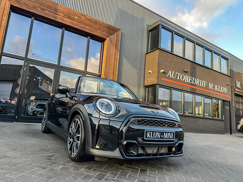 Unieke Mini Cooper S cabrio Blackline manual met een 178pk motor in de prachtige kleur Midnightblack metallic en uitgevoerd met een Union Jack cabriokap.Deze schitterende Mini is uitgerust met alle denkbare opties:Climate control,vollederen interieur carbon Black,sportstoelen,stoelverwarming,breedbeeld visual boost scherm,Mini connected XL,dab tuner,tel,usb,performence control,apple carplay,Mini driving modus,elektrische cabriokap Union Jack,lederen sportstuur,mf stuur,automatisch dimmende binnenspiegel, regensensor,voetgangersbeveiliging,elektrisch inklapbare spiegels, parkeersensoren,blackline,union Jack achterlichten,led koplampen met uitgebreide functies,18" Jcw circuit spoke velgen,lichtpakket met Mini logo's,actieve cruise control,gezichtspakket,btw auto,chili 2 pakket,54.000km origineel,12 maanden garantie,nieuwprijs 49.000.-.Prachtig uitgevoerde Mini Cooper S in concoursstaat voor de echte liefhebber.