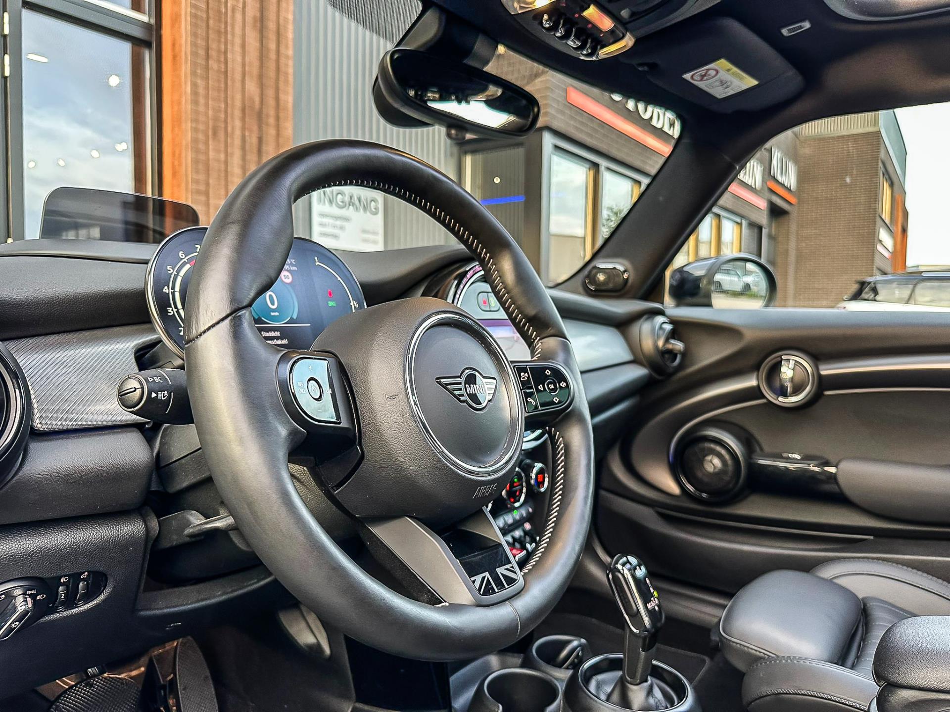 Unieke Mini Cooper S 2.0 Yours edition F1 sportautomaat F1 automaat uitgevoerd in de prachtig kleur Enigmatic black. Deze in nieuwstaat verkerende Mini is dealer onderhouden en uitgerust met alle maar dan ook alle denkbare opties oa:Climate control,vollederen interieur Yours lounge black,sportstoelen,stoelverwarming,verwarmd stuurwiel,breedbeeld navigatie,Mini connected XL,virtual cockpit,Harman Kardon soundsystem,Head up display,achteruitrijcamera,elektrische ramen+spiegels,elektrisch bedienbare glazen panoramadak,alarm,sportbutton,regensensor,verwarmde voorruit,18" Yours Masterpiece velgen zwart,exclusieve Yours edition,lederen Yours sportstuur met F1 flippers,mf stuur,privacyglass,58.000km origineel.Prachtige Mini in topstaat voor de echte liefhebber