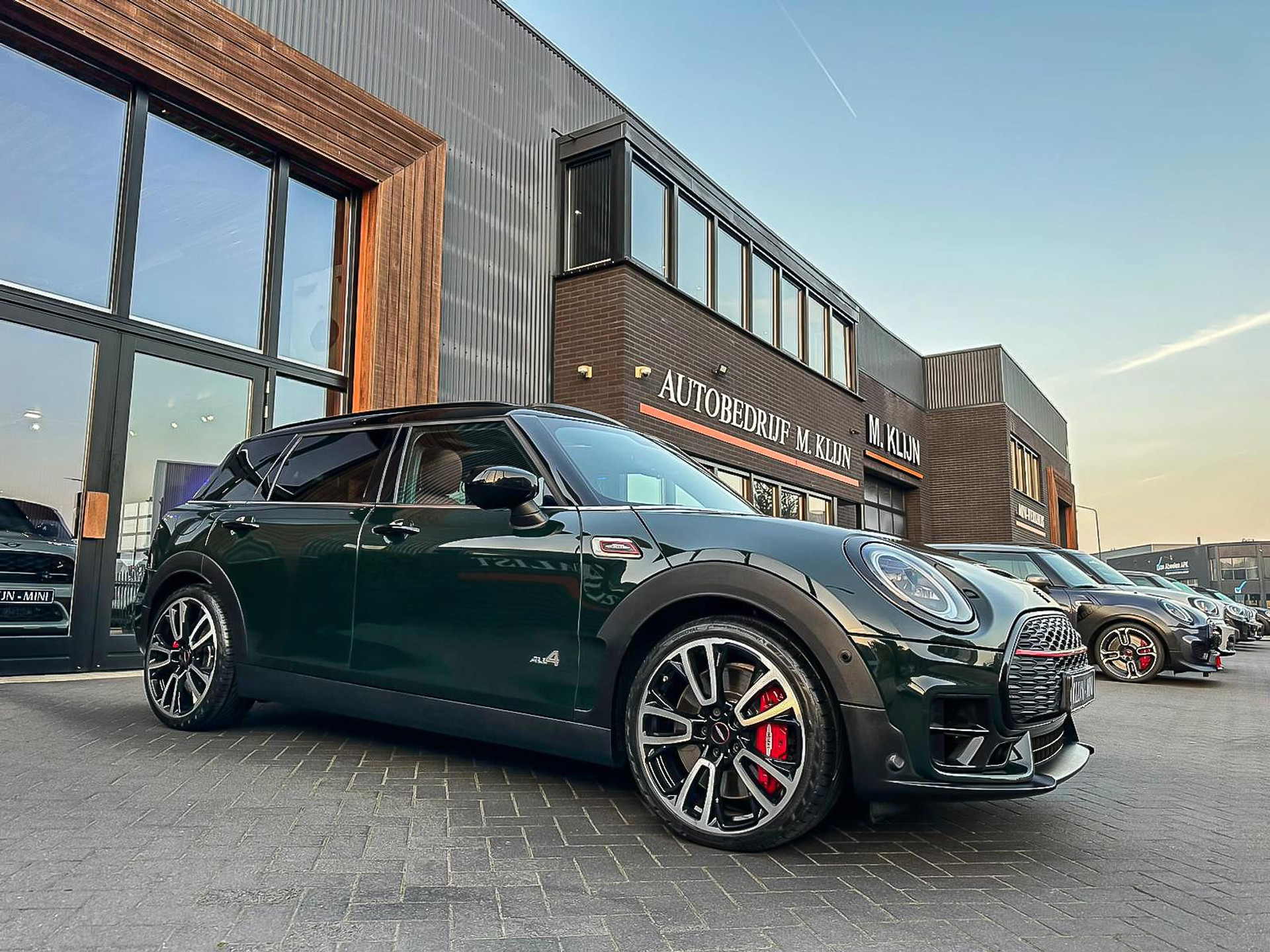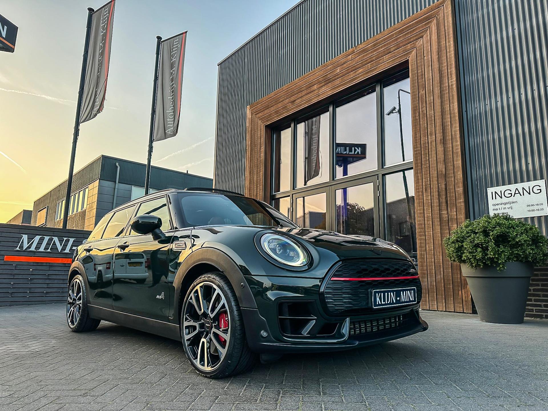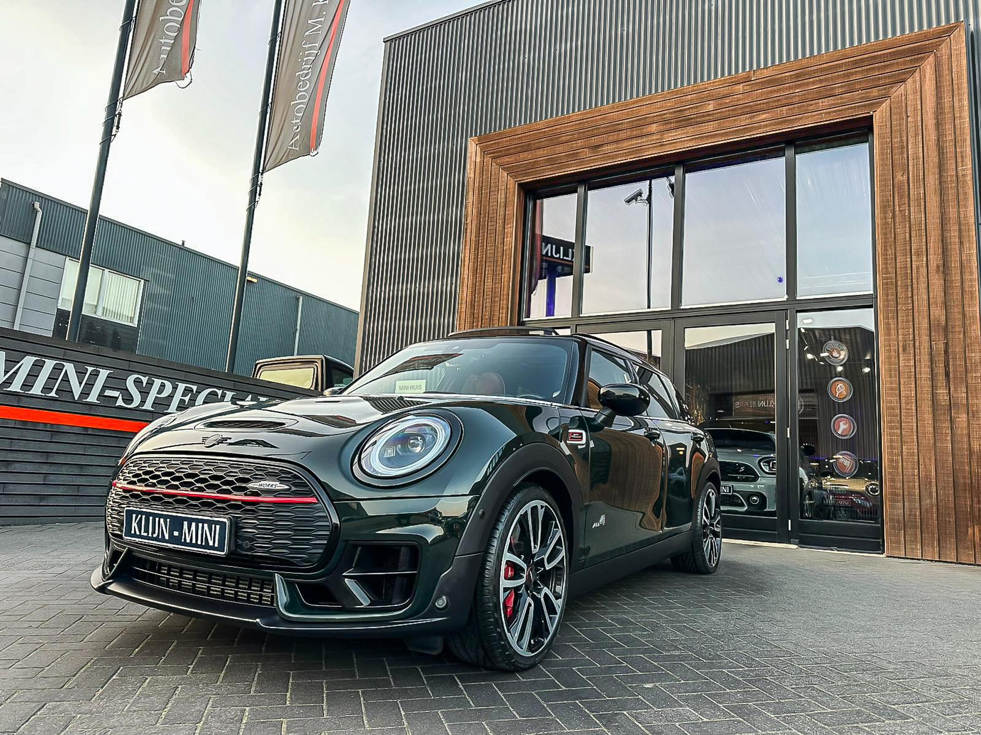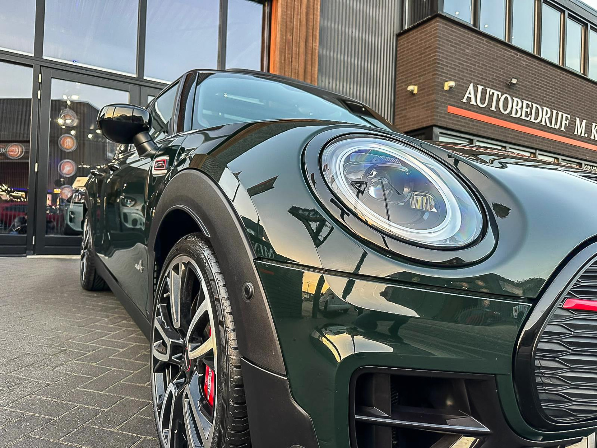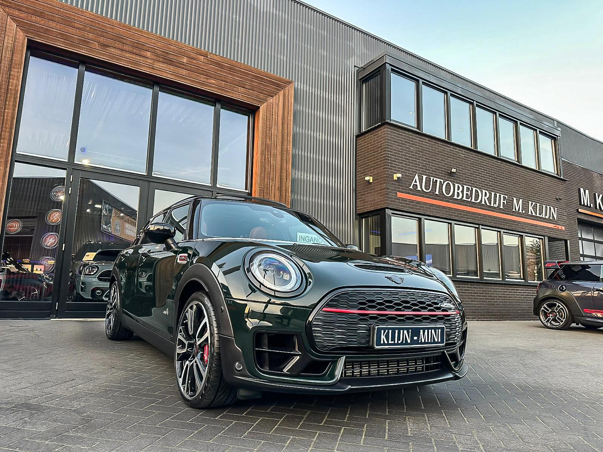 Zeer exclusieve facelift Mini Clubman John Cooper Works ALL4 F1 sportautomaat met een 306pk motor uitgevoerd in de prachtige kleurencombinatie van Rebelgreen en Chestermaltbrown lederen interieur.Deze in werkelijk nieuwstaat verkerende Mini is uitgerust met alle maar dan ook alle denkbare opties oa:Climate control,vollederen interieur Chestermalt brown,sportstoelen, stoelverwarming,verwarmd stuurwiel,virtual cockpit,breedbeeld dvd navigatie XL,Mini Connected XL,Harman Kardon soundsystem,adaptieve cruise control,keyless go,achteruitrijcamera,19” Jcw spoke velgen,head up display,sportpakket,vierwielaandrijving,led verlichting,elektrisch bedienbare glazen panoramadak,5 persoons,privacyglass,lederen Jcw sportstuur met F1 flipperschakel,lichtpakket met Mini logo's,welcome pakket,parkeersensoren voor en achter,parkassist(auto parkeert zelf in),F1 schakel op stuur,actieve voetgangersbeveiliging,dakrailing zwart,lc scherm,virtual cockpit,Mini driving modus,donker dakhemel,dakrailing zwart,mf stuur,Apple Carplay,dab radio,boordcomputer,blackline,regensensor,verwarmde voorruit,Union Jack achterlichten,vierwielaandrijving,armsteun,chili 2 pakket,alle boekjes+originele sleutels,1e eigenaar,48.000km origineel,nieuwprijs 72.500,-.Schitterende en unieke Mini Clubman Works in concoursstaat voor de echte liefhebber