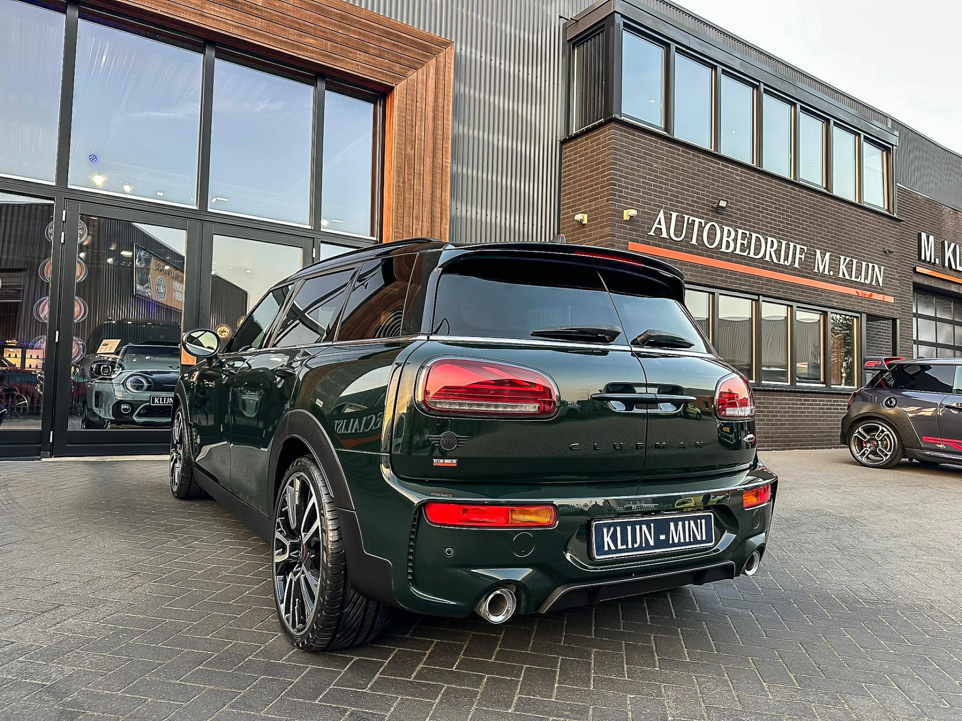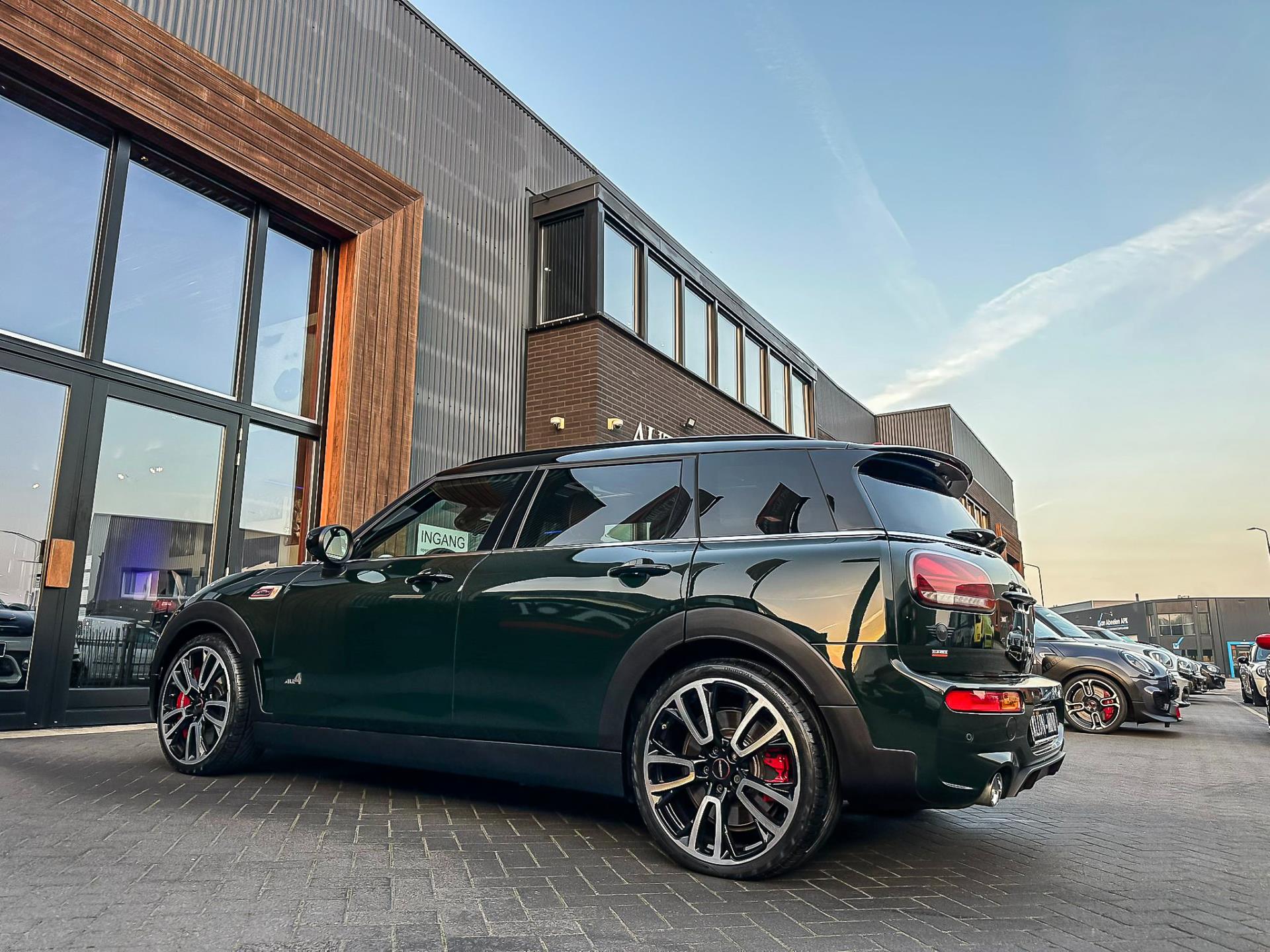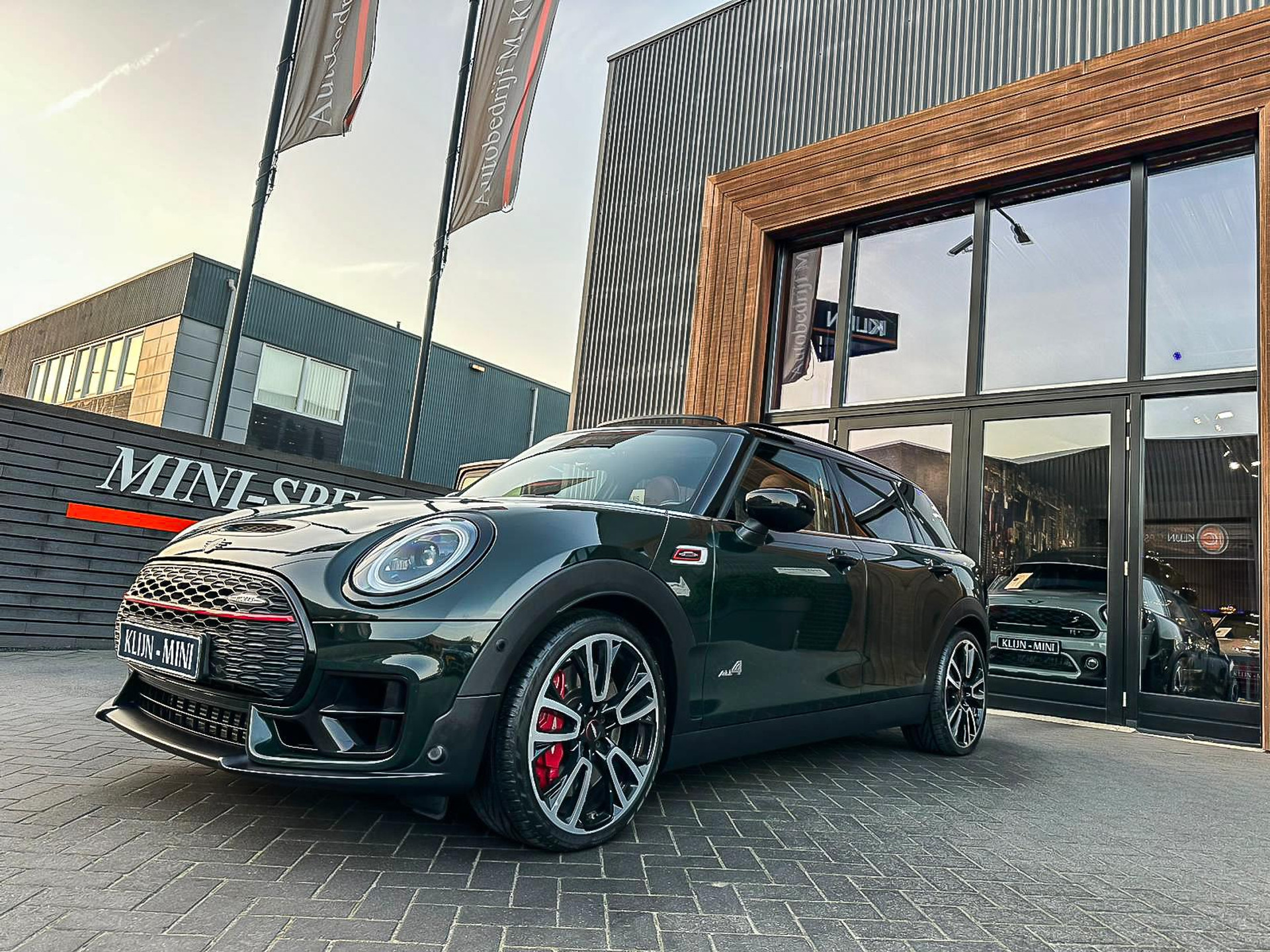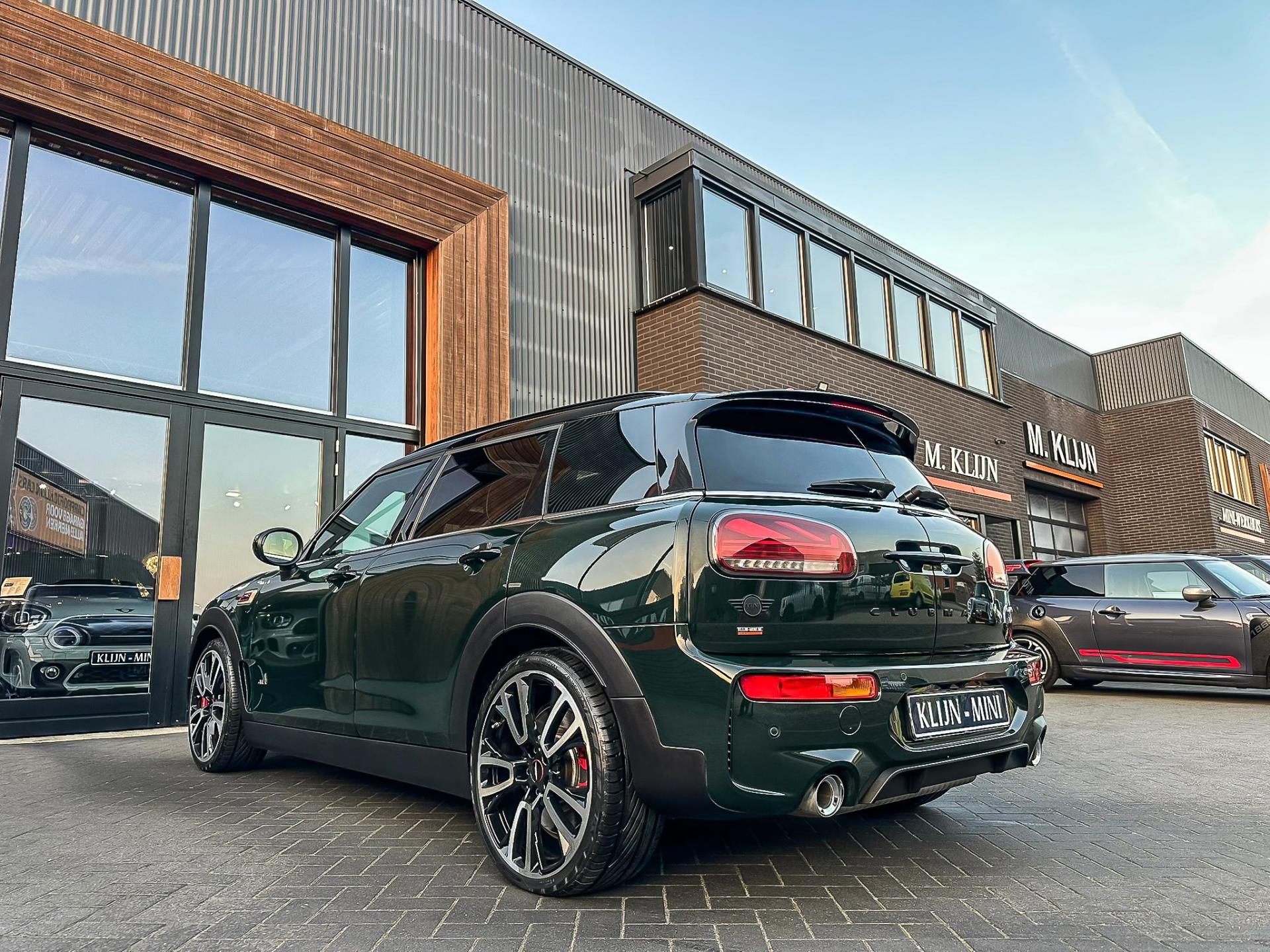 Zeer exclusieve facelift Mini Clubman John Cooper Works ALL4 F1 sportautomaat met een 306pk motor uitgevoerd in de prachtige kleurencombinatie van Rebelgreen en Chestermaltbrown lederen interieur.Deze in werkelijk nieuwstaat verkerende Mini is uitgerust met alle maar dan ook alle denkbare opties oa:Climate control,vollederen interieur Chestermalt brown,sportstoelen, stoelverwarming,verwarmd stuurwiel,virtual cockpit,breedbeeld dvd navigatie XL,Mini Connected XL,Harman Kardon soundsystem,adaptieve cruise control,keyless go,achteruitrijcamera,19” Jcw spoke velgen,head up display,sportpakket,vierwielaandrijving,led verlichting,elektrisch bedienbare glazen panoramadak,5 persoons,privacyglass,lederen Jcw sportstuur met F1 flipperschakel,lichtpakket met Mini logo's,welcome pakket,parkeersensoren voor en achter,parkassist(auto parkeert zelf in),F1 schakel op stuur,actieve voetgangersbeveiliging,dakrailing zwart,lc scherm,virtual cockpit,Mini driving modus,donker dakhemel,dakrailing zwart,mf stuur,Apple Carplay,dab radio,boordcomputer,blackline,regensensor,verwarmde voorruit,Union Jack achterlichten,vierwielaandrijving,armsteun,chili 2 pakket,alle boekjes+originele sleutels,1e eigenaar,48.000km origineel,nieuwprijs 72.500,-.Schitterende en unieke Mini Clubman Works in concoursstaat voor de echte liefhebber
