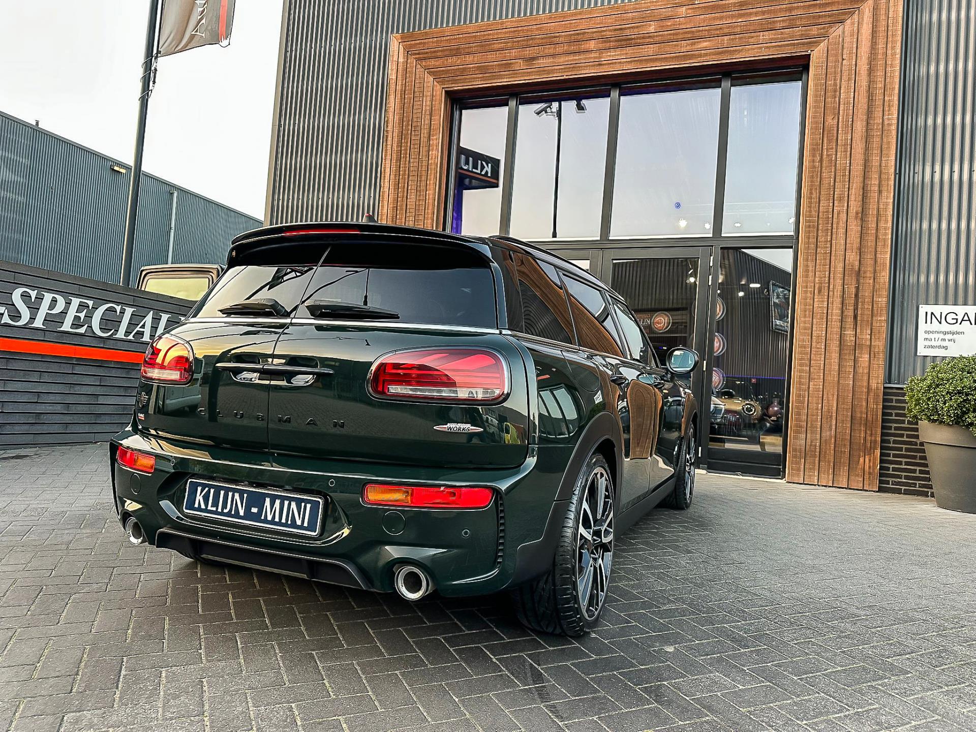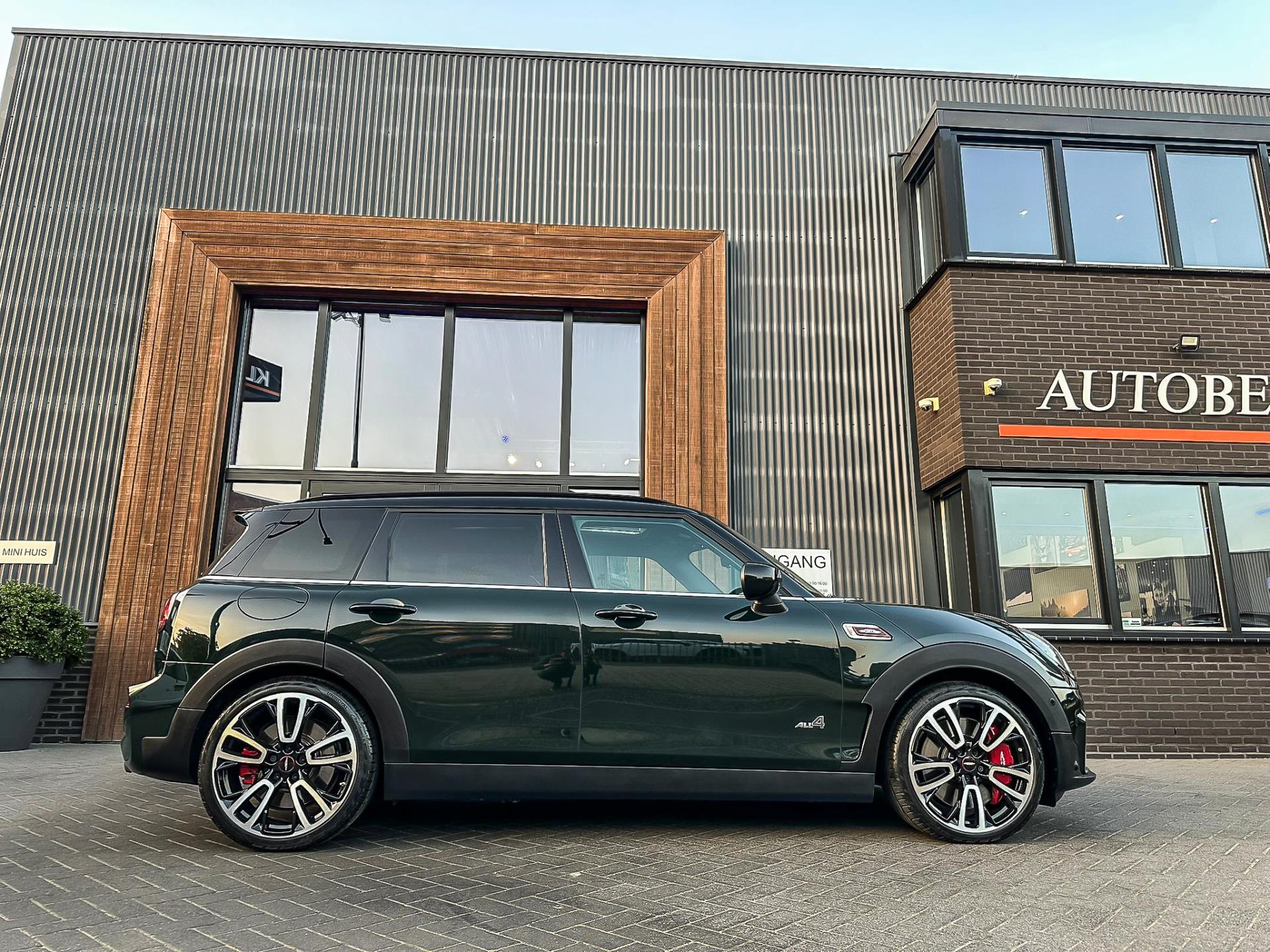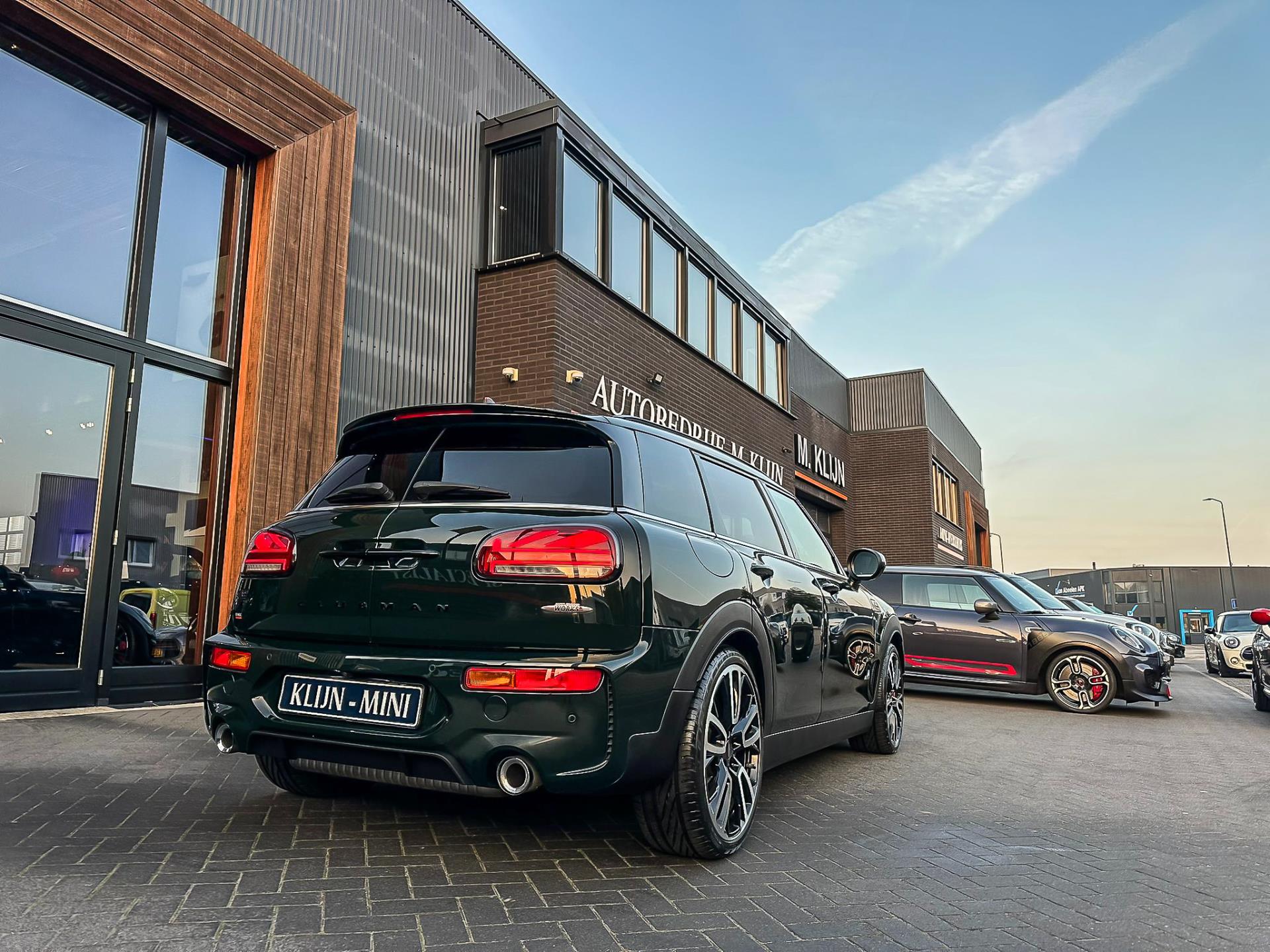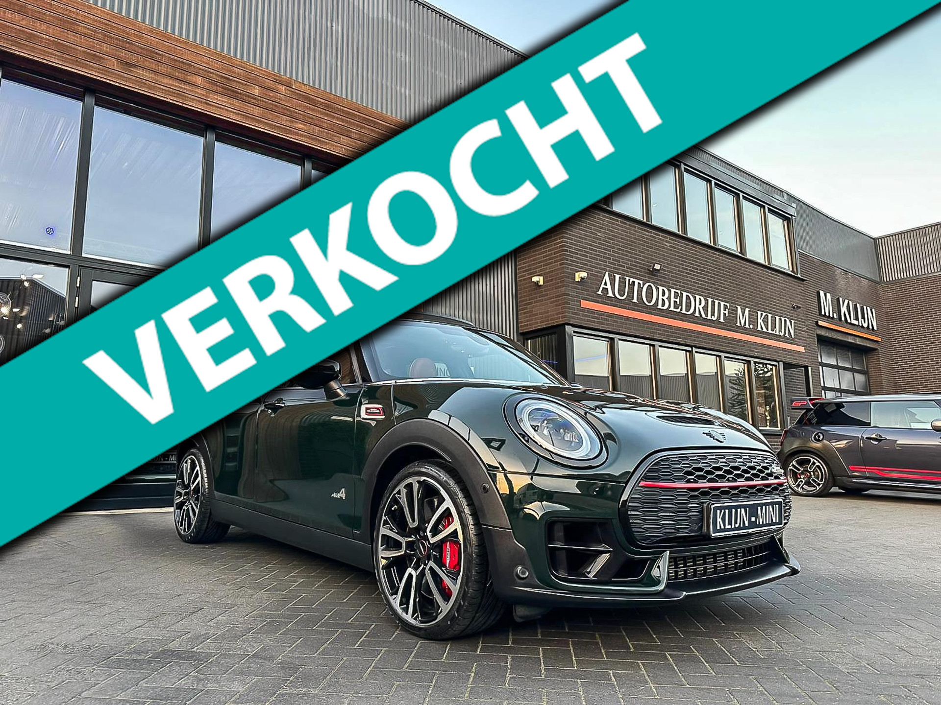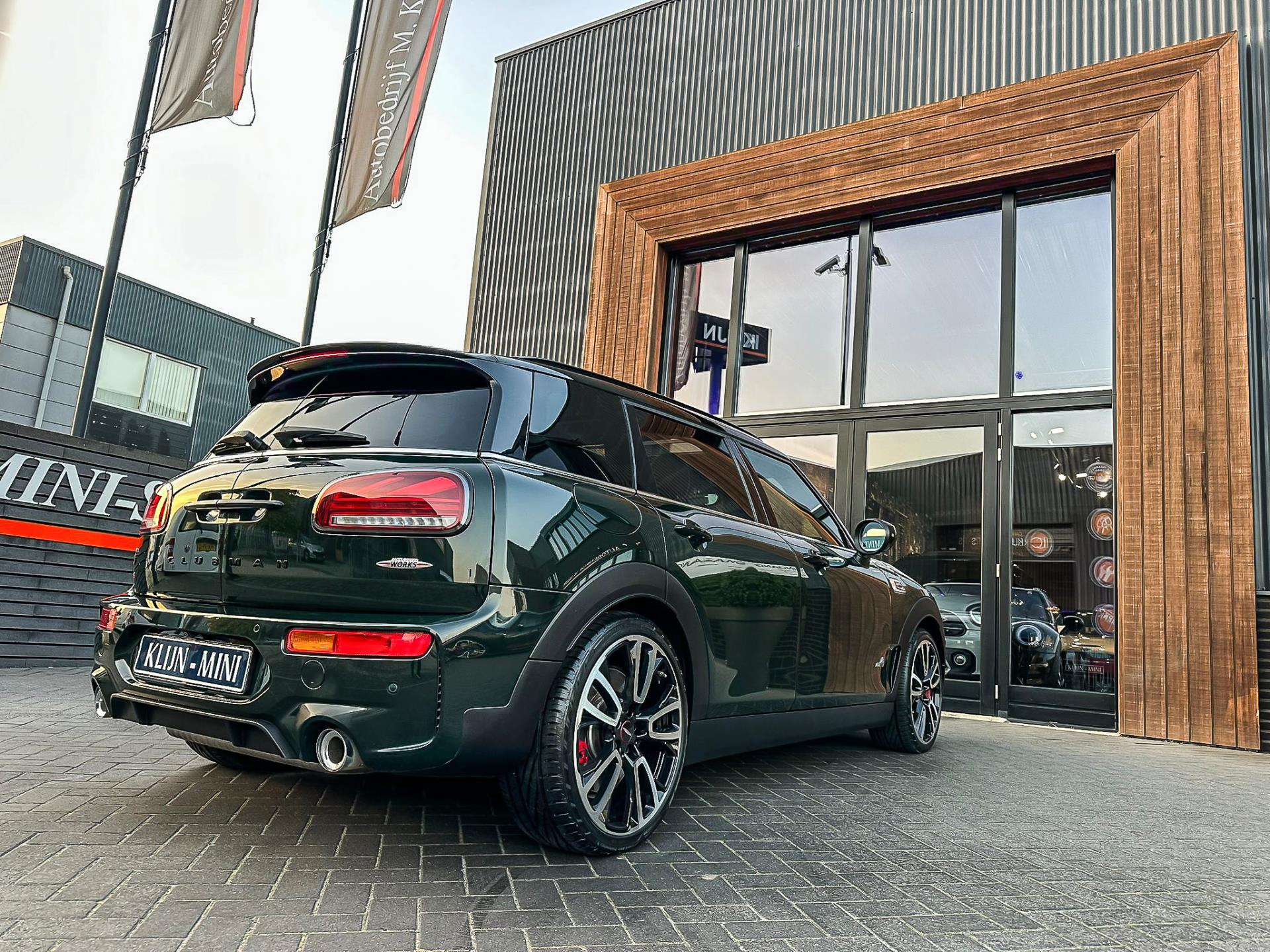 Zeer exclusieve facelift Mini Clubman John Cooper Works ALL4 F1 sportautomaat met een 306pk motor uitgevoerd in de prachtige kleurencombinatie van Rebelgreen en Chestermaltbrown lederen interieur.Deze in werkelijk nieuwstaat verkerende Mini is uitgerust met alle maar dan ook alle denkbare opties oa:Climate control,vollederen interieur Chestermalt brown,sportstoelen, stoelverwarming,verwarmd stuurwiel,virtual cockpit,breedbeeld dvd navigatie XL,Mini Connected XL,Harman Kardon soundsystem,adaptieve cruise control,keyless go,achteruitrijcamera,19” Jcw spoke velgen,head up display,sportpakket,vierwielaandrijving,led verlichting,elektrisch bedienbare glazen panoramadak,5 persoons,privacyglass,lederen Jcw sportstuur met F1 flipperschakel,lichtpakket met Mini logo's,welcome pakket,parkeersensoren voor en achter,parkassist(auto parkeert zelf in),F1 schakel op stuur,actieve voetgangersbeveiliging,dakrailing zwart,lc scherm,virtual cockpit,Mini driving modus,donker dakhemel,dakrailing zwart,mf stuur,Apple Carplay,dab radio,boordcomputer,blackline,regensensor,verwarmde voorruit,Union Jack achterlichten,vierwielaandrijving,armsteun,chili 2 pakket,alle boekjes+originele sleutels,1e eigenaar,48.000km origineel,nieuwprijs 72.500,-.Schitterende en unieke Mini Clubman Works in concoursstaat voor de echte liefhebber