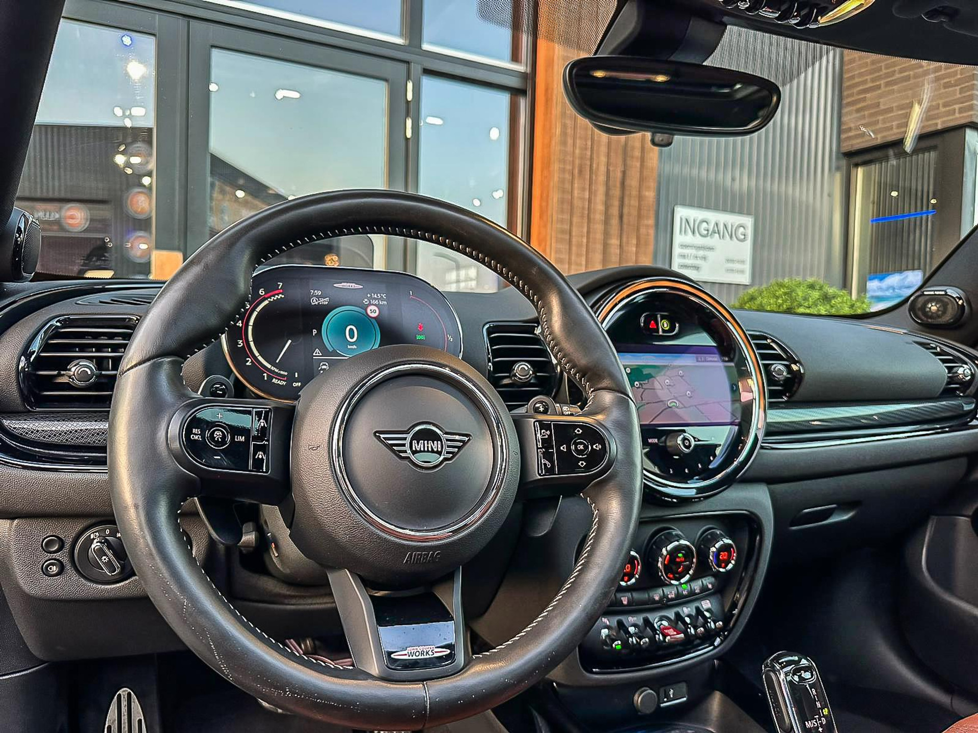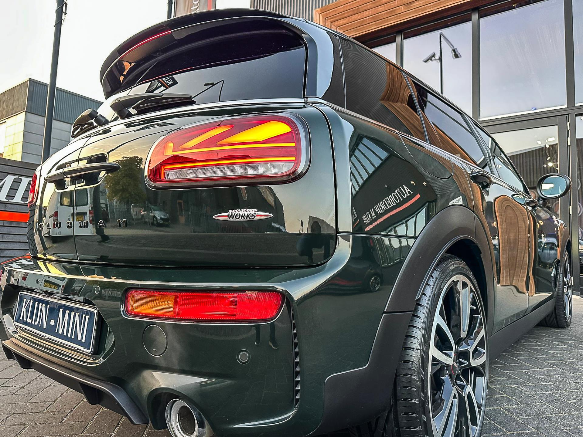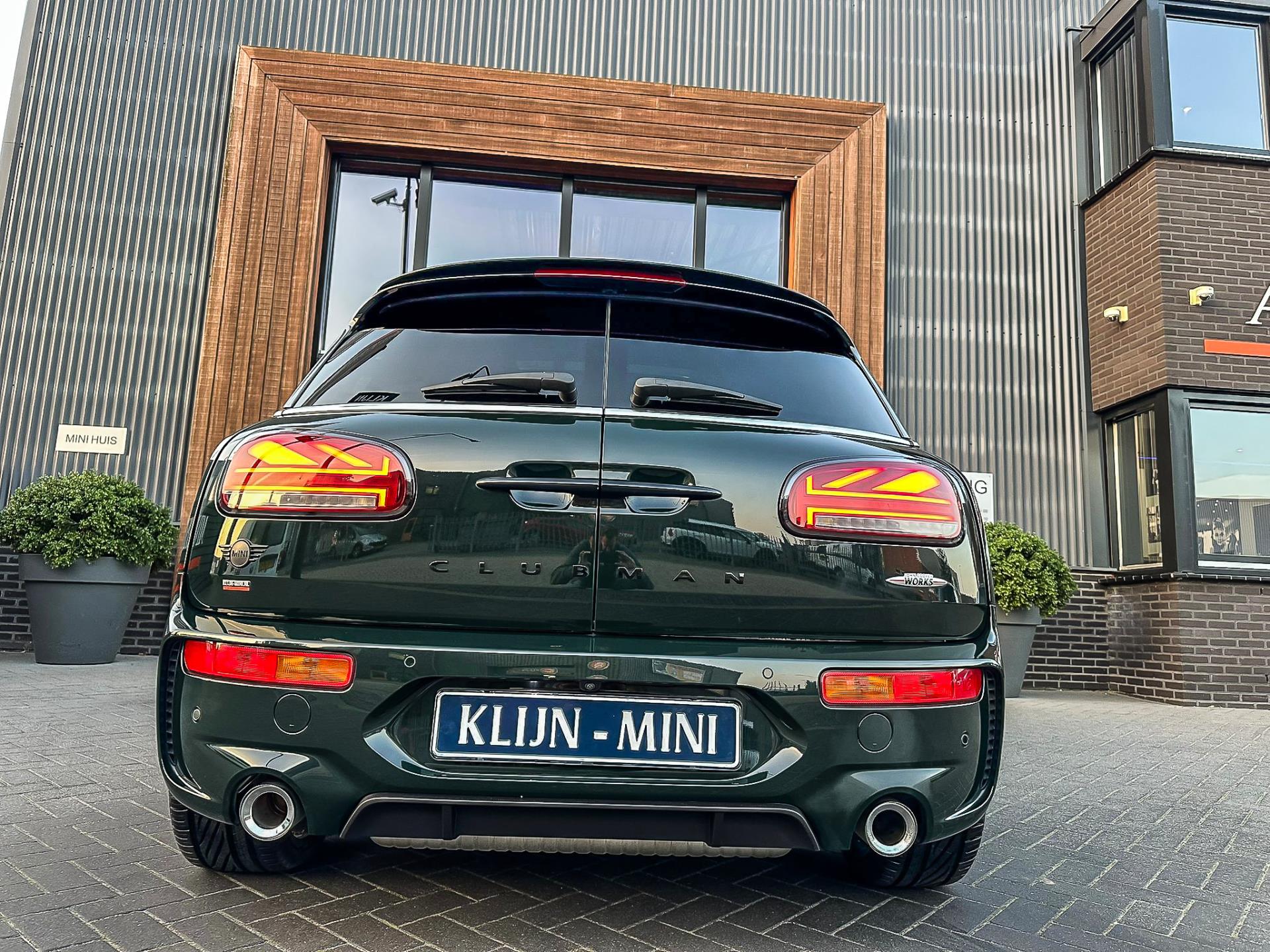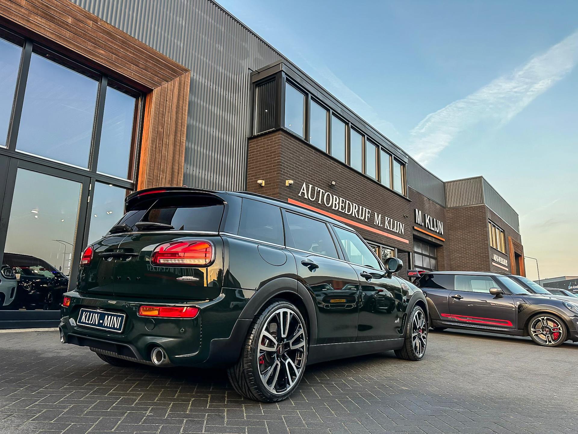 Zeer exclusieve facelift Mini Clubman John Cooper Works ALL4 F1 sportautomaat met een 306pk motor uitgevoerd in de prachtige kleurencombinatie van Rebelgreen en Chestermaltbrown lederen interieur.Deze in werkelijk nieuwstaat verkerende Mini is uitgerust met alle maar dan ook alle denkbare opties oa:Climate control,vollederen interieur Chestermalt brown,sportstoelen, stoelverwarming,verwarmd stuurwiel,virtual cockpit,breedbeeld dvd navigatie XL,Mini Connected XL,Harman Kardon soundsystem,adaptieve cruise control,keyless go,achteruitrijcamera,19” Jcw spoke velgen,head up display,sportpakket,vierwielaandrijving,led verlichting,elektrisch bedienbare glazen panoramadak,5 persoons,privacyglass,lederen Jcw sportstuur met F1 flipperschakel,lichtpakket met Mini logo's,welcome pakket,parkeersensoren voor en achter,parkassist(auto parkeert zelf in),F1 schakel op stuur,actieve voetgangersbeveiliging,dakrailing zwart,lc scherm,virtual cockpit,Mini driving modus,donker dakhemel,dakrailing zwart,mf stuur,Apple Carplay,dab radio,boordcomputer,blackline,regensensor,verwarmde voorruit,Union Jack achterlichten,vierwielaandrijving,armsteun,chili 2 pakket,alle boekjes+originele sleutels,1e eigenaar,48.000km origineel,nieuwprijs 72.500,-.Schitterende en unieke Mini Clubman Works in concoursstaat voor de echte liefhebber