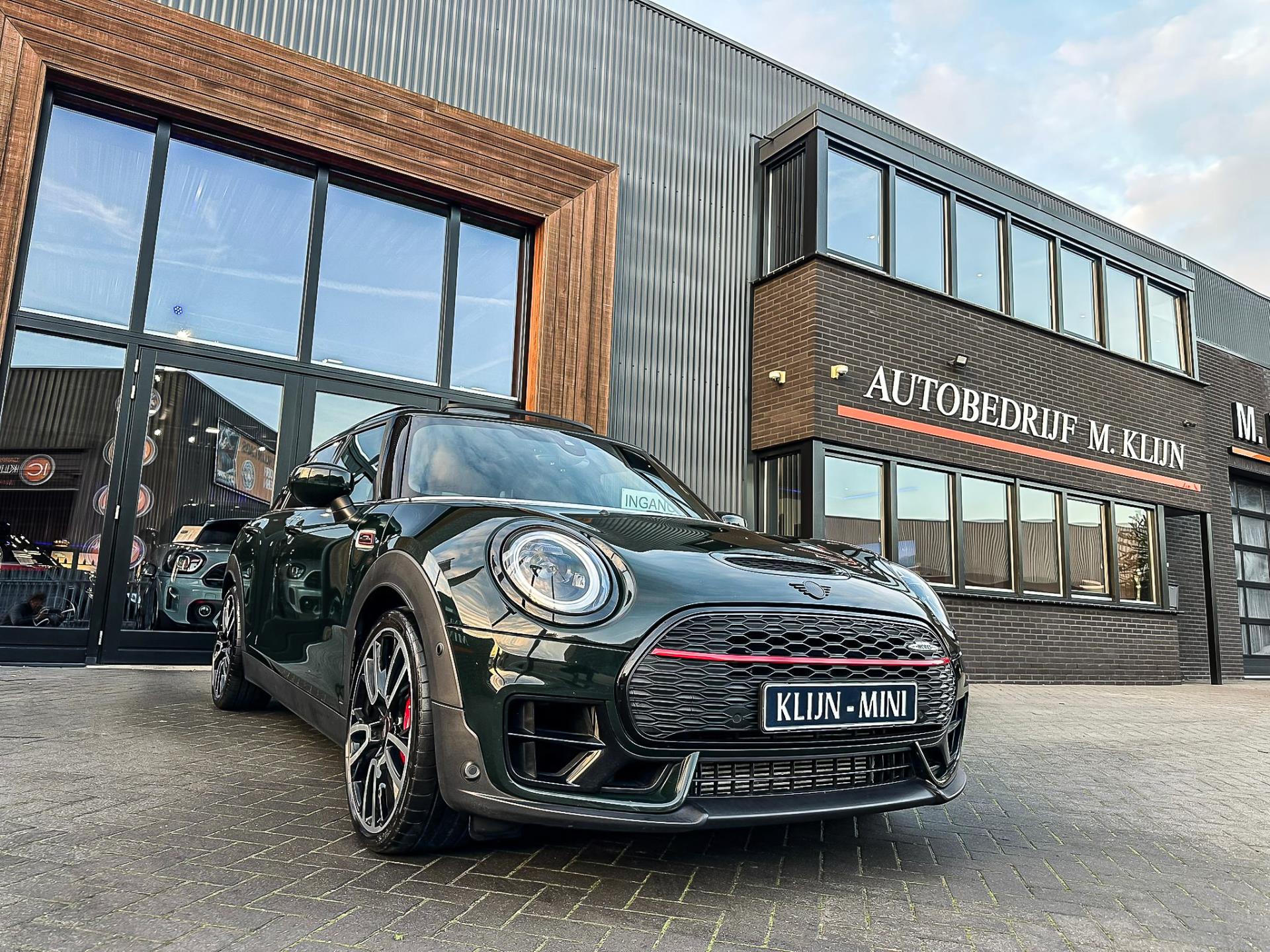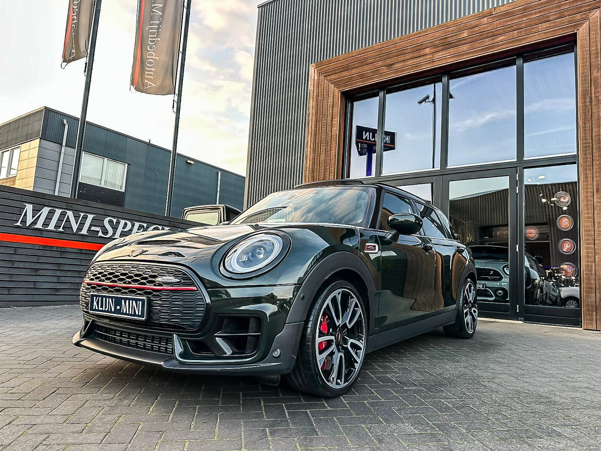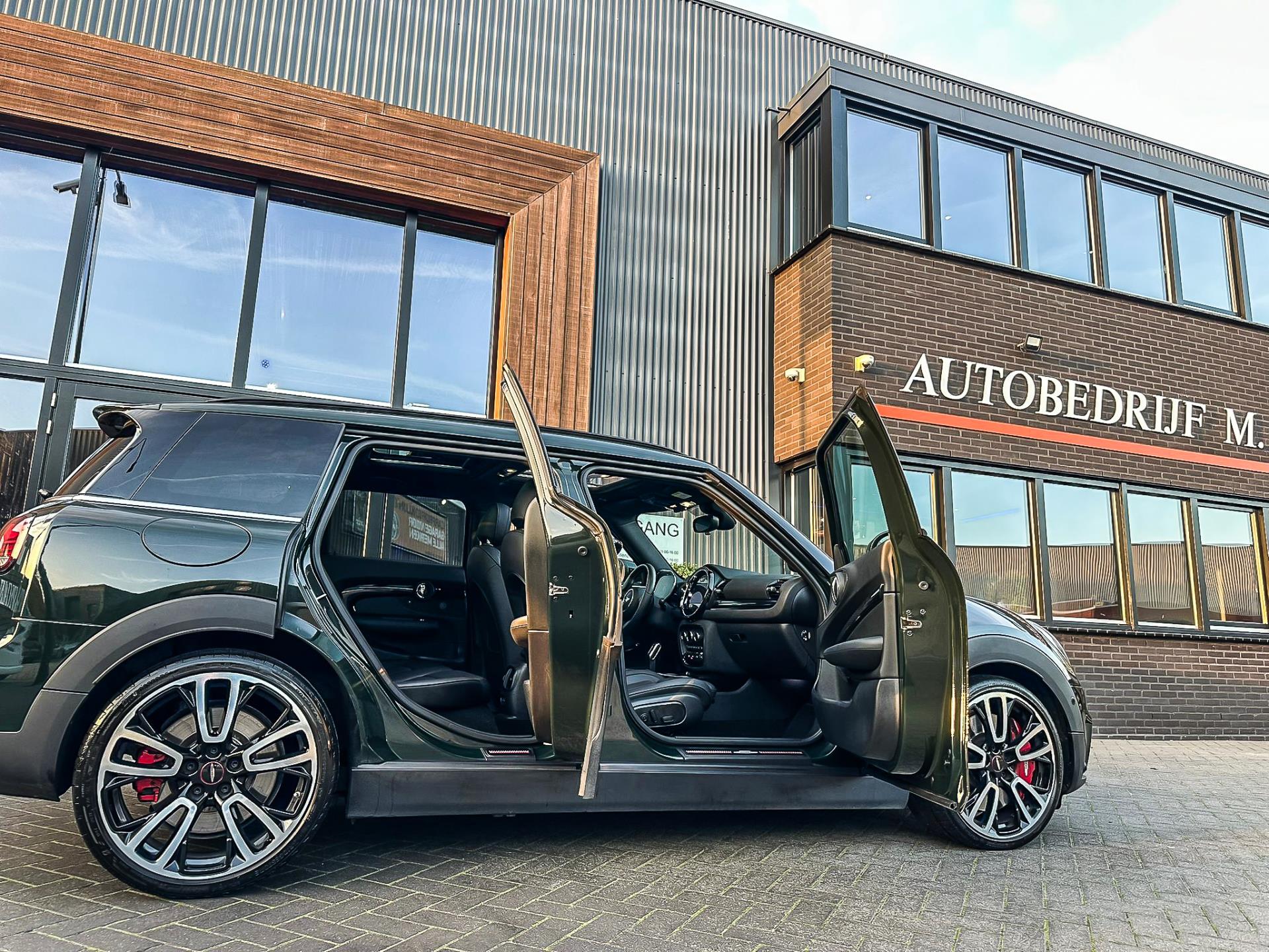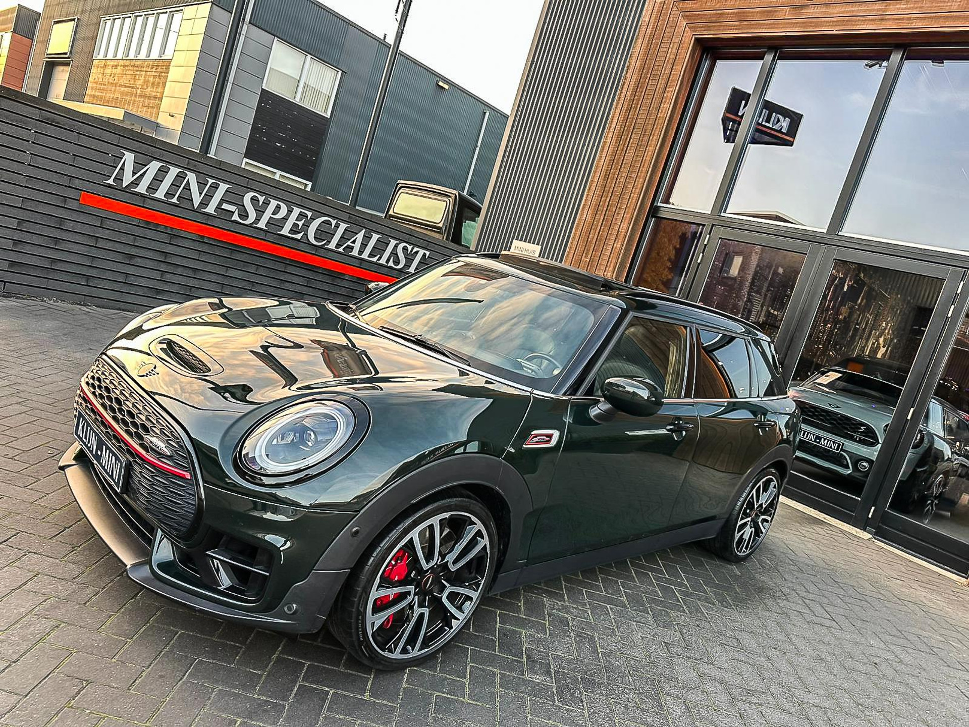 Zeer exclusieve facelift Mini Clubman John Cooper Works ALL4 F1 sportautomaat met een 306pk motor uitgevoerd in de prachtige kleur Rebelgreen.Deze in werkelijk nieuwstaat verkerende Mini is uitgerust met alle maar dan ook alle denkbare opties oa:Climate control,vollederen interieur Yours lounge black,sportstoelen, stoelverwarming,virtual cockpit,breedbeeld dvd navigatie XL,Mini Connected XL,Harman Kardon soundsystem,adaptieve cruise control,keyless go,achteruitrijcamera,19” Jcw spoke velgen,head up display,sportpakket,vierwielaandrijving,led verlichting,elektrisch bedienbare glazen panoramadak,5 persoons,privacyglass,lederen Jcw sportstuur met F1 flipperschakel,lichtpakket met Mini logo's,welcome pakket,parkeersensoren voor en achter,parkassist(auto parkeert zelf in),F1 schakel op stuur,actieve voetgangersbeveiliging,lc scherm,virtual cockpit,Mini driving modus,dakrailing zwart,alarm,donker dakhemel,dakrailing zwart,mf stuur,Apple Carplay,dab radio,boordcomputer,blackline,regensensor,verwarmde voorruit,Union Jack achterlichten,vierwielaandrijving,armsteun,chili 2 pakket,alle boekjes+originele sleutels,1e eigenaar,61.000km origineel,btw auto,nieuwprijs 72.650,-.Schitterende en unieke Mini Clubman Works in concoursstaat voor de echte liefhebber