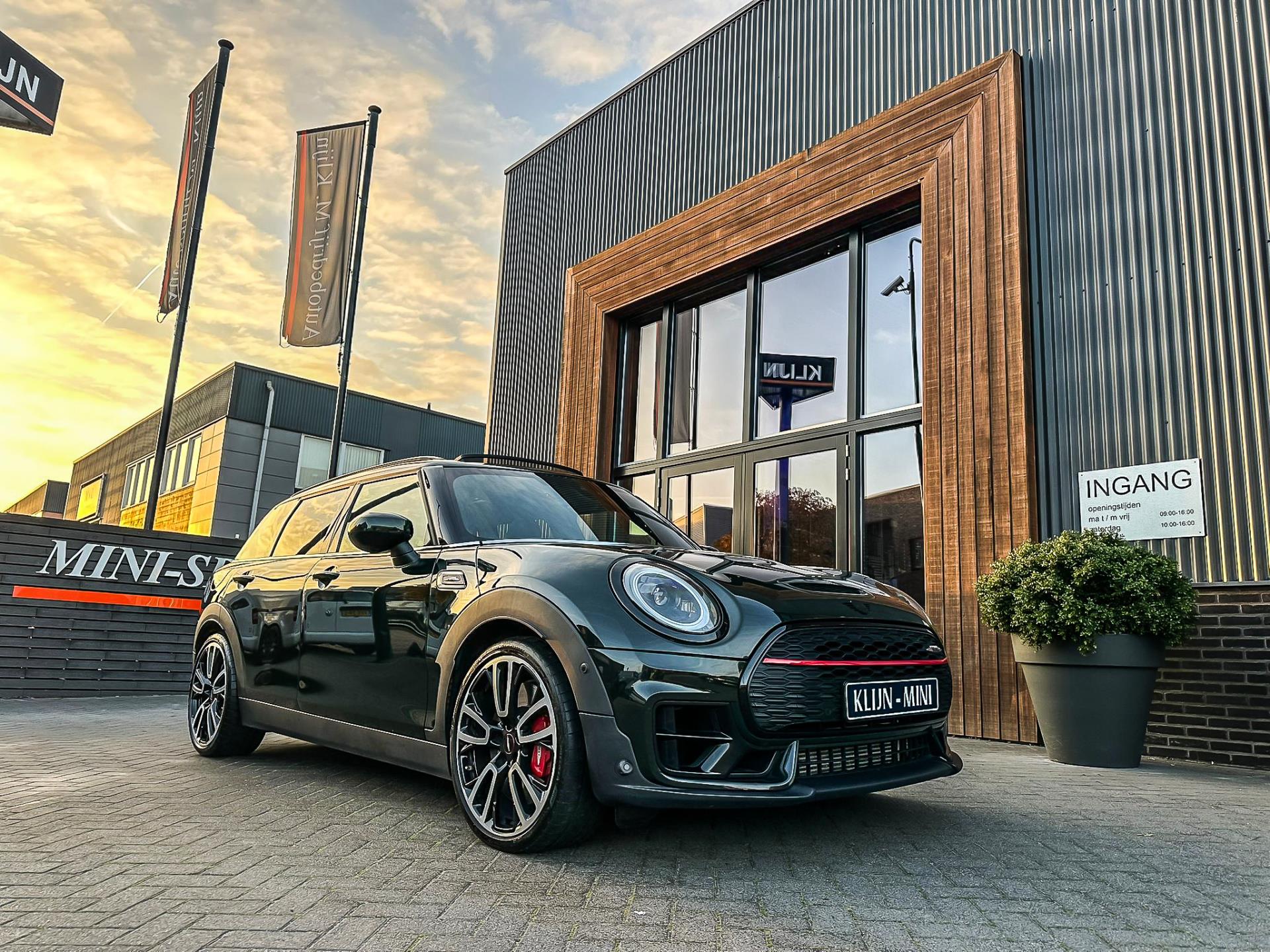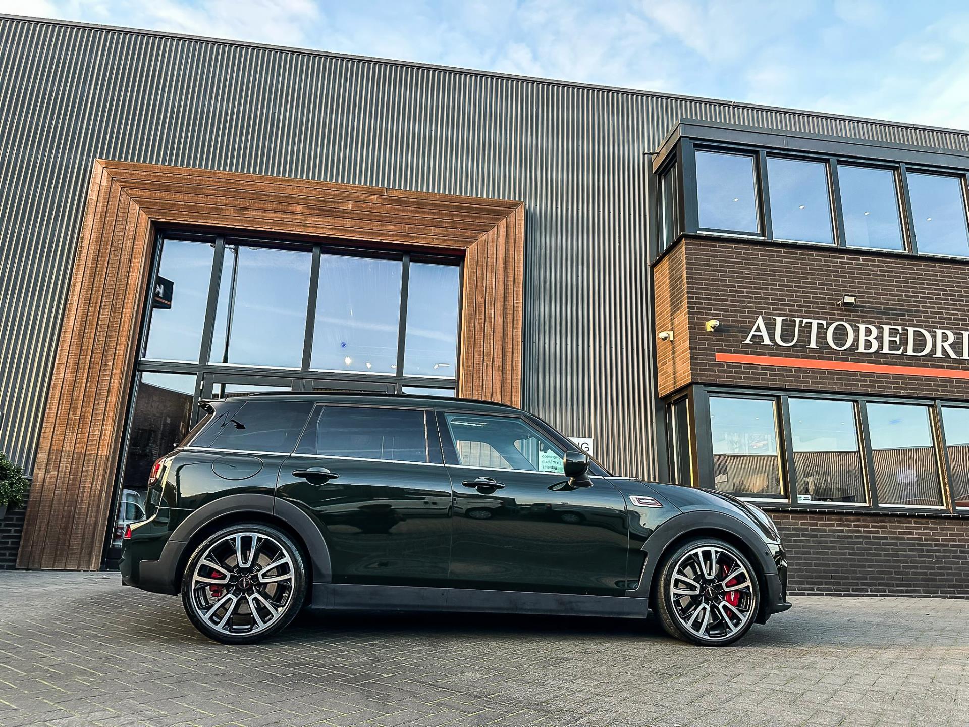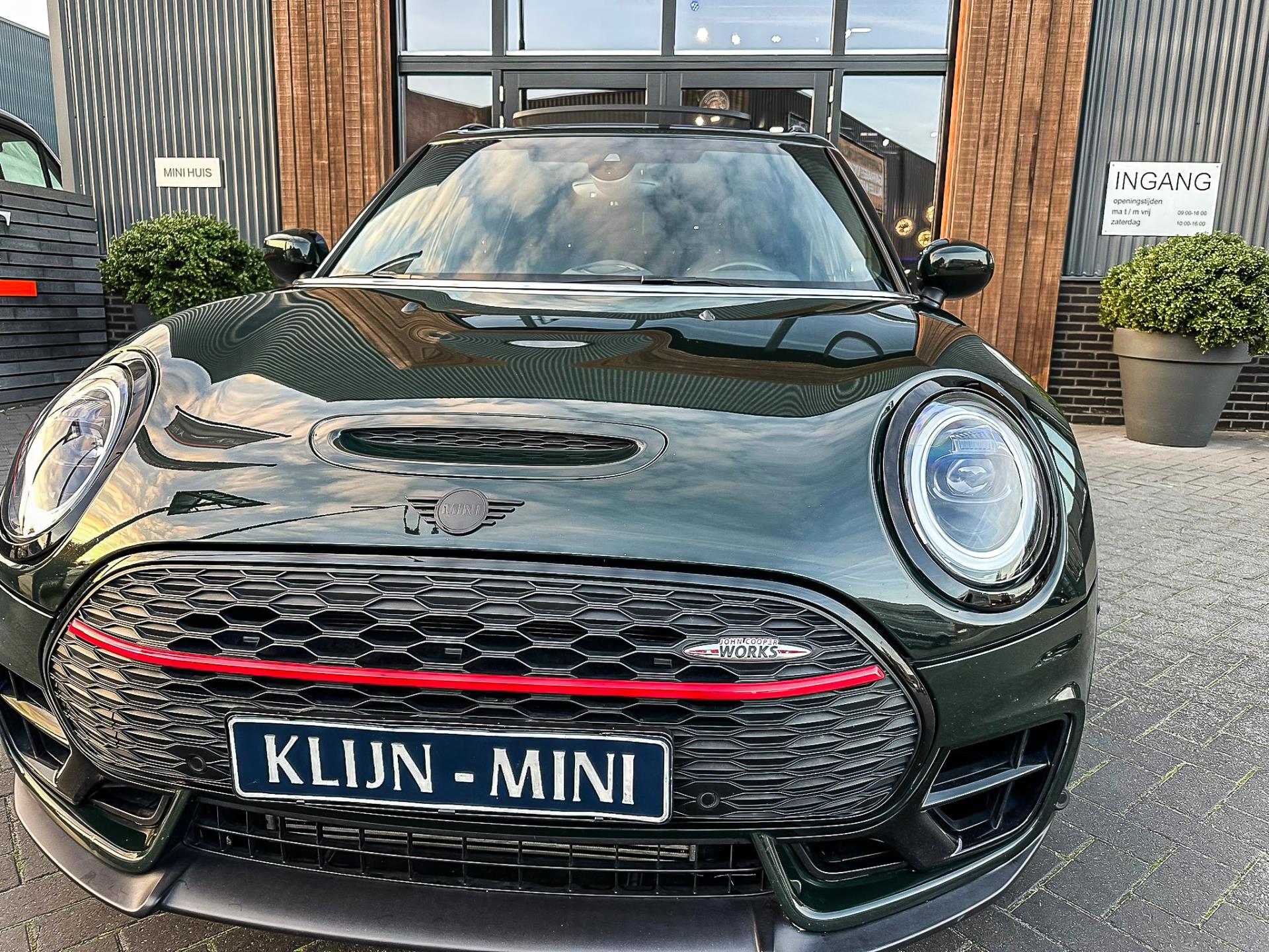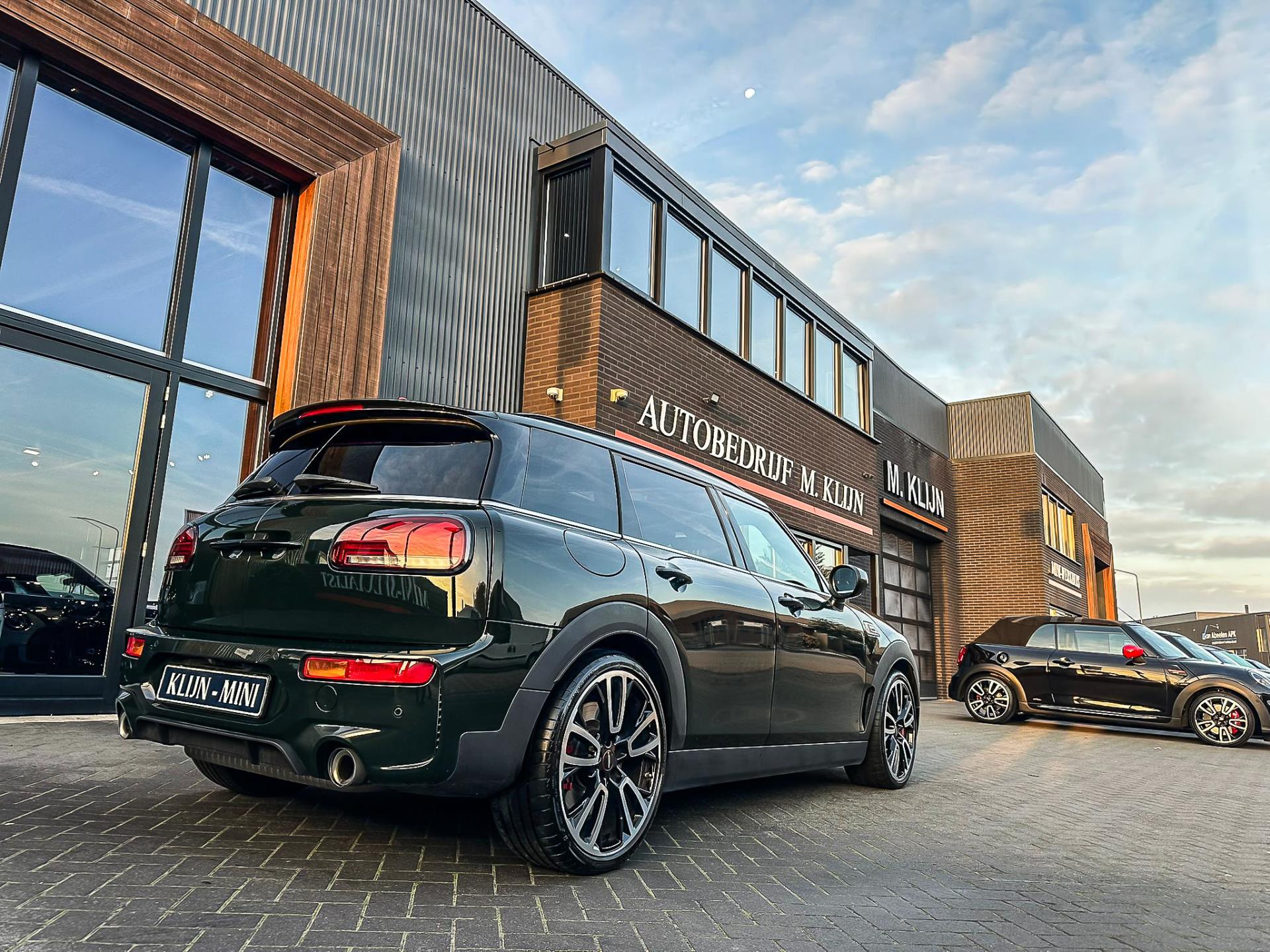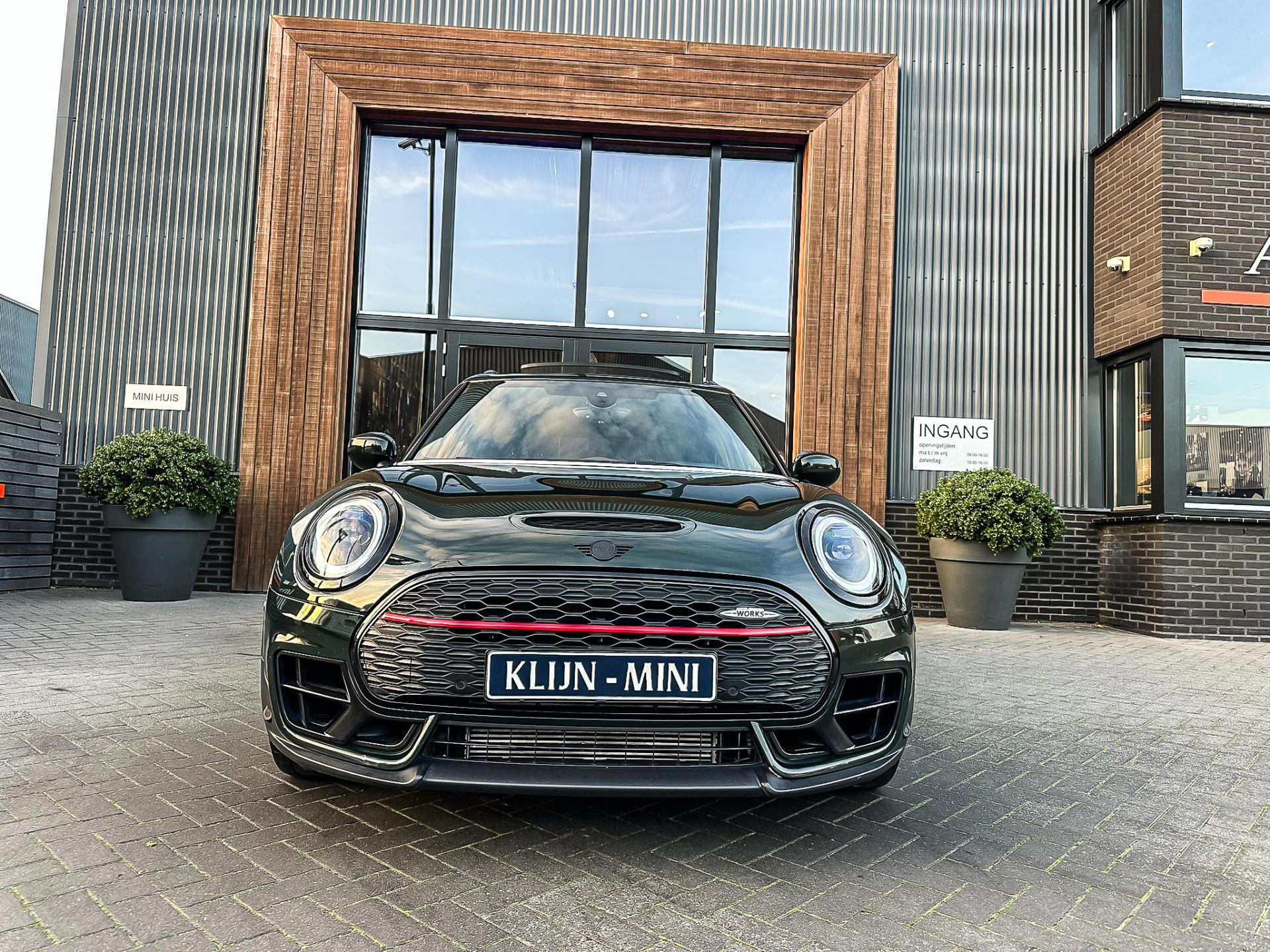 Zeer exclusieve facelift Mini Clubman John Cooper Works ALL4 F1 sportautomaat met een 306pk motor uitgevoerd in de prachtige kleur Rebelgreen.Deze in werkelijk nieuwstaat verkerende Mini is uitgerust met alle maar dan ook alle denkbare opties oa:Climate control,vollederen interieur Yours lounge black,sportstoelen, stoelverwarming,virtual cockpit,breedbeeld dvd navigatie XL,Mini Connected XL,Harman Kardon soundsystem,adaptieve cruise control,keyless go,achteruitrijcamera,19” Jcw spoke velgen,head up display,sportpakket,vierwielaandrijving,led verlichting,elektrisch bedienbare glazen panoramadak,5 persoons,privacyglass,lederen Jcw sportstuur met F1 flipperschakel,lichtpakket met Mini logo's,welcome pakket,parkeersensoren voor en achter,parkassist(auto parkeert zelf in),F1 schakel op stuur,actieve voetgangersbeveiliging,lc scherm,virtual cockpit,Mini driving modus,dakrailing zwart,alarm,donker dakhemel,dakrailing zwart,mf stuur,Apple Carplay,dab radio,boordcomputer,blackline,regensensor,verwarmde voorruit,Union Jack achterlichten,vierwielaandrijving,armsteun,chili 2 pakket,alle boekjes+originele sleutels,1e eigenaar,61.000km origineel,btw auto,nieuwprijs 72.650,-.Schitterende en unieke Mini Clubman Works in concoursstaat voor de echte liefhebber