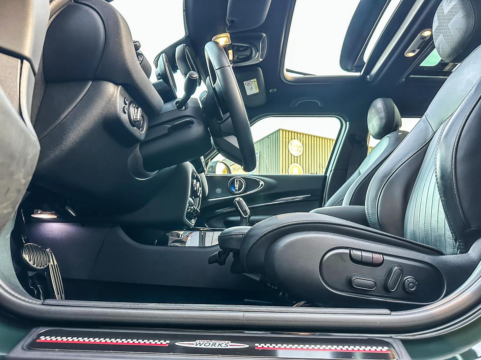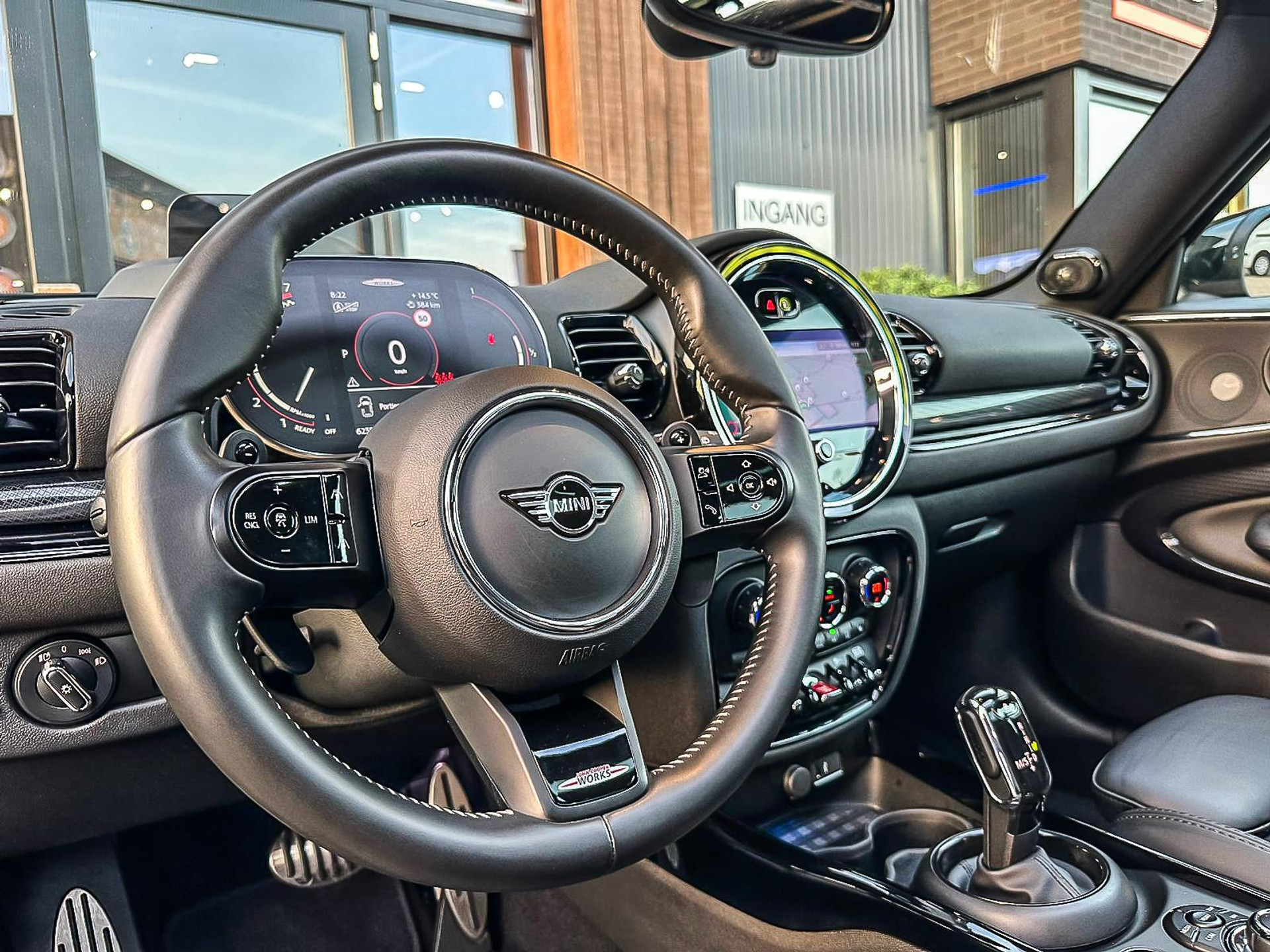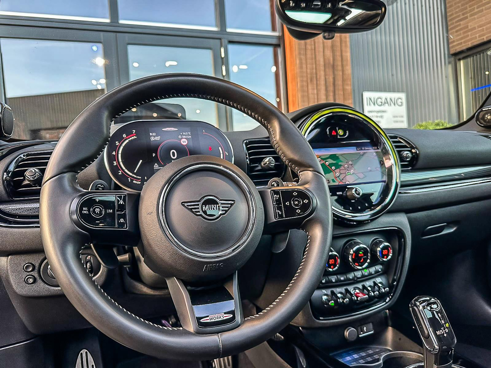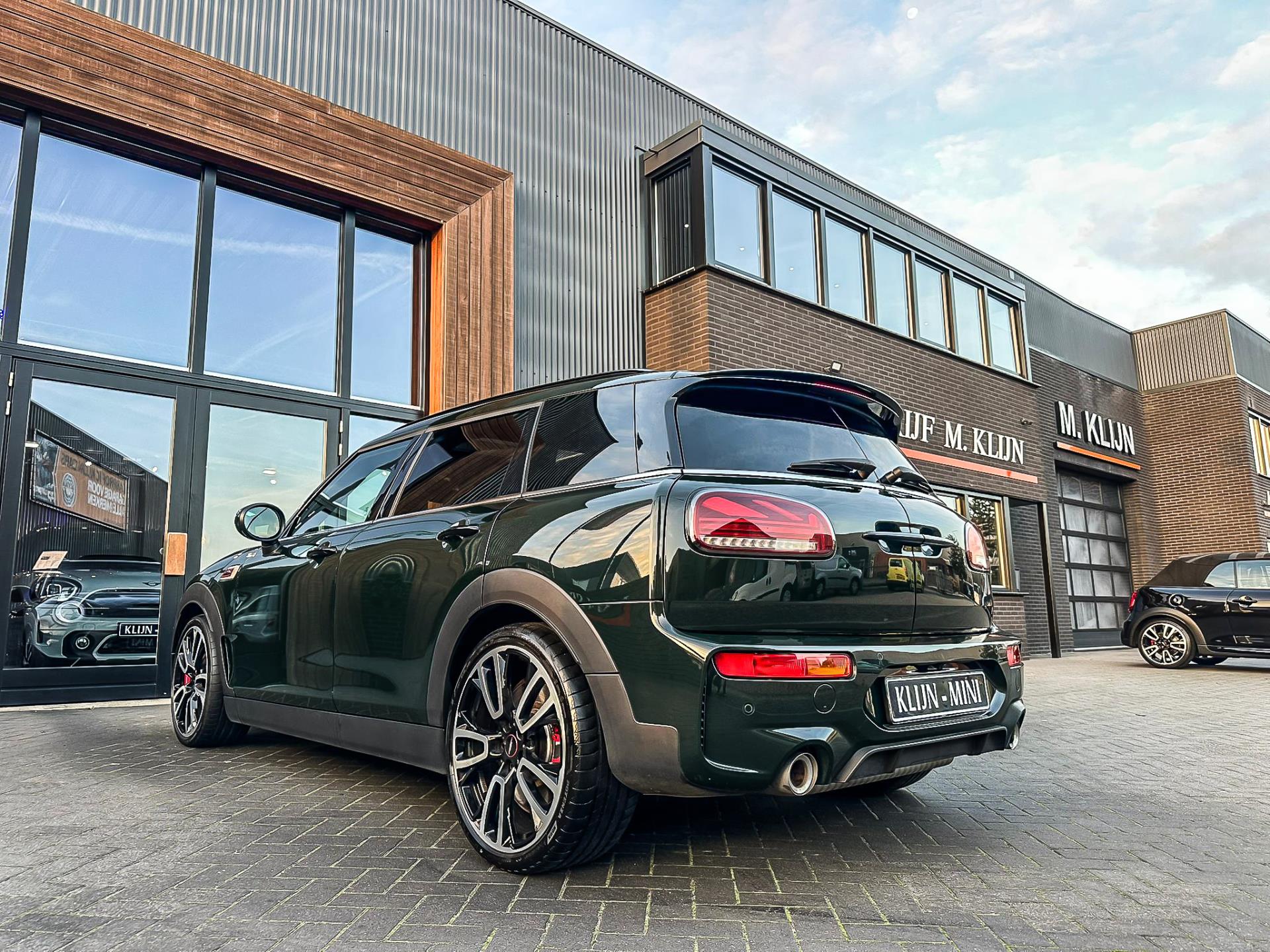 Zeer exclusieve facelift Mini Clubman John Cooper Works ALL4 F1 sportautomaat met een 306pk motor uitgevoerd in de prachtige kleur Rebelgreen.Deze in werkelijk nieuwstaat verkerende Mini is uitgerust met alle maar dan ook alle denkbare opties oa:Climate control,vollederen interieur Yours lounge black,sportstoelen, stoelverwarming,virtual cockpit,breedbeeld dvd navigatie XL,Mini Connected XL,Harman Kardon soundsystem,adaptieve cruise control,keyless go,achteruitrijcamera,19” Jcw spoke velgen,head up display,sportpakket,vierwielaandrijving,led verlichting,elektrisch bedienbare glazen panoramadak,5 persoons,privacyglass,lederen Jcw sportstuur met F1 flipperschakel,lichtpakket met Mini logo's,welcome pakket,parkeersensoren voor en achter,parkassist(auto parkeert zelf in),F1 schakel op stuur,actieve voetgangersbeveiliging,lc scherm,virtual cockpit,Mini driving modus,dakrailing zwart,alarm,donker dakhemel,dakrailing zwart,mf stuur,Apple Carplay,dab radio,boordcomputer,blackline,regensensor,verwarmde voorruit,Union Jack achterlichten,vierwielaandrijving,armsteun,chili 2 pakket,alle boekjes+originele sleutels,1e eigenaar,61.000km origineel,btw auto,nieuwprijs 72.650,-.Schitterende en unieke Mini Clubman Works in concoursstaat voor de echte liefhebber
