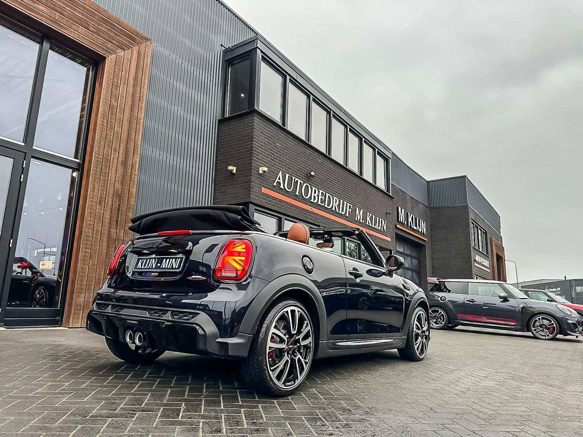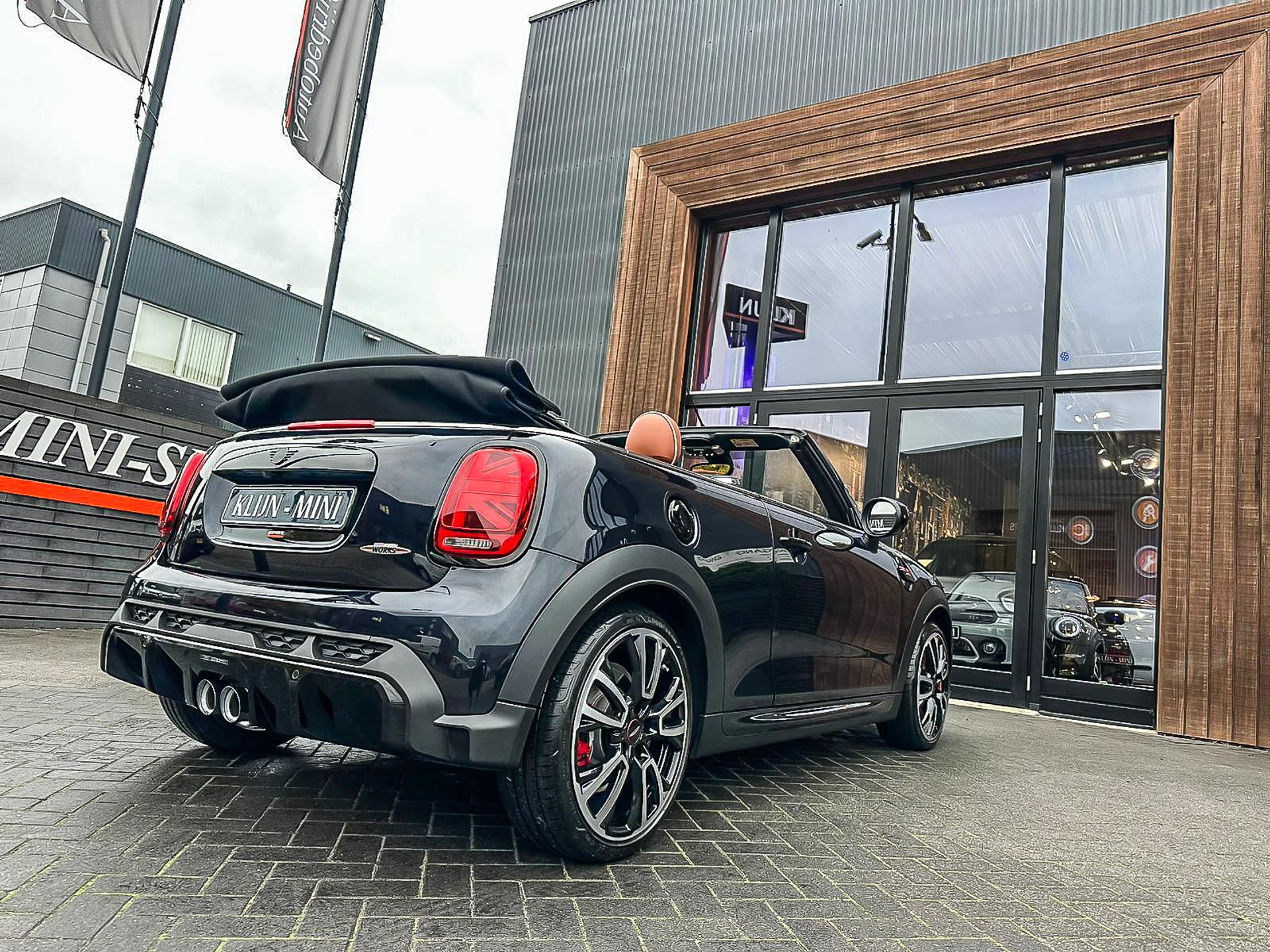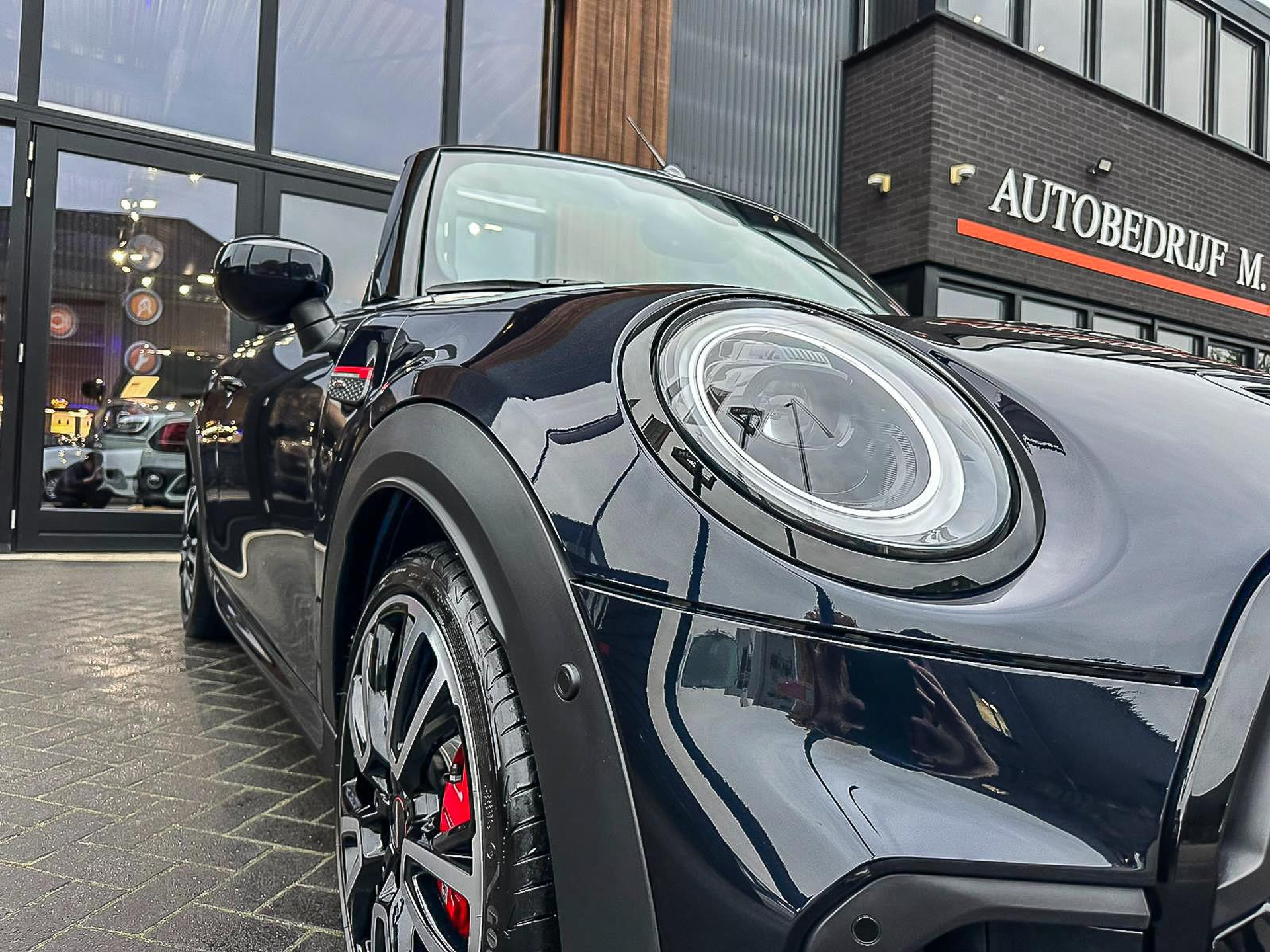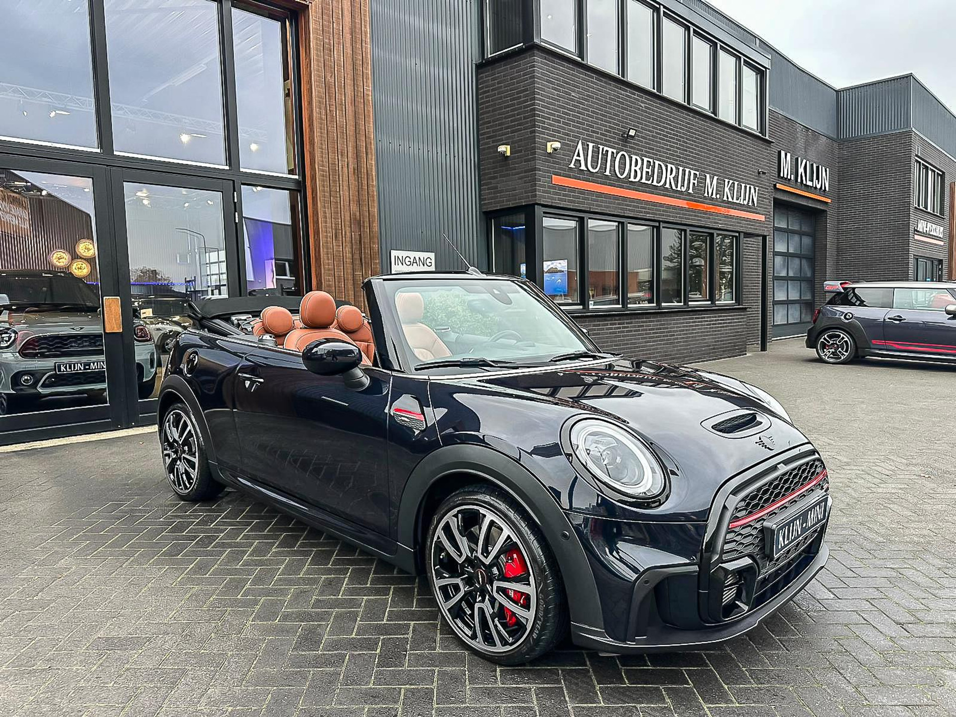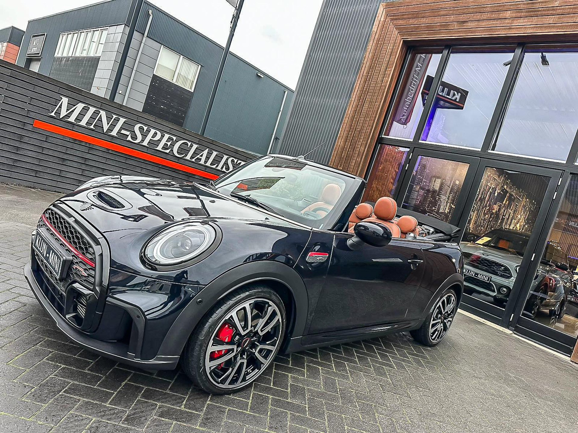 Unieke facelift Mini John Cooper Works cabrio Blackline F1 sportautomaat met een 231pk motor uitgevoerd in de prachtige kleurencombinatie van Enigmatic black en Chestermalt brown lederen interieur.Deze schitterende Mini is uitgerust met alle maar dan ook alle denkbare opties:Climate control,vollederen interieur chestermalt brown,sportstoelen,stoelverwarming,verwarmd stuurwiel,digitaal dashbord,breedbeeld navigatie,Mini connected XL,achteruitrijcamera,Harman Kardon soundsystem,adaptieve cruise control,dab tuner,tel,usb,performence control,apple carplay,Mini driving modus,elektrische cabriokap,lederen Jcw sportstuur met flipperschakel,mf stuur,automatisch dimmende binnenspiegel, regensensor,facelift,full blackpack, voetgangersbeveiliging,dtc,elektrisch inklapbare spiegels, parkeersensoren voor en achter,parkassist(Mini parkeert zelf in),union Jack achterlichten,led koplampen met uitgebreide functies,18 inch JCW velgen circuit spoke,lichtpakket met Mini logo's,actieve cruise control,gezichtspakket,chili 2 pakket,10.000km origineel,nieuwprijs 63.100euro.Prachtig uitgevoerde Mini Jcw in concoursstaat voor de echte liefhebber.
