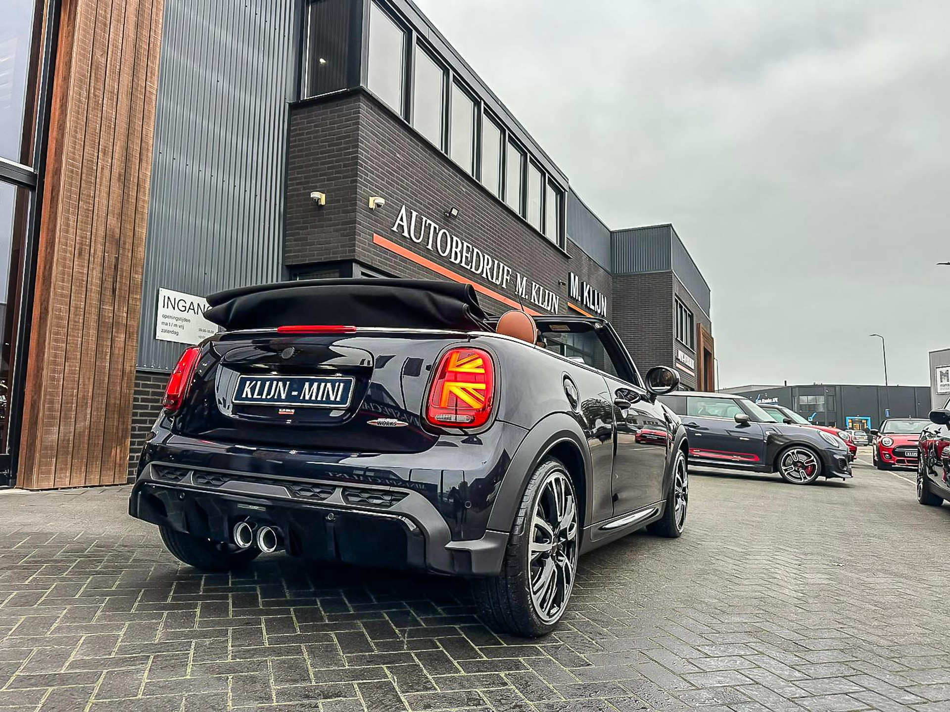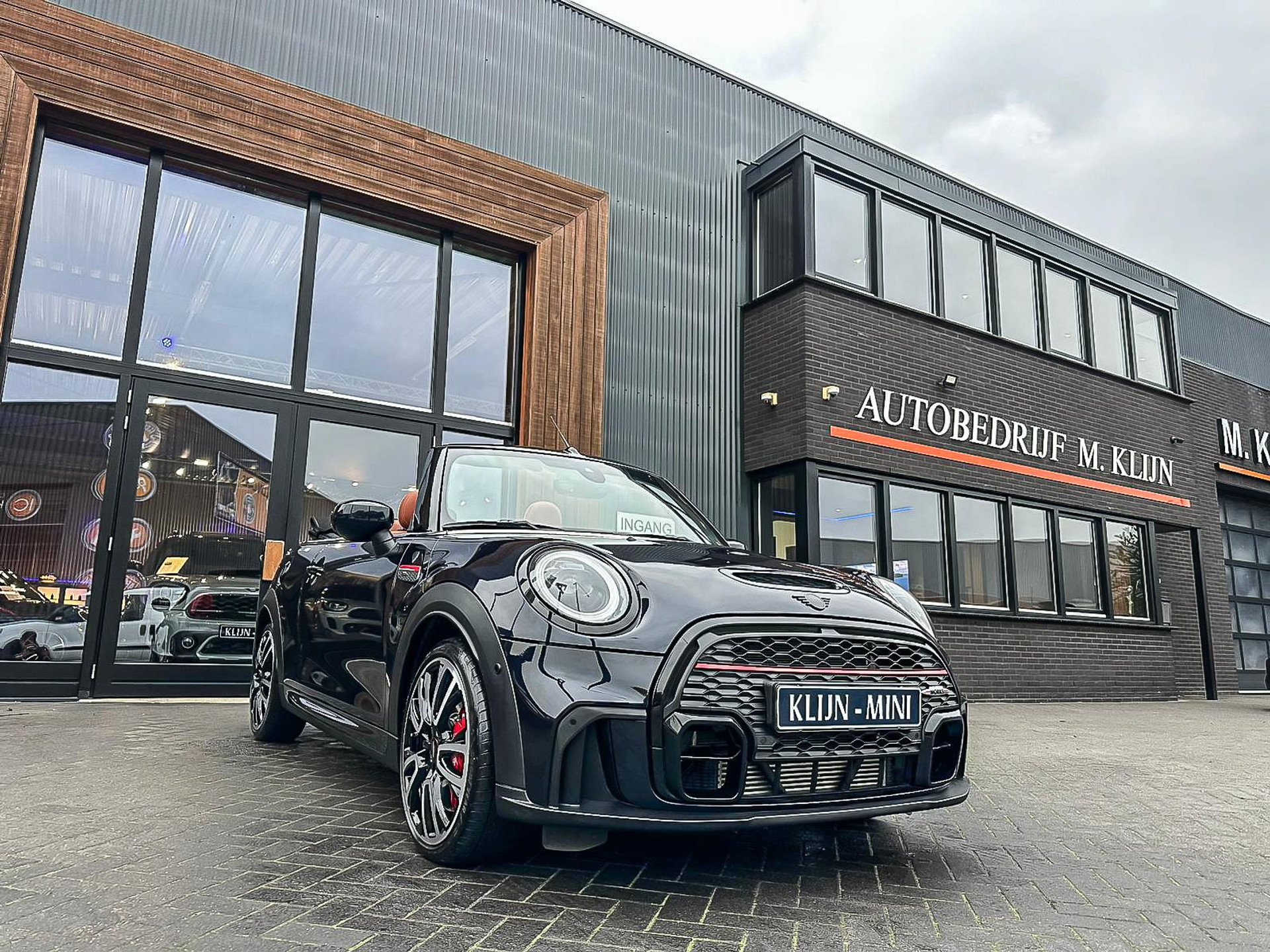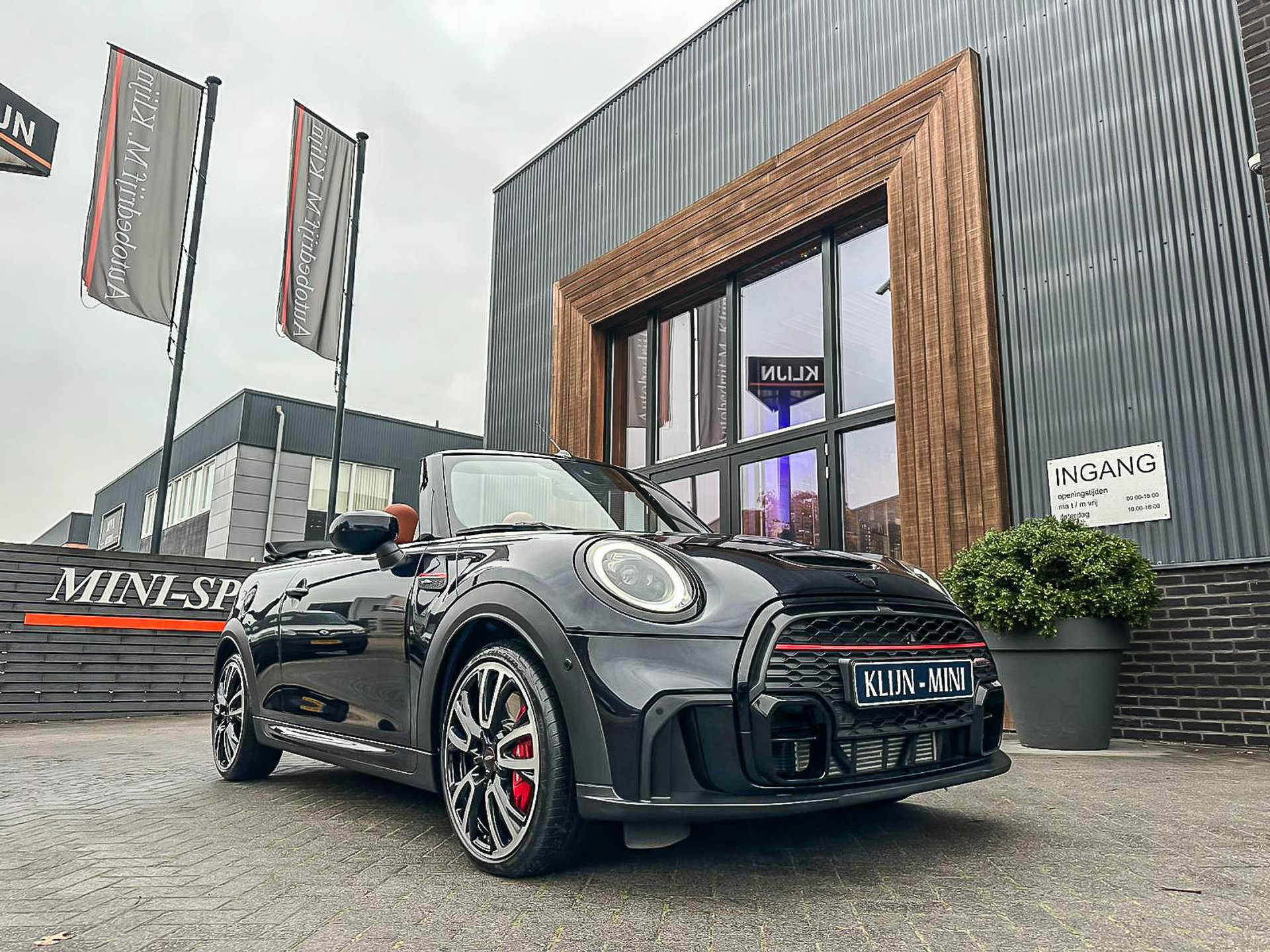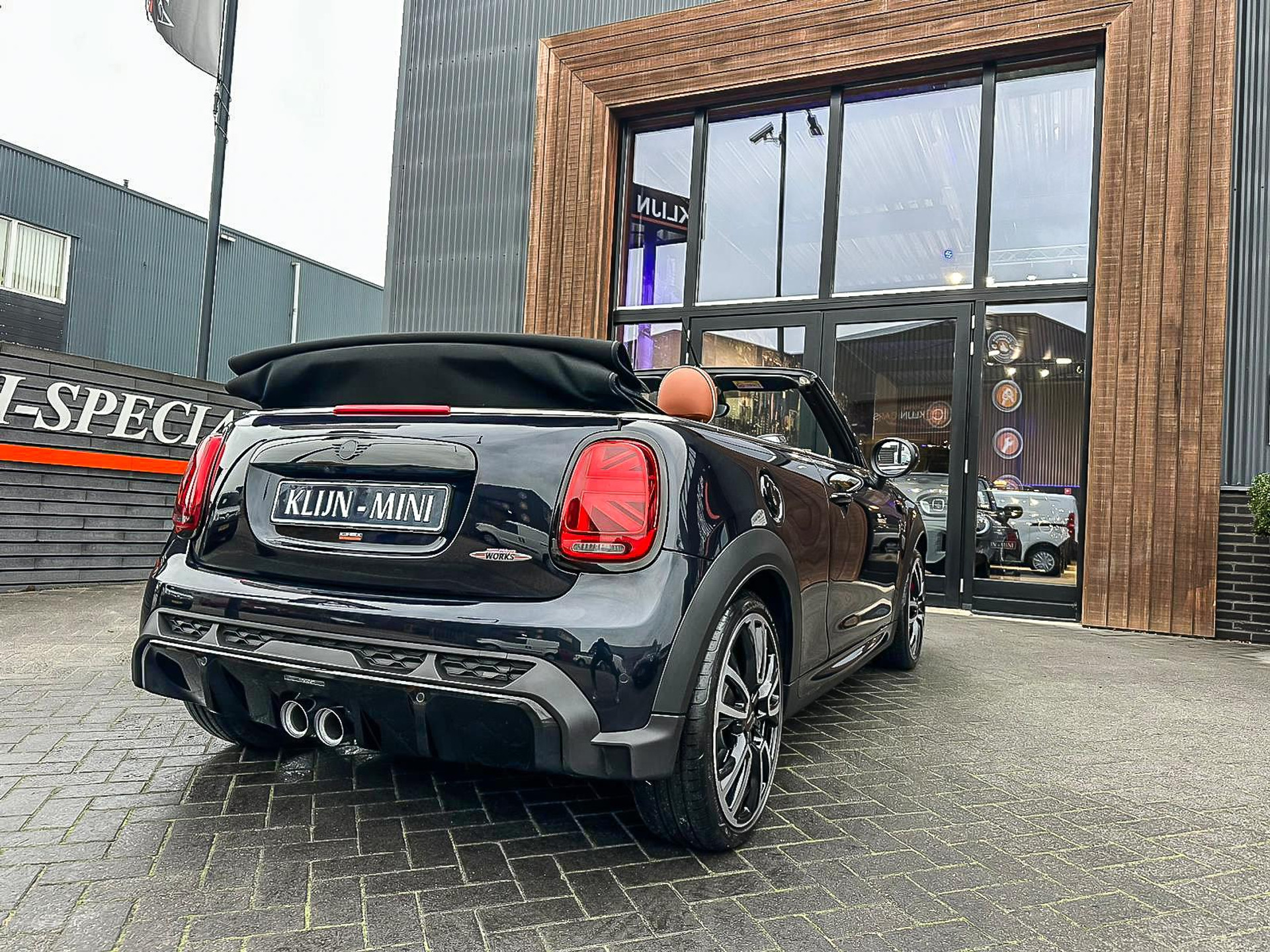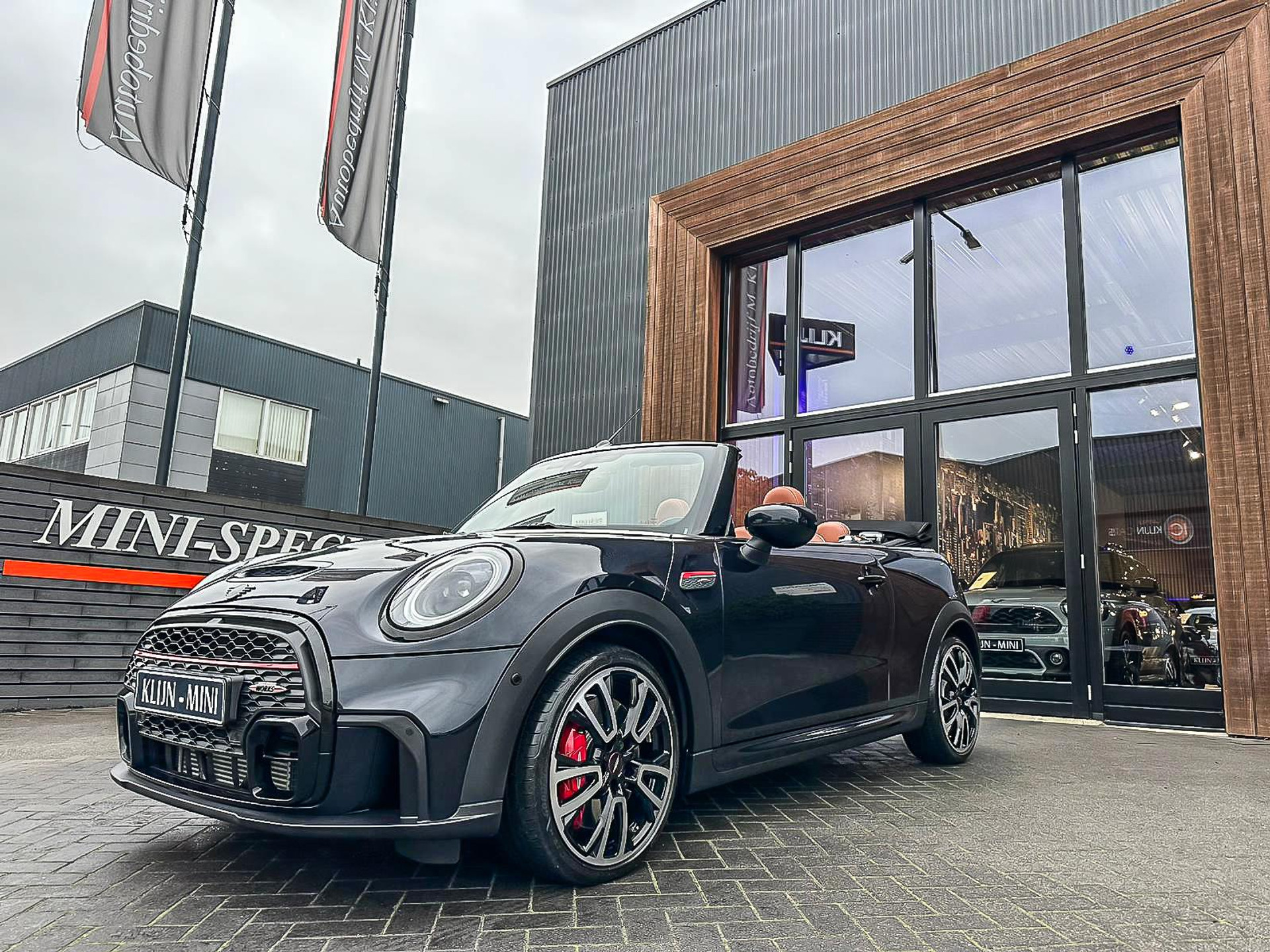Unieke facelift Mini John Cooper Works cabrio Blackline F1 sportautomaat met een 231pk motor uitgevoerd in de prachtige kleurencombinatie van Enigmatic black en Chestermalt brown lederen interieur.Deze schitterende Mini is uitgerust met alle maar dan ook alle denkbare opties:Climate control,vollederen interieur chestermalt brown,sportstoelen,stoelverwarming,verwarmd stuurwiel,digitaal dashbord,breedbeeld navigatie,Mini connected XL,achteruitrijcamera,Harman Kardon soundsystem,adaptieve cruise control,dab tuner,tel,usb,performence control,apple carplay,Mini driving modus,elektrische cabriokap,lederen Jcw sportstuur met flipperschakel,mf stuur,automatisch dimmende binnenspiegel, regensensor,facelift,full blackpack, voetgangersbeveiliging,dtc,elektrisch inklapbare spiegels, parkeersensoren voor en achter,parkassist(Mini parkeert zelf in),union Jack achterlichten,led koplampen met uitgebreide functies,18 inch JCW velgen circuit spoke,lichtpakket met Mini logo's,actieve cruise control,gezichtspakket,chili 2 pakket,10.000km origineel,nieuwprijs 63.100euro.Prachtig uitgevoerde Mini Jcw in concoursstaat voor de echte liefhebber.