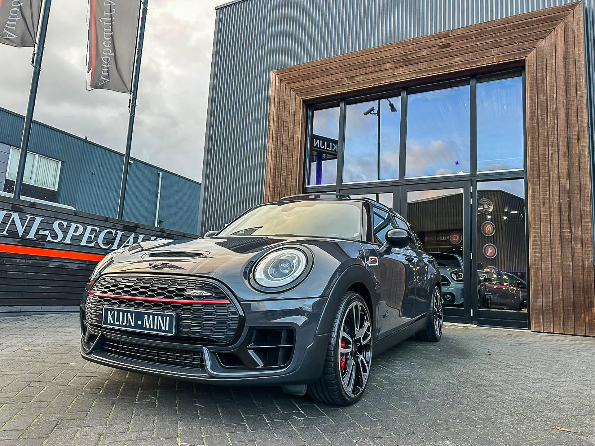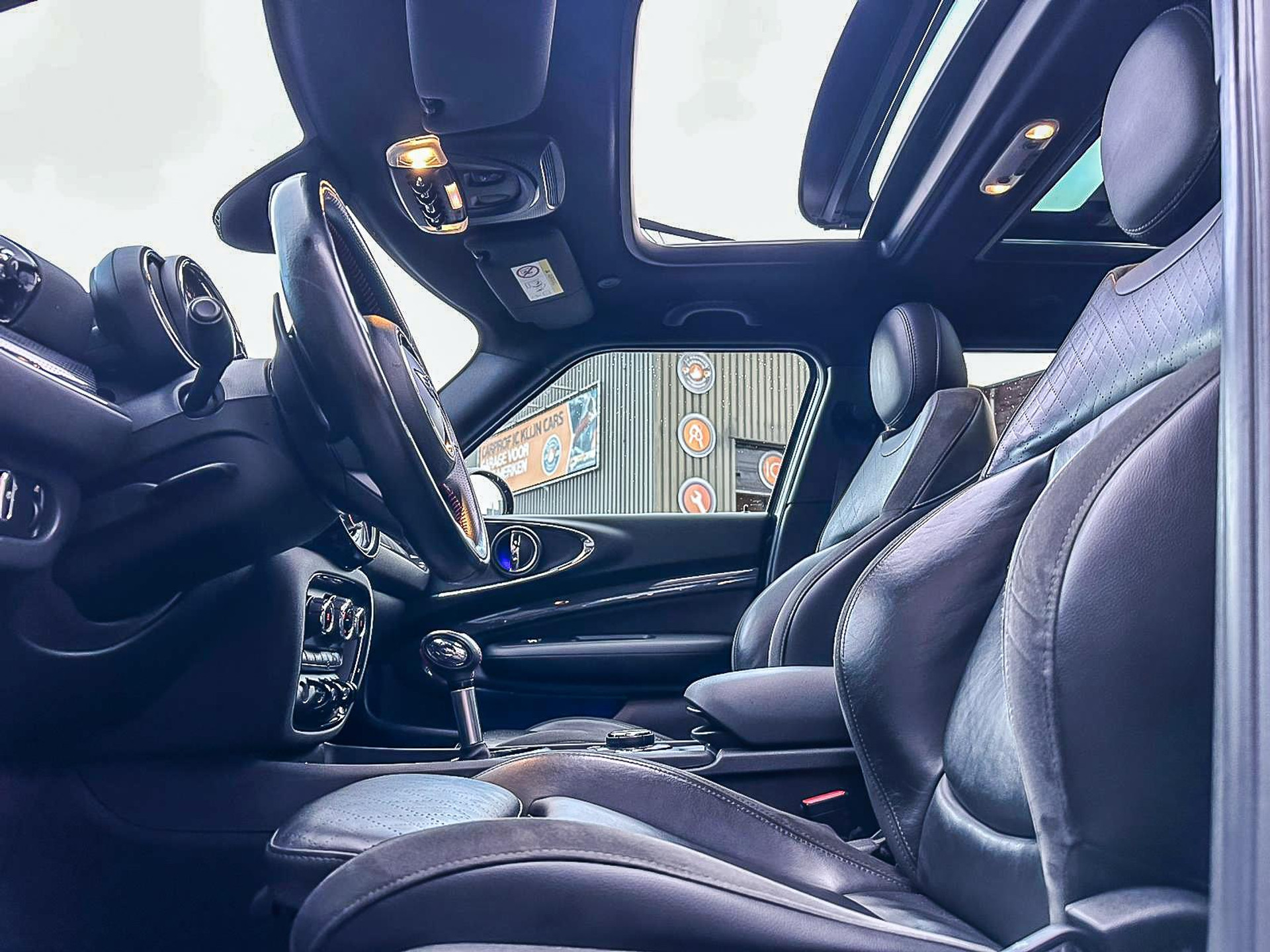 Zeer exclusieve en Unieke Mini Clubman John Cooper Works ALL4 F1 sportautomaat met een 231pk motor uitgevoerd in de prachtige kleur Thunder Grey.Deze in werkelijk nieuwstaat verkerende Mini is voorzien van alle denkbare opties oa:Climate control,vollederen interieur Carbon Black, stoelverwarming,sportstoelen,breedbeeld navigatie XL,Mini Connected XL,keyless go,19” Jcw cup velgen,sportpakket,vierwielaandrijving,led verlichting,elektrisch bedienbare glazen panoramadak,5 persoons,privacyglass,lederen sportstuur Jcw,Harman Kardon soundsystem,verwarmde voorruit,lichtpakket met Mini logo's,welcome pakket,parkeersensoren achter,F1 schakel op stuur,actieve voetgangersbeveiliging,active cruise control,Mini driving modus,donker dakhemel,mf stuur,boordcomputer,regensensor,armsteun,chili 2 pakket,alle boekjes+originele sleutels,1e eigenaar,nieuwprijs 62.000euro.Schitterende en unieke Mini Clubman Works in topstaat voor de echte liefhebber.