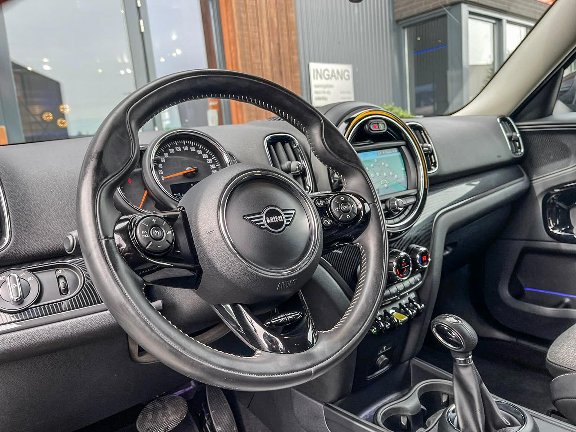 Schitterende en unieke Mini Countryman Cooper SE hybrid All4 Blackline automaat 224pk uitgevoerd in de prachtige kleur Midnightblack. Deze in nieuwstaat verkerende Mini is volledig dealer onderhouden en uitgerust met vele opties:Climate control, halflederen interieur carbon black,sportstoelen,stoelverwarming,Navigatie,Mini connected,head up display,18" S multispoke velgen zwart,mf stuur,cruise control,lederen sportstuur,actieve cruise control,tel voorbereiding,regensensor,Led Verlichting,elektrisch inklapbare spiegels,voetgangersbeveiliging,keyless go, elektrische kofferbaksluiting,lichtpakket met Mini logo's,welcome pakket,apple carplay voorbereiding,blackline,parkeersensoren voor+achter,parkassist(Mini parkeert zelf in)metallic,boordcomputer,alle boekjes+originele sleutels,161.000km origineel.Unieke Mini Countryman in topstaat voor de echte liefhebber.