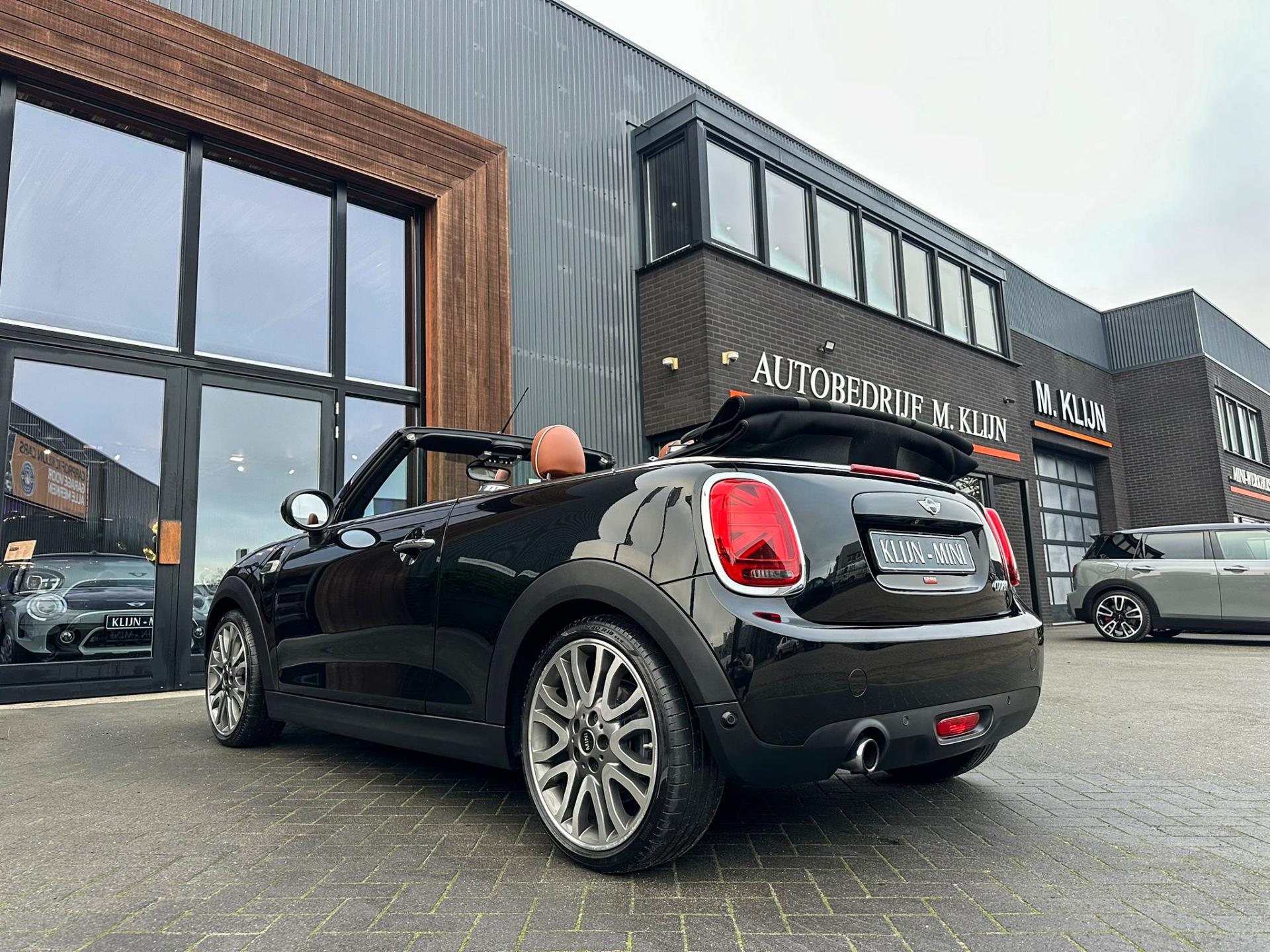 Unieke en origineel Hollandse Mini Cooper cabrio Yours edition automaat met een 136pk motor uitgevoerd in de prachtige kleurencombinatie van Midnightblack metallic en Chesterbrown lederen interieur.Deze schitterende Mini is uitgerust met alle denkbare opties:Volautomatische airco,vollederen interieur Chestermalt Brown,sportstoelen,stoelverwarming,breedbeeld navigatie,Mini connected XL,tel,achteruitrijcamera,usb,Harman Kardon Soundsystem,Mini driving modus,elektrische cabriokap Union Jack,lederen sportstuur,Union Jack achterlichten,mf stuur, regensensor, voetgangersbeveiliging,cruise control,parkeersensoren,led verlichting,18 inch Mini Yours Masterpiece velgen,lichtpakket,gezichtspakket,88.000km origineel Nap.Prachtig uitgevoerde Mini cabrio in concoursstaat voor de echte liefhebber.
