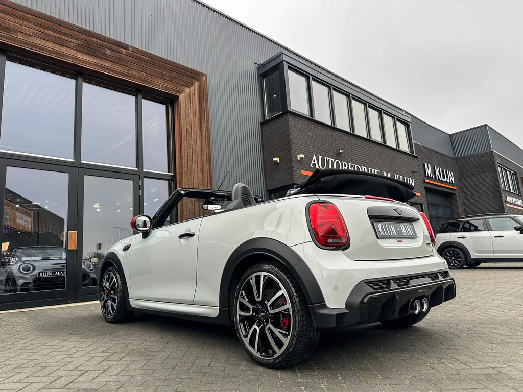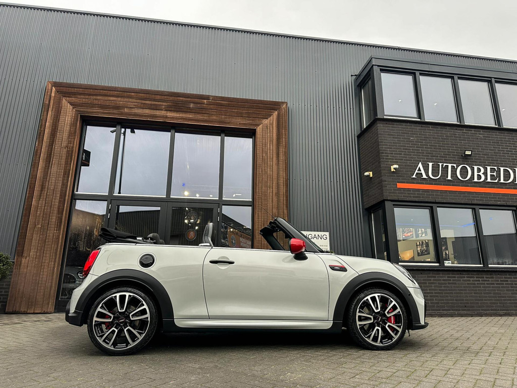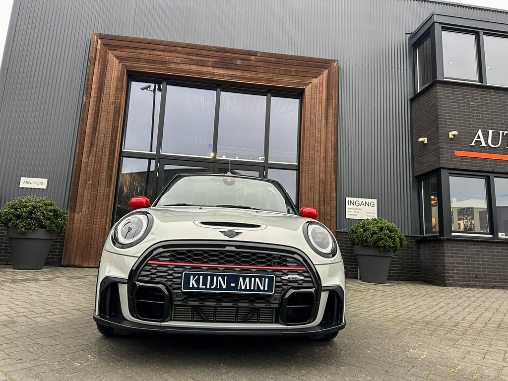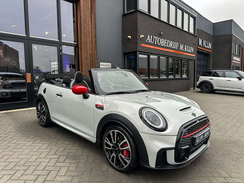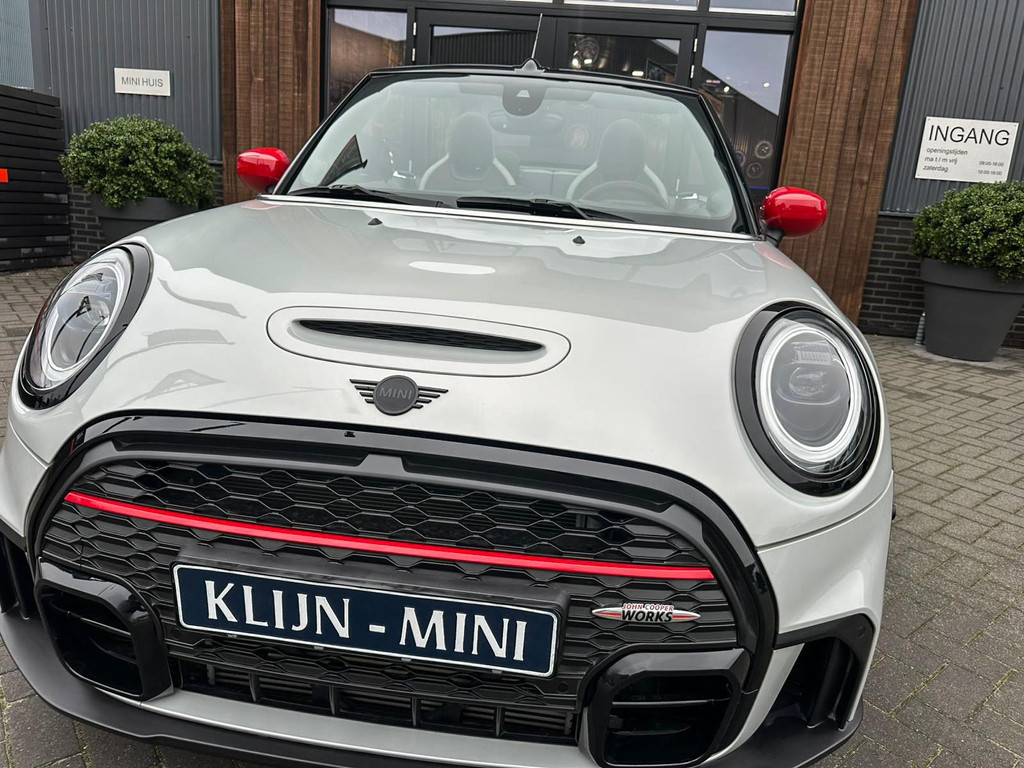 Unieke facelift Mini John Cooper Works cabrio Blackline F1 sportautomaat met een 231pk motor in de prachtige kleur whitesilver metallic.Deze schitterende Mini is uitgerust met alle maar dan ook alle denkbare opties:Climate control,lederen/alcantara Jcw interieur,sportstoelen,stoelverwarming,digitaal dashbord,breedbeeld navigatie,Mini connected,achteruitrijcamera,Harman Kardon soundsystem,head up display,adaptieve cruise control,dab tuner,tel,usb,performence control,apple carplay,Mini driving modus,elektrische cabriokap,lederen Jcw sportstuur met flipperschakel,mf stuur,automatisch dimmende binnenspiegel, regensensor,facelift,blackline, voetgangersbeveiliging,dtc,elektrisch inklapbare spiegels, parkeersensoren voor en achter,parkassist(Mini parkeert zelf in),union Jack achterlichten,led koplampen met uitgebreide functies,18 inch JCW Circuit Spoke velgen,lichtpakket met Mini logo's,gezichtspakket,22.000km origineel,nieuwprijs 63.000euro.Prachtig uitgevoerde Mini Jcw in concoursstaat voor de echte liefhebber