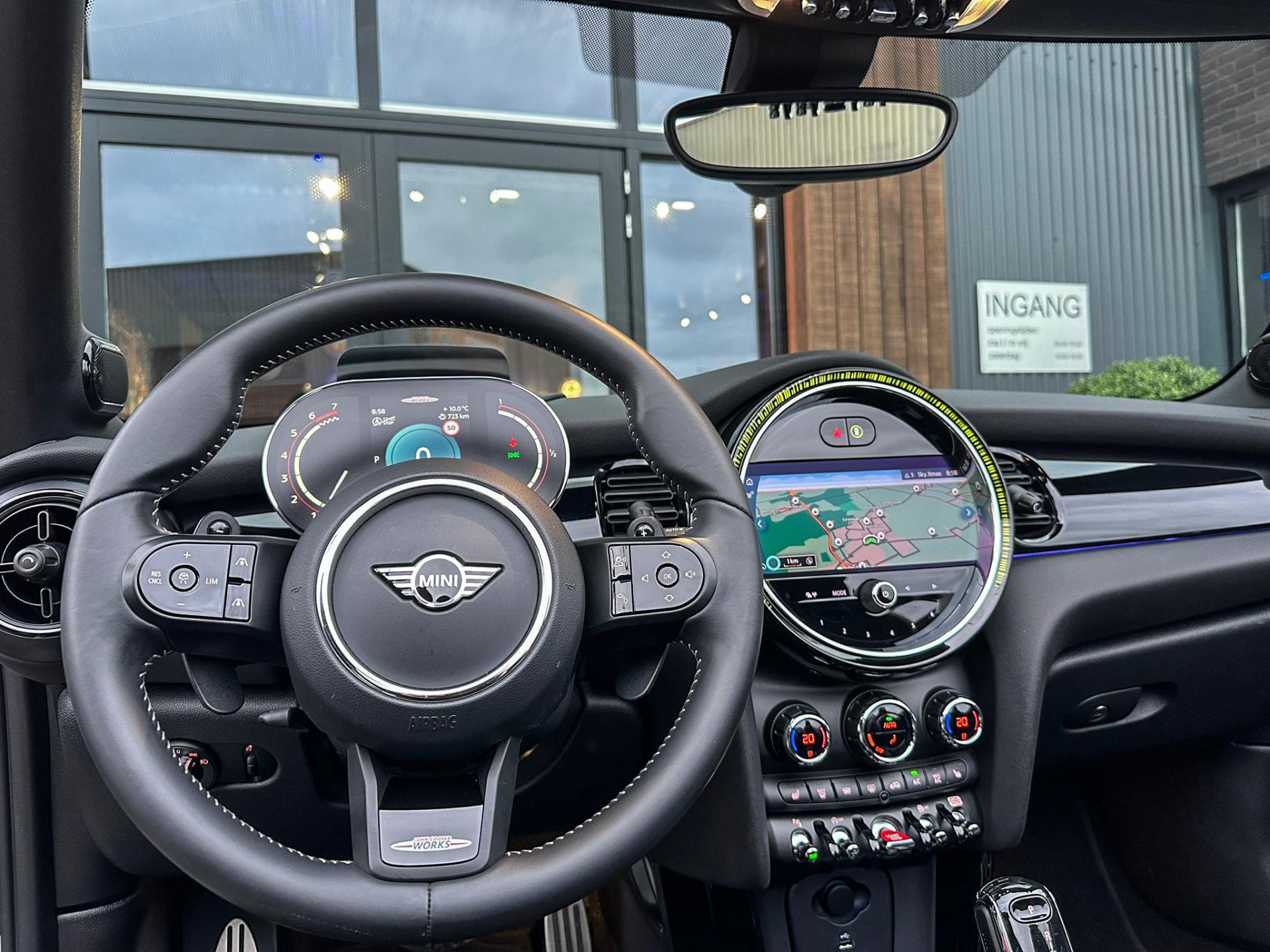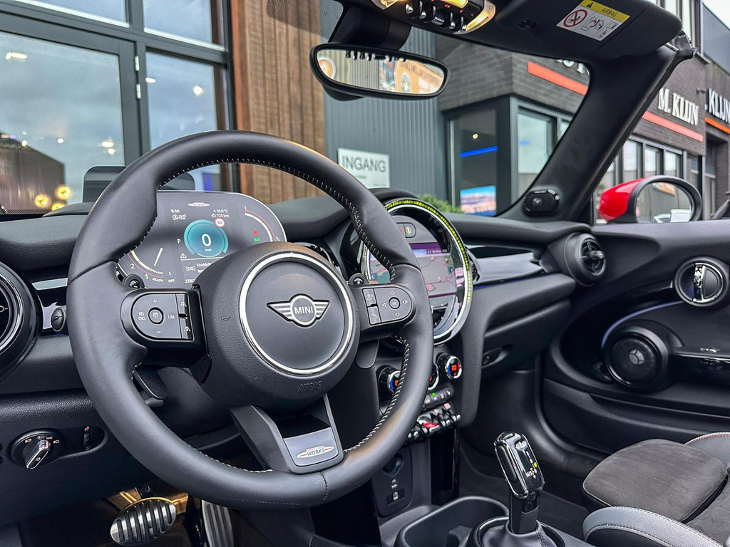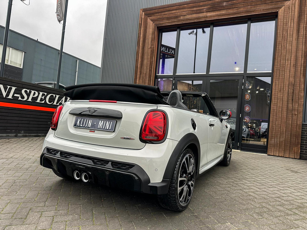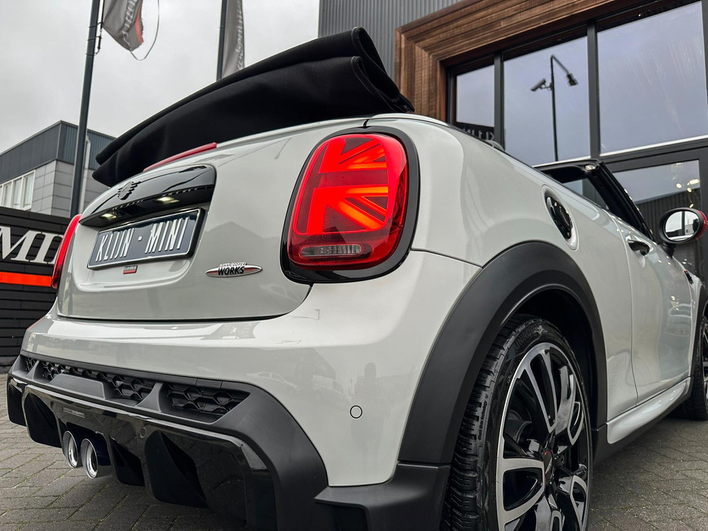 Unieke facelift Mini John Cooper Works cabrio Blackline F1 sportautomaat met een 231pk motor in de prachtige kleur whitesilver metallic.Deze schitterende Mini is uitgerust met alle maar dan ook alle denkbare opties:Climate control,lederen/alcantara Jcw interieur,sportstoelen,stoelverwarming,digitaal dashbord,breedbeeld navigatie,Mini connected,achteruitrijcamera,Harman Kardon soundsystem,head up display,adaptieve cruise control,dab tuner,tel,usb,performence control,apple carplay,Mini driving modus,elektrische cabriokap,lederen Jcw sportstuur met flipperschakel,mf stuur,automatisch dimmende binnenspiegel, regensensor,facelift,blackline, voetgangersbeveiliging,dtc,elektrisch inklapbare spiegels, parkeersensoren voor en achter,parkassist(Mini parkeert zelf in),union Jack achterlichten,led koplampen met uitgebreide functies,18 inch JCW Circuit Spoke velgen,lichtpakket met Mini logo's,gezichtspakket,22.000km origineel,nieuwprijs 63.000euro.Prachtig uitgevoerde Mini Jcw in concoursstaat voor de echte liefhebber