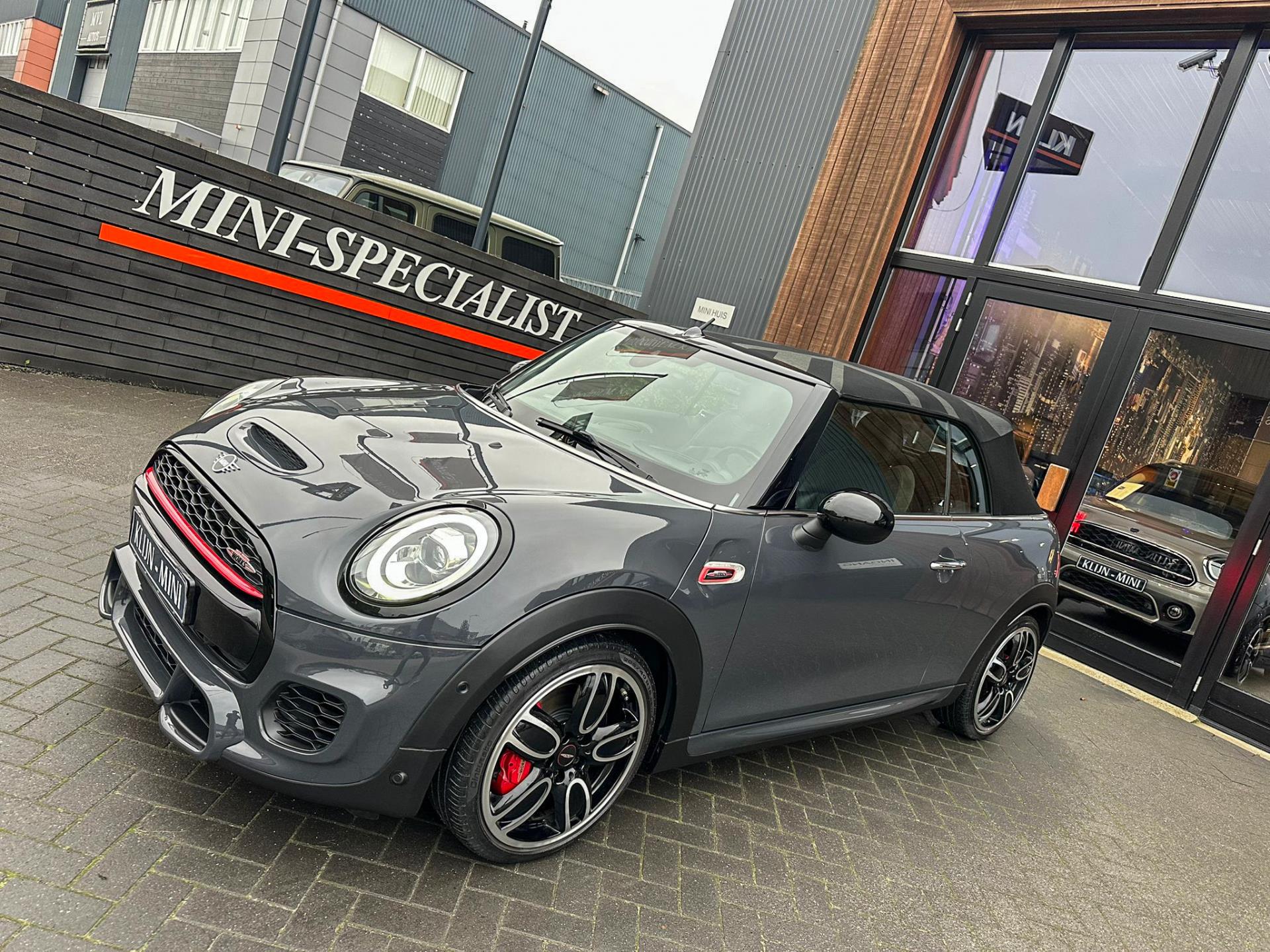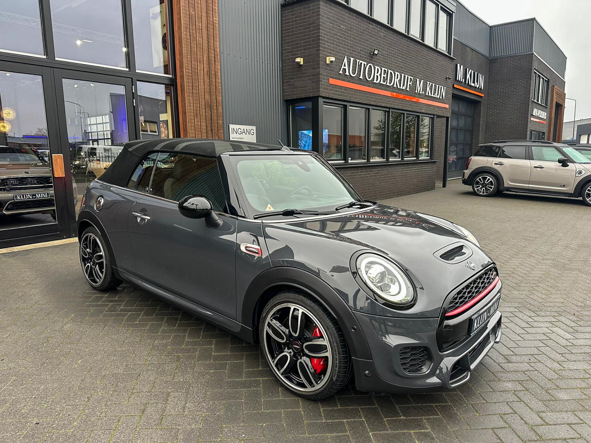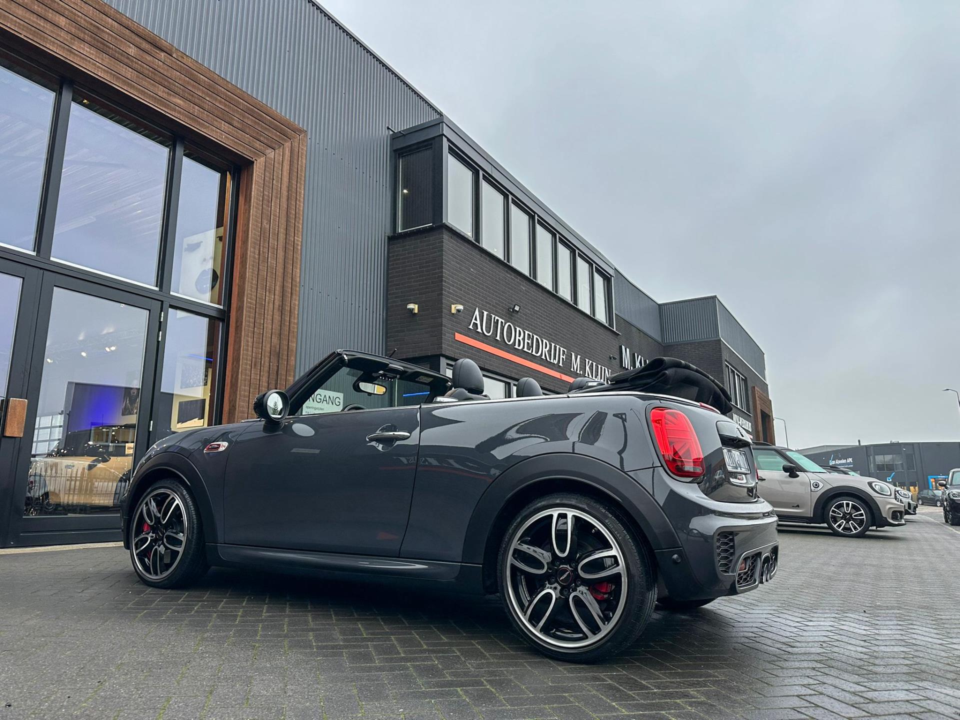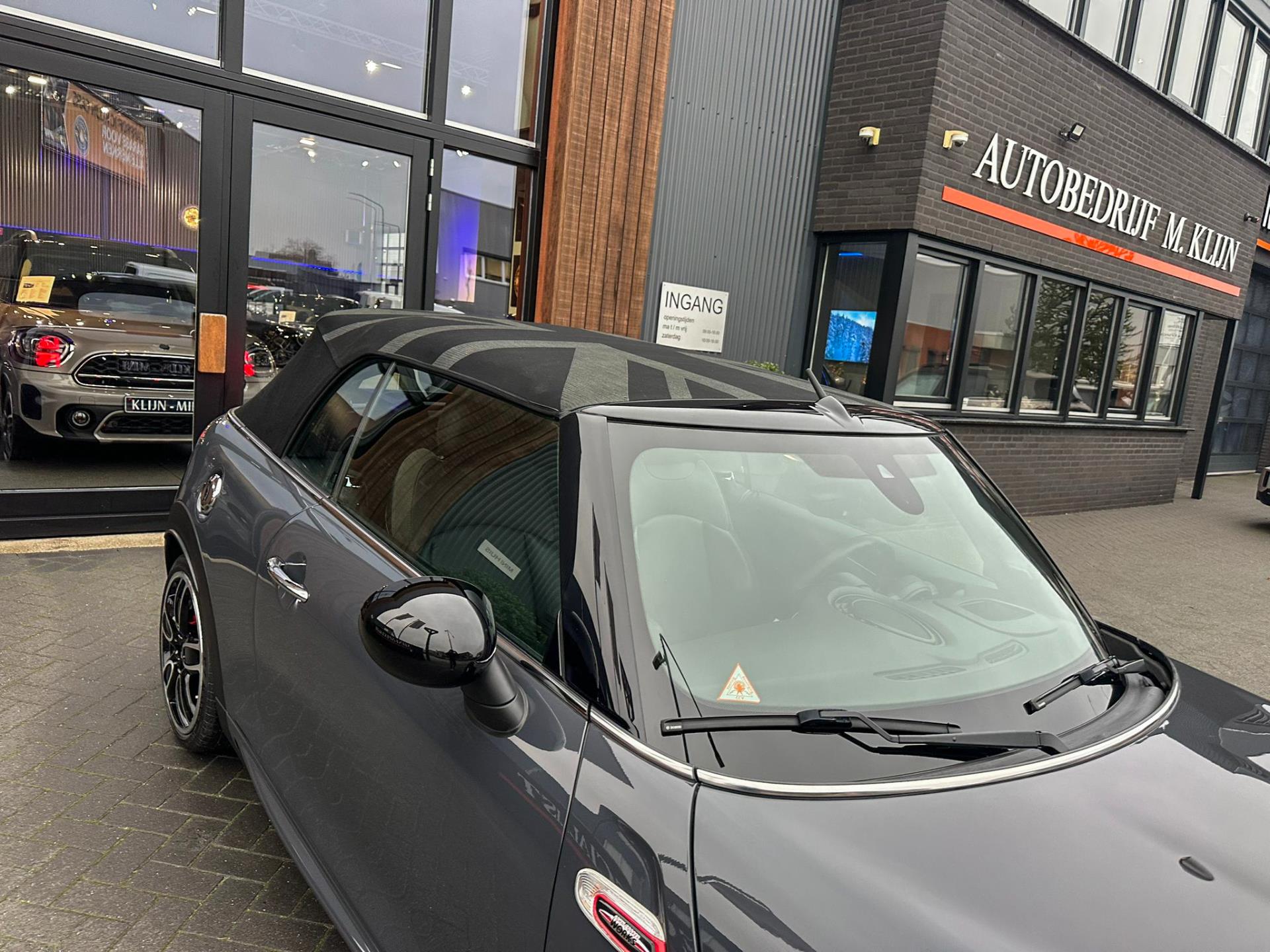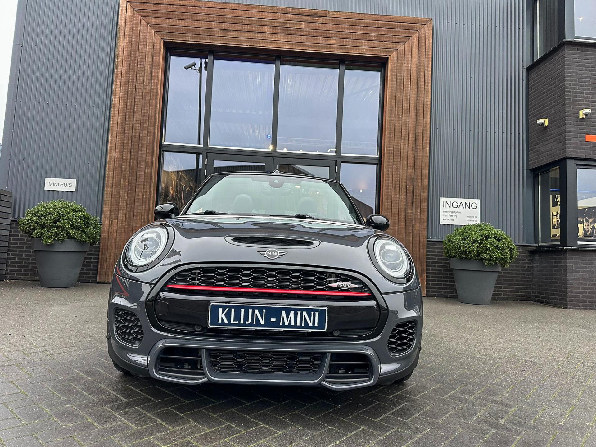 Unieke origineel Hollands geleverde Mini John Cooper Works cabrio Blackline F1 sportautomaat met een 231pk motor in de prachtige kleur Thundergrey metallic en uitgevoerd met een Union Jack cabriokap.Deze schitterende Mini is uitgerust met alle denkbare opties:Climate control,vollederen interieur carbon black,sportstoelen,stoelverwarming,breedbeeld navigatie,Mini connected XL,head up display,achteruitrijcamera,adaptieve cruise control,Harman Kardon soundsystem,dab tuner,tel,usb,performence control,apple carplay,Mini driving modus,elektrische cabriokap,Union Jack cabriokap,lederen Jcw sportstuur met flipperschakel,mf stuur,automatisch dimmende binnenspiegel,regensensor,facelift model,full black pack, voetgangersbeveiliging,dtc,elektrisch inklapbare spiegels, parkeersensoren voor en achter,parkassist(Mini parkeert zelf in),union Jack achterlichten,led koplampen met uitgebreide functies,18 inch JCW circuit spoke velgen,lichtpakket met Mini logo's,actieve cruise control,gezichtspakket,chili 2 pakket,68.000km origineel Nap,nieuwprijs 57.000euro.Prachtig uitgevoerde Mini Jcw in concoursstaat voor de echte liefhebber.