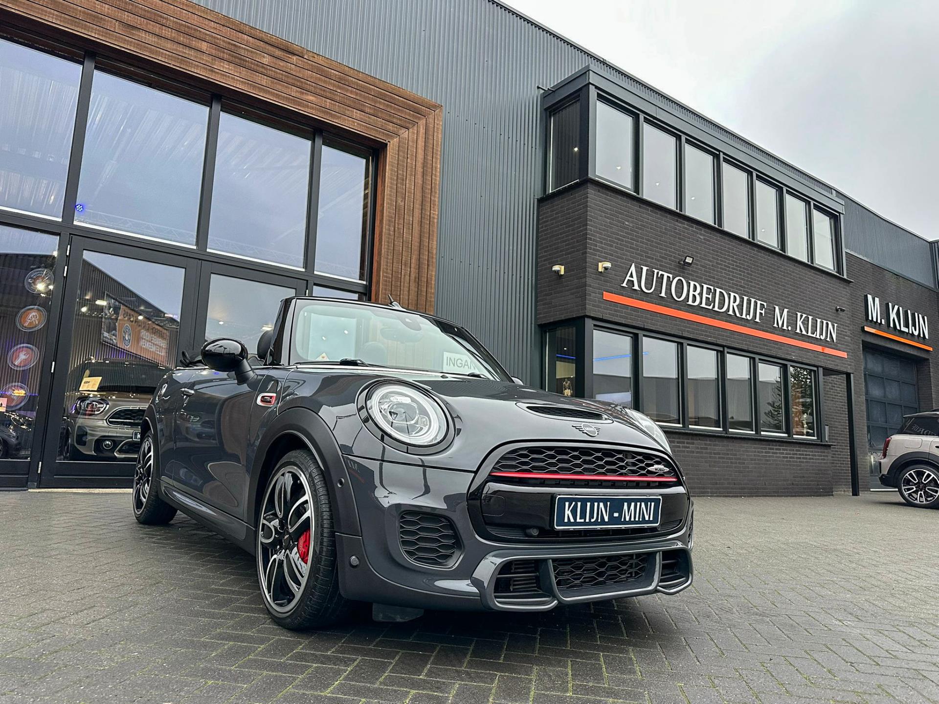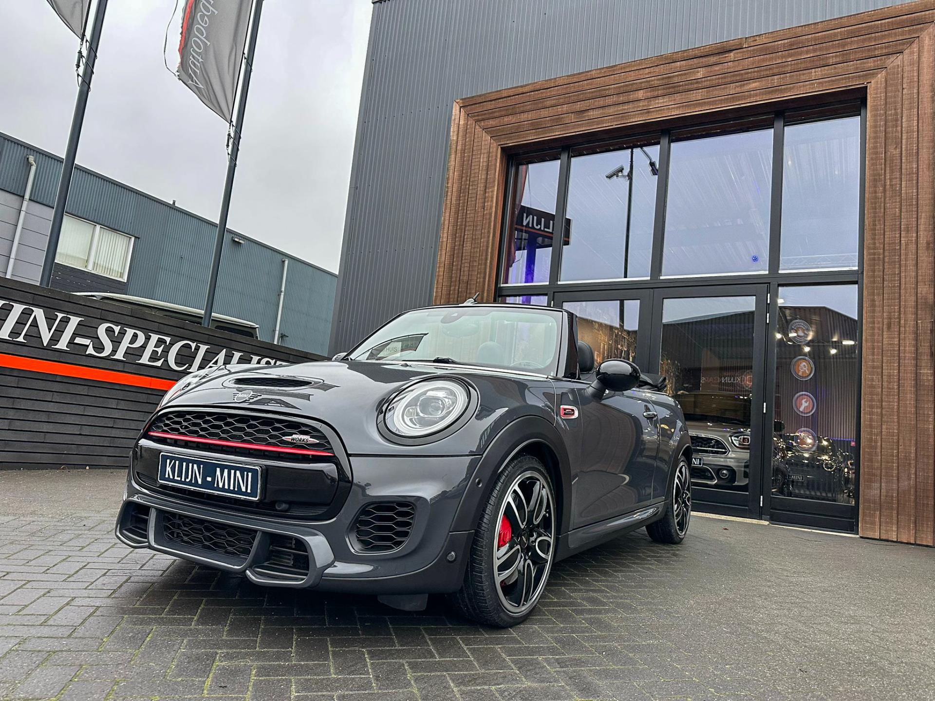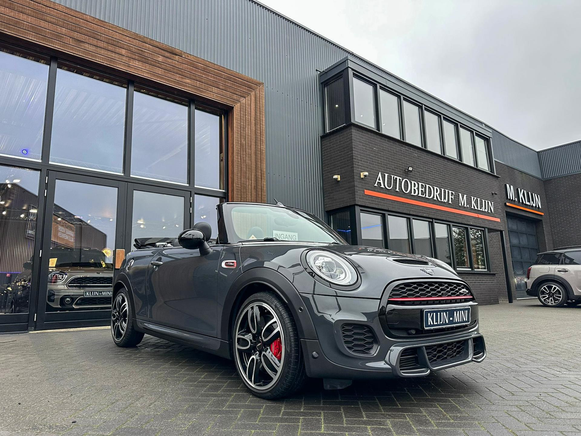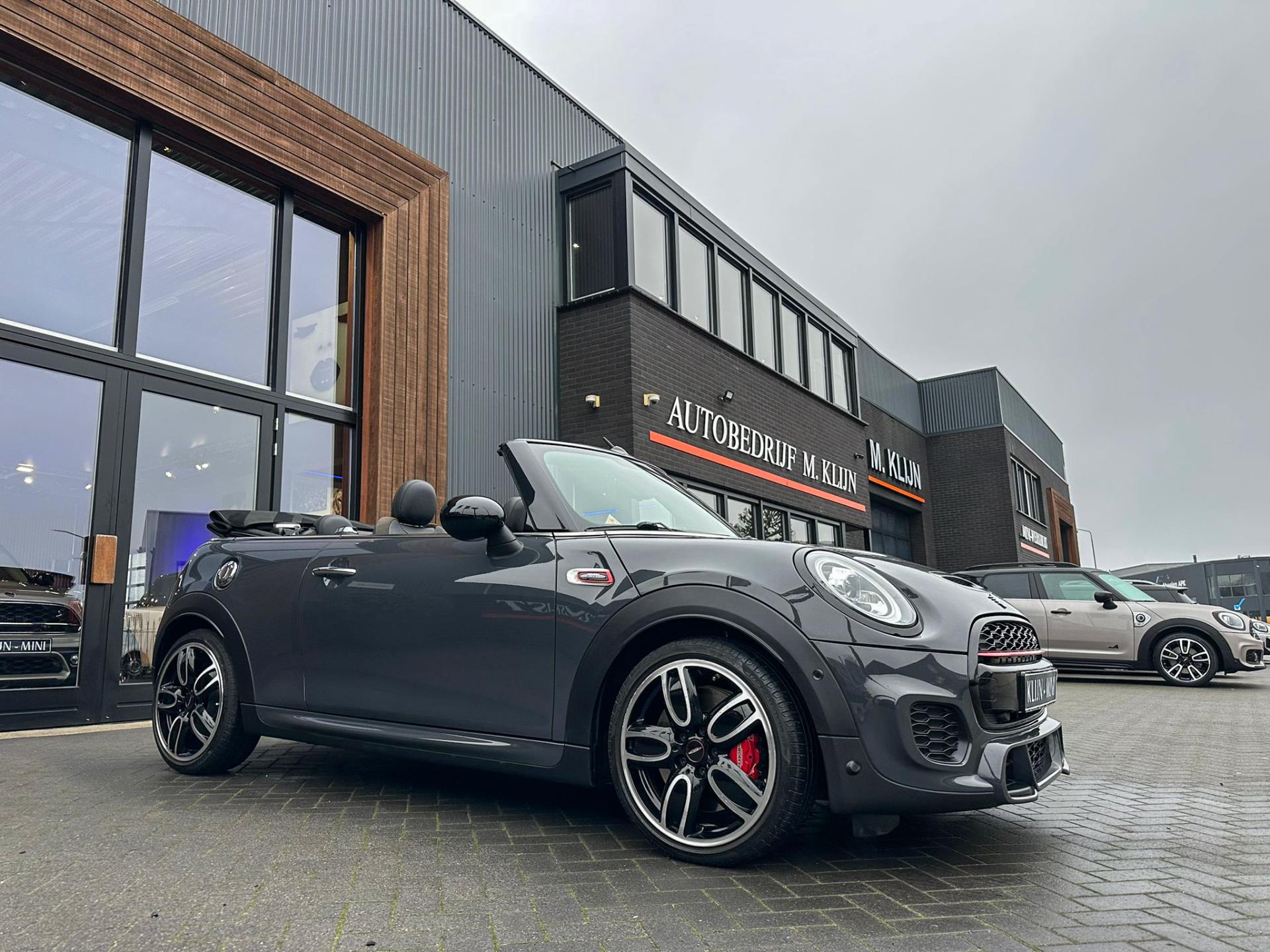Unieke origineel Hollands geleverde Mini John Cooper Works cabrio Blackline F1 sportautomaat met een 231pk motor in de prachtige kleur Thundergrey metallic en uitgevoerd met een Union Jack cabriokap.Deze schitterende Mini is uitgerust met alle denkbare opties:Climate control,vollederen interieur carbon black,sportstoelen,stoelverwarming,breedbeeld navigatie,Mini connected XL,head up display,achteruitrijcamera,adaptieve cruise control,Harman Kardon soundsystem,dab tuner,tel,usb,performence control,apple carplay,Mini driving modus,elektrische cabriokap,Union Jack cabriokap,lederen Jcw sportstuur met flipperschakel,mf stuur,automatisch dimmende binnenspiegel,regensensor,facelift model,full black pack, voetgangersbeveiliging,dtc,elektrisch inklapbare spiegels, parkeersensoren voor en achter,parkassist(Mini parkeert zelf in),union Jack achterlichten,led koplampen met uitgebreide functies,18 inch JCW circuit spoke velgen,lichtpakket met Mini logo's,actieve cruise control,gezichtspakket,chili 2 pakket,68.000km origineel Nap,nieuwprijs 57.000euro.Prachtig uitgevoerde Mini Jcw in concoursstaat voor de echte liefhebber.