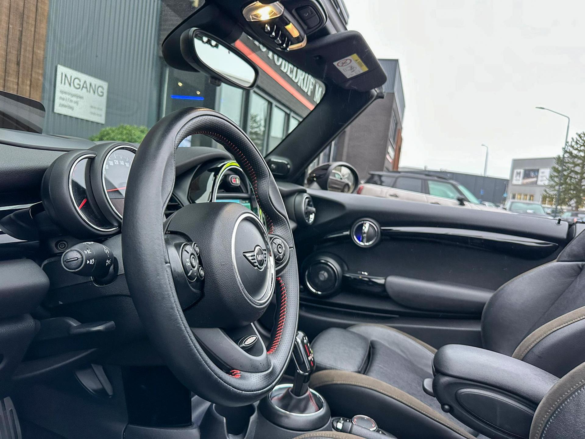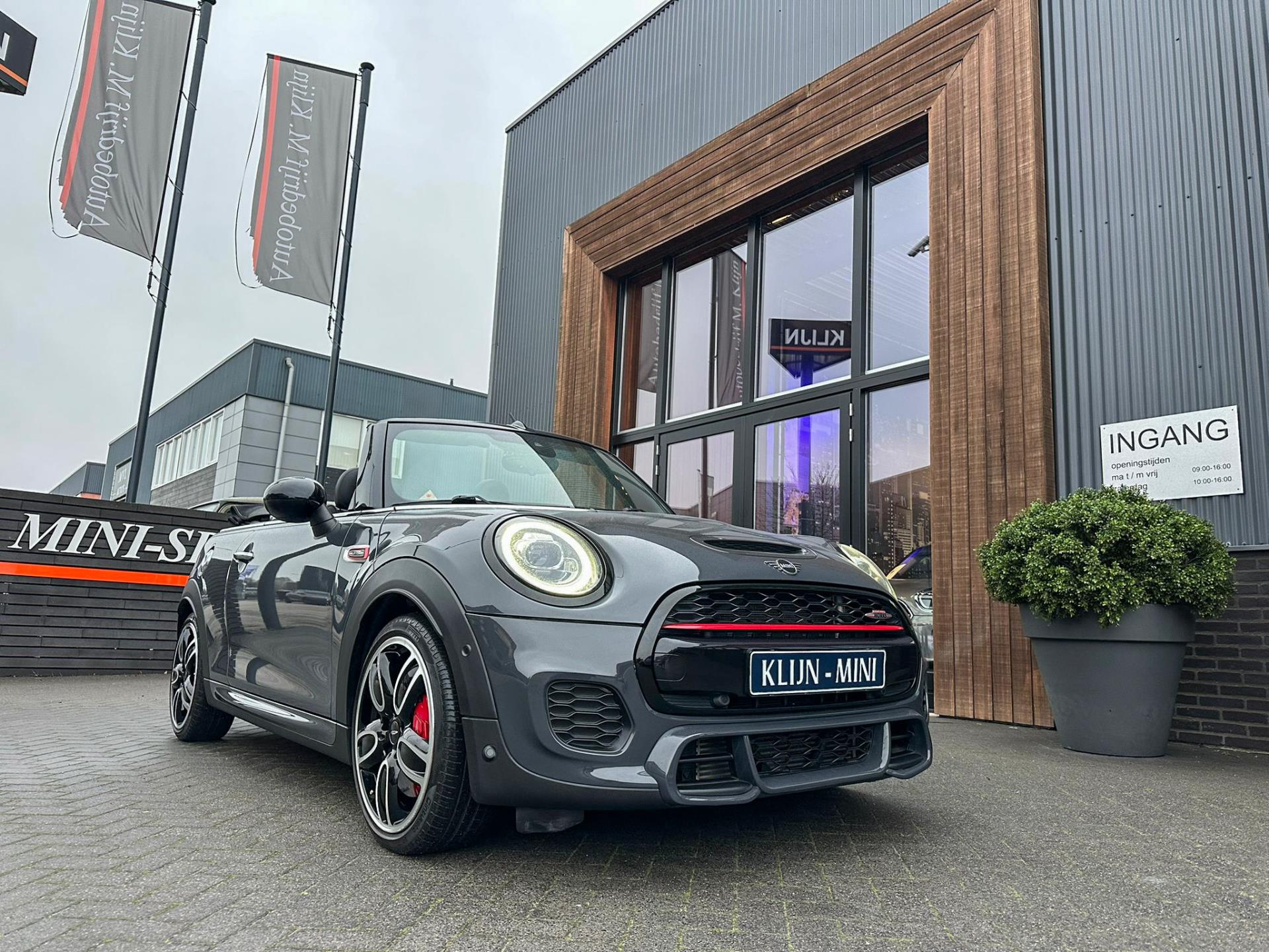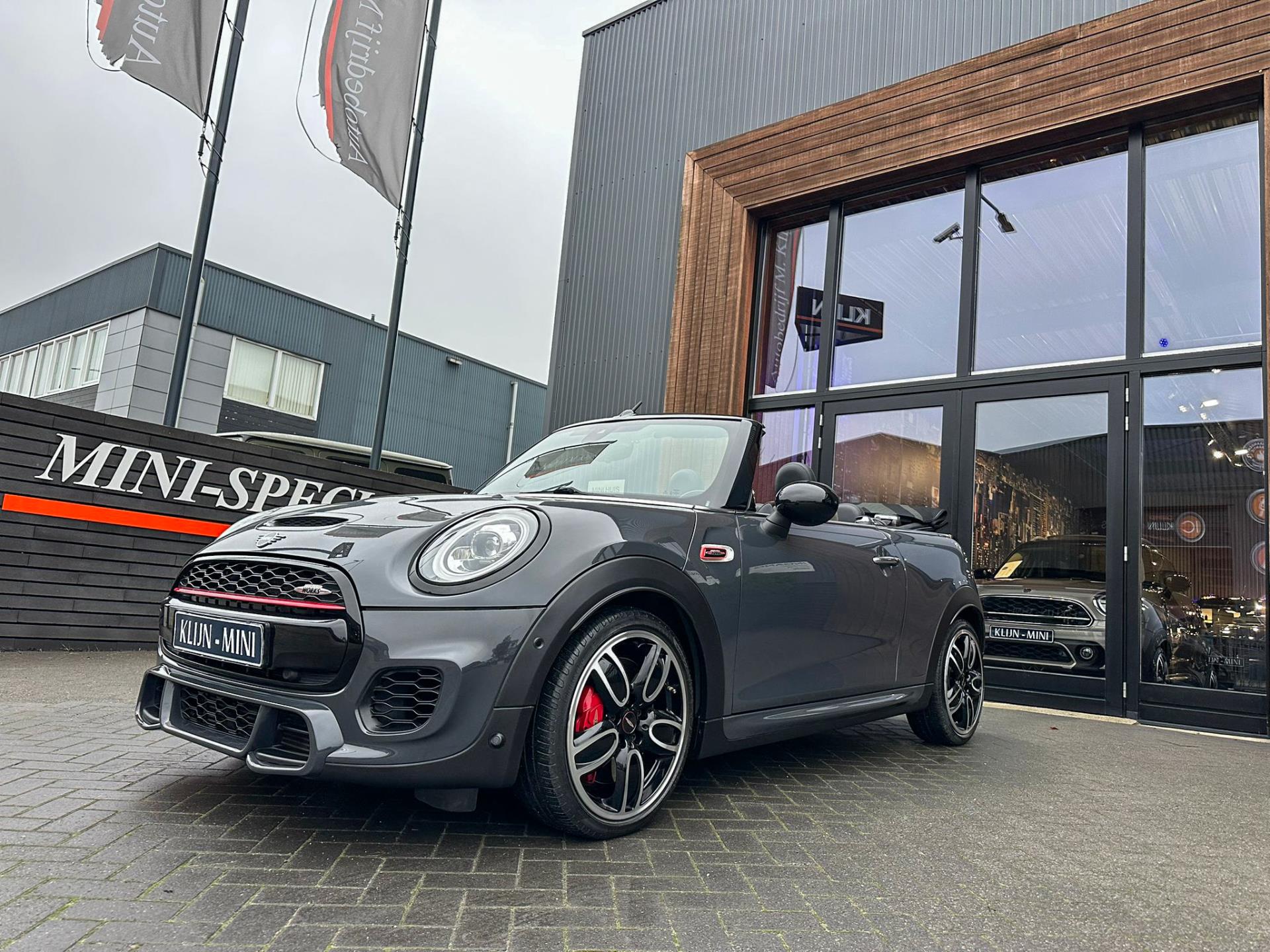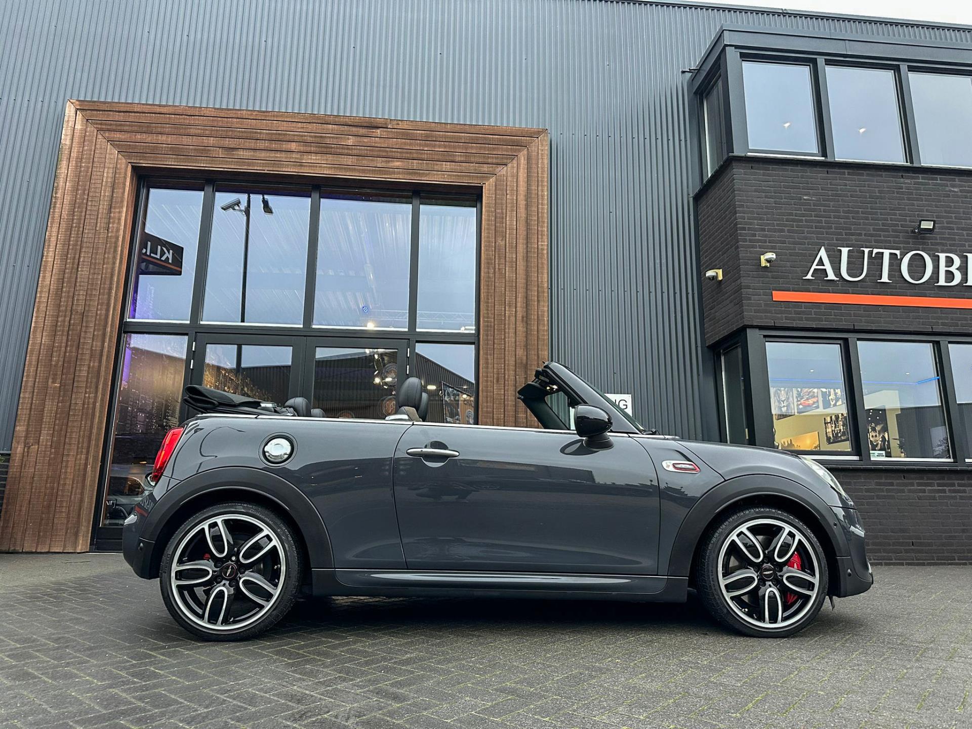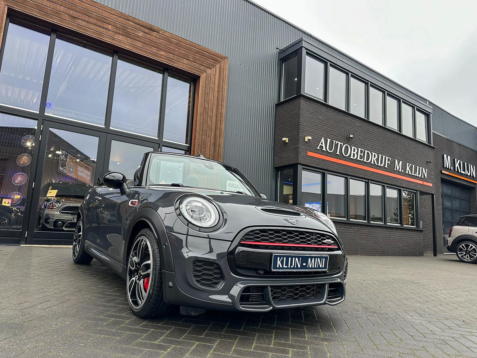Unieke origineel Hollands geleverde Mini John Cooper Works cabrio Blackline F1 sportautomaat met een 231pk motor in de prachtige kleur Thundergrey metallic en uitgevoerd met een Union Jack cabriokap.Deze schitterende Mini is uitgerust met alle denkbare opties:Climate control,vollederen interieur carbon black,sportstoelen,stoelverwarming,breedbeeld navigatie,Mini connected XL,head up display,achteruitrijcamera,adaptieve cruise control,Harman Kardon soundsystem,dab tuner,tel,usb,performence control,apple carplay,Mini driving modus,elektrische cabriokap,Union Jack cabriokap,lederen Jcw sportstuur met flipperschakel,mf stuur,automatisch dimmende binnenspiegel,regensensor,facelift model,full black pack, voetgangersbeveiliging,dtc,elektrisch inklapbare spiegels, parkeersensoren voor en achter,parkassist(Mini parkeert zelf in),union Jack achterlichten,led koplampen met uitgebreide functies,18 inch JCW circuit spoke velgen,lichtpakket met Mini logo's,actieve cruise control,gezichtspakket,chili 2 pakket,68.000km origineel Nap,nieuwprijs 57.000euro.Prachtig uitgevoerde Mini Jcw in concoursstaat voor de echte liefhebber.