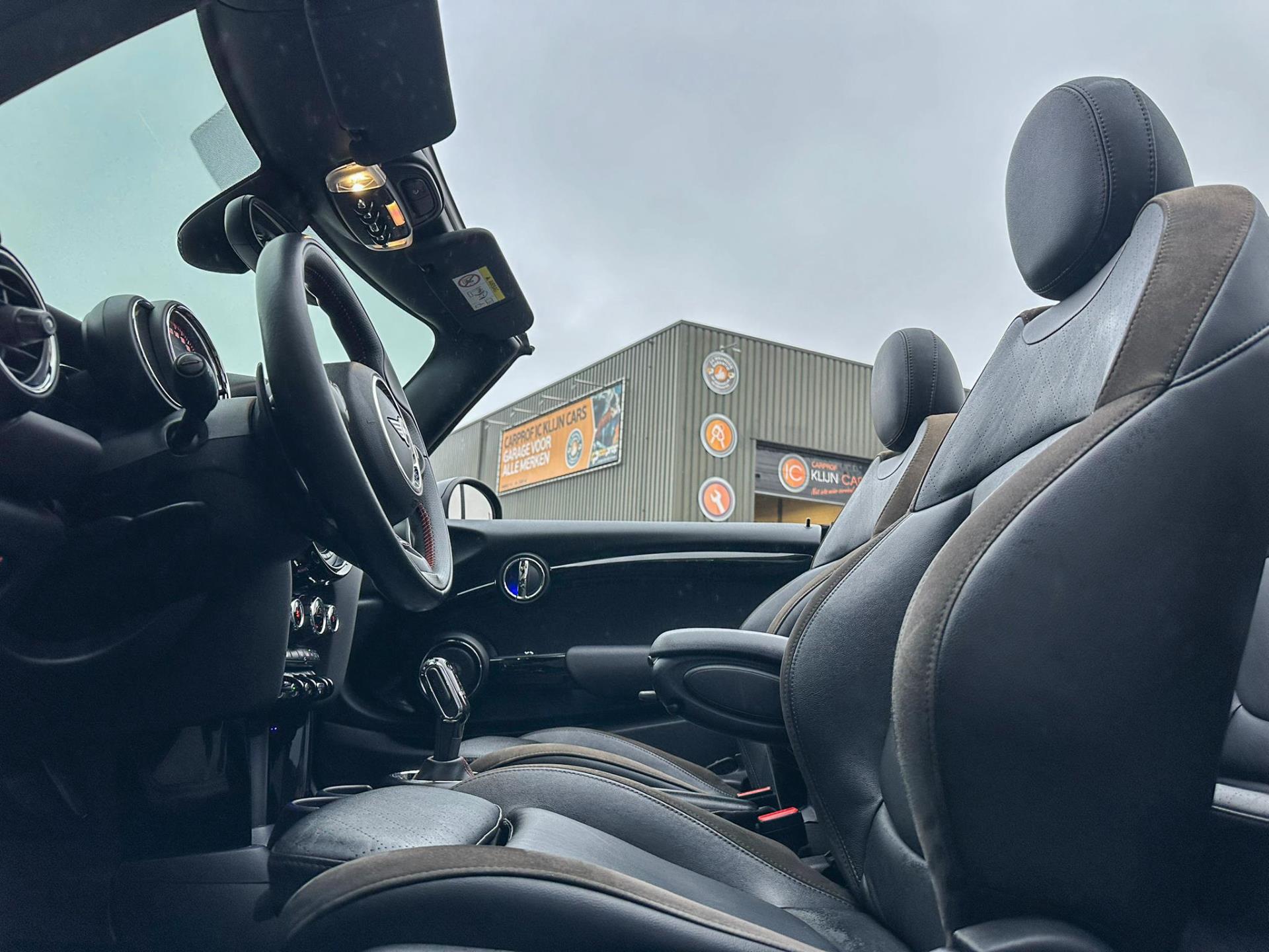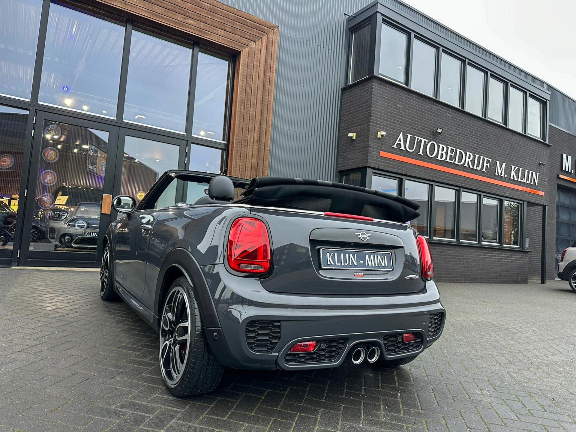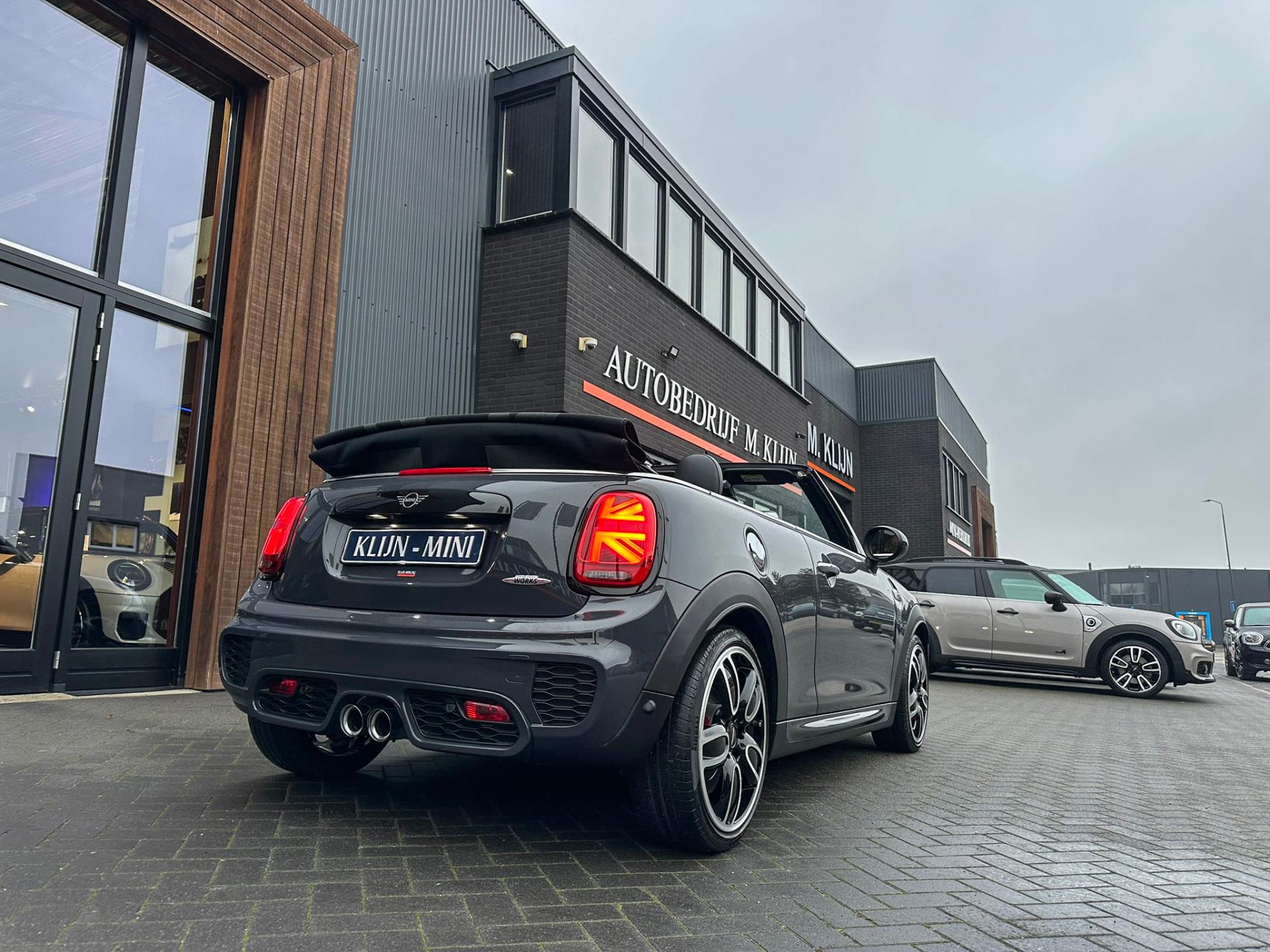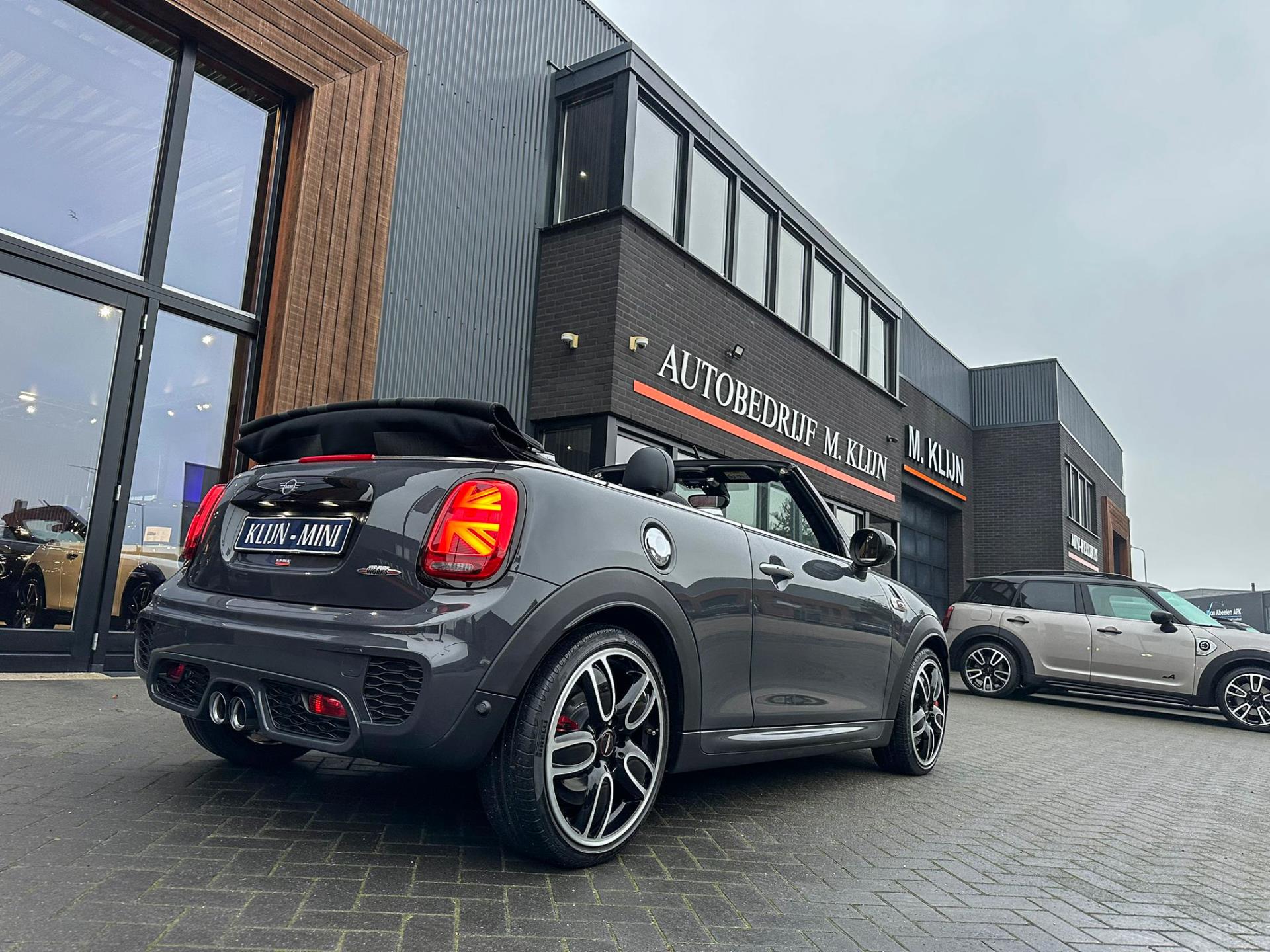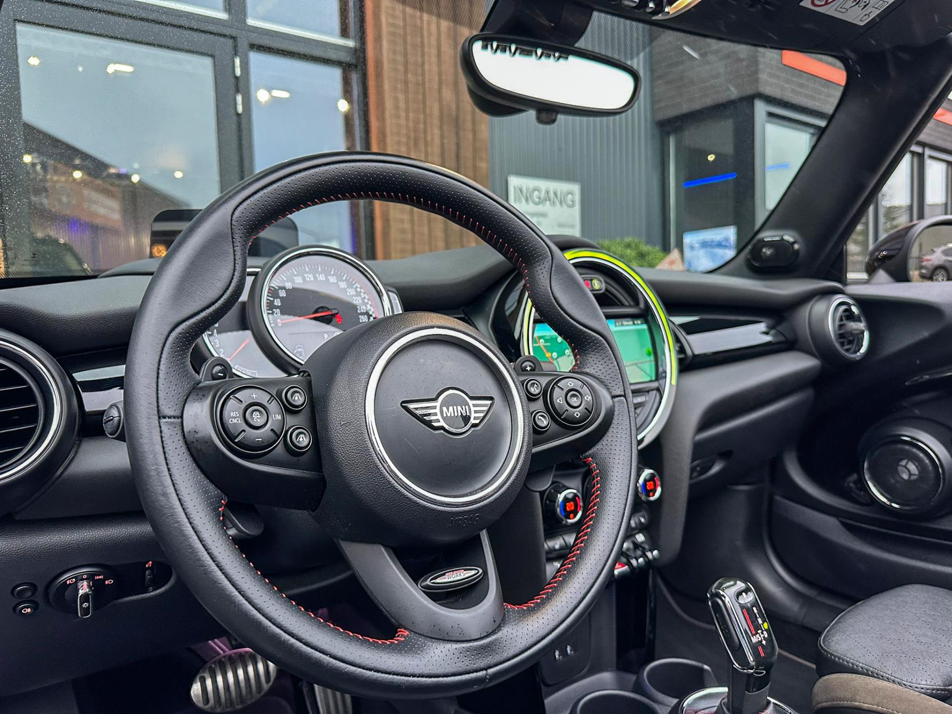 Unieke origineel Hollands geleverde Mini John Cooper Works cabrio Blackline F1 sportautomaat met een 231pk motor in de prachtige kleur Thundergrey metallic en uitgevoerd met een Union Jack cabriokap.Deze schitterende Mini is uitgerust met alle denkbare opties:Climate control,vollederen interieur carbon black,sportstoelen,stoelverwarming,breedbeeld navigatie,Mini connected XL,head up display,achteruitrijcamera,adaptieve cruise control,Harman Kardon soundsystem,dab tuner,tel,usb,performence control,apple carplay,Mini driving modus,elektrische cabriokap,Union Jack cabriokap,lederen Jcw sportstuur met flipperschakel,mf stuur,automatisch dimmende binnenspiegel,regensensor,facelift model,full black pack, voetgangersbeveiliging,dtc,elektrisch inklapbare spiegels, parkeersensoren voor en achter,parkassist(Mini parkeert zelf in),union Jack achterlichten,led koplampen met uitgebreide functies,18 inch JCW circuit spoke velgen,lichtpakket met Mini logo's,actieve cruise control,gezichtspakket,chili 2 pakket,68.000km origineel Nap,nieuwprijs 57.000euro.Prachtig uitgevoerde Mini Jcw in concoursstaat voor de echte liefhebber.