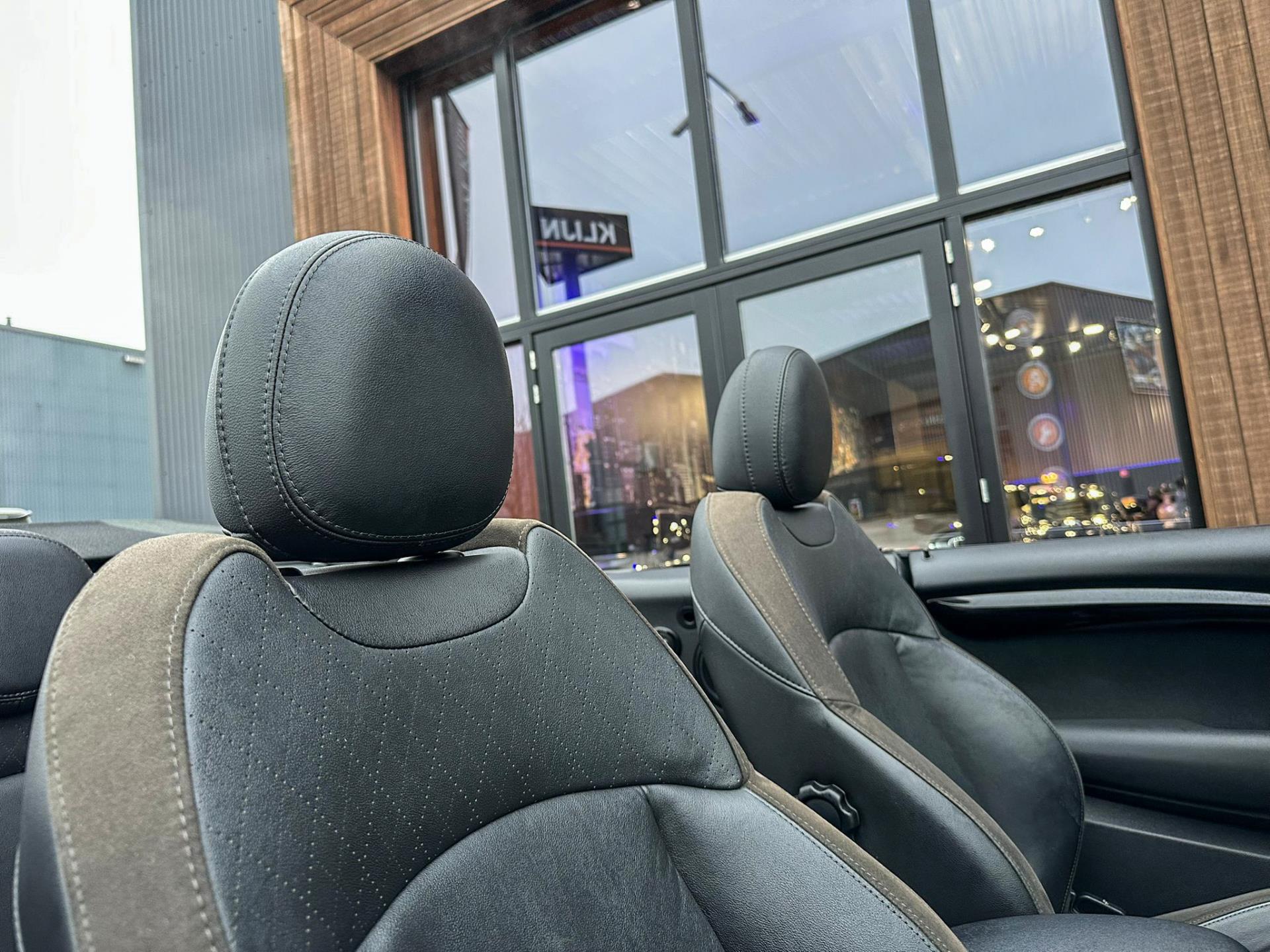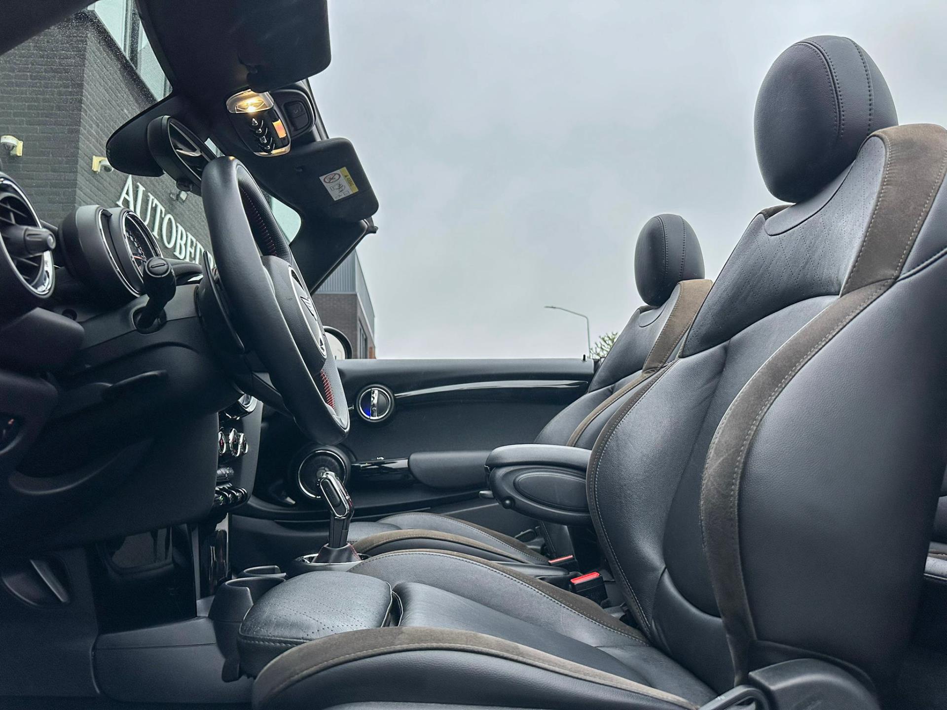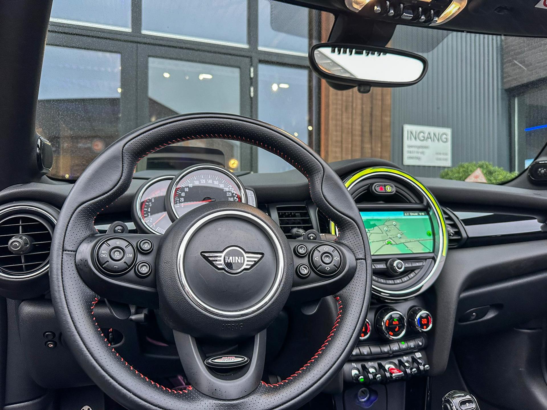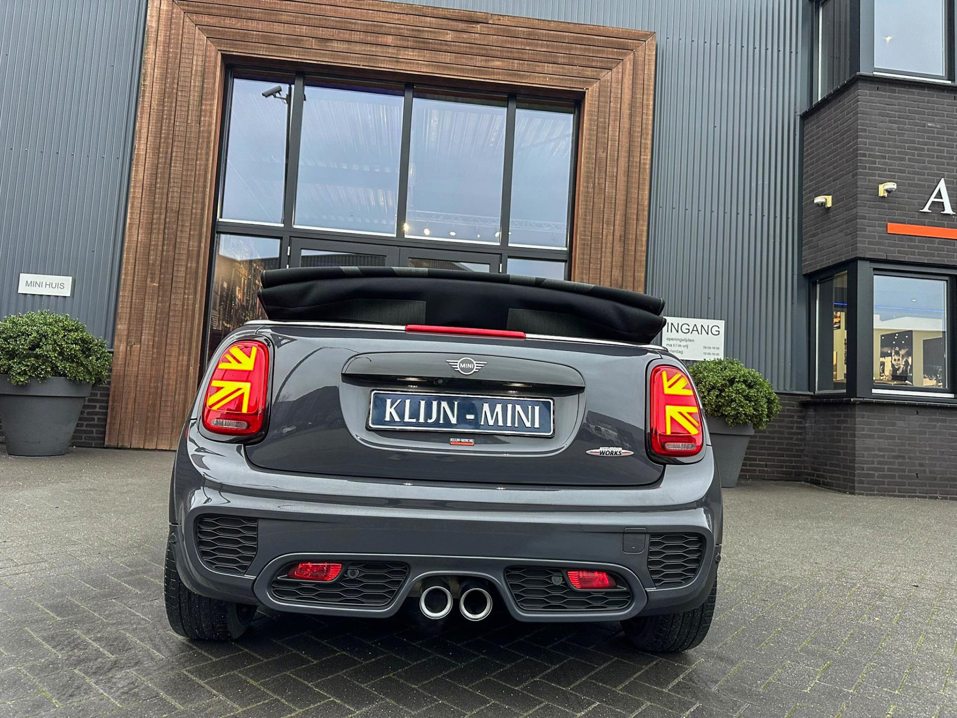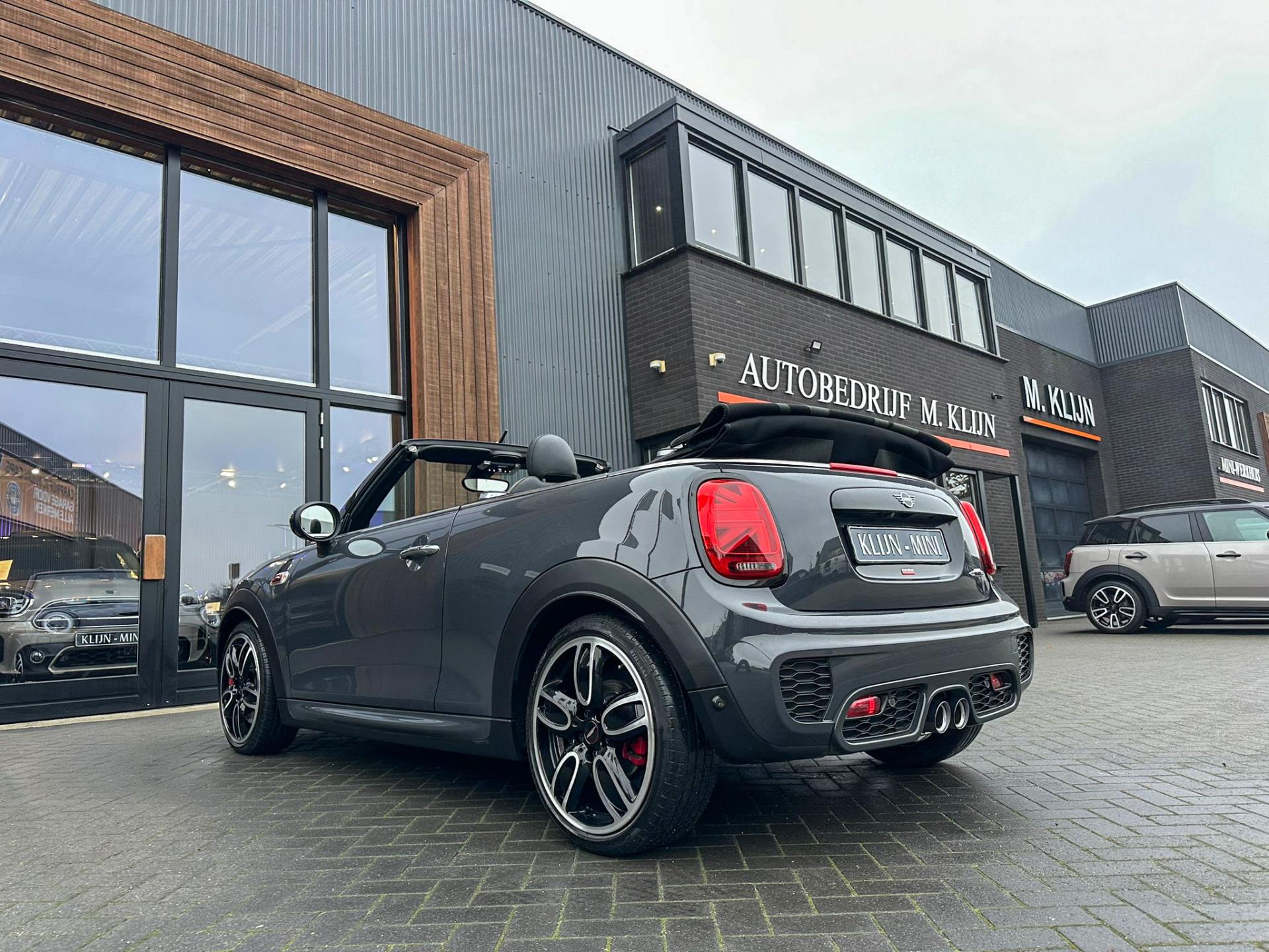 Unieke origineel Hollands geleverde Mini John Cooper Works cabrio Blackline F1 sportautomaat met een 231pk motor in de prachtige kleur Thundergrey metallic en uitgevoerd met een Union Jack cabriokap.Deze schitterende Mini is uitgerust met alle denkbare opties:Climate control,vollederen interieur carbon black,sportstoelen,stoelverwarming,breedbeeld navigatie,Mini connected XL,head up display,achteruitrijcamera,adaptieve cruise control,Harman Kardon soundsystem,dab tuner,tel,usb,performence control,apple carplay,Mini driving modus,elektrische cabriokap,Union Jack cabriokap,lederen Jcw sportstuur met flipperschakel,mf stuur,automatisch dimmende binnenspiegel,regensensor,facelift model,full black pack, voetgangersbeveiliging,dtc,elektrisch inklapbare spiegels, parkeersensoren voor en achter,parkassist(Mini parkeert zelf in),union Jack achterlichten,led koplampen met uitgebreide functies,18 inch JCW circuit spoke velgen,lichtpakket met Mini logo's,actieve cruise control,gezichtspakket,chili 2 pakket,68.000km origineel Nap,nieuwprijs 57.000euro.Prachtig uitgevoerde Mini Jcw in concoursstaat voor de echte liefhebber.