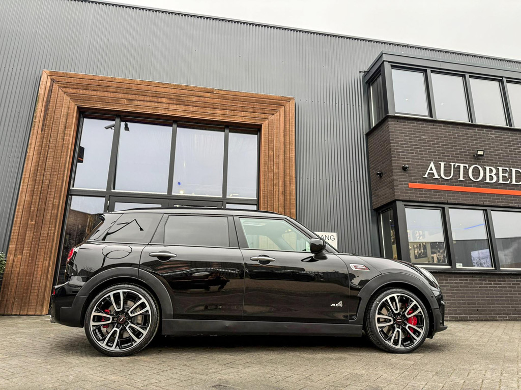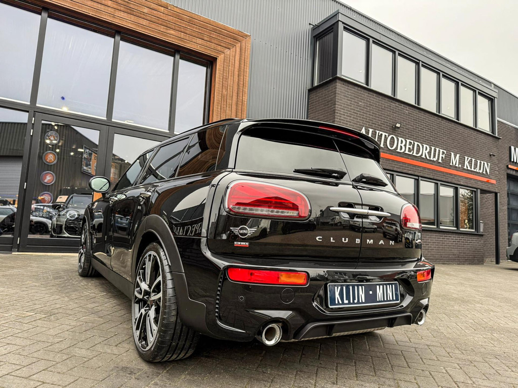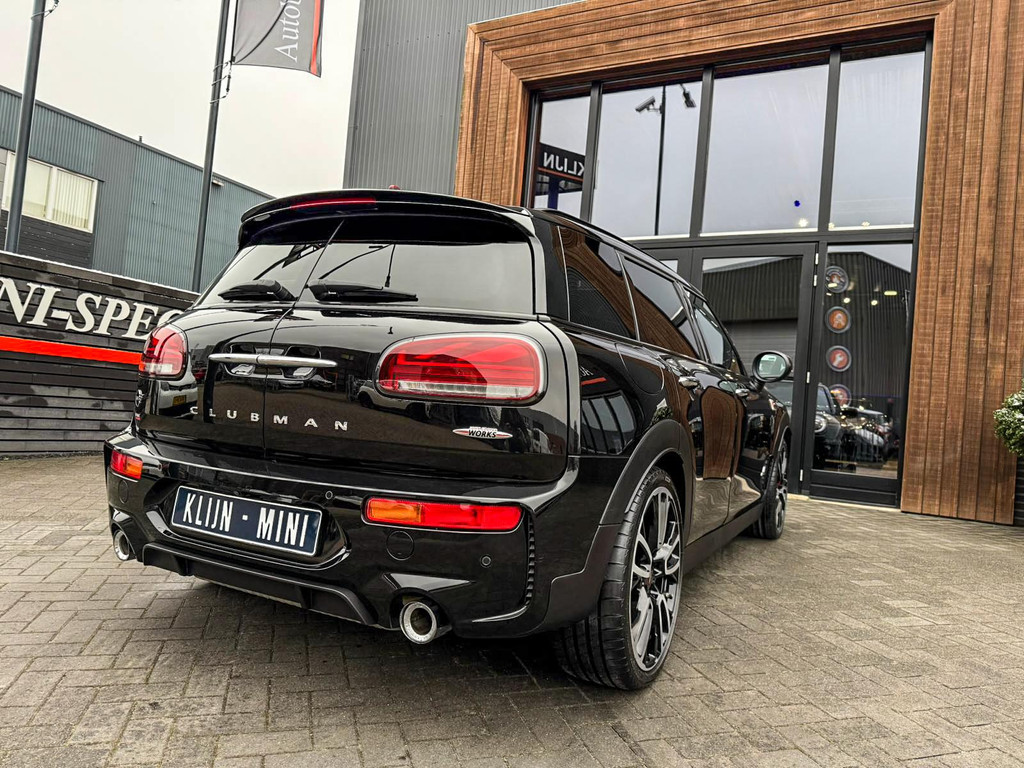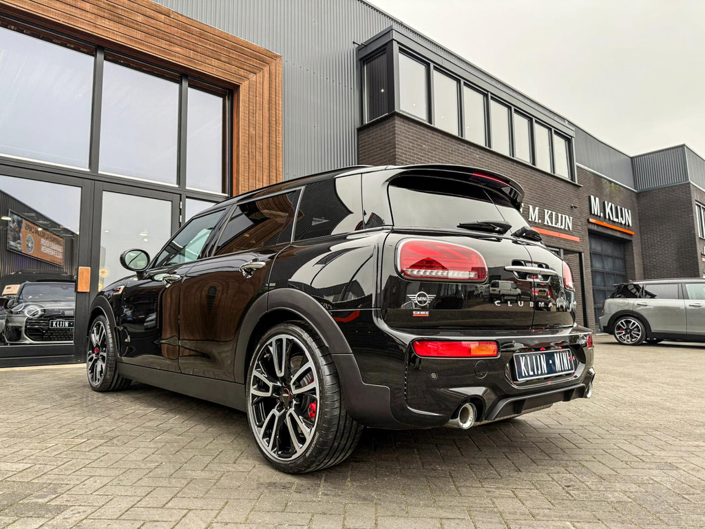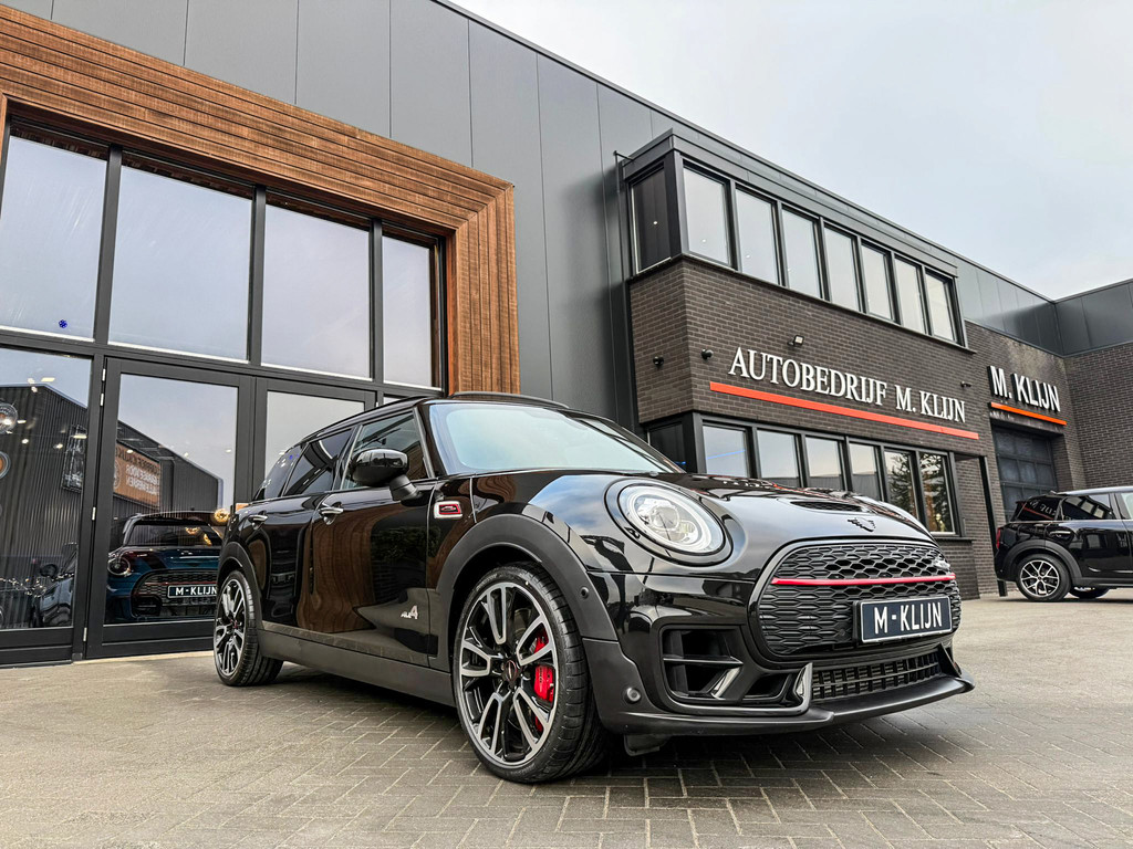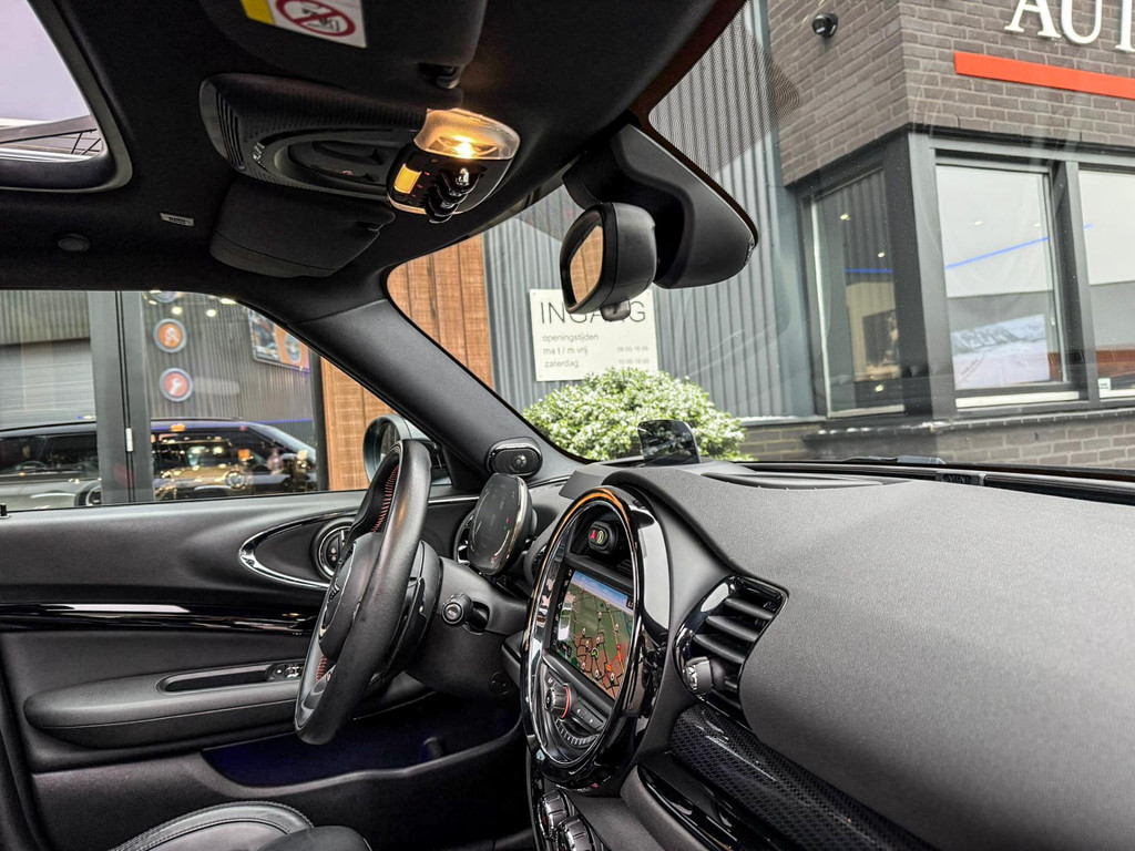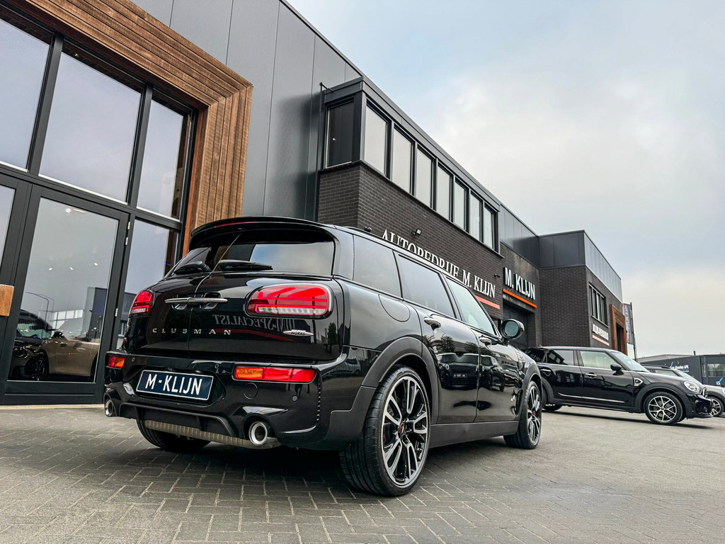 Zeer exclusieve facelift Mini Clubman John Cooper Works ALL4 F1 sportautomaat met een 306pk motor uitgevoerd in de prachtige kleur Midnightblack.Deze in werkelijk nieuwstaat verkerende Mini is uitgerust met alle maar dan ook alle denkbare opties oa:Climate control,vollederen interieur Carbon black,sportstoelen,stoelverwarming,virtual cockpit,breedbeeld dvd navigatie XL,Mini Connected XL,Harman Kardon soundsystem,head up display,adaptieve cruise control,keyless go,achteruitrijcamera,19" Jcw circuit spoke velgen,sportpakket,vierwielaandrijving,led verlichting,elektrisch bedienbare glazen panoramadak,5 persoons,privacyglass,lederen Jcw sportstuur met F1 flipperschakel,lichtpakket met Mini logo's,alarm,welcome pakket,dakrailing zwart,parkeersensoren voor en achter,parkassist(auto parkeert zelf in),F1 schakel op stuur,actieve voetgangersbeveiliging,lc scherm,virtual cockpit,Mini driving modus,donker dakhemel,mf stuur,Apple Carplay,dab radio,boordcomputer,blackline,regensensor,verwarmde voorruit,Union Jack achterlichten,vierwielaandrijving,armsteun,chili 2 pakket,alle boekjes+originele sleutels,Btw auto,1e eigenaar,85.000km origineel,nieuwprijs 71.900,-.Schitterende en unieke Mini Clubman Works in concoursstaat voor de echte liefhebber