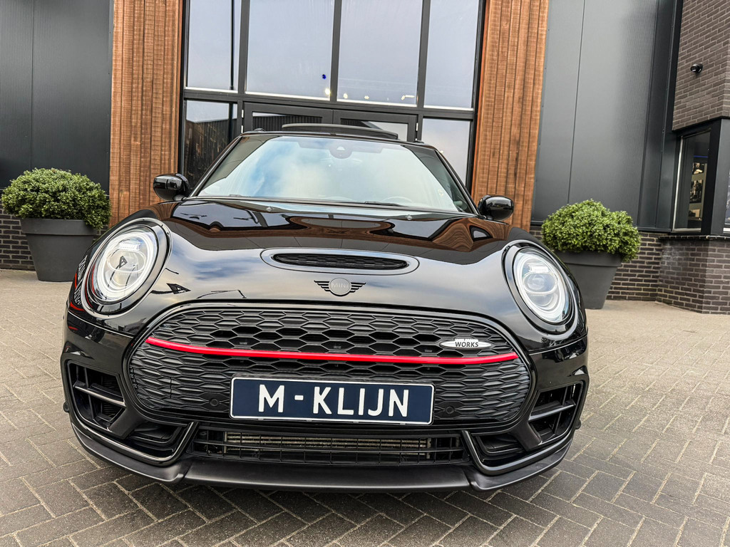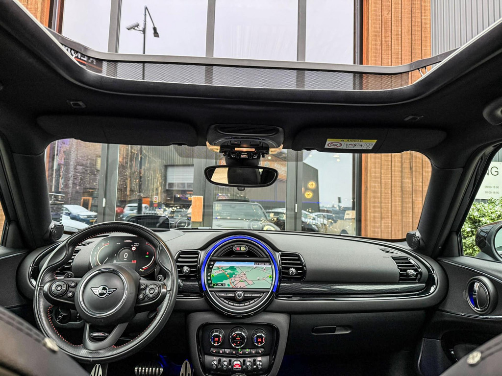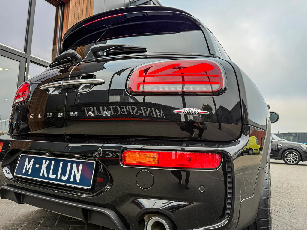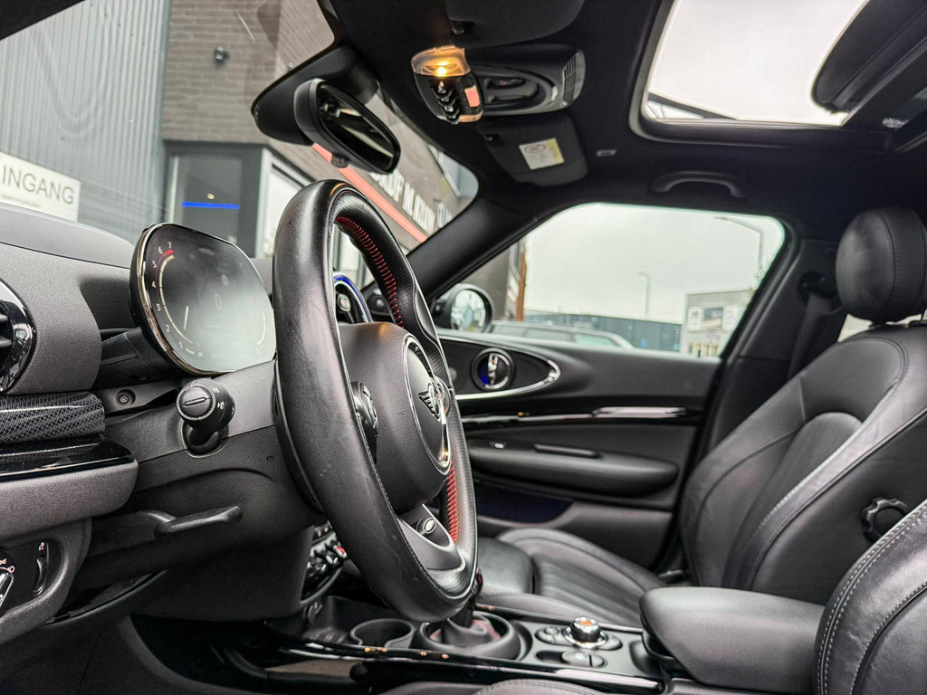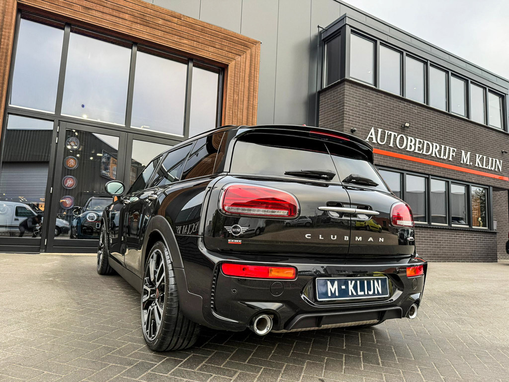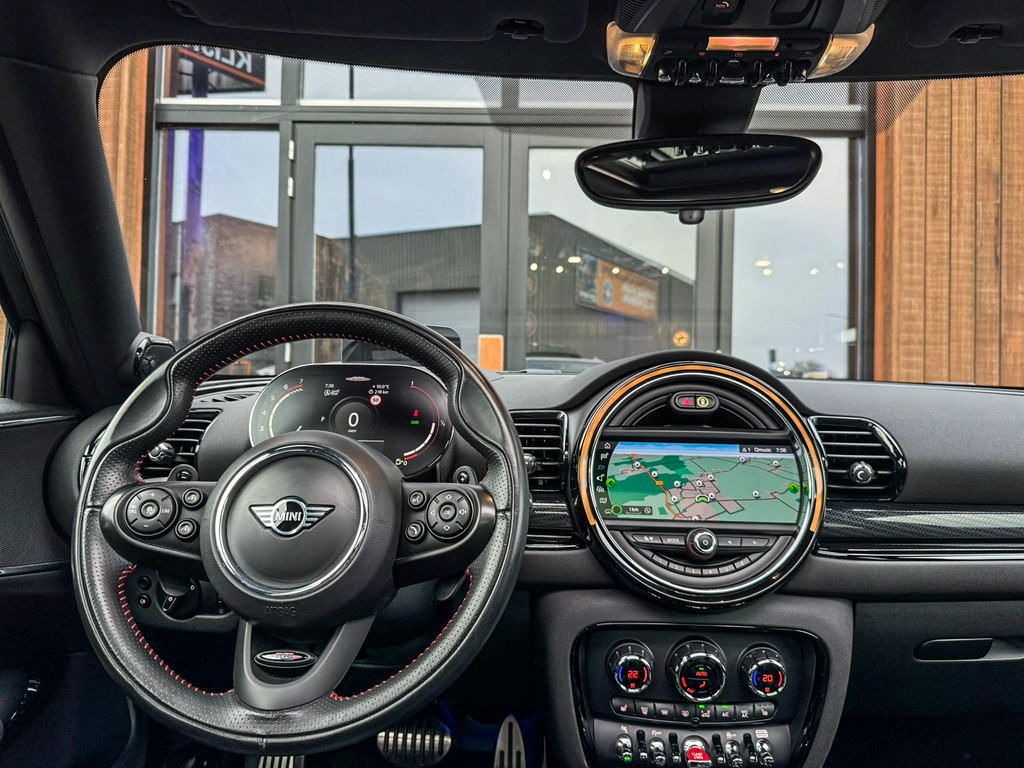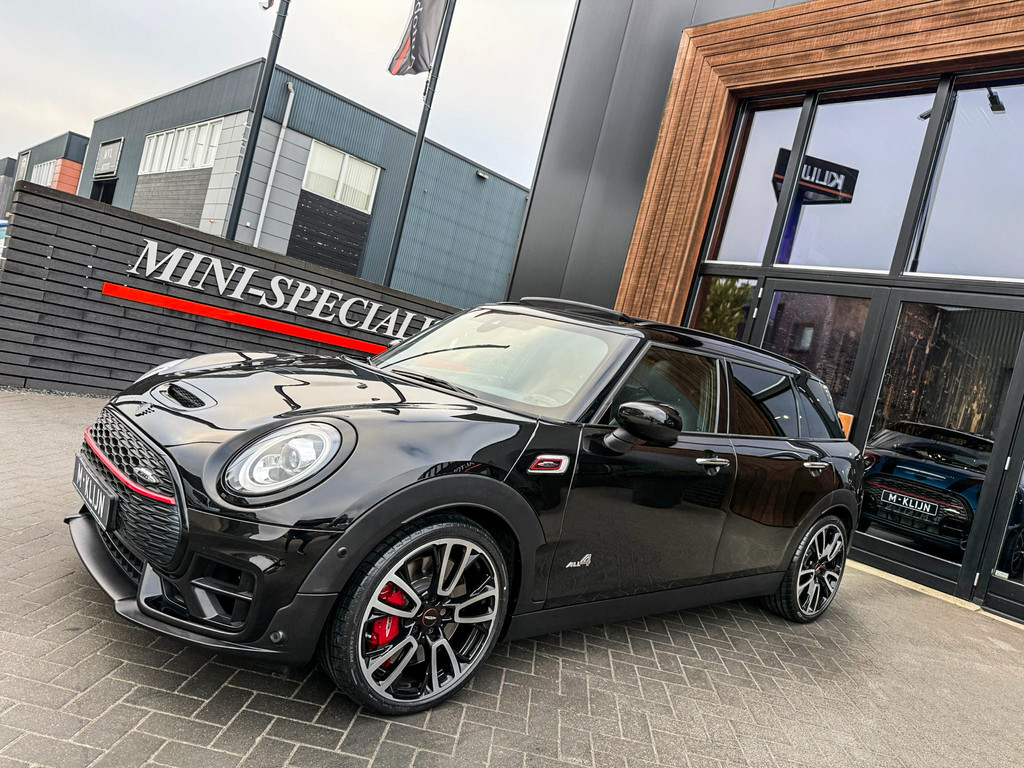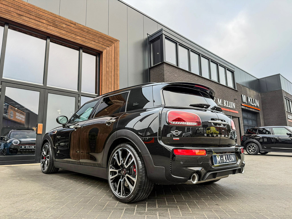 Zeer exclusieve facelift Mini Clubman John Cooper Works ALL4 F1 sportautomaat met een 306pk motor uitgevoerd in de prachtige kleur Midnightblack.Deze in werkelijk nieuwstaat verkerende Mini is uitgerust met alle maar dan ook alle denkbare opties oa:Climate control,vollederen interieur Carbon black,sportstoelen,stoelverwarming,virtual cockpit,breedbeeld dvd navigatie XL,Mini Connected XL,Harman Kardon soundsystem,head up display,adaptieve cruise control,keyless go,achteruitrijcamera,19" Jcw circuit spoke velgen,sportpakket,vierwielaandrijving,led verlichting,elektrisch bedienbare glazen panoramadak,5 persoons,privacyglass,lederen Jcw sportstuur met F1 flipperschakel,lichtpakket met Mini logo's,alarm,welcome pakket,dakrailing zwart,parkeersensoren voor en achter,parkassist(auto parkeert zelf in),F1 schakel op stuur,actieve voetgangersbeveiliging,lc scherm,virtual cockpit,Mini driving modus,donker dakhemel,mf stuur,Apple Carplay,dab radio,boordcomputer,blackline,regensensor,verwarmde voorruit,Union Jack achterlichten,vierwielaandrijving,armsteun,chili 2 pakket,alle boekjes+originele sleutels,Btw auto,1e eigenaar,85.000km origineel,nieuwprijs 71.900,-.Schitterende en unieke Mini Clubman Works in concoursstaat voor de echte liefhebber