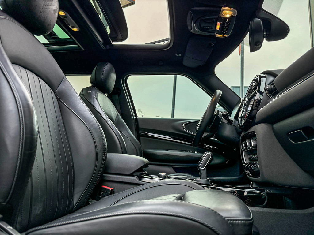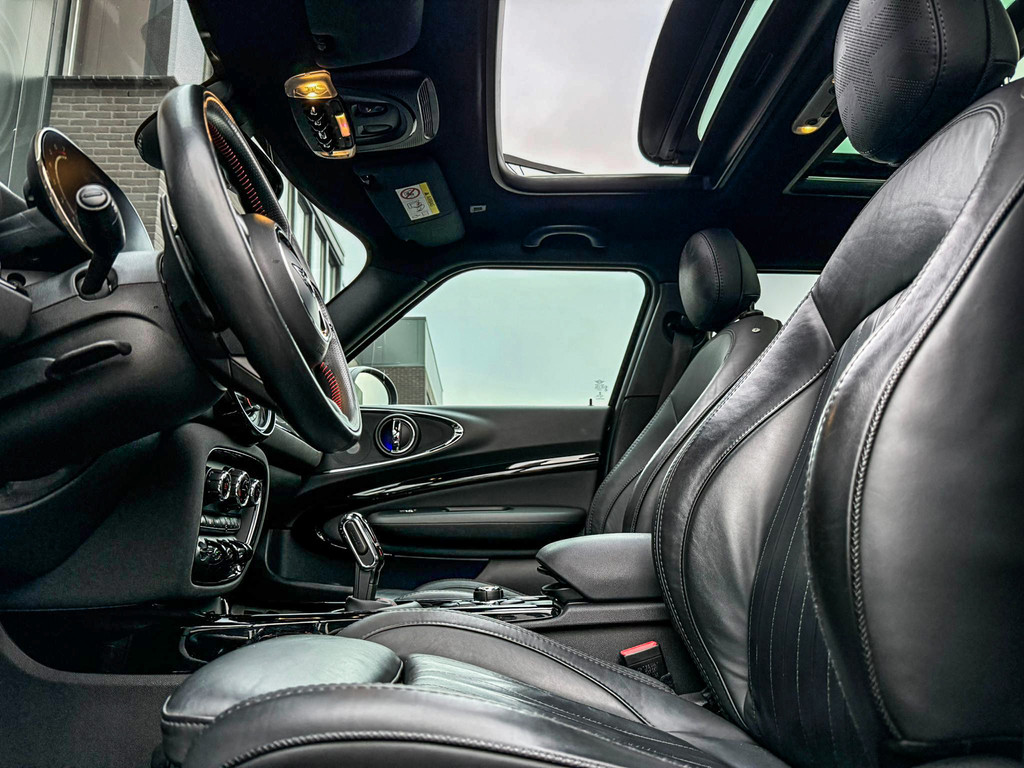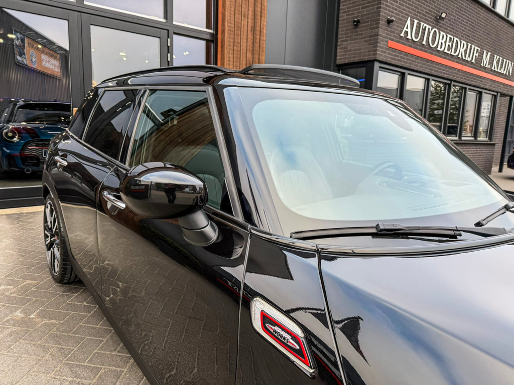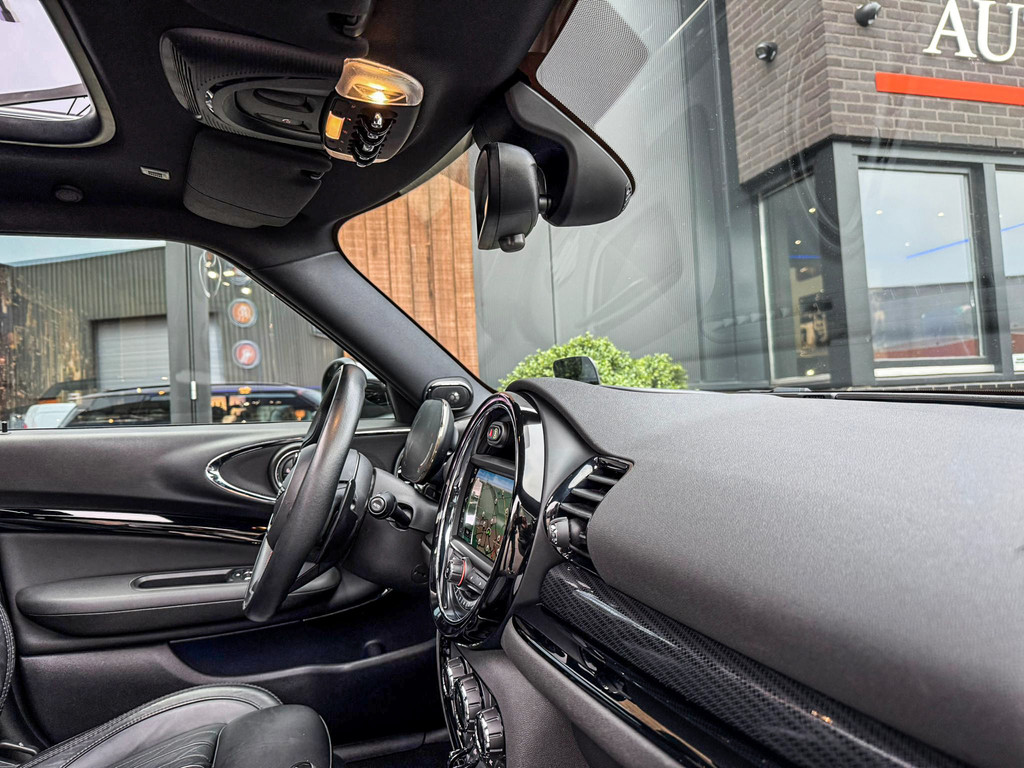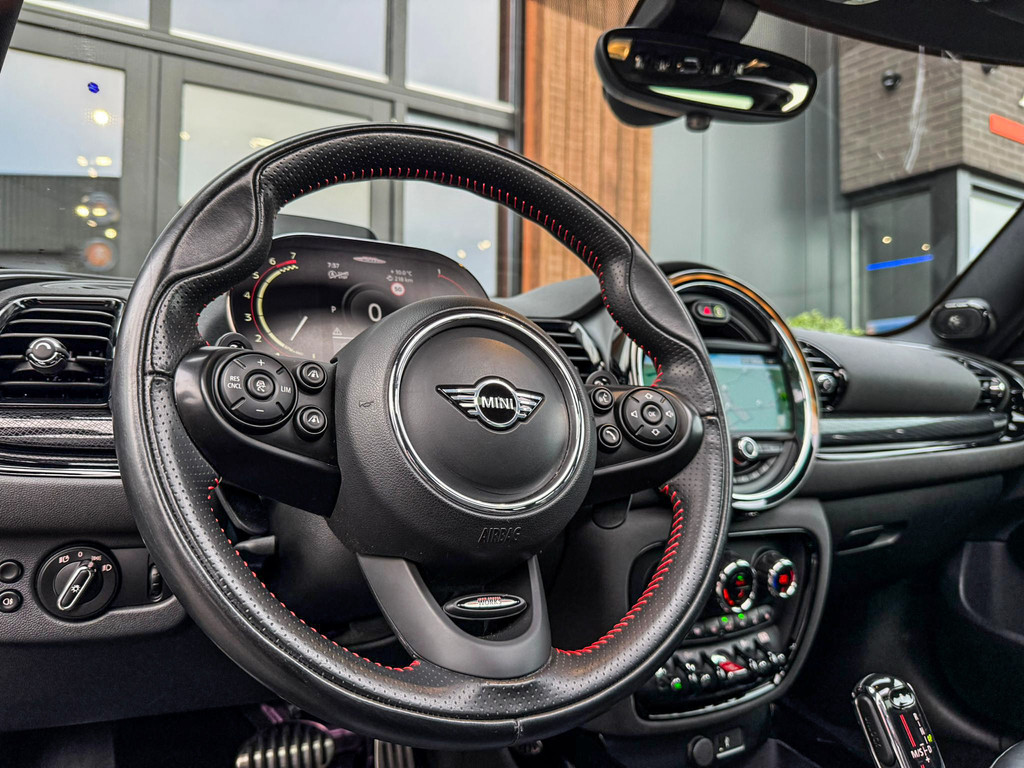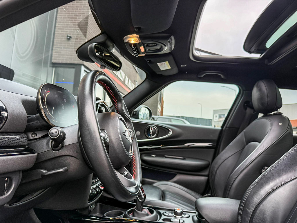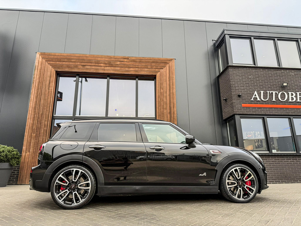 Zeer exclusieve facelift Mini Clubman John Cooper Works ALL4 F1 sportautomaat met een 306pk motor uitgevoerd in de prachtige kleur Midnightblack.Deze in werkelijk nieuwstaat verkerende Mini is uitgerust met alle maar dan ook alle denkbare opties oa:Climate control,vollederen interieur Carbon black,sportstoelen,stoelverwarming,virtual cockpit,breedbeeld dvd navigatie XL,Mini Connected XL,Harman Kardon soundsystem,head up display,adaptieve cruise control,keyless go,achteruitrijcamera,19" Jcw circuit spoke velgen,sportpakket,vierwielaandrijving,led verlichting,elektrisch bedienbare glazen panoramadak,5 persoons,privacyglass,lederen Jcw sportstuur met F1 flipperschakel,lichtpakket met Mini logo's,alarm,welcome pakket,dakrailing zwart,parkeersensoren voor en achter,parkassist(auto parkeert zelf in),F1 schakel op stuur,actieve voetgangersbeveiliging,lc scherm,virtual cockpit,Mini driving modus,donker dakhemel,mf stuur,Apple Carplay,dab radio,boordcomputer,blackline,regensensor,verwarmde voorruit,Union Jack achterlichten,vierwielaandrijving,armsteun,chili 2 pakket,alle boekjes+originele sleutels,Btw auto,1e eigenaar,85.000km origineel,nieuwprijs 71.900,-.Schitterende en unieke Mini Clubman Works in concoursstaat voor de echte liefhebber