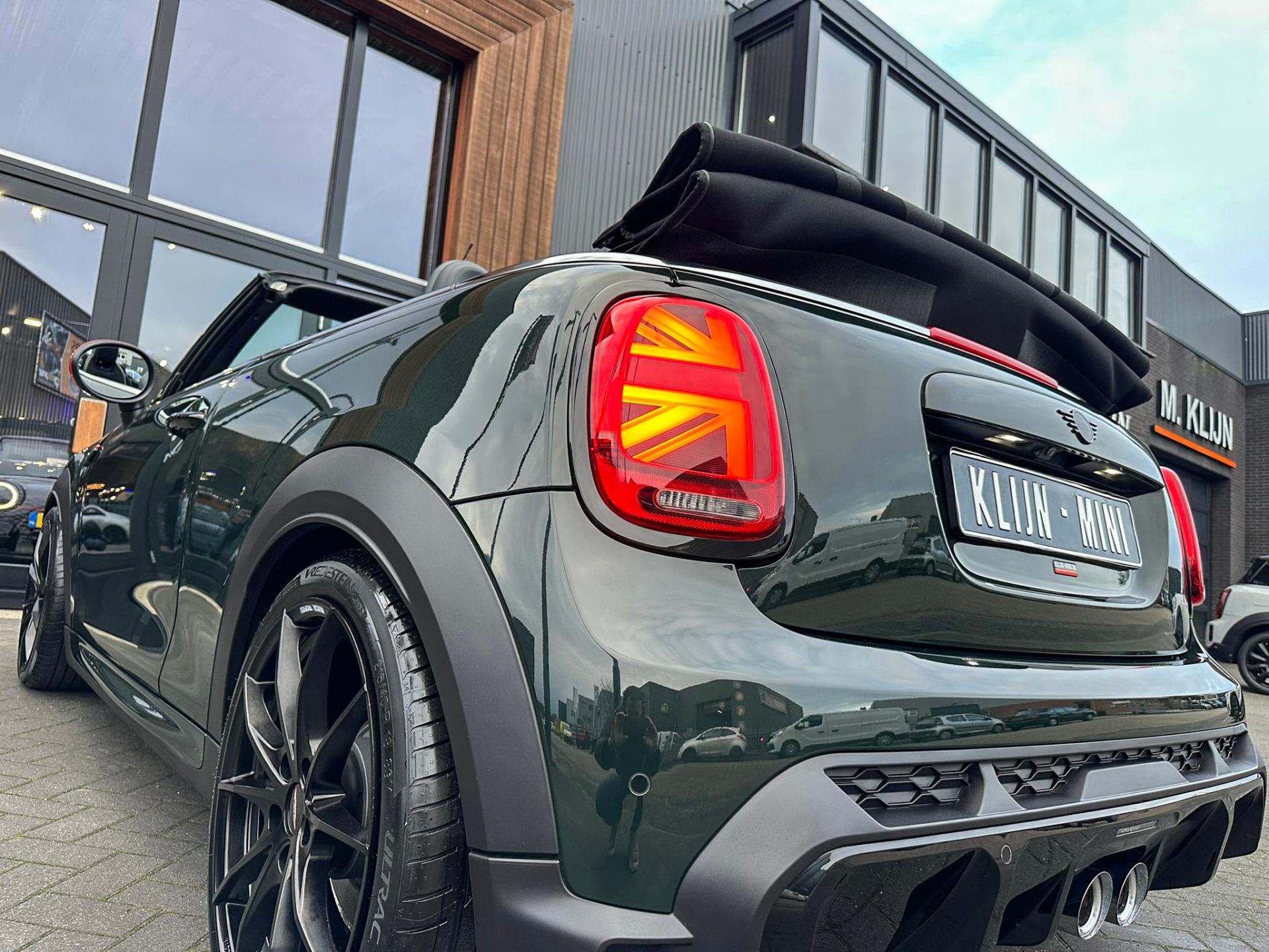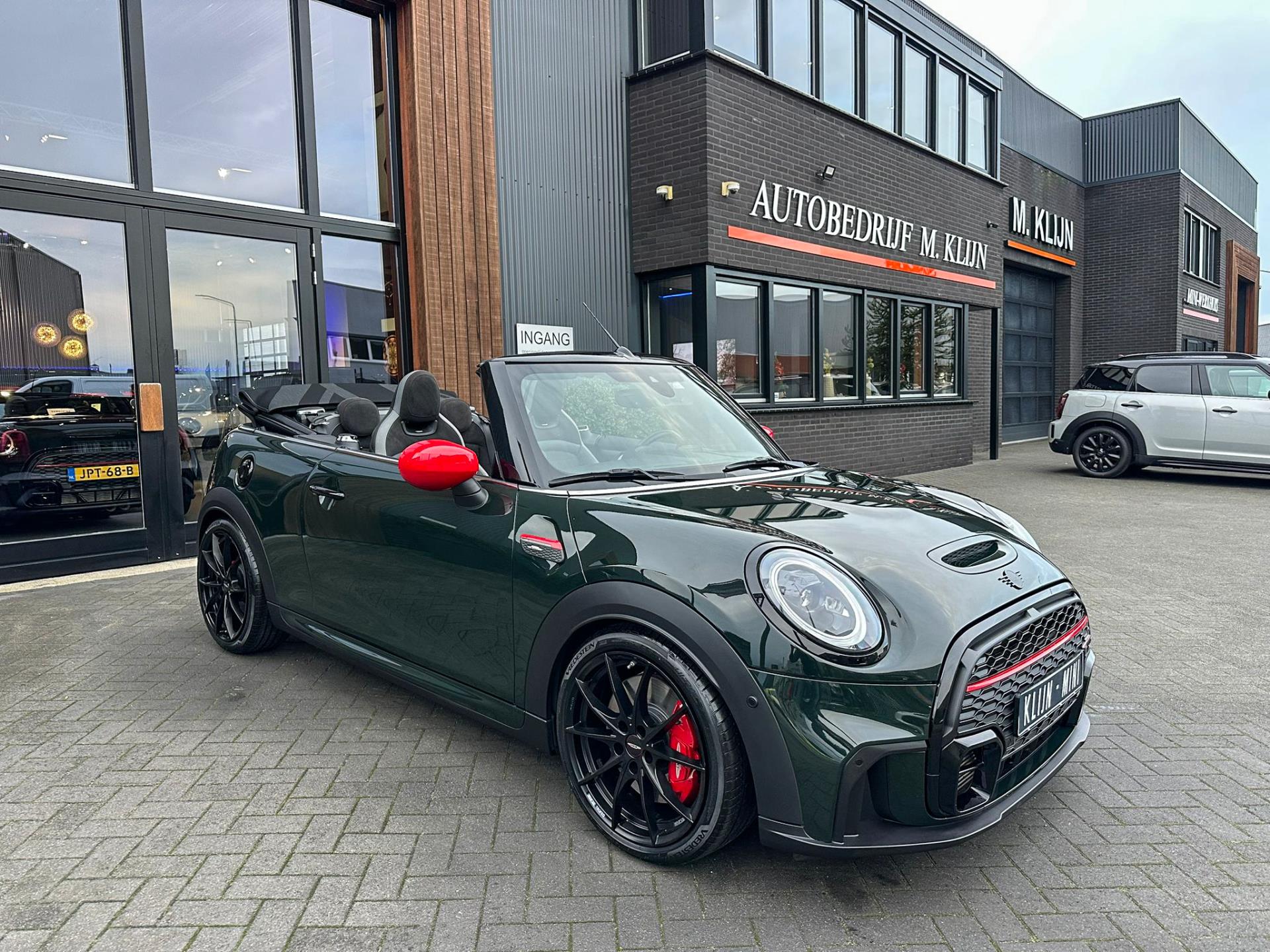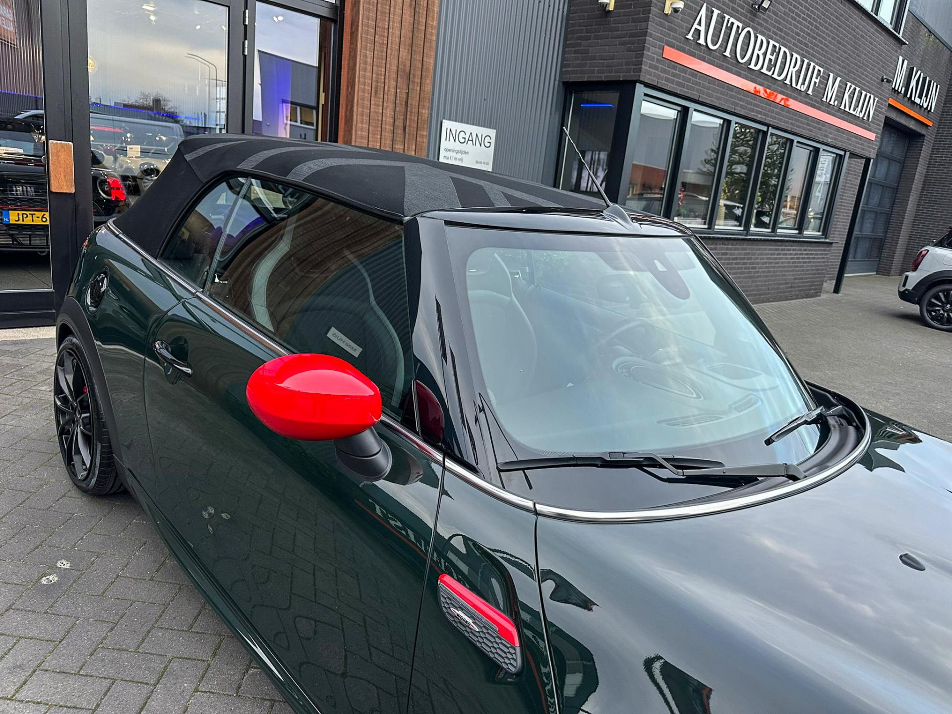 Unieke Mini John Cooper Works cabrio Blackline F1 sportautomaat met een 231pk motor in de prachtige kleur Rebel Green en uitgevoerd met een Union Jack cabriokap.Deze schitterende Mini is uitgerust met alle maar dan ook alle denkbare opties:Climate control,lederen/dinamica Jcw interieur,sportstoelen,stoelverwarming,stuurwiel verwarmd,virtual cockpit,breedbeeld navigatie,Mini connected XL,head up display,Harman Kardon soundsystem,achteruitrijcamera,adaptieve cruise control,dab tuner,tel,usb,performence control,apple carplay,Mini driving modus,elektrische cabriokap,Union Jack cabriokap,lederen Jcw sportstuur met flipperschakel,mf stuur,automatisch dimmende binnenspiegel, regensensor,verwarmde voorruit,facelift,full blackpack, voetgangersbeveiliging,dtc,elektrisch inklapbare spiegels, parkeersensoren voor en achter,alarm,parkassist(Mini parkeert zelf in),union Jack achterlichten,led koplampen met uitgebreide functies,18 inch Sparco Trofeo velgen,lichtpakket met Mini logo's,actieve cruise control,gezichtspakket,chili 2 pakket,43.000km origineel,nieuwprijs 63.000euro.Prachtig uitgevoerde Mini Jcw in concoursstaat voor de echte liefhebber