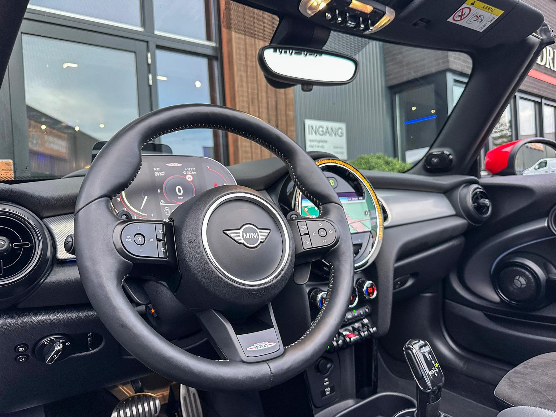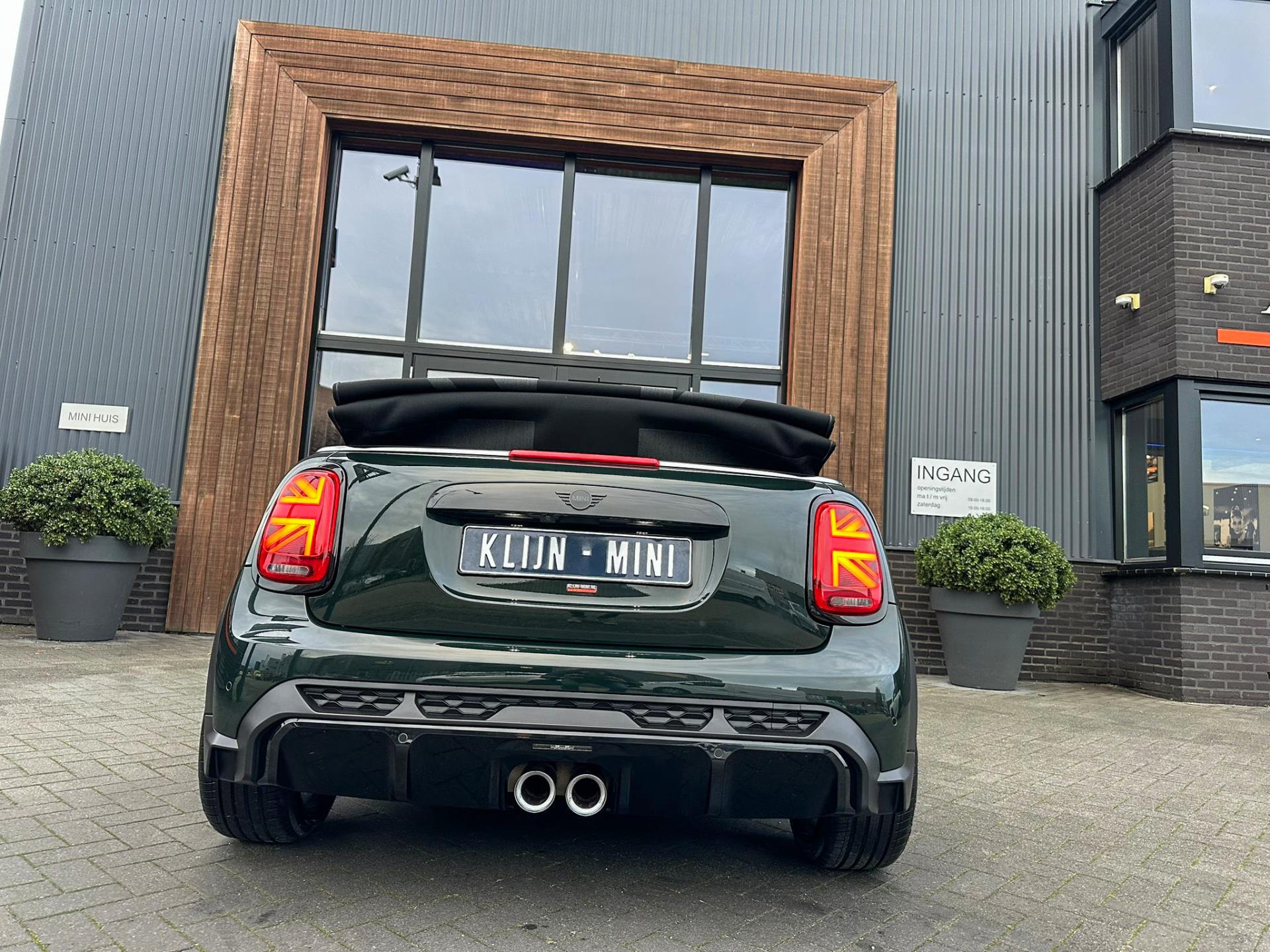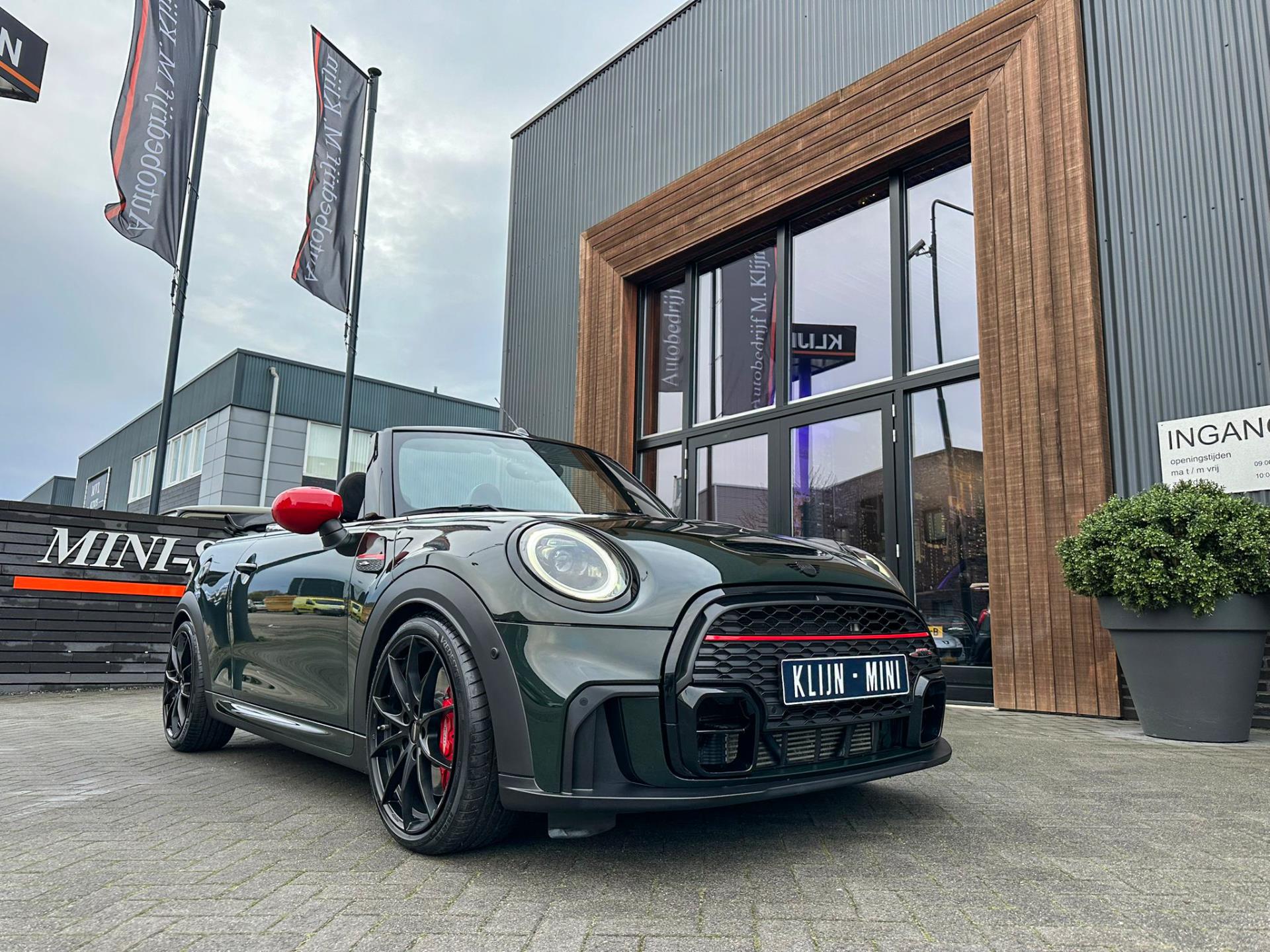 Unieke Mini John Cooper Works cabrio Blackline F1 sportautomaat met een 231pk motor in de prachtige kleur Rebel Green en uitgevoerd met een Union Jack cabriokap.Deze schitterende Mini is uitgerust met alle maar dan ook alle denkbare opties:Climate control,lederen/dinamica Jcw interieur,sportstoelen,stoelverwarming,stuurwiel verwarmd,virtual cockpit,breedbeeld navigatie,Mini connected XL,head up display,Harman Kardon soundsystem,achteruitrijcamera,adaptieve cruise control,dab tuner,tel,usb,performence control,apple carplay,Mini driving modus,elektrische cabriokap,Union Jack cabriokap,lederen Jcw sportstuur met flipperschakel,mf stuur,automatisch dimmende binnenspiegel, regensensor,verwarmde voorruit,facelift,full blackpack, voetgangersbeveiliging,dtc,elektrisch inklapbare spiegels, parkeersensoren voor en achter,alarm,parkassist(Mini parkeert zelf in),union Jack achterlichten,led koplampen met uitgebreide functies,18 inch Sparco Trofeo velgen,lichtpakket met Mini logo's,actieve cruise control,gezichtspakket,chili 2 pakket,43.000km origineel,nieuwprijs 63.000euro.Prachtig uitgevoerde Mini Jcw in concoursstaat voor de echte liefhebber