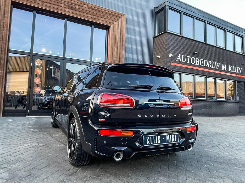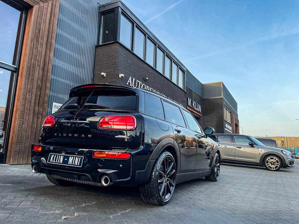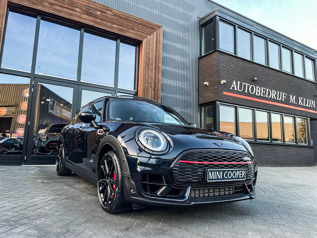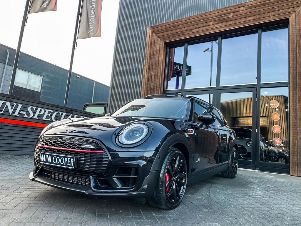 Zeer exclusieve facelift Mini Clubman John Cooper Works ALL4 F1 sportautomaat met een 306pk motor uitgevoerd in de prachtige kleur Enigmatic black metallic.Deze in werkelijk nieuwstaat verkerende Mini is uitgerust met alle maar dan ook alle denkbare opties oa:Climate control,leder/dinamica interieur,Jcw sportstoelen,stoelverwarming,virtual cockpit,breedbeeld dvd navigatie XL,Mini Connected XL,Harman Kardon soundsystem,head up display,adaptieve cruise control,keyless go,achteruitrijcamera,18" lichtmetalen velgen zwart,sportpakket,vierwielaandrijving,led verlichting,elektrisch bedienbare glazen panoramadak,5 persoons,privacyglass,lederen Jcw sportstuur met F1 flipperschakel,lichtpakket met Mini logo's,alarm,welcome pakket,parkeersensoren voor en achter,parkassist(auto parkeert zelf in),F1 schakel op stuur,actieve voetgangersbeveiliging,lc scherm,virtual cockpit,Mini driving modus,donker dakhemel,dakrailing zwart,mf stuur,Apple Carplay,dab radio,boordcomputer,blackline,verwarmde voorruit,regensensor,Union Jack achterlichten,vierwielaandrijving,armsteun,chili 2 pakket,alle boekjes+originele sleutels,1e eigenaar,62.000km origineel,Btw auto,nieuwprijs 72.800,-.Schitterende en unieke Mini Clubman Works in concoursstaat voor de echte liefhebber