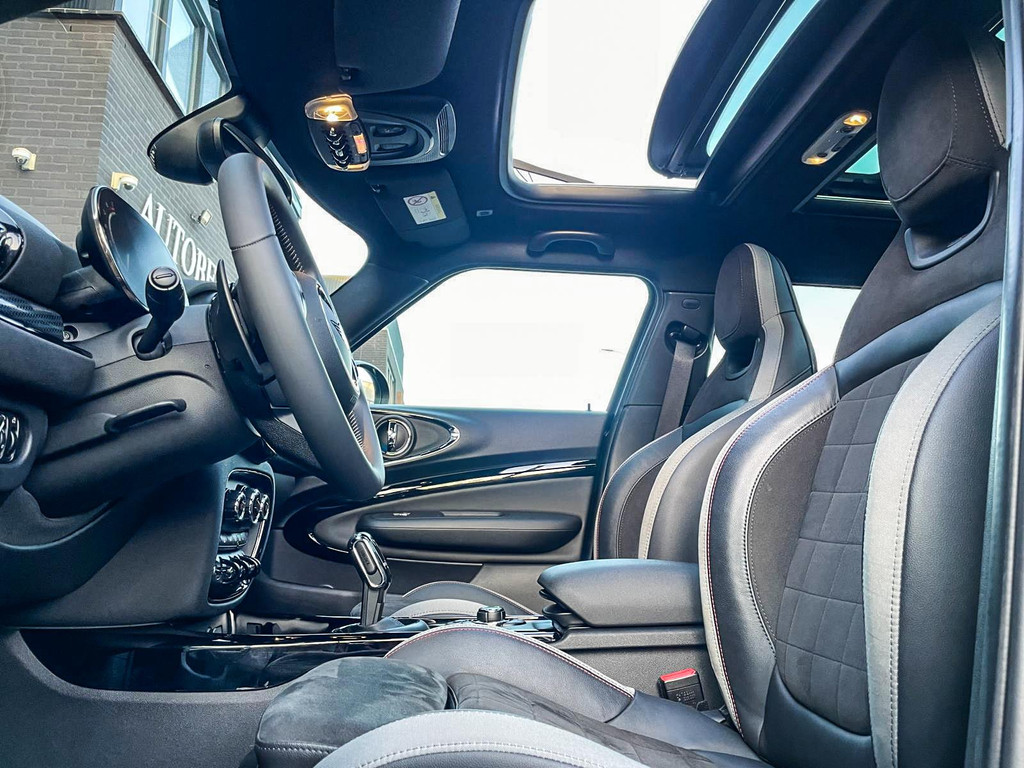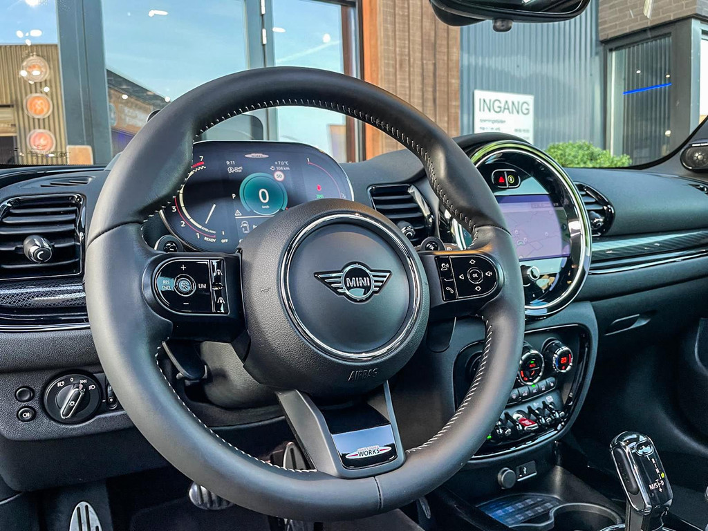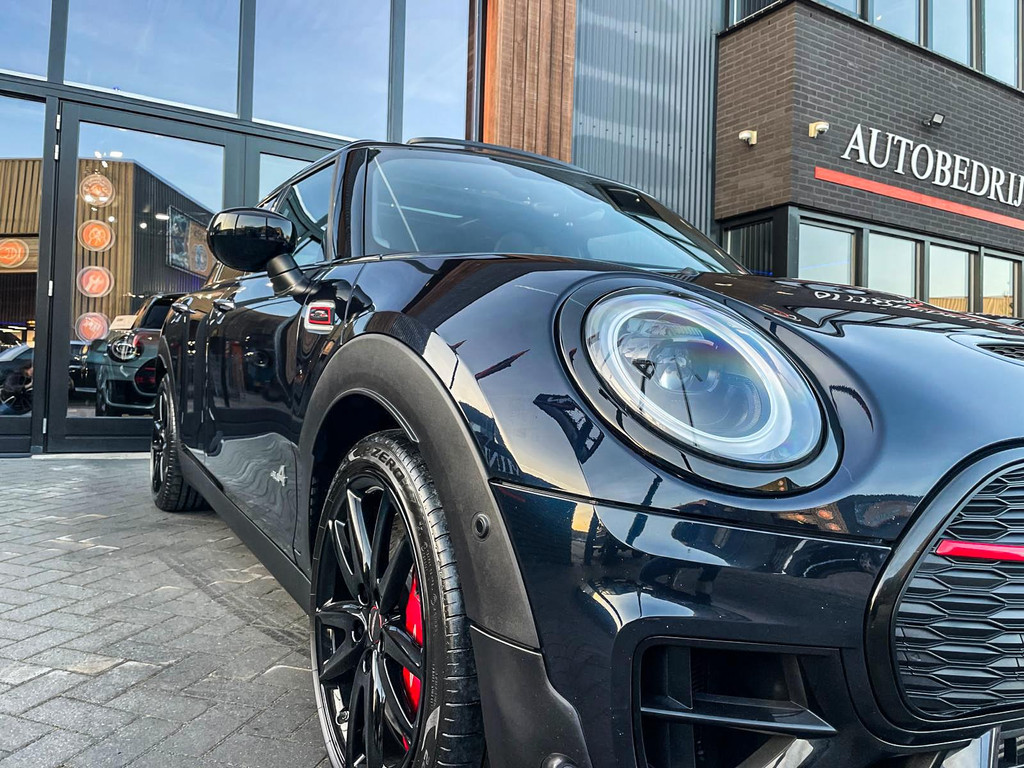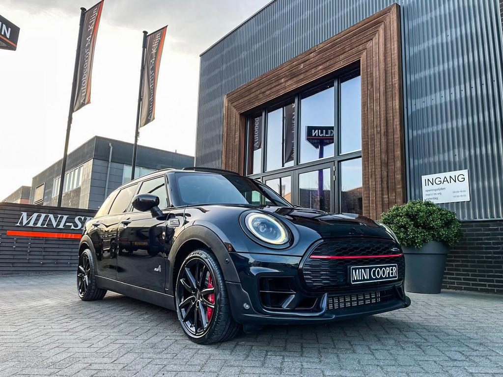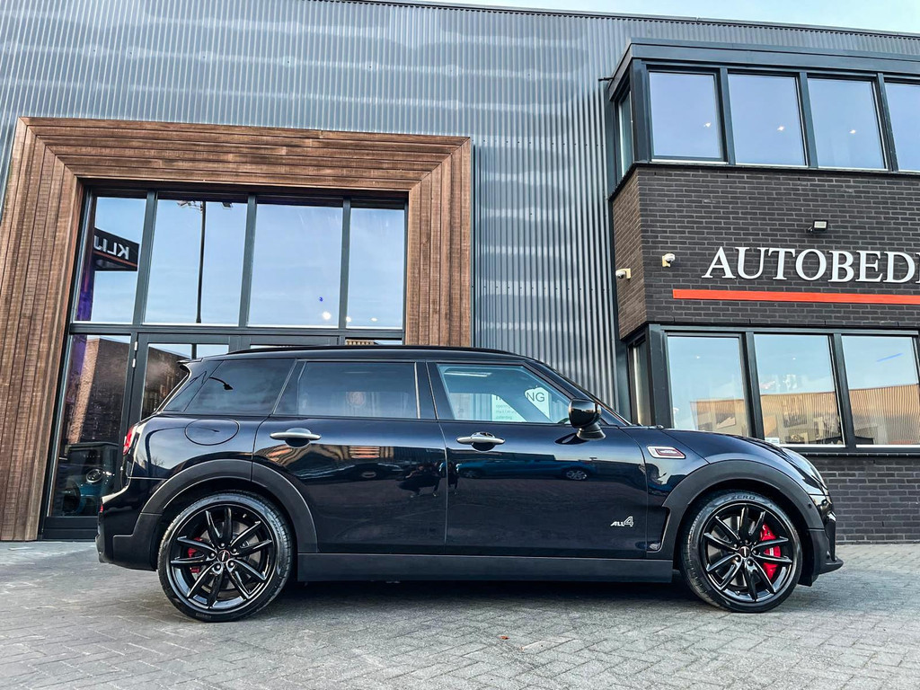 Zeer exclusieve facelift Mini Clubman John Cooper Works ALL4 F1 sportautomaat met een 306pk motor uitgevoerd in de prachtige kleur Enigmatic black metallic.Deze in werkelijk nieuwstaat verkerende Mini is uitgerust met alle maar dan ook alle denkbare opties oa:Climate control,leder/dinamica interieur,Jcw sportstoelen,stoelverwarming,virtual cockpit,breedbeeld dvd navigatie XL,Mini Connected XL,Harman Kardon soundsystem,head up display,adaptieve cruise control,keyless go,achteruitrijcamera,18" lichtmetalen velgen zwart,sportpakket,vierwielaandrijving,led verlichting,elektrisch bedienbare glazen panoramadak,5 persoons,privacyglass,lederen Jcw sportstuur met F1 flipperschakel,lichtpakket met Mini logo's,alarm,welcome pakket,parkeersensoren voor en achter,parkassist(auto parkeert zelf in),F1 schakel op stuur,actieve voetgangersbeveiliging,lc scherm,virtual cockpit,Mini driving modus,donker dakhemel,dakrailing zwart,mf stuur,Apple Carplay,dab radio,boordcomputer,blackline,verwarmde voorruit,regensensor,Union Jack achterlichten,vierwielaandrijving,armsteun,chili 2 pakket,alle boekjes+originele sleutels,1e eigenaar,62.000km origineel,Btw auto,nieuwprijs 72.800,-.Schitterende en unieke Mini Clubman Works in concoursstaat voor de echte liefhebber