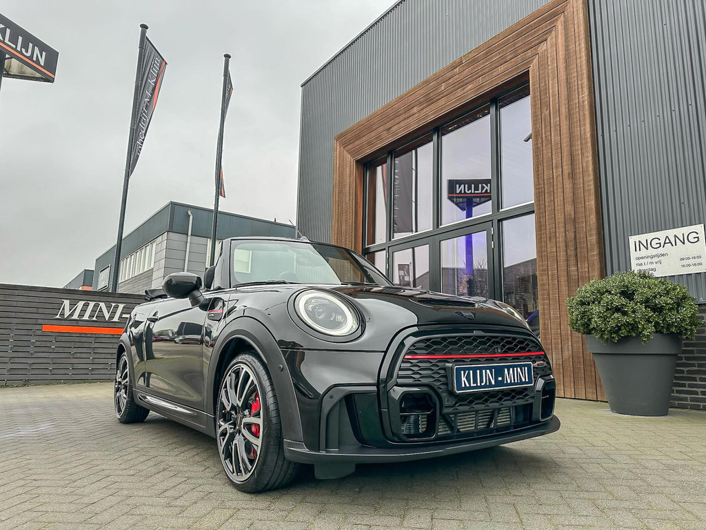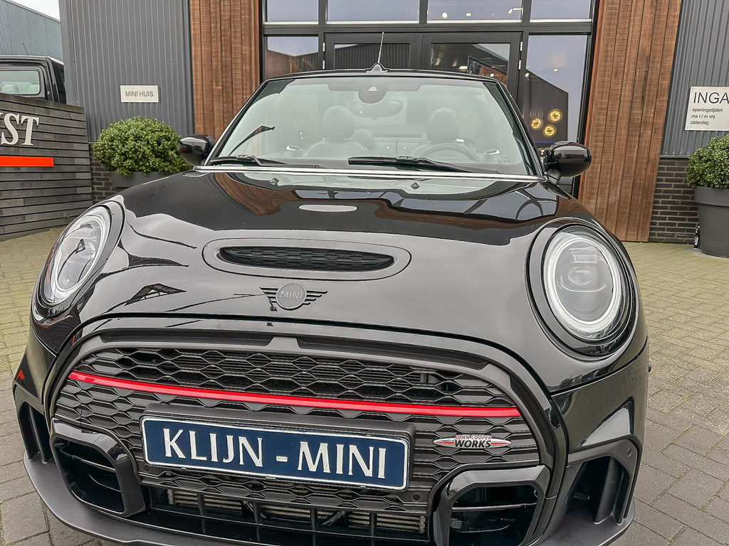 Unieke Mini John Cooper Works cabrio Blackline F1 sportautomaat met een 231pk motor in de prachtige kleur Midnightblack metallic.Deze schitterende Mini is uitgerust met alle maar dan ook alle denkbare opties:Climate control,vollederen interieur Yours lounge,sportstoelen,stoelverwarming,stuurverwarming,virtual cockpit,,breedbeeld navigatie,Mini connected XL,head up display,achteruitrijcamera,adaptieve cruise control,dab tuner,tel,usb,performence control,apple carplay,Mini driving modus,elektrische cabriokap,lederen Jcw sportstuur met flipperschakel,mf stuur,automatisch dimmende binnenspiegel, regensensor,verwarmde voorruit,facelift,blackline, voetgangersbeveiliging,dtc,elektrisch inklapbare spiegels, parkeersensoren voor en achter,parkassist(Mini parkeert zelf in),union Jack achterlichten,led koplampen met uitgebreide functies,digital cockpit,18 inch JCW Circuit Spoke velgen,lichtpakket met Mini logo's,gezichtspakket,chili 2 pakket,58.000km origineel,nieuwprijs 62.000euro.Prachtig uitgevoerde Mini Jcw in concoursstaat voor de echte liefhebber.
