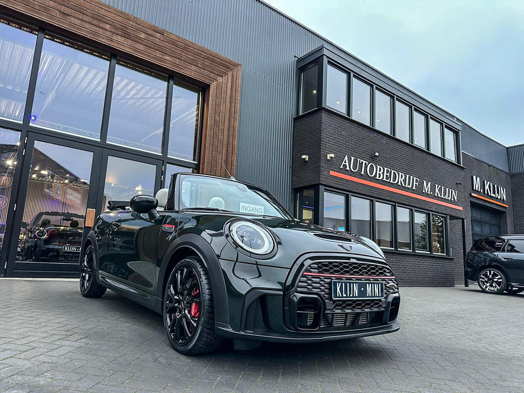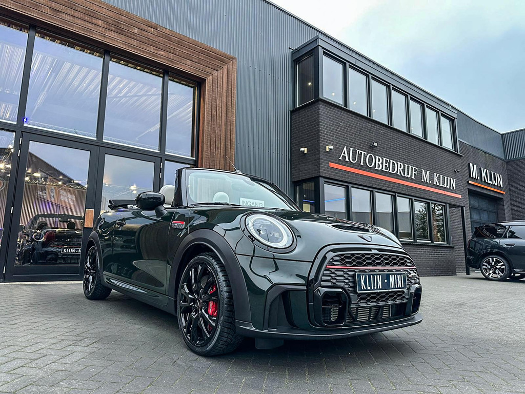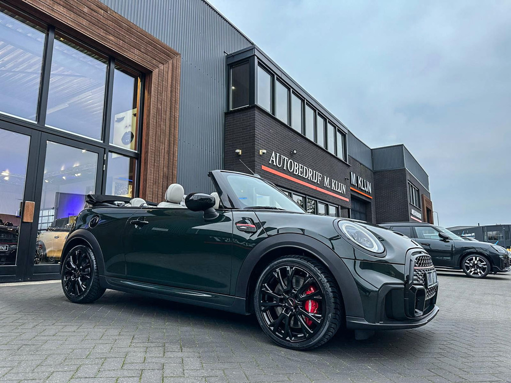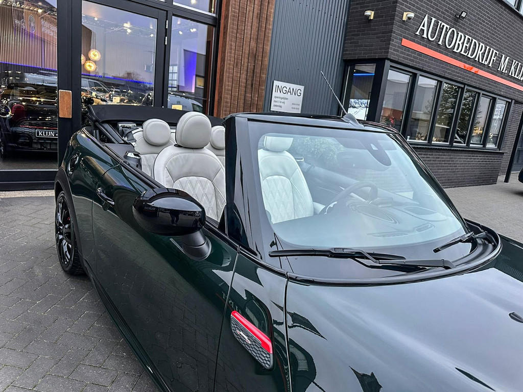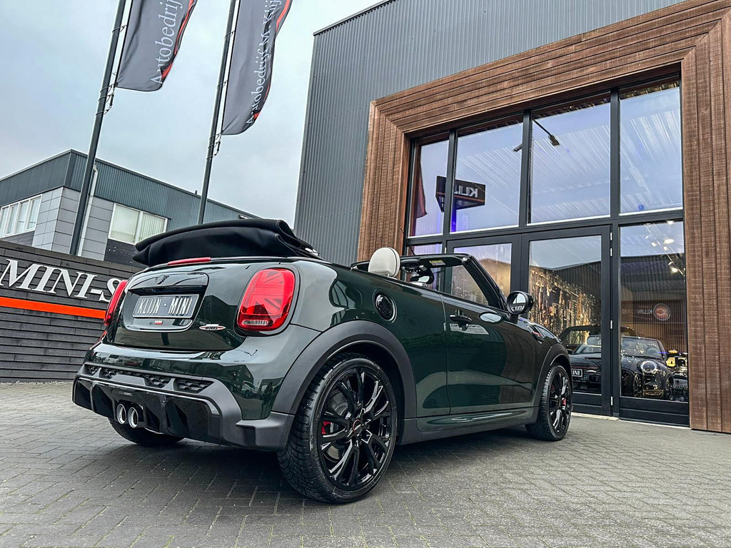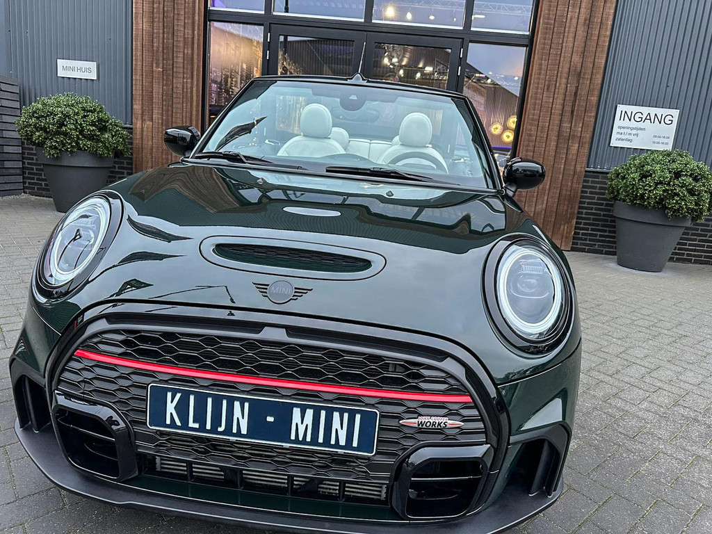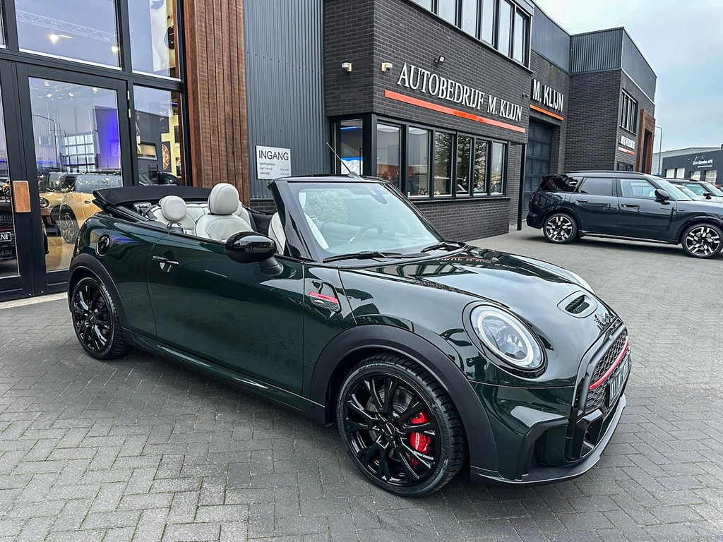 Unieke Mini John Cooper Works cabrio Blackline F1 sportautomaat met een 231pk motor uitgevoerd in de prachtige kleurencombinatie van Rebelgreen en Chester Satelitte grey lederen interieur.Deze schitterende Mini is uitgerust met alle maar dan ook alle denkbare opties:Climate control,vollederen interieur chester Satelitte grey,sportstoelen,stoelverwarming,verwarmd stuurwiel,virtual cockpit,breedbeeld navigatie,Mini connected XL,achteruitrijcamera,dab tuner,head up display,Harman Kardon soundsystem,adaptieve cruise control,tel,usb,performence control,apple carplay,Mini driving modus,elektrische cabriokap,lederen Jcw sportstuur met flipperschakel,mf stuur,automatisch dimmende binnenspiegel,regensensor,verwarmde voorruit,facelift,full Black pack, voetgangersbeveiliging,dtc,elektrisch inklapbare spiegels, parkeersensoren,union Jack achterlichten,led koplampen met uitgebreide functies,18 inch JCW velgen circuit spoke,lichtpakket met Mini logo's,gezichtspakket,chili 2 pakket,22.000km origineel,Btw auto,nieuwprijs 63.000euro.Prachtig uitgevoerde Mini Jcw in concoursstaat voor de echte liefhebber.
