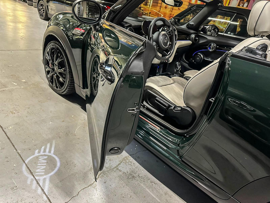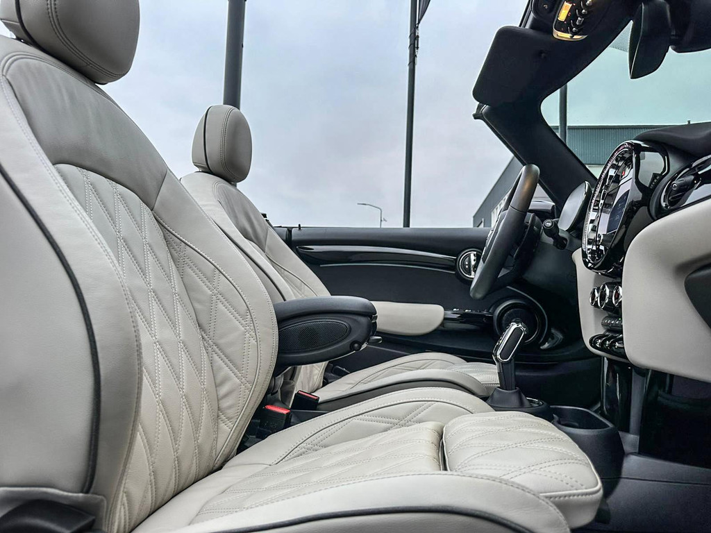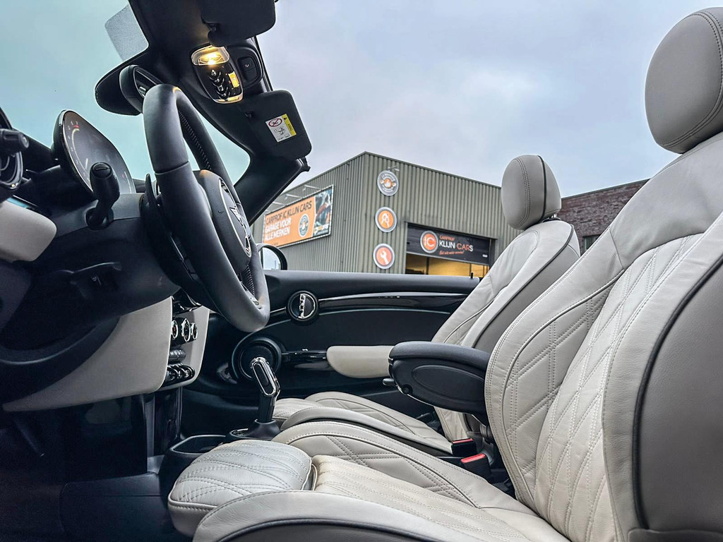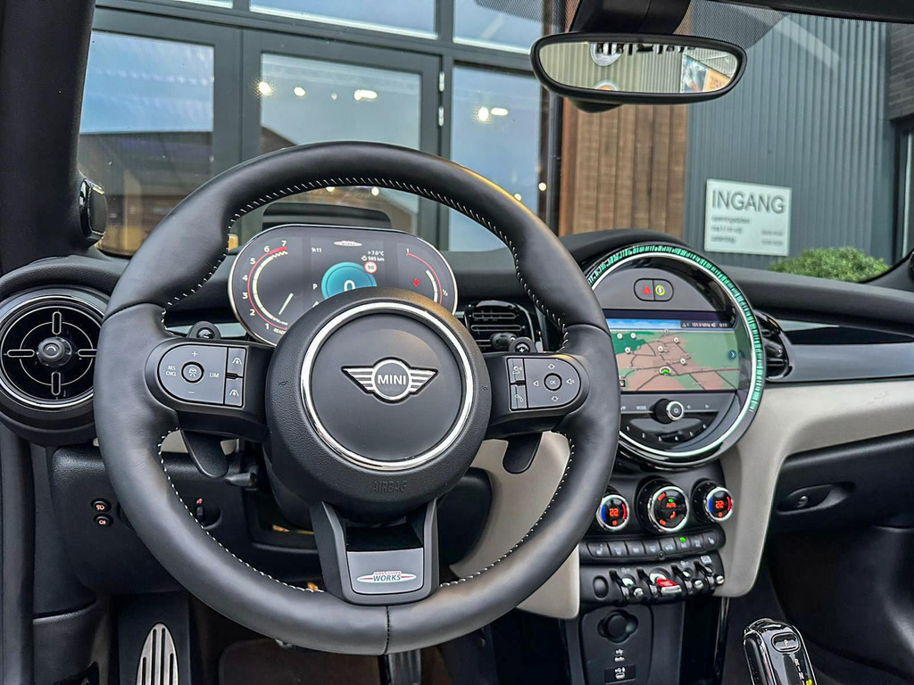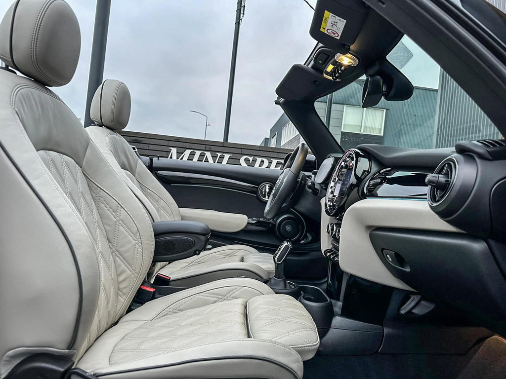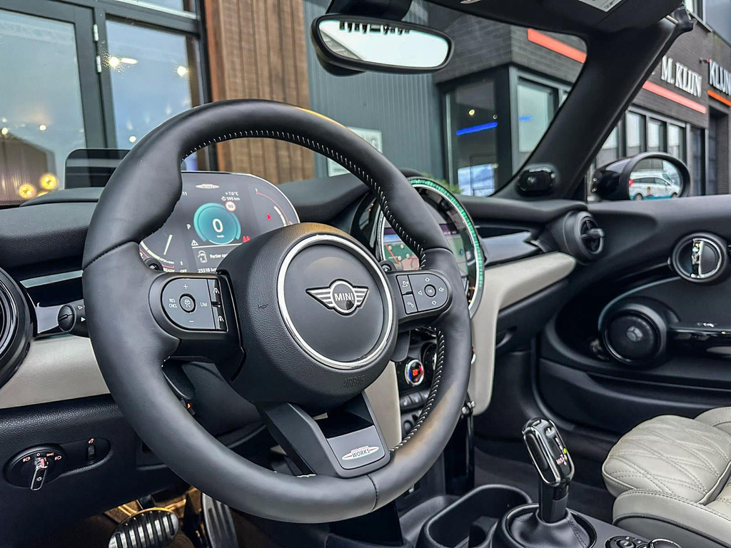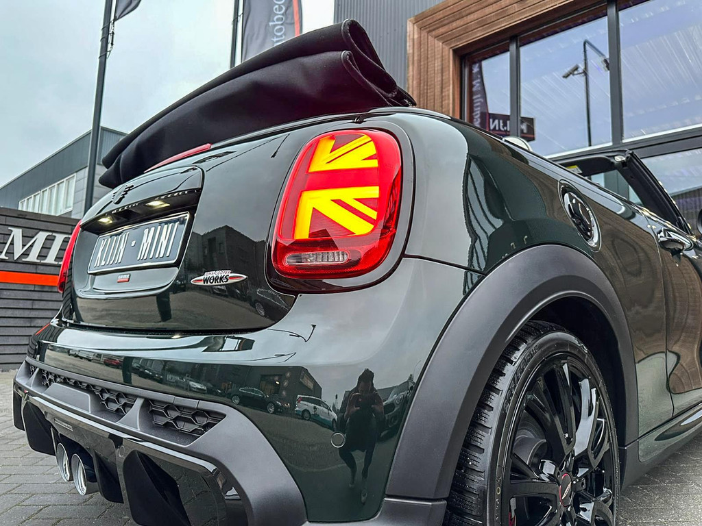 Unieke Mini John Cooper Works cabrio Blackline F1 sportautomaat met een 231pk motor uitgevoerd in de prachtige kleurencombinatie van Rebelgreen en Chester Satelitte grey lederen interieur.Deze schitterende Mini is uitgerust met alle maar dan ook alle denkbare opties:Climate control,vollederen interieur chester Satelitte grey,sportstoelen,stoelverwarming,verwarmd stuurwiel,virtual cockpit,breedbeeld navigatie,Mini connected XL,achteruitrijcamera,dab tuner,head up display,Harman Kardon soundsystem,adaptieve cruise control,tel,usb,performence control,apple carplay,Mini driving modus,elektrische cabriokap,lederen Jcw sportstuur met flipperschakel,mf stuur,automatisch dimmende binnenspiegel,regensensor,verwarmde voorruit,facelift,full Black pack, voetgangersbeveiliging,dtc,elektrisch inklapbare spiegels, parkeersensoren,union Jack achterlichten,led koplampen met uitgebreide functies,18 inch JCW velgen circuit spoke,lichtpakket met Mini logo's,gezichtspakket,chili 2 pakket,22.000km origineel,Btw auto,nieuwprijs 63.000euro.Prachtig uitgevoerde Mini Jcw in concoursstaat voor de echte liefhebber.