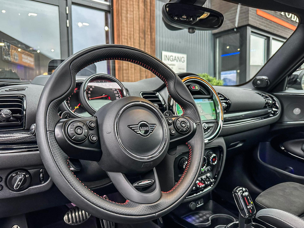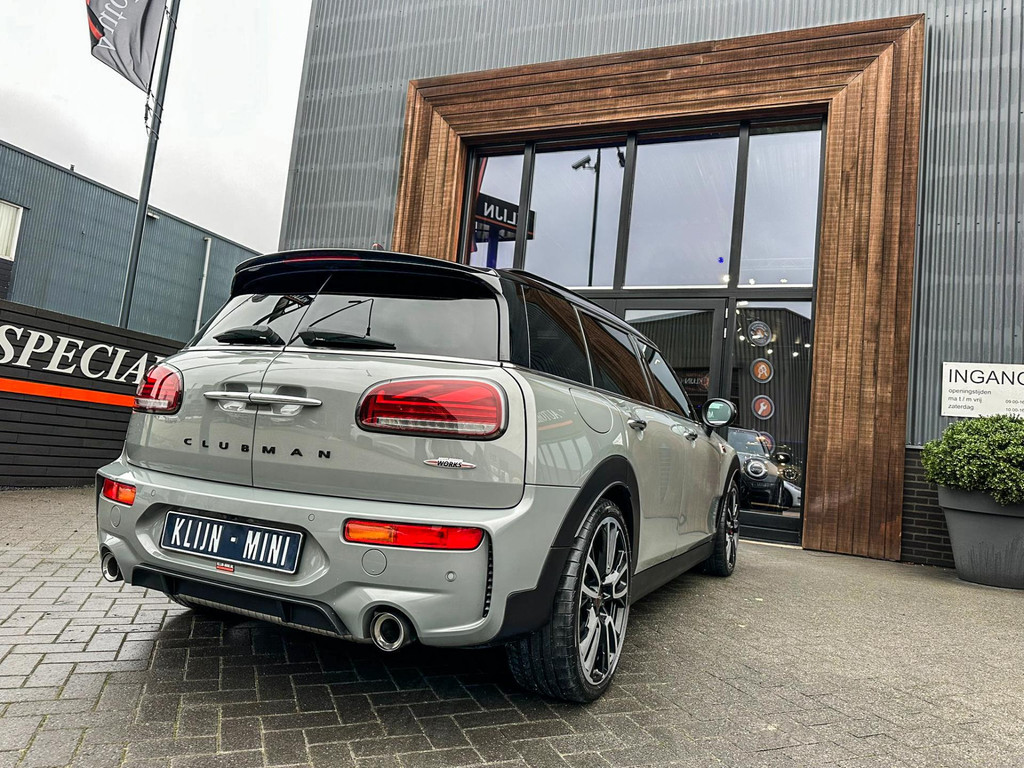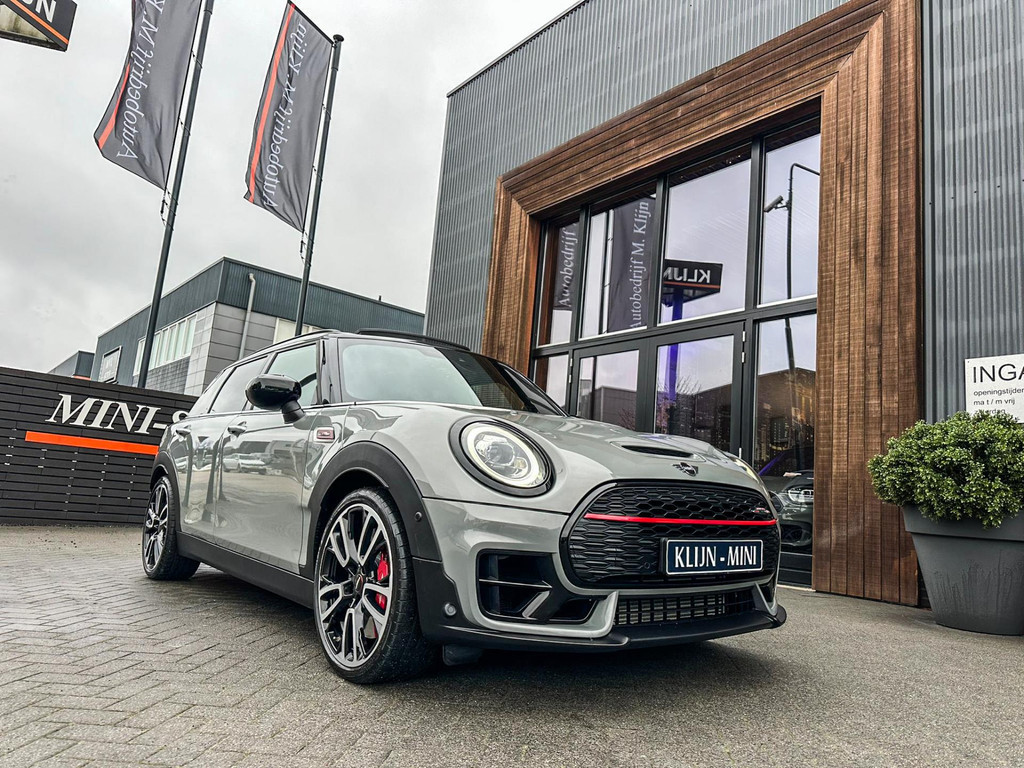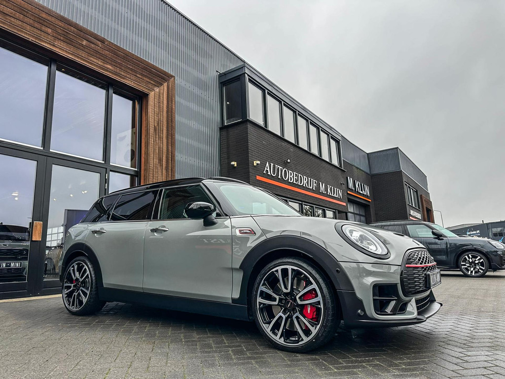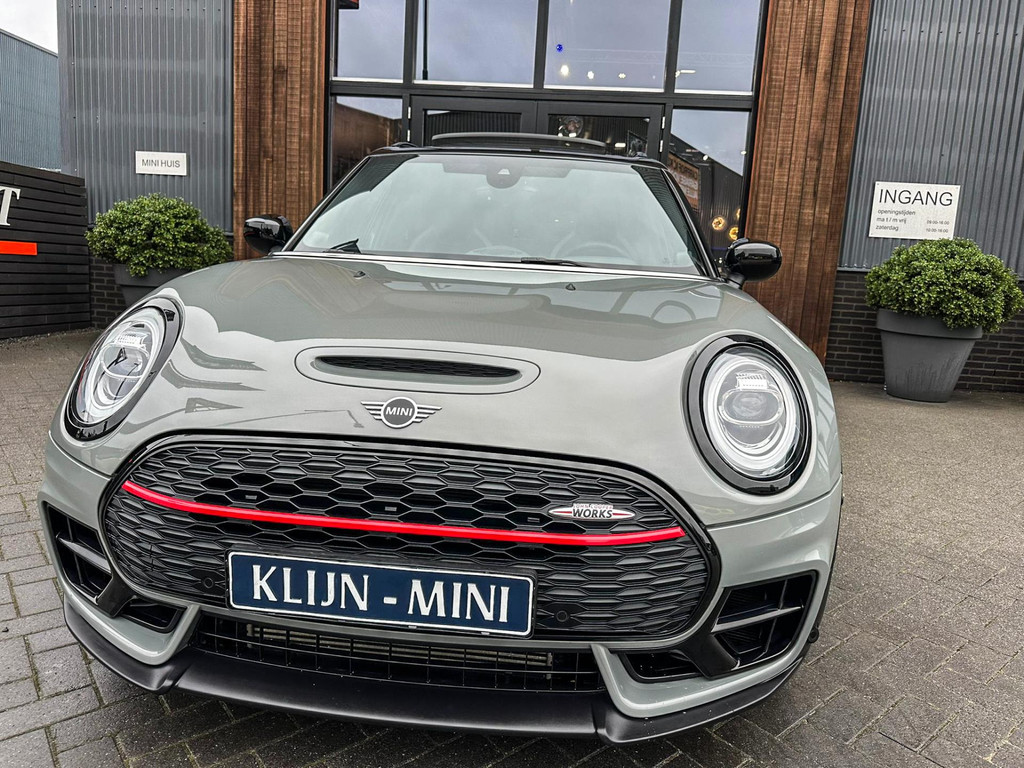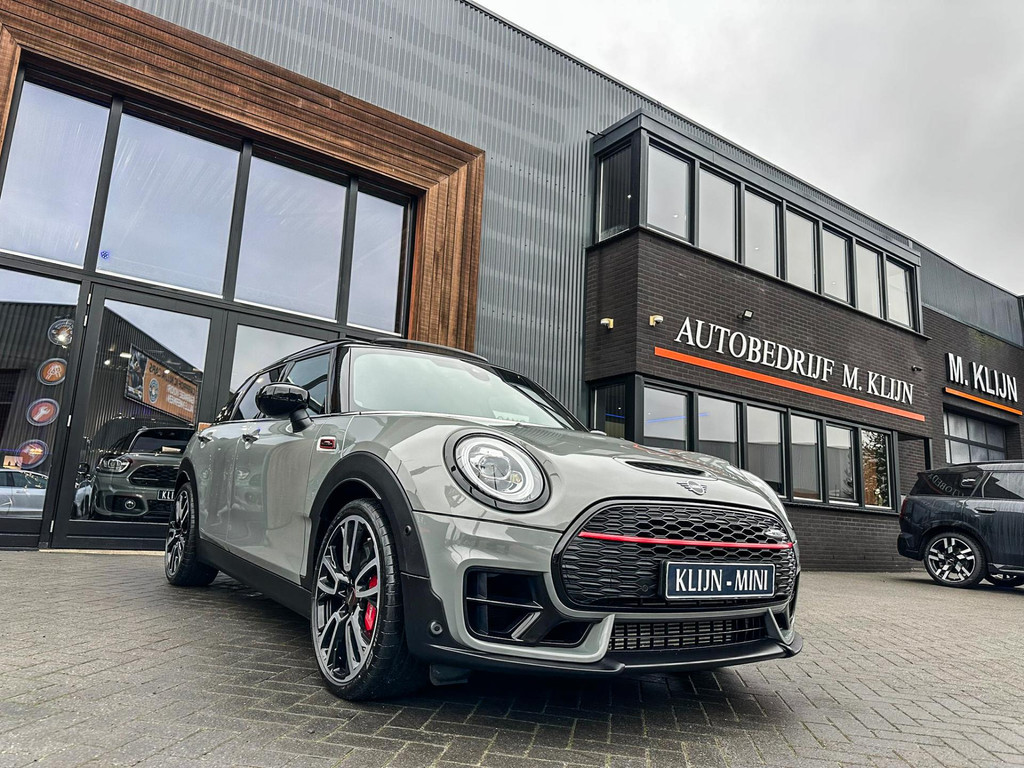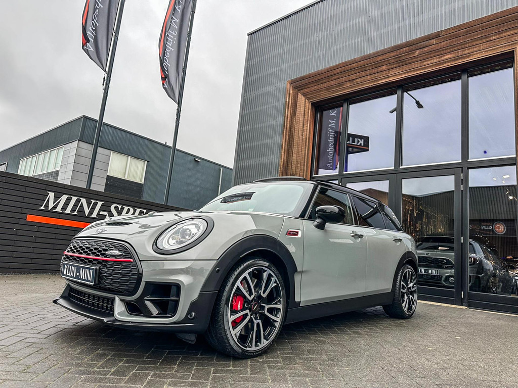 Unieke Mini Clubman John Cooper Works ALL4 F1 sportautomaat met een 306pk motor uitgevoerd in de prachtige kleur Moonwalkgrey(Nardo) metallic.Deze in werkelijk nieuwstaat verkerende Mini is uitgerust met alle maar dan ook alle denkbare opties oa:Climate control,lederen/dinamica Jcw interieur,sportstoelen,stoelverwarming,classic display km(op wens aan te vragen optie bij model 2021)breedbeeld navigatie XL,Mini Connected XL,Head up display,achteruitrijcamera,Harman Kardon soundsystem,keyless go,19” Jcw spoke velgen,sportpakket,vierwielaandrijving,led verlichting,elektrisch bedienbare glazen panoramadak,5 persoons,privacyglass,adaptieve cruise control,lederen Jcw sportstuur met F1 flipperschakel,lichtpakket met Mini logo's,welcome pakket,parkeersensoren voor en achter,parkassist(auto parkeert zelf in),F1 schakel op stuur,actieve voetgangersbeveiliging,dakrailing zwart,lc scherm,Mini driving modus,donker dakhemel,mf stuur,Apple Carplay,dab radio,boordcomputer,blackline,regensensor,verwarmde voorruit,Union Jack achterlichten,vierwielaandrijving,armsteun,chili 2 pakket,alle boekjes+originele sleutels,1e eigenaar,41.000km,nieuwprijs 71.500,-.Schitterende en unieke Mini Clubman Works in concoursstaat voor de echte liefhebber