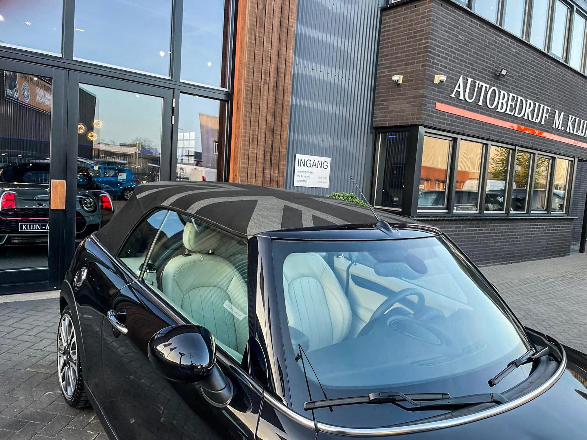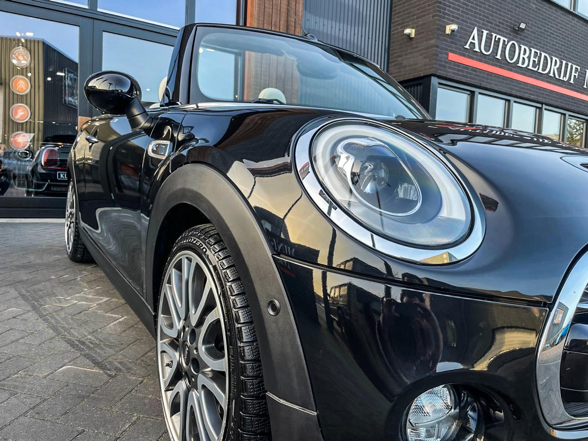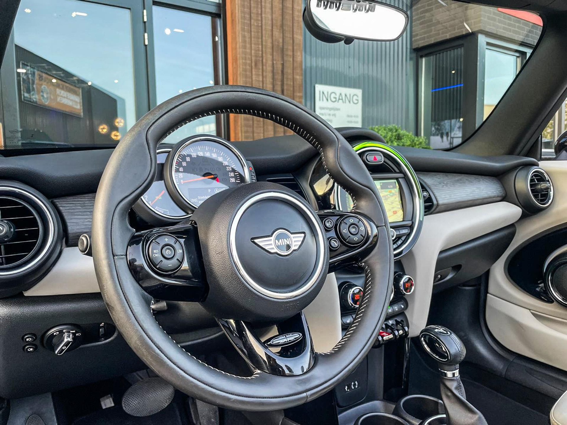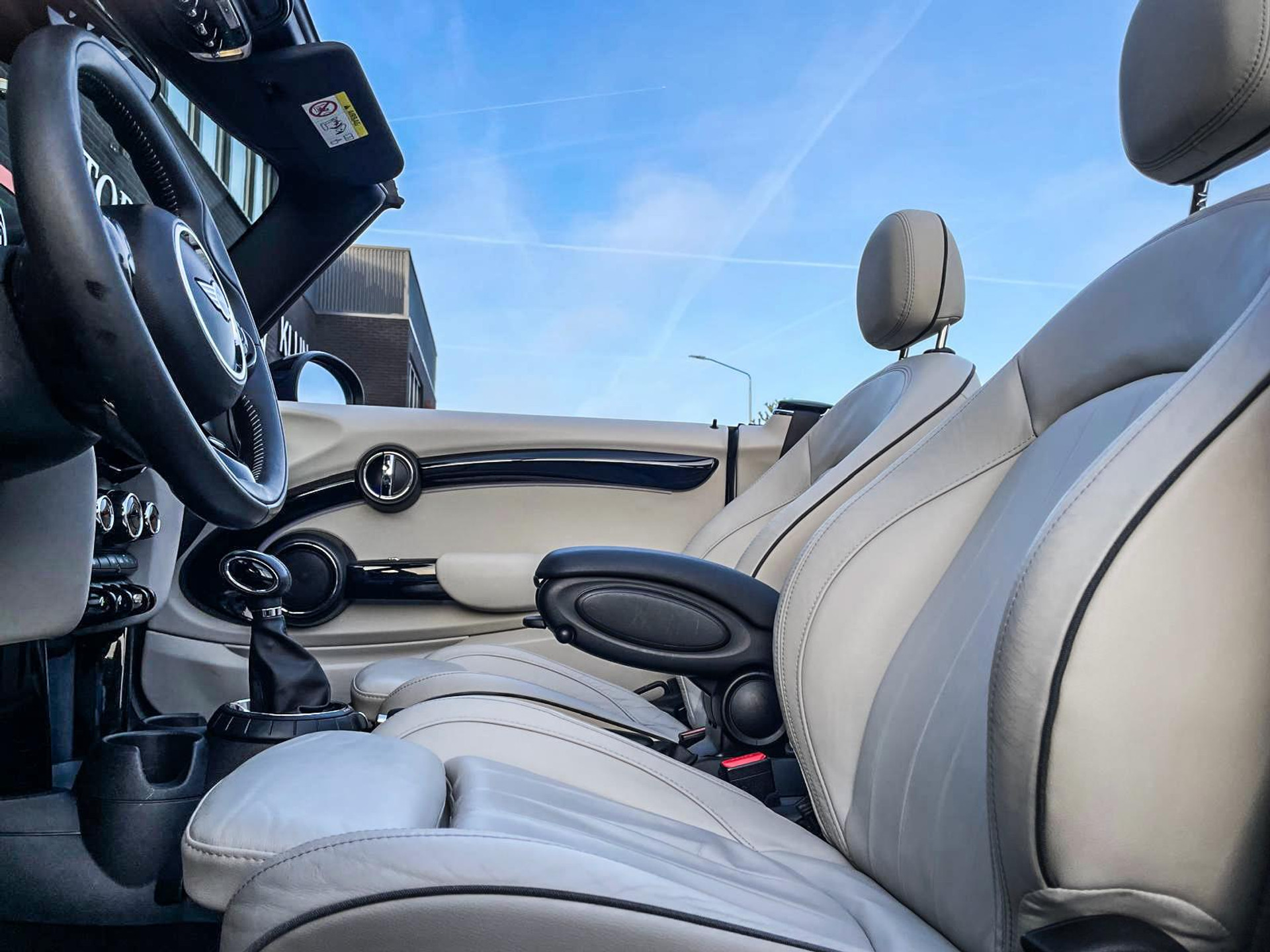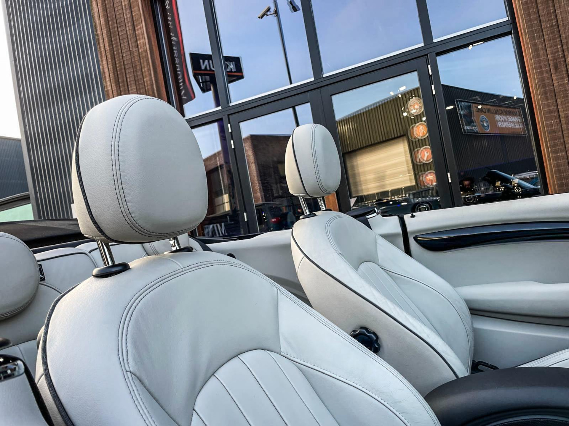Unieke Mini Cooper Chili S automaat met een 192pk motor uitgevoerd in de prachtige kleurencombinatie van Midnightblack metallic en Satellite grey lederen interieur.Deze schitterende Mini en in werkelijk nieuwstaat verkerende Mini is uitgerust met vele opties oa:Volautomatische airco,vollederen interieur Satellite grey,sportstoelen,stoelverwarming,navigatie,Mini connected,tel,achteruitrijcamera,usb,Mini driving modus,elektrische cabriokap Union Jack,lederen sportstuur,mf stuur,regensensor, voetgangersbeveiliging,cruise control,parkeersensoren voor en achter,parkassist(Mini parkeert zelf im),armsteun,Union Jack achterlichten,led verlichting,18 inch Mini Yours Masterpiece velgen,lichtpakket,gezichtspakket,50.000km origineel.Prachtig uitgevoerde Mini cabrio in concoursstaat voor de echte liefhebber.