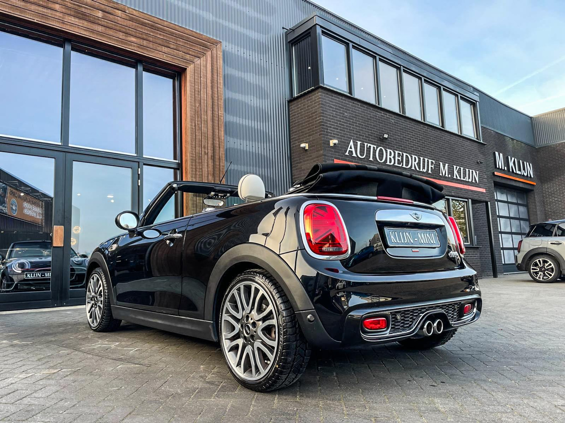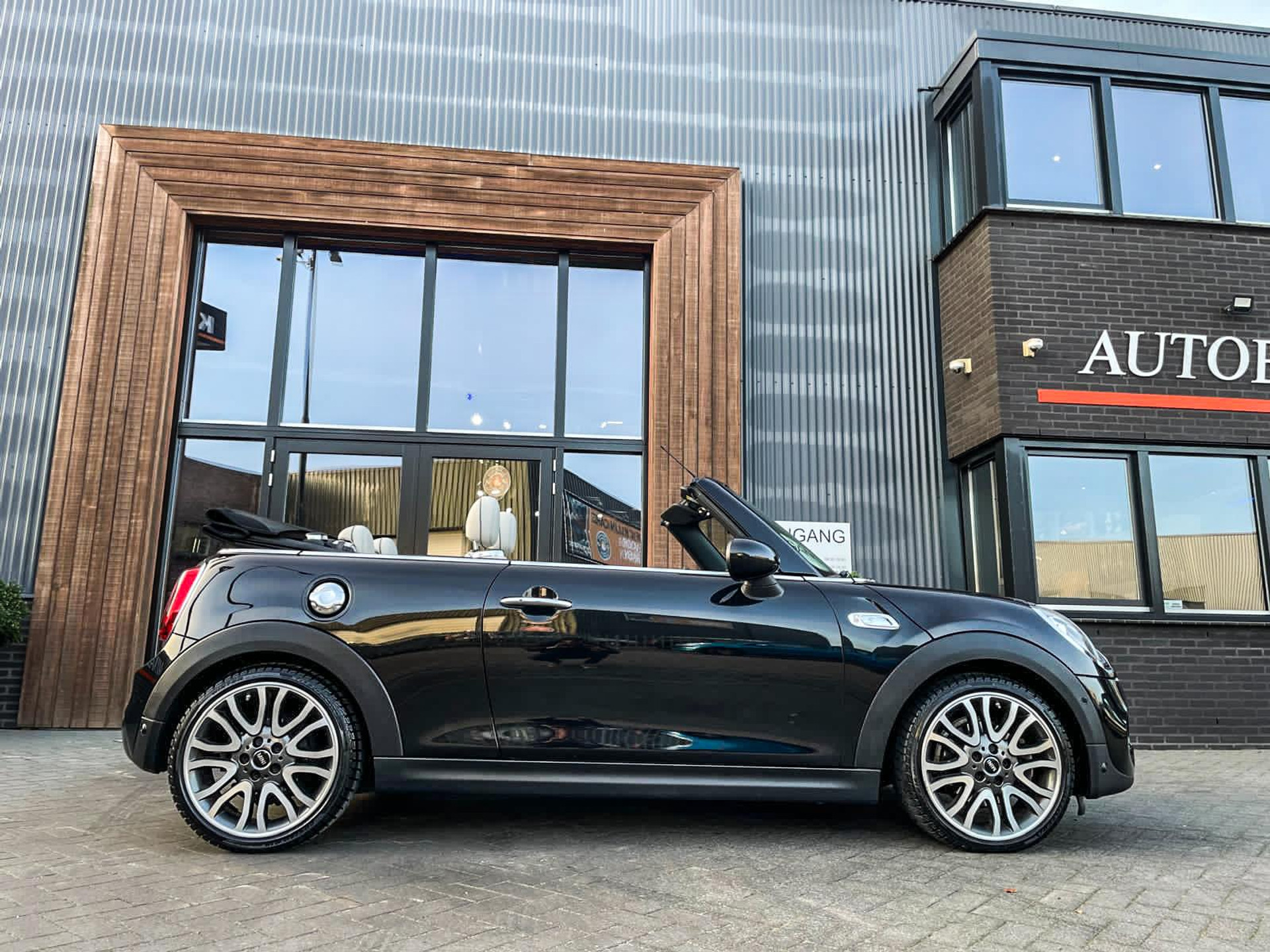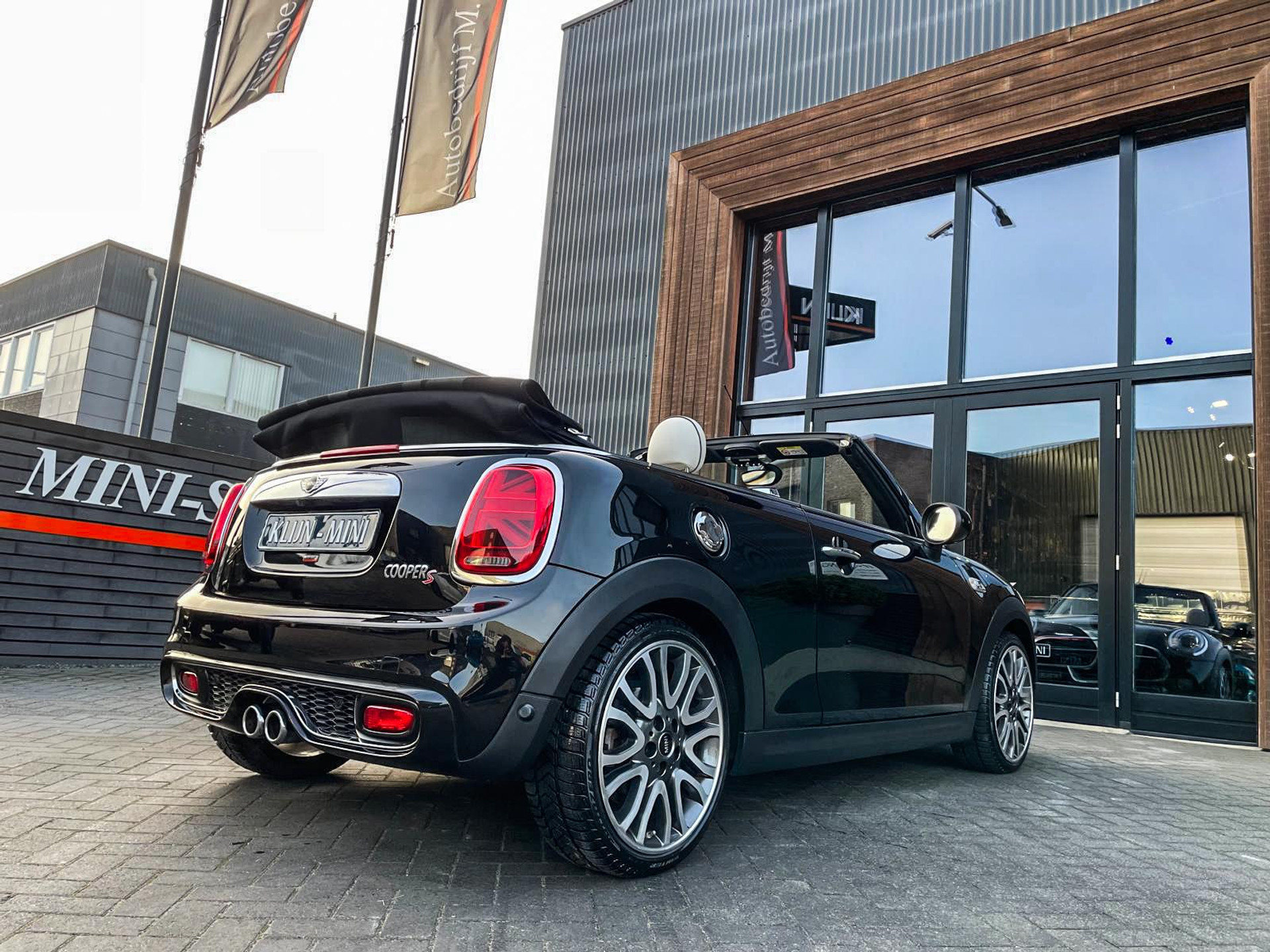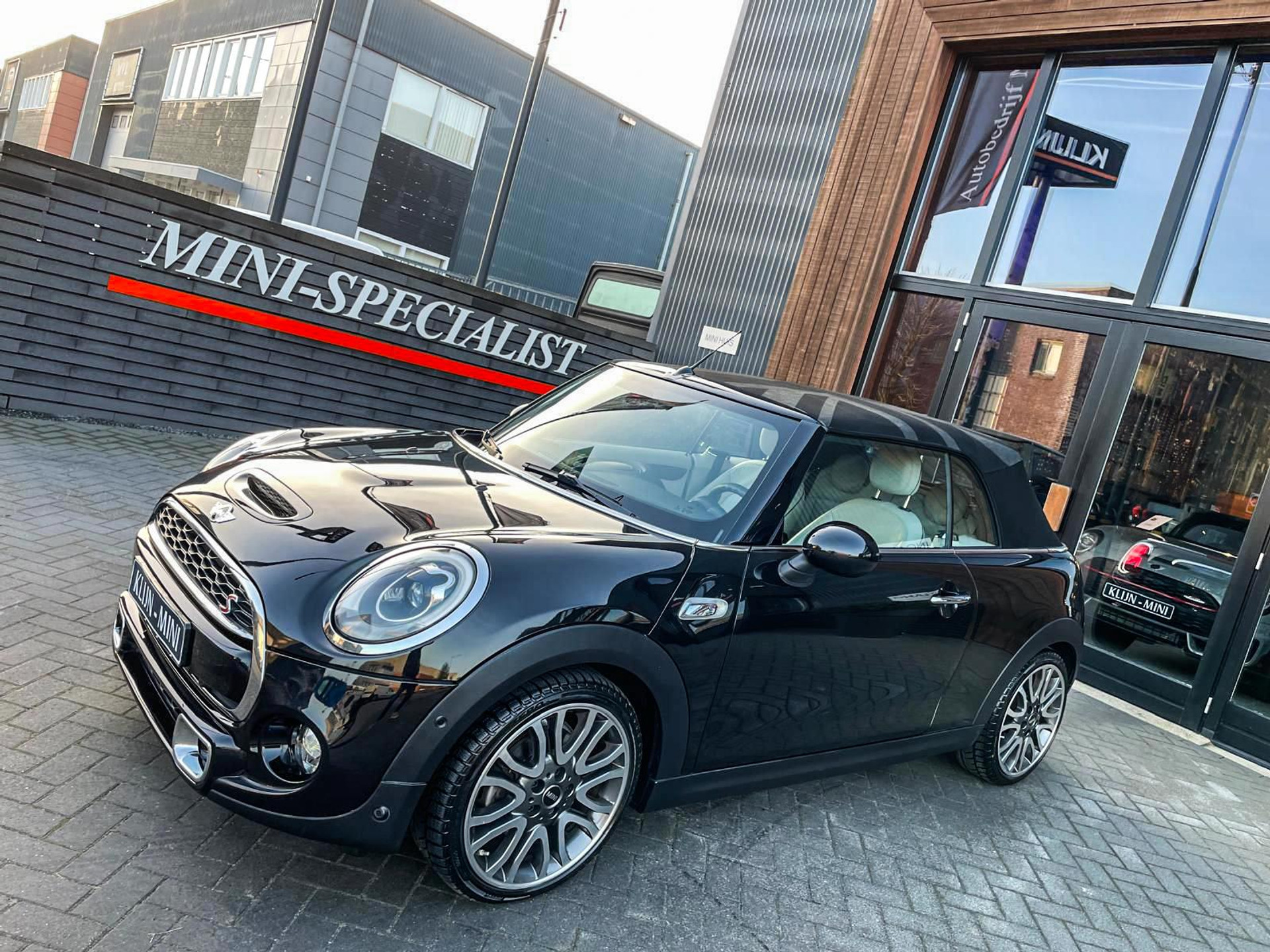 Unieke Mini Cooper Chili S automaat met een 192pk motor uitgevoerd in de prachtige kleurencombinatie van Midnightblack metallic en Satellite grey lederen interieur.Deze schitterende Mini en in werkelijk nieuwstaat verkerende Mini is uitgerust met vele opties oa:Volautomatische airco,vollederen interieur Satellite grey,sportstoelen,stoelverwarming,navigatie,Mini connected,tel,achteruitrijcamera,usb,Mini driving modus,elektrische cabriokap Union Jack,lederen sportstuur,mf stuur,regensensor, voetgangersbeveiliging,cruise control,parkeersensoren voor en achter,parkassist(Mini parkeert zelf im),armsteun,Union Jack achterlichten,led verlichting,18 inch Mini Yours Masterpiece velgen,lichtpakket,gezichtspakket,50.000km origineel.Prachtig uitgevoerde Mini cabrio in concoursstaat voor de echte liefhebber.