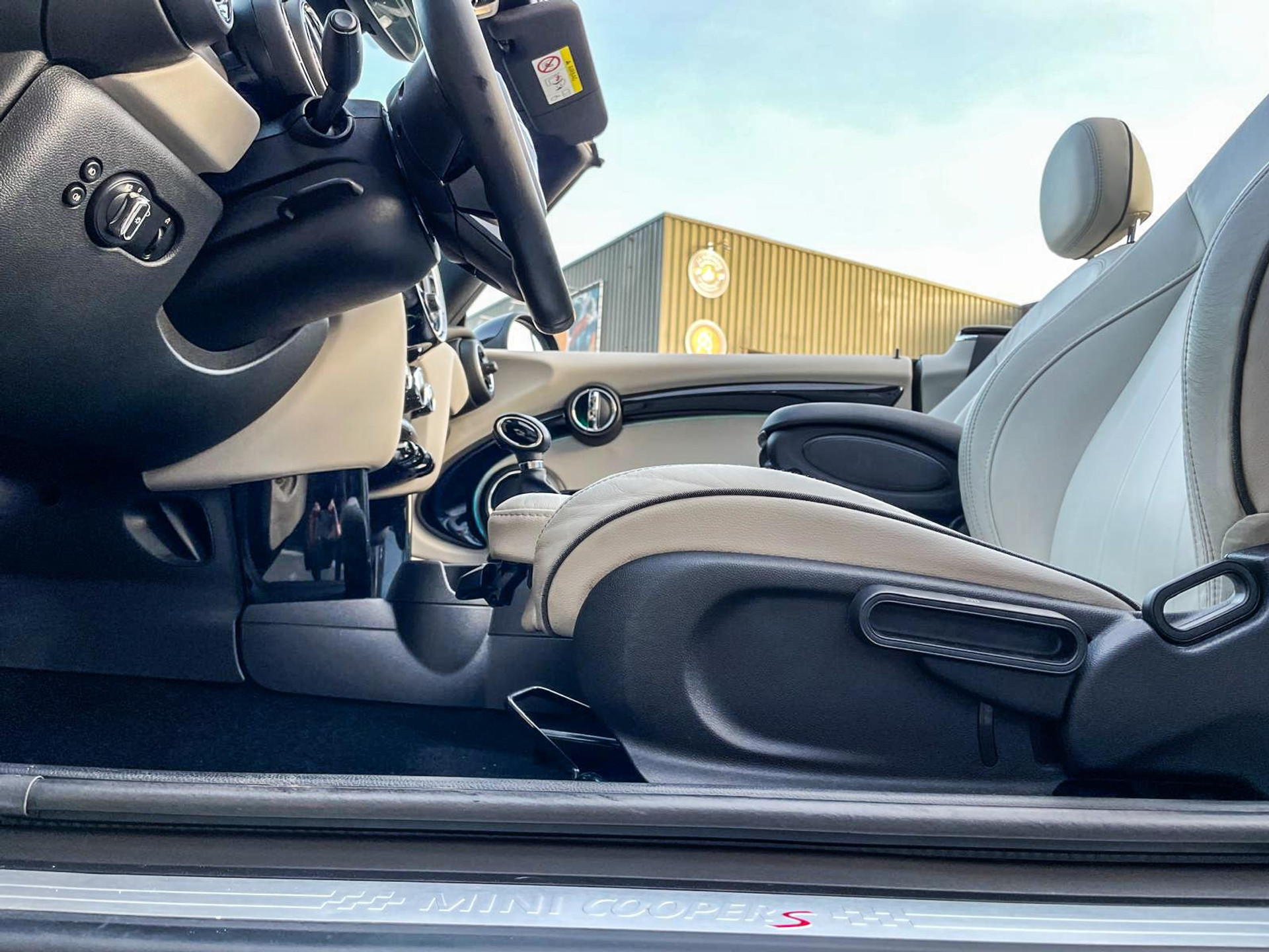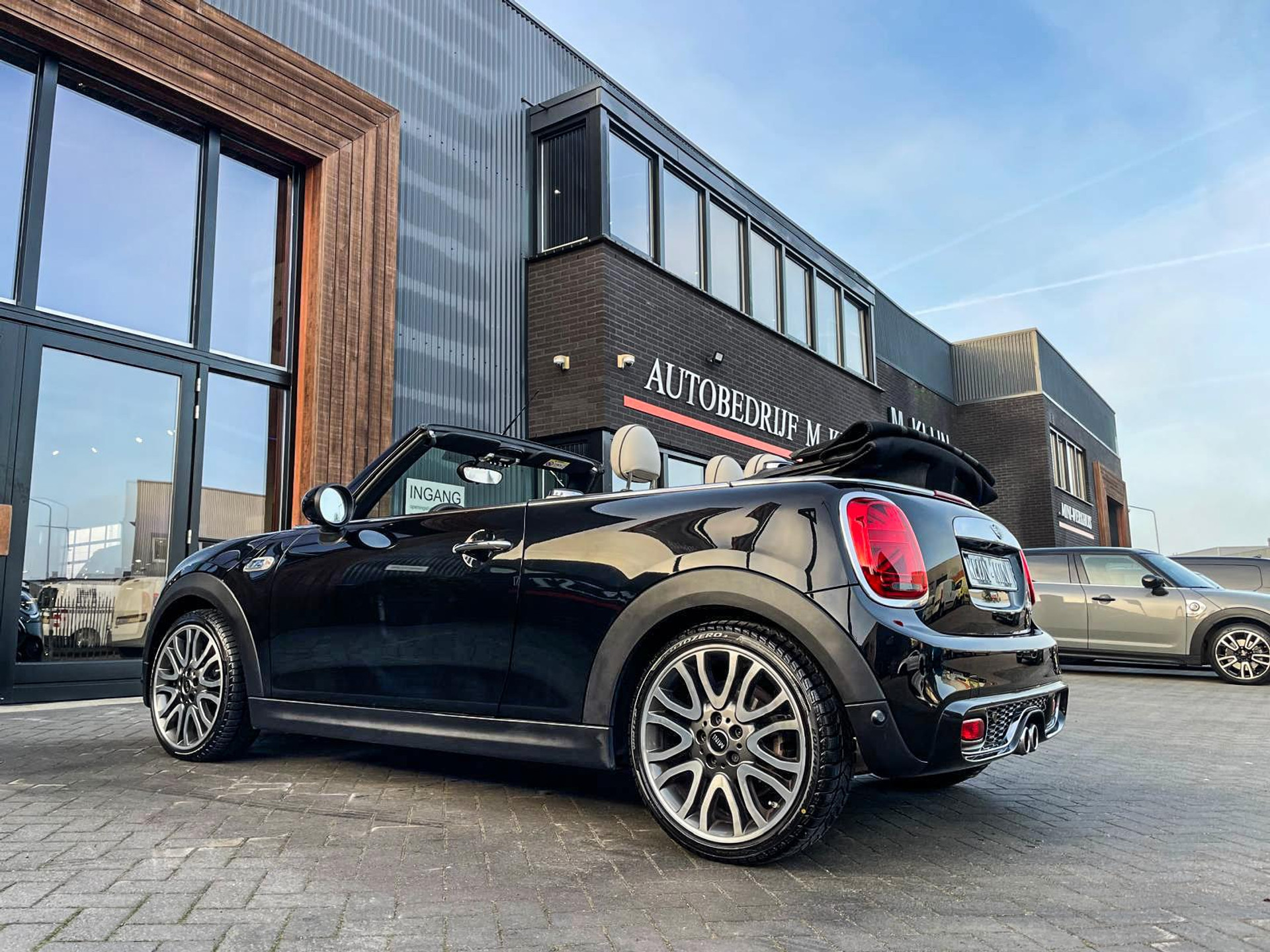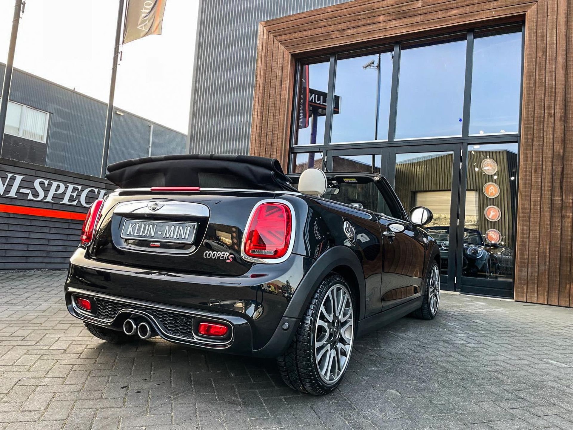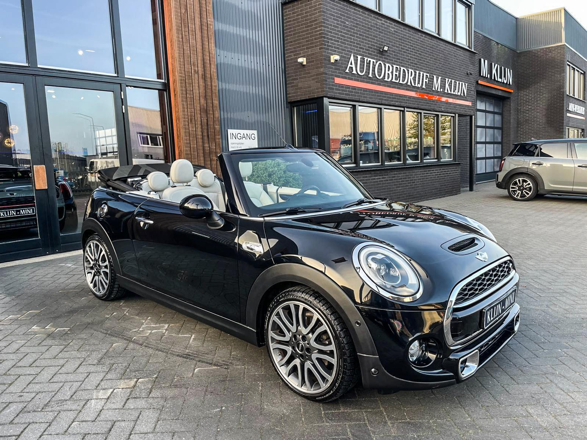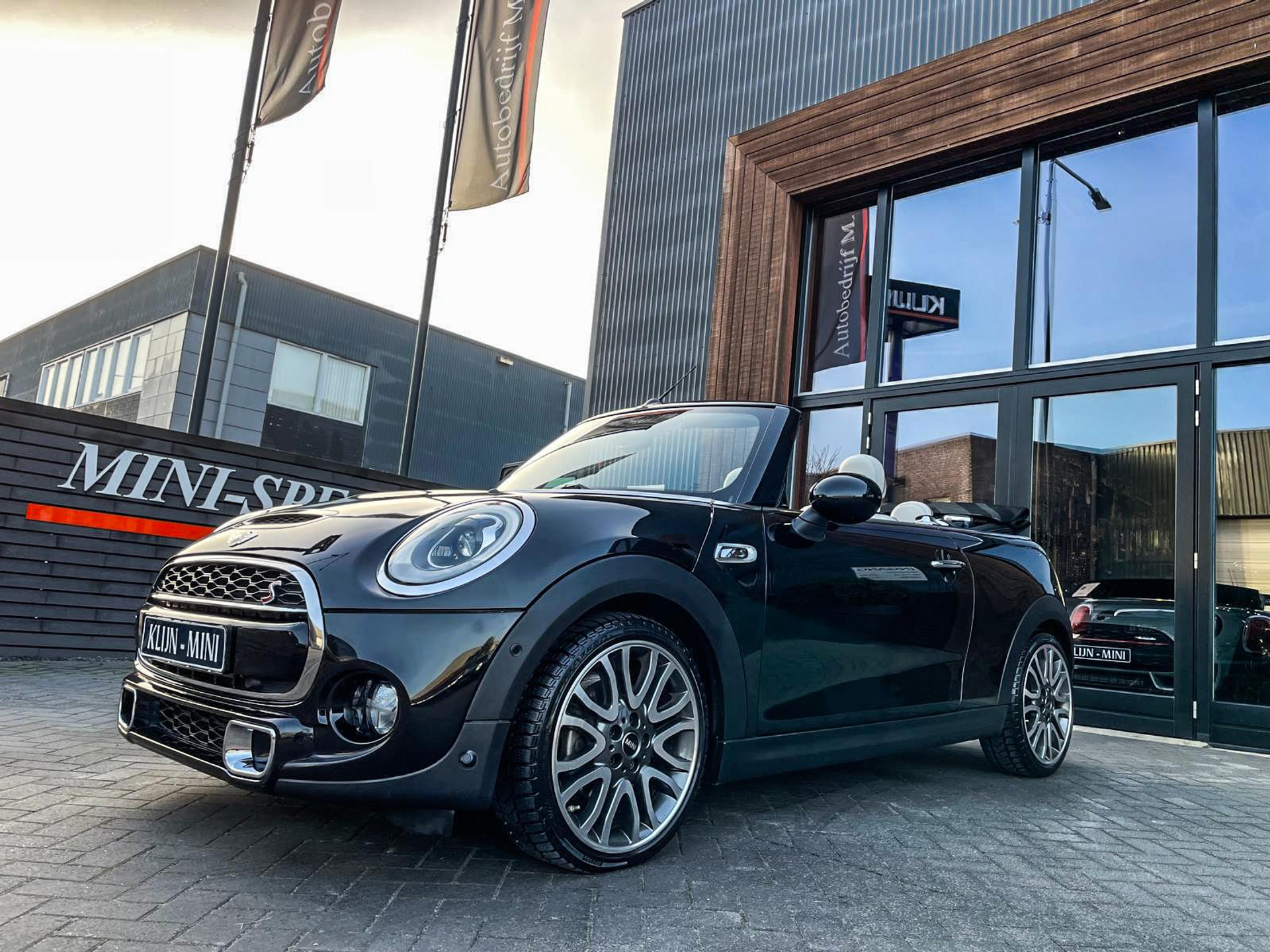 Unieke Mini Cooper Chili S automaat met een 192pk motor uitgevoerd in de prachtige kleurencombinatie van Midnightblack metallic en Satellite grey lederen interieur.Deze schitterende Mini en in werkelijk nieuwstaat verkerende Mini is uitgerust met vele opties oa:Volautomatische airco,vollederen interieur Satellite grey,sportstoelen,stoelverwarming,navigatie,Mini connected,tel,achteruitrijcamera,usb,Mini driving modus,elektrische cabriokap Union Jack,lederen sportstuur,mf stuur,regensensor, voetgangersbeveiliging,cruise control,parkeersensoren voor en achter,parkassist(Mini parkeert zelf im),armsteun,Union Jack achterlichten,led verlichting,18 inch Mini Yours Masterpiece velgen,lichtpakket,gezichtspakket,50.000km origineel.Prachtig uitgevoerde Mini cabrio in concoursstaat voor de echte liefhebber.