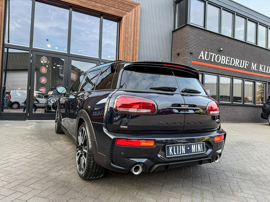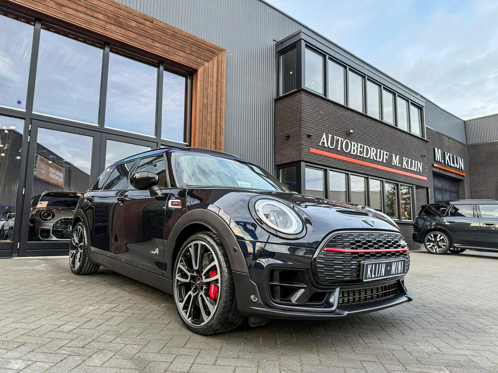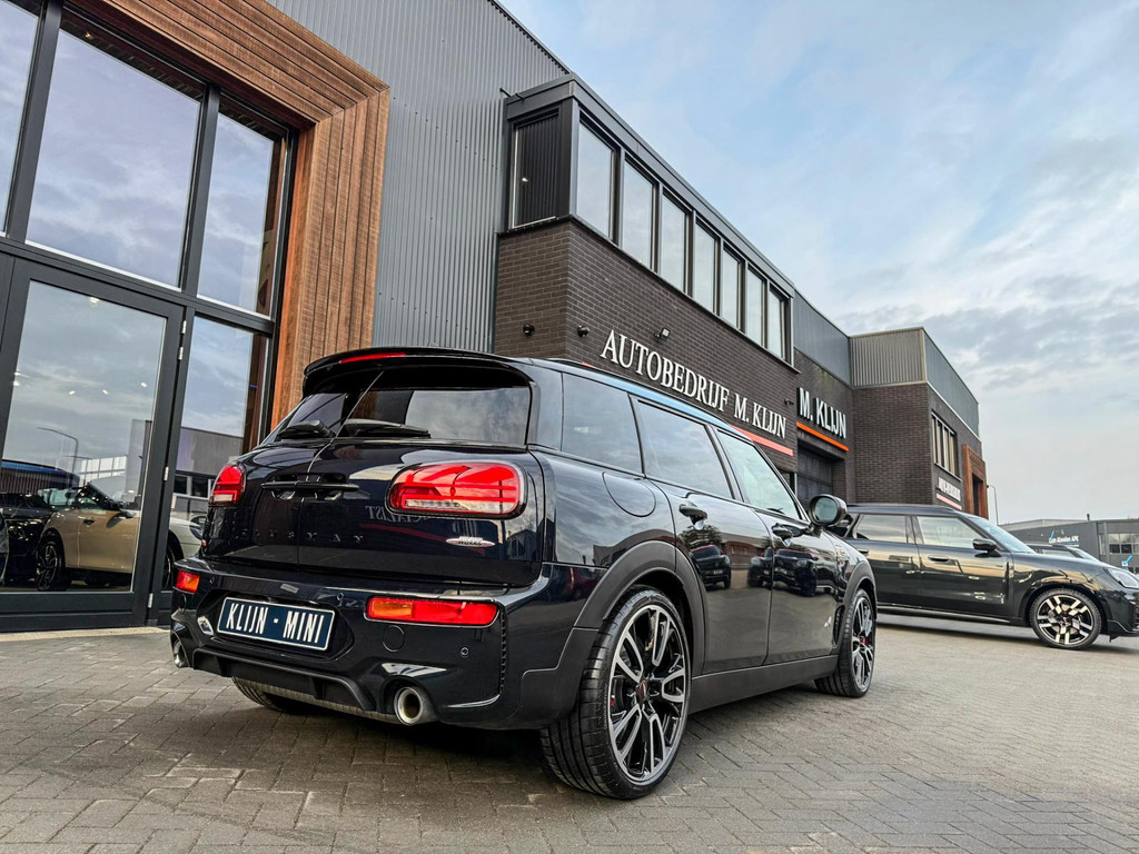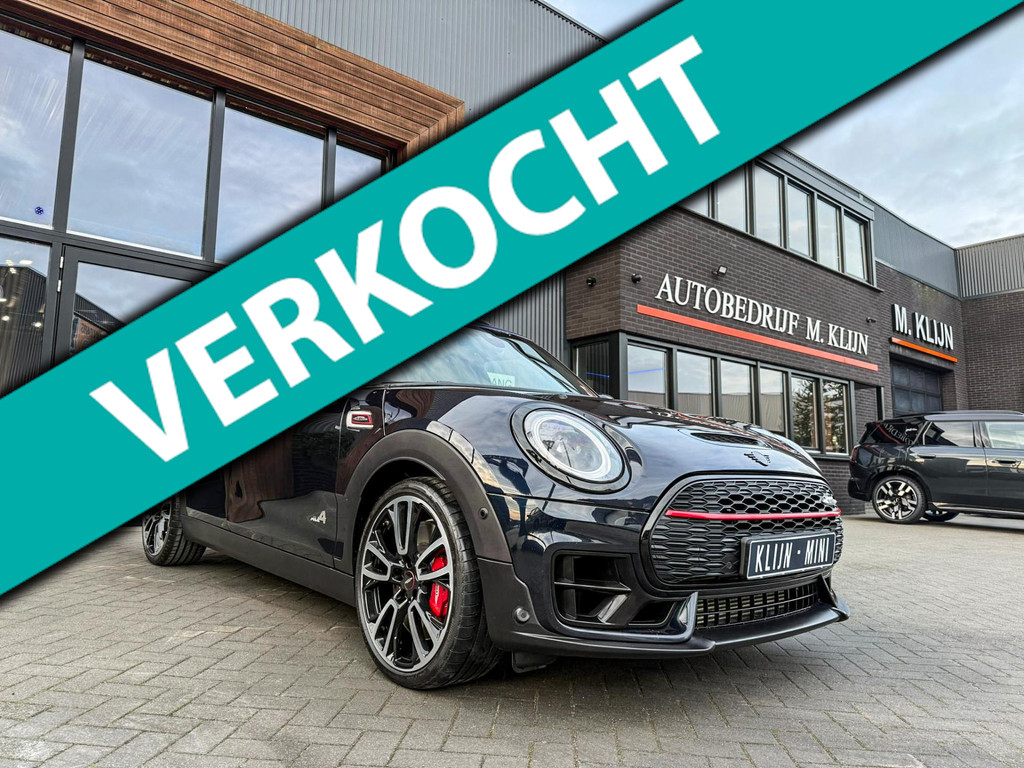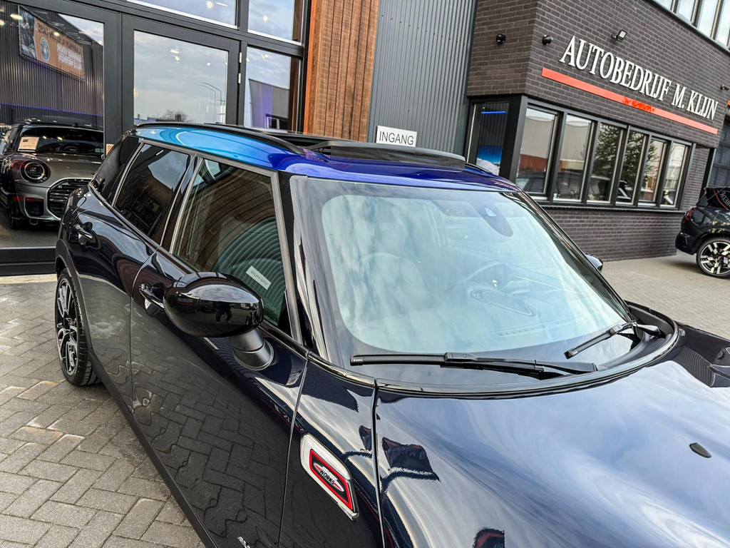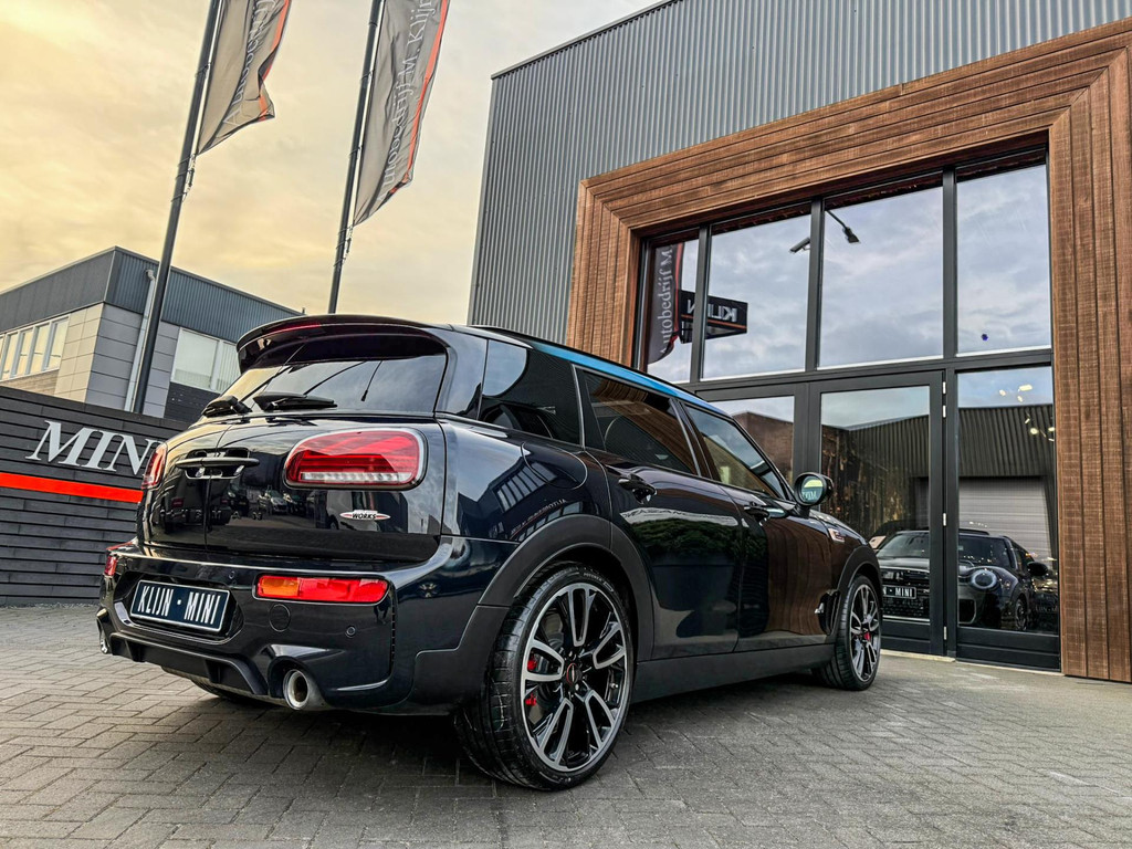 Zeer exclusieve facelift(nieuwste model) Mini Clubman John Cooper Works ALL4 F1 sportautomaat met een 306pk motor uitgevoerd in de prachtige kleur Enigmatic black.Deze in werkelijk nieuwstaat verkerende Mini is voorzien van een multitone dak vanaf fabriek en uitgerust met alle denkbare opties oa:Climate control,vollederen interieur Carbon Black,sportstoelen, stoelverwarming,verwarmd stuurwiel,virtual cockpit,breedbeeld dvd navigatie XL,Mini Connected XL,keyless go,achteruitrijcamera,19” Jcw cup velgen,head up display,Harman Kardon soundsystem,sportpakket,vierwielaandrijving,led verlichting,elektrisch bedienbare glazen panoramadak,5 persoons,privacyglass,multitone dak origineel vanaf fabriek,lederen Jcw sportstuur met F1 flipperschakel,lichtpakket met Mini logo's,welcome pakket,parkeersensoren voor en achter,parkassist(auto parkeert zelf in),F1 schakel op stuur,actieve voetgangersbeveiliging,dakrailing zwart,lc scherm,Mini driving modus,donker dakhemel,mf stuur,Apple Carplay,dab radio,boordcomputer,blackline,nieuw model,regensensor,verwarmde voorruit,Union Jack achterlichten,vierwielaandrijving,armsteun,chili 2 pakket,alle boekjes+originele sleutels,1e eigenaar,58.000km origineel,Btw auto,nieuwprijs 72.200,-.Schitterende en unieke Mini Clubman Works in concoursstaat voor de echte liefhebber.