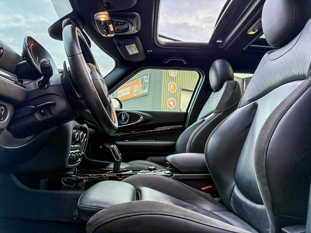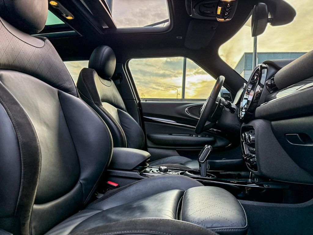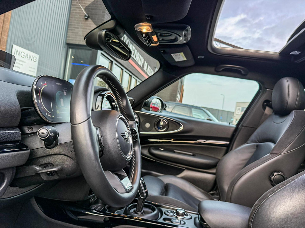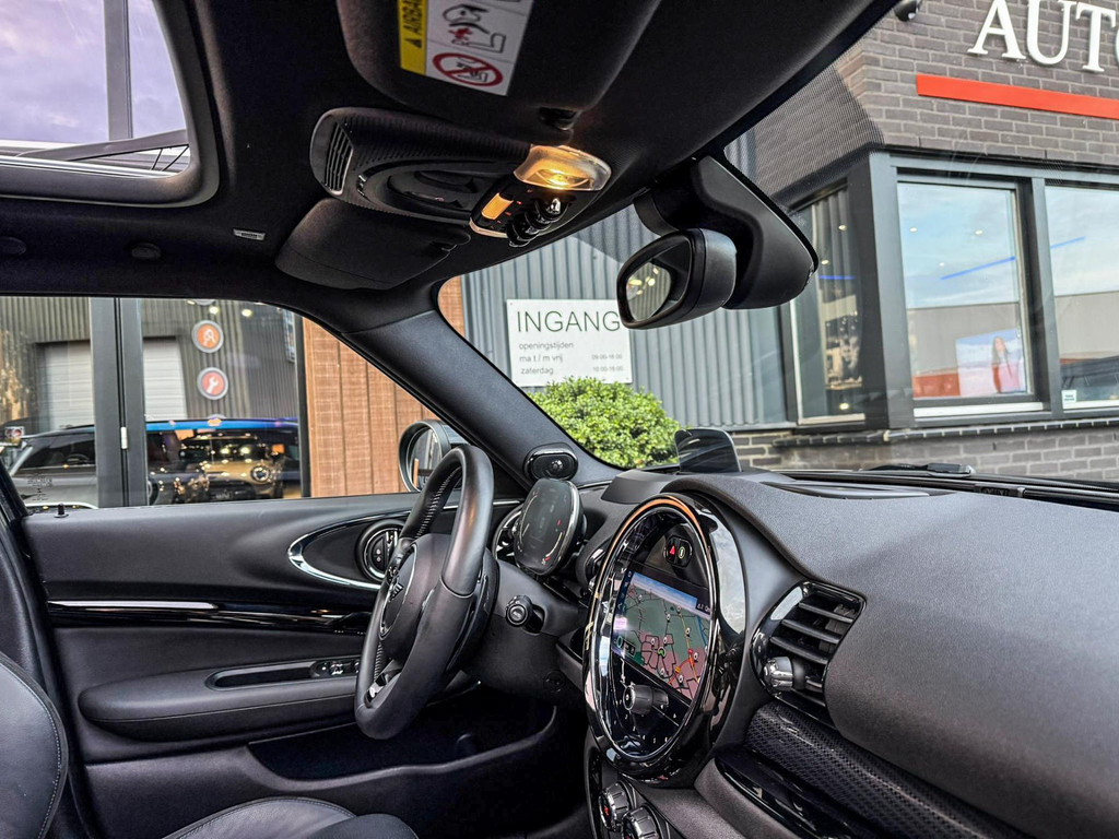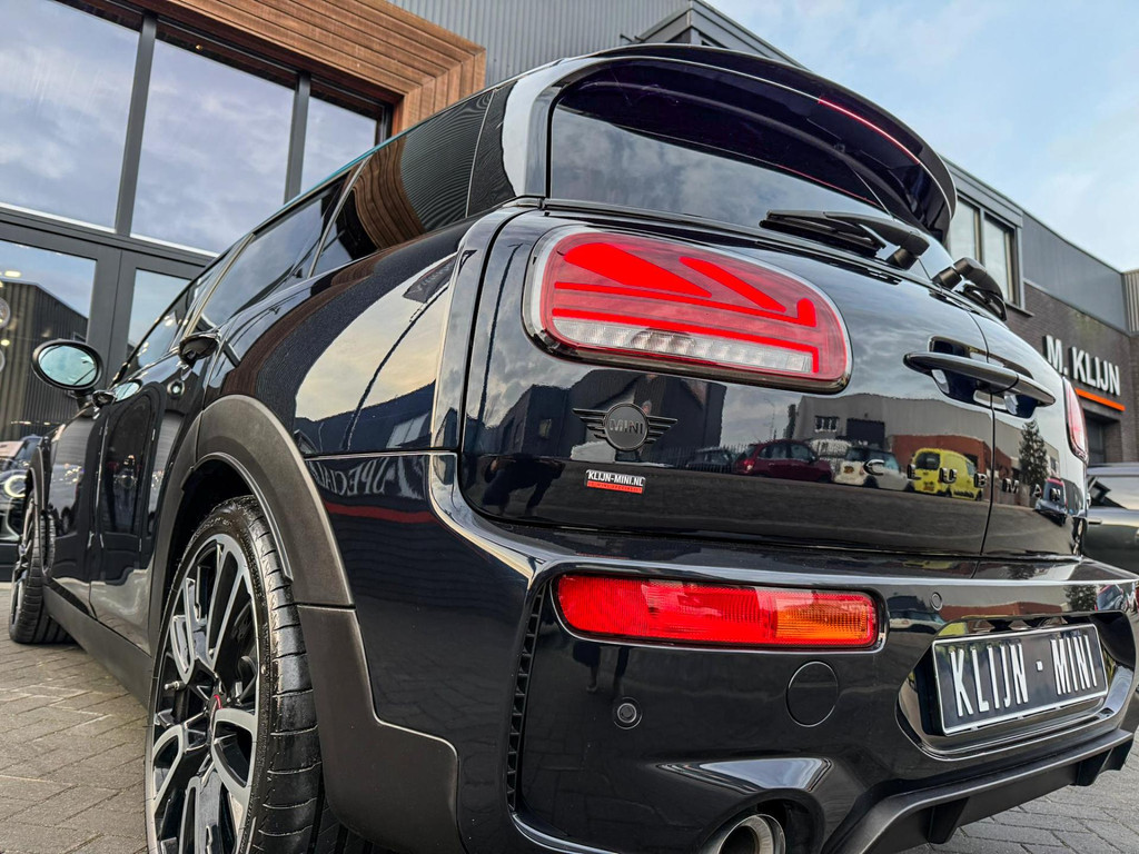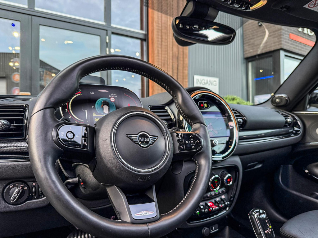 Zeer exclusieve facelift(nieuwste model) Mini Clubman John Cooper Works ALL4 F1 sportautomaat met een 306pk motor uitgevoerd in de prachtige kleur Enigmatic black.Deze in werkelijk nieuwstaat verkerende Mini is voorzien van een multitone dak vanaf fabriek en uitgerust met alle denkbare opties oa:Climate control,vollederen interieur Carbon Black,sportstoelen, stoelverwarming,verwarmd stuurwiel,virtual cockpit,breedbeeld dvd navigatie XL,Mini Connected XL,keyless go,achteruitrijcamera,19” Jcw cup velgen,head up display,Harman Kardon soundsystem,sportpakket,vierwielaandrijving,led verlichting,elektrisch bedienbare glazen panoramadak,5 persoons,privacyglass,multitone dak origineel vanaf fabriek,lederen Jcw sportstuur met F1 flipperschakel,lichtpakket met Mini logo's,welcome pakket,parkeersensoren voor en achter,parkassist(auto parkeert zelf in),F1 schakel op stuur,actieve voetgangersbeveiliging,dakrailing zwart,lc scherm,Mini driving modus,donker dakhemel,mf stuur,Apple Carplay,dab radio,boordcomputer,blackline,nieuw model,regensensor,verwarmde voorruit,Union Jack achterlichten,vierwielaandrijving,armsteun,chili 2 pakket,alle boekjes+originele sleutels,1e eigenaar,58.000km origineel,Btw auto,nieuwprijs 72.200,-.Schitterende en unieke Mini Clubman Works in concoursstaat voor de echte liefhebber.