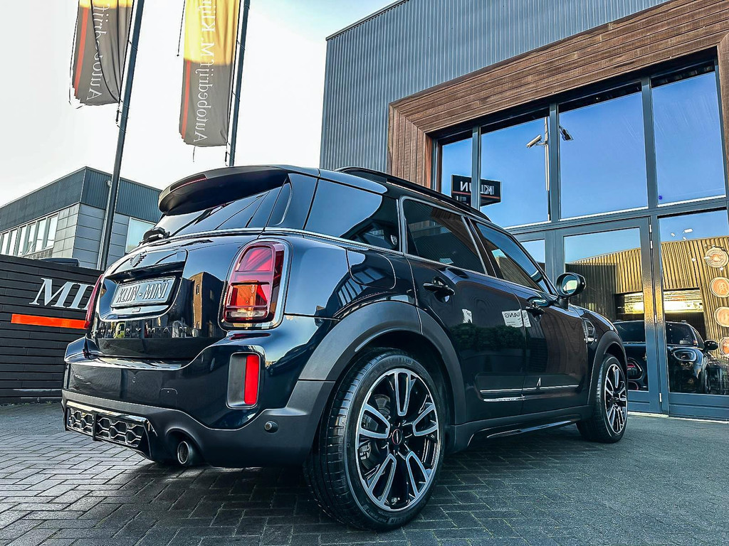 Unieke(Estate Edition) Mini Countryman Cooper S John Cooper Works All4 F1 sportautomaat met een 178pk motor in de prachtig kleur Enigmatic Black metallic.Deze in werkelijk nieuwstaat verkerende Mini is uitgerust met alle maar dan ook alle denkbare opties oa:Climate control,vollederen interieur Yours Lounge,stoelverwarming,verwarmd stuurwiel,elektrische stoelen met Memory,sportstoelen,virtual cockpit,Head up display,achteruitrijcamera,breedbeeld dvd navigatie XL,Mini Connected XL,19" inch Jcw circuit spike velgen,Jcw sportpakket,led verlichting,adaptieve cruise control,elektrisch bedienbare glazen panoramadak,5 persoons,parkassist(auto parkeert zelf in)lederen Jcw sportstuur met F1 flippers,Union Jack achterlichten,welcome pakket,privacyglass,exclusieve Estate Edition,dakrailing zwart,full black pack,parkeersensoren voor en achter,parkassist(auto parkeert zelf in),actieve voetgangersbeveiliging,Mini driving modus,mf stuur,dab tuner,apple carplay,elektrische kofferbaksluiting,boordcomputer,digital cockpit,regensensor,verwarmde voorruit,nieuw model,armsteun,vierwielaandrijving,alle boekjes+originele sleutels,1e eigenaar,46.000km origineel,nieuwprijs 62.550.-.Schitterende Mini Countryman S in concoursstaat voor de echte liefhebber.