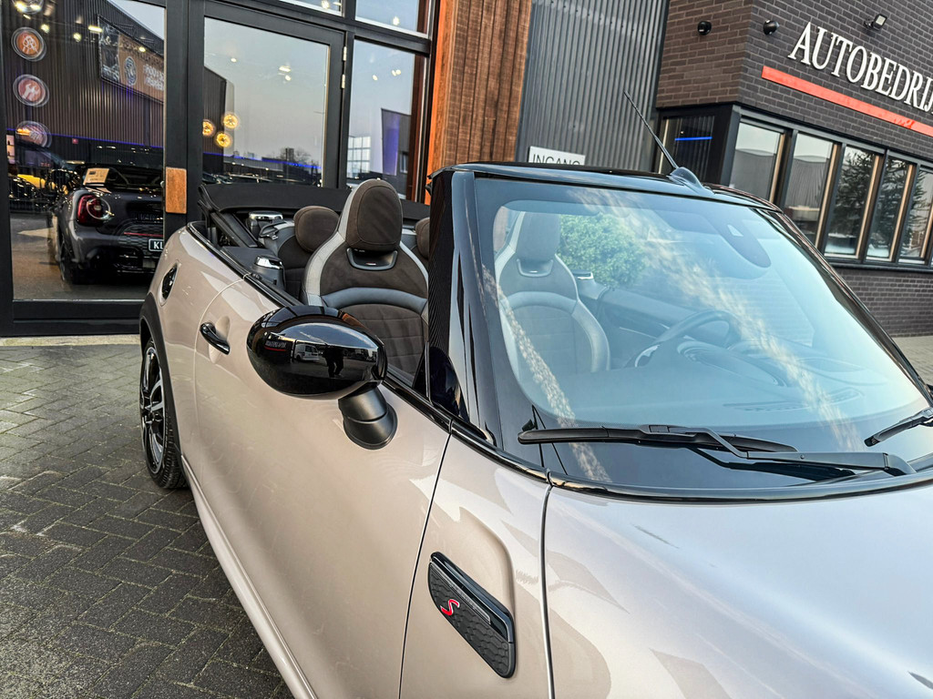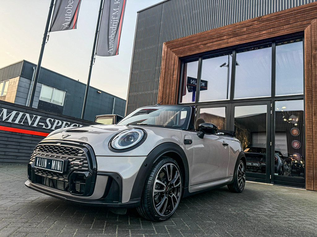 Unieke facelift Mini Cooper S John Cooper Works cabrio automaat met een 178pk motor in de prachtige kleur Rooftop grey metallic.Deze schitterende Mini is uitgerust met alle denkbare opties:Climate control,leder/dinamica Jcw stoelen,sportstoelen,stoelverwarming,verwarmd stuurwiel,virtual cockpit,breedbeeld navigatie,Mini connected XL,achteruitrijcamera,dab tuner,tel,usb,performence control,Jcw sportpakket,Head up display,apple carplay,Mini driving modus,elektrische cabriokap,adaptieve cruise control,lederen Jcw sportstuur,mf stuur,automatisch dimmende binnenspiegel, regensensor,voetgangersbeveiliging,elektrisch inklapbare spiegels, parkeersensoren voor en achter,parkassist(Mini parkeert zelf in),blackline,union Jack achterlichten,led koplampen met uitgebreide functies,18" Jcw circuit spoke velgen,lichtpakket met Mini logo's,actieve cruise control,gezichtspakket,chili 2 pakket,47.000km origineel,12 maanden garantie,nieuwprijs 54.700euro.Prachtig uitgevoerde Mini Cooper S in concoursstaat voor de echte liefhebber.