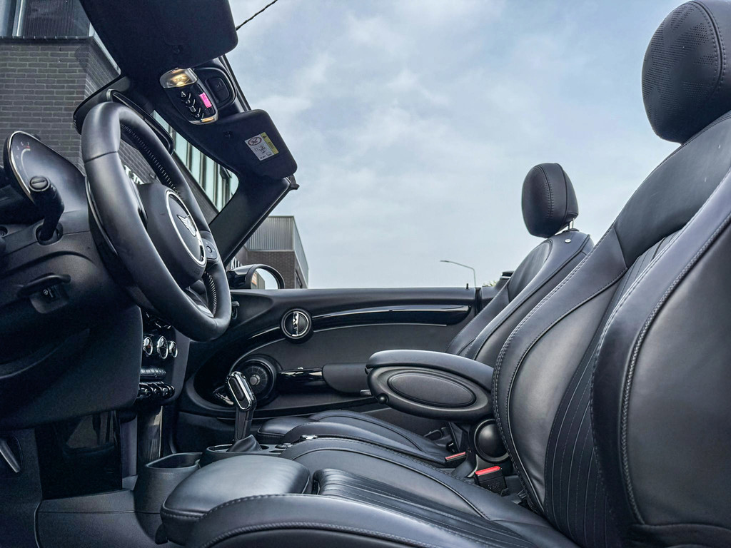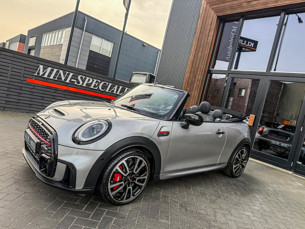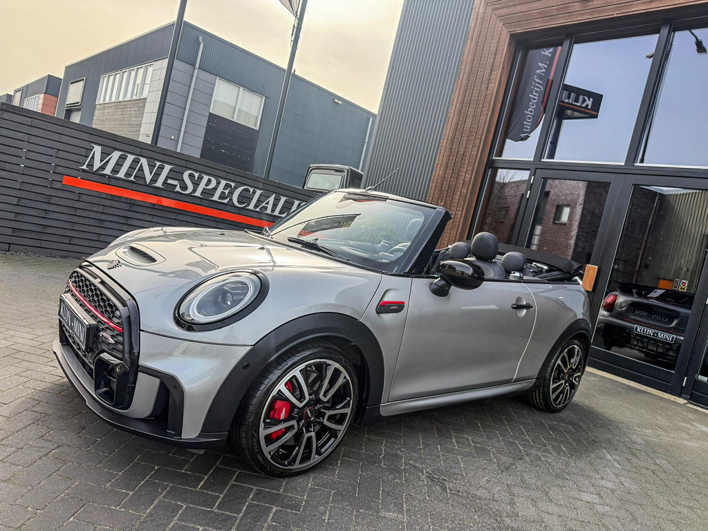 Schitterende en unieke Mini John Cooper Works Blackline cabriolet F1 sportautomaat met een 231pk motor uitgevoerd in de prachtige kleur Meltingsilver 2.Deze schitterende Mini is uitgerust met alle maar dan ook alle denkbare opties:Climate control,vollederen interieur Yours lounge,stoelverwarming,verwarmd stuurwiel,virtual cockpit,breedbeeld navigatie,Mini connected XL,achteruitrijcamera,dab tuner,head up display,Harman Kardon soundsystem,tel,usb,performence control,apple carplay,Mini driving modus,elektrisch cabriokap,lederen Jcw sportstuur met flipperschakel,mf stuur,automatisch dimmende binnenspiegel,regensensor,verwarmde voorruit,adaptieve cruise control,facelift,blackline,voetgangersbeveiliging,dtc,elektrisch inklapbare spiegels, parkeersensoren voor en achter,voetgangersbeveiliging,parkassist(Mini parkeert zelf in),union Jack achterlichten,led koplampen met uitgebreide functies,18 inch JCW circuit spoke velgen,lichtpakket met Mini logo's,gezichtspakket,chili 2 pakket,47.000km origineel,nieuwprijs 63.000euro.Prachtig uitgevoerde Mini Jcw in concoursstaat voor de echte liefhebber.