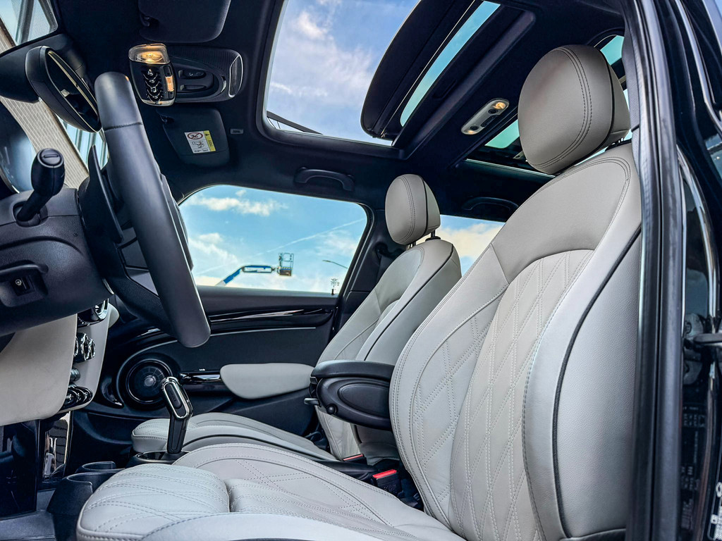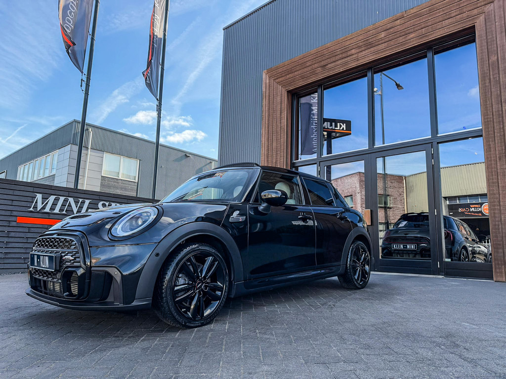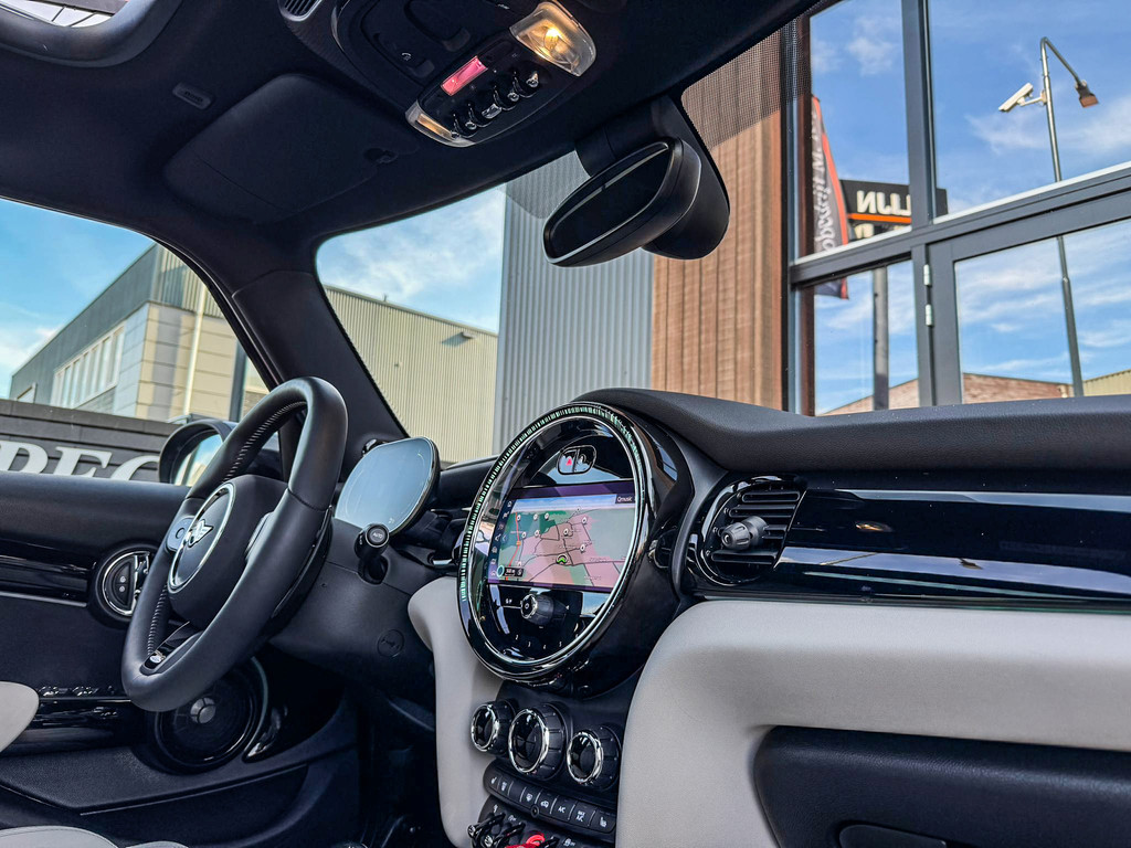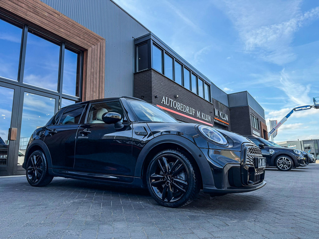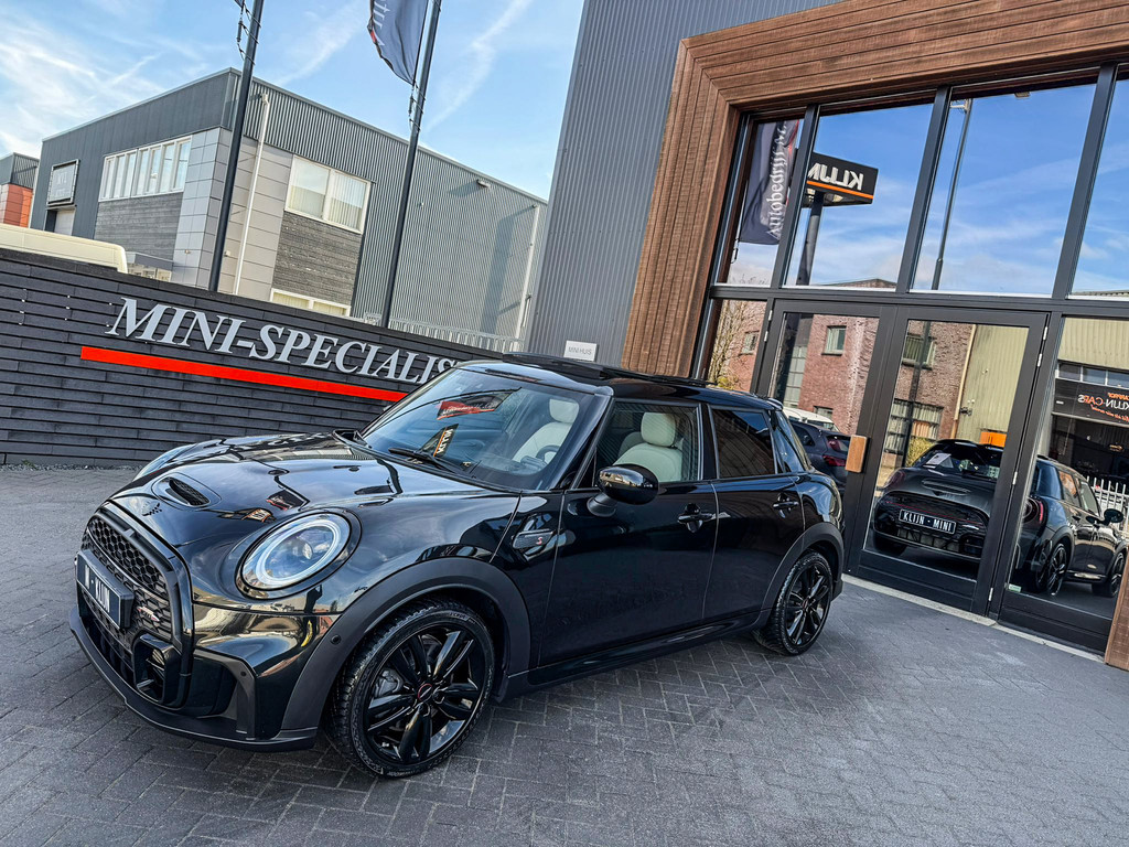 Unieke Mini Cooper S John Cooper Works 5drs F1 sportautomaat uitgevoerd in de prachtige kleurencombinatie van Midnight black metallic metallic en Chester Satellite grey lederen interieur. Deze in werkelijk nieuwstaat verkerende Mini is dealer onderhouden en uitgerust met alle denkbare opties o.a.:Climate control,vollederen interieur Chester satellite grey,sportstoelen,stoelverwarming,virtual cockpit,breedbeeld navigatie,Harman Kardon soundsystem,Mini connected XL,head up display,achteruitrijcamera,elektrisch bedienbare glazen panoramadak,Jcw sportpakket,led verlichting,elektrische ramen+spiegels,lederen Jcw sportstuur met F1 flippers,full black pack,regensensor,17” Jcw velgen zwart,donker dakhemel,parkeersensoren voor en achter,parkassist(Mini parkeert zelf in),Apple CarPlay,keyless go,62.000km origineel.Schitterende Mini in topstaat voor de echte liefhebber.