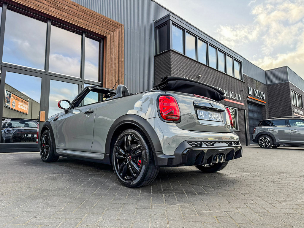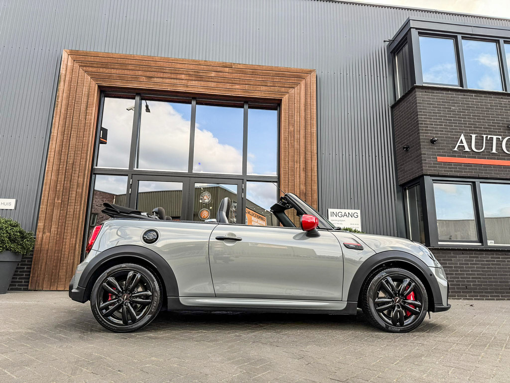Unieke Mini John Cooper Works cabrio Blackline F1 sportautomaat met een 231pk motor in de prachtige kleur Moonwalkgrey(Nardo)metallic.Deze schitterende Mini is uitgerust met alle maar dan ook alle denkbare opties:Climate control,lederen/dinamica interieur,Jcw sportstoelen,stoelverwarming,verwarmd stuurwiel,virtual display,breedbeeld navigatie,Mini connected XL,head up display,Harman Kardon soundsystem,achteruitrijcamera,dab tuner,tel,usb,performence control,apple carplay,Mini driving modus,adaptieve cruise control,elektrische cabriokap,lederen Jcw sportstuur met flipperschakel,mf stuur,automatisch dimmende binnenspiegel, regensensor,verwarmde voorruit,facelift,full blackpack, voetgangersbeveiliging,dtc,elektrisch inklapbare spiegels, parkeersensoren voor en achter,parkassist(Mini parkeert zelf in),union Jack achterlichten,led koplampen met uitgebreide functies,17 inch JCW velgen zwart,lichtpakket met Mini logo's,actieve cruise control,gezichtspakket,chili 2 pakket,59.000km origineel,nieuwprijs 63.000euro.Prachtig uitgevoerde Mini Jcw in concoursstaat voor de echte liefhebber.